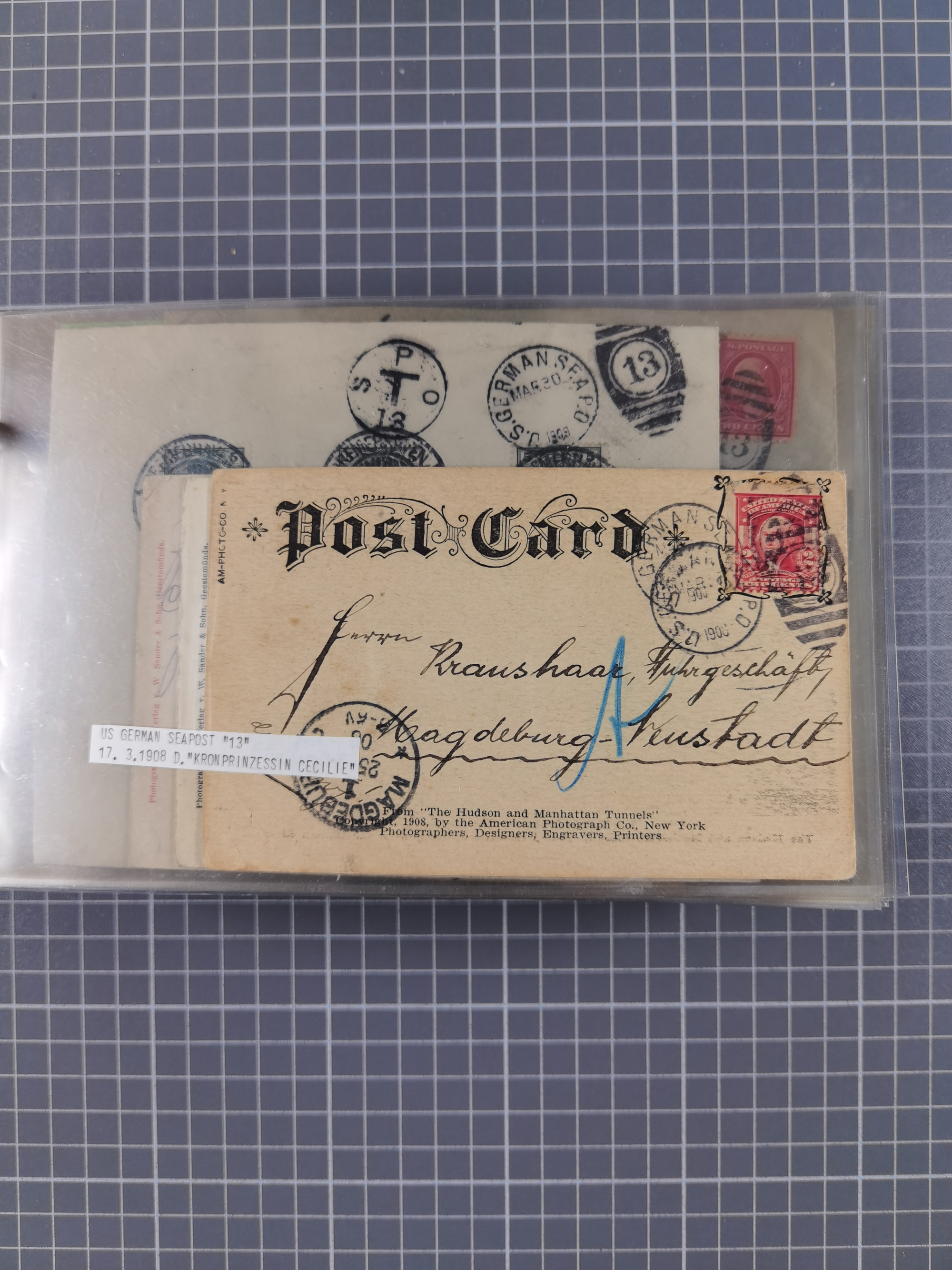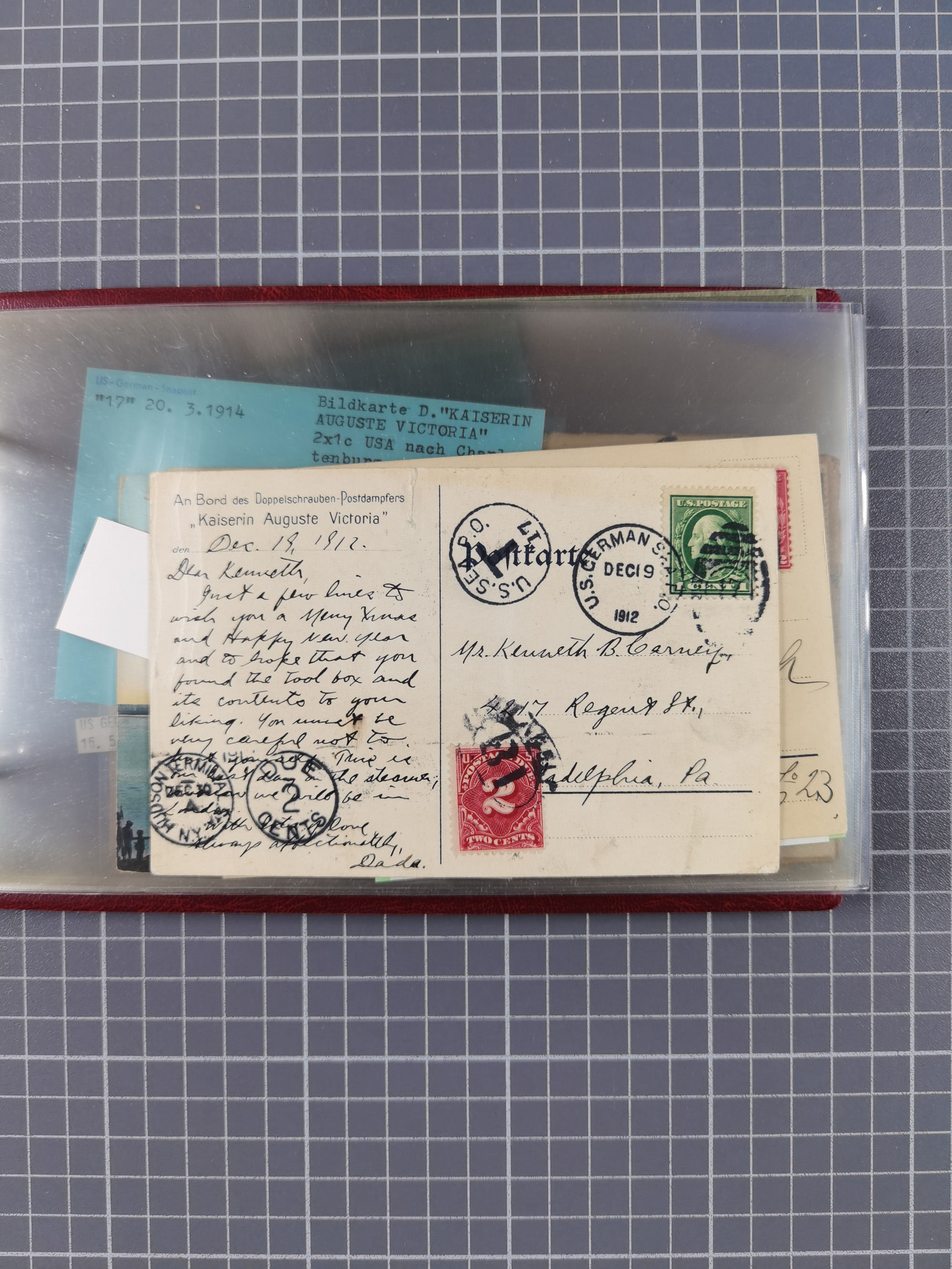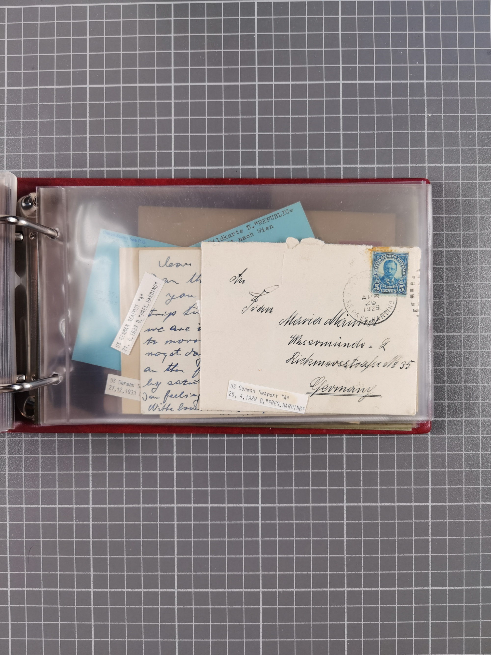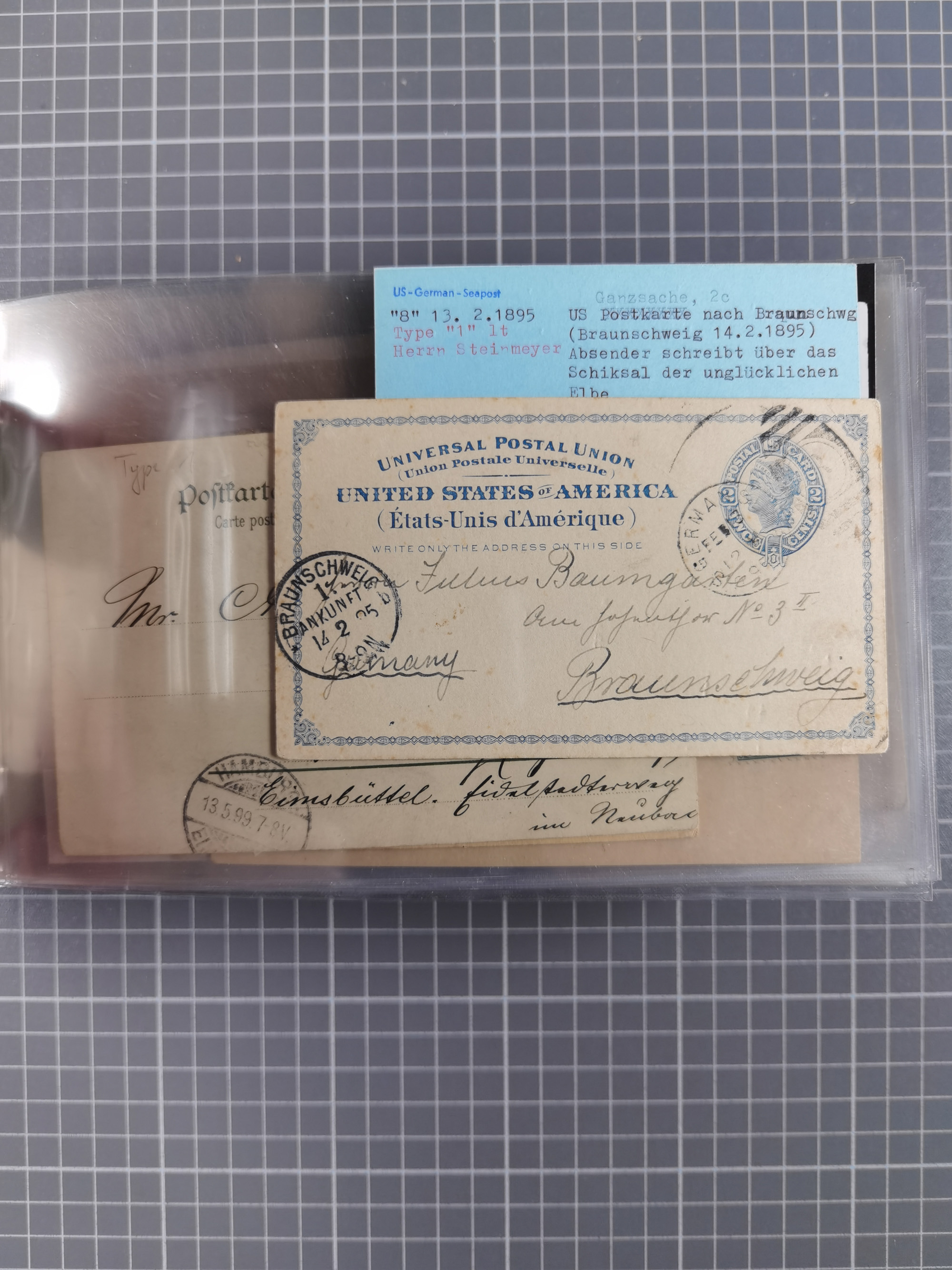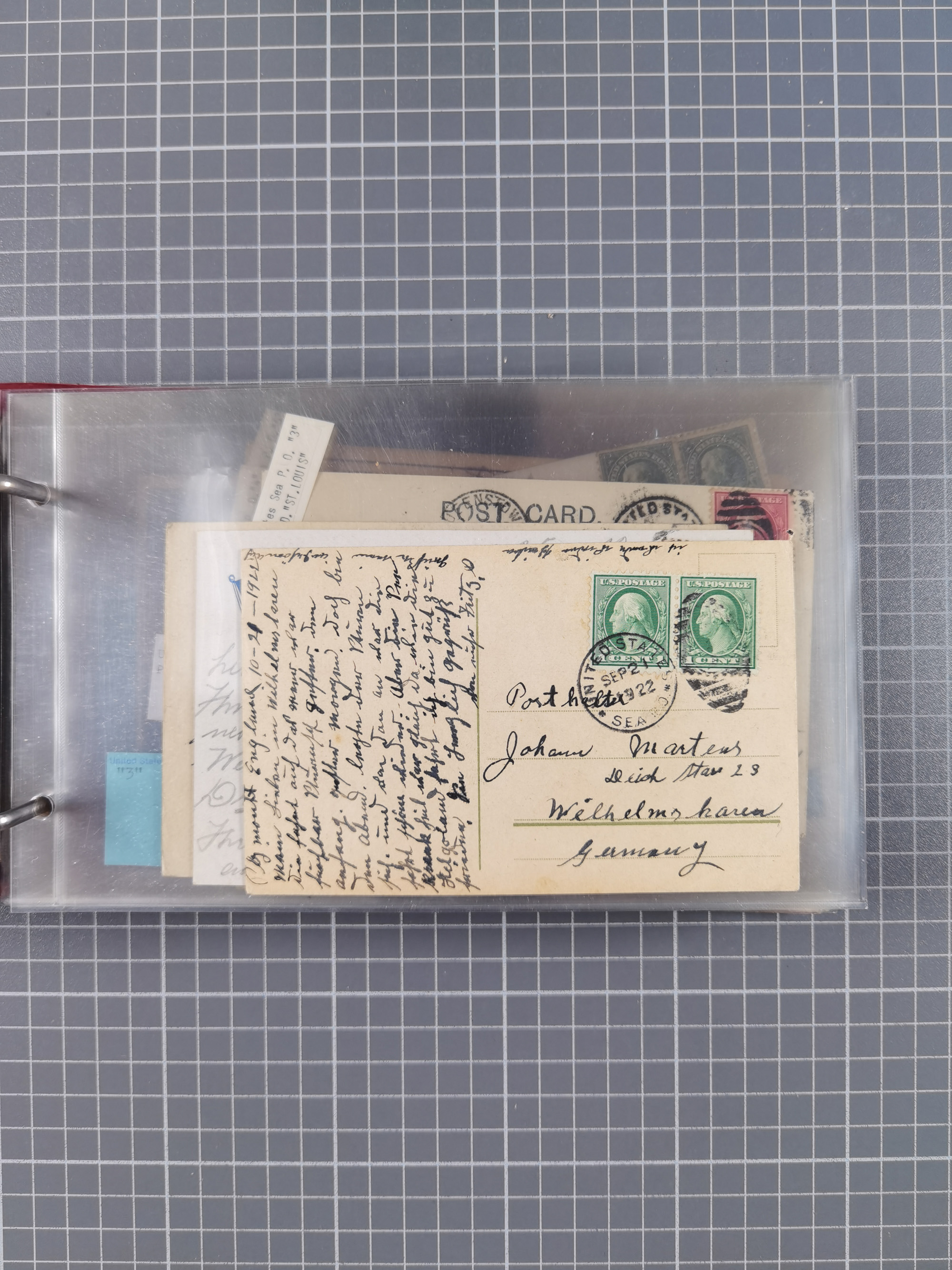 1892/1939, umfangreiche Sammlung “U.S. GERMAN SEA POST” mit ca. 400 Briefen, Karten und Ganzsachen, Schwerpunkt vor 1920 mit den Dublex-Stempeln mit Nr. 1-16, dabei verschiedene Verwendungen mit besseren (u.a. auf Briefen/Karten vom D. Reich), 1 R-GSU und weiteren Besonderheiten. Dazu noch einige Schiffs-Ansichtskarten, bei vielen Belegen mit Vermerken zu den Schiffen usw. und meist in guter Erhaltung. Eine in diesem Umfang seltene Sammlung in sechs Alben, ex Steinmeyer
