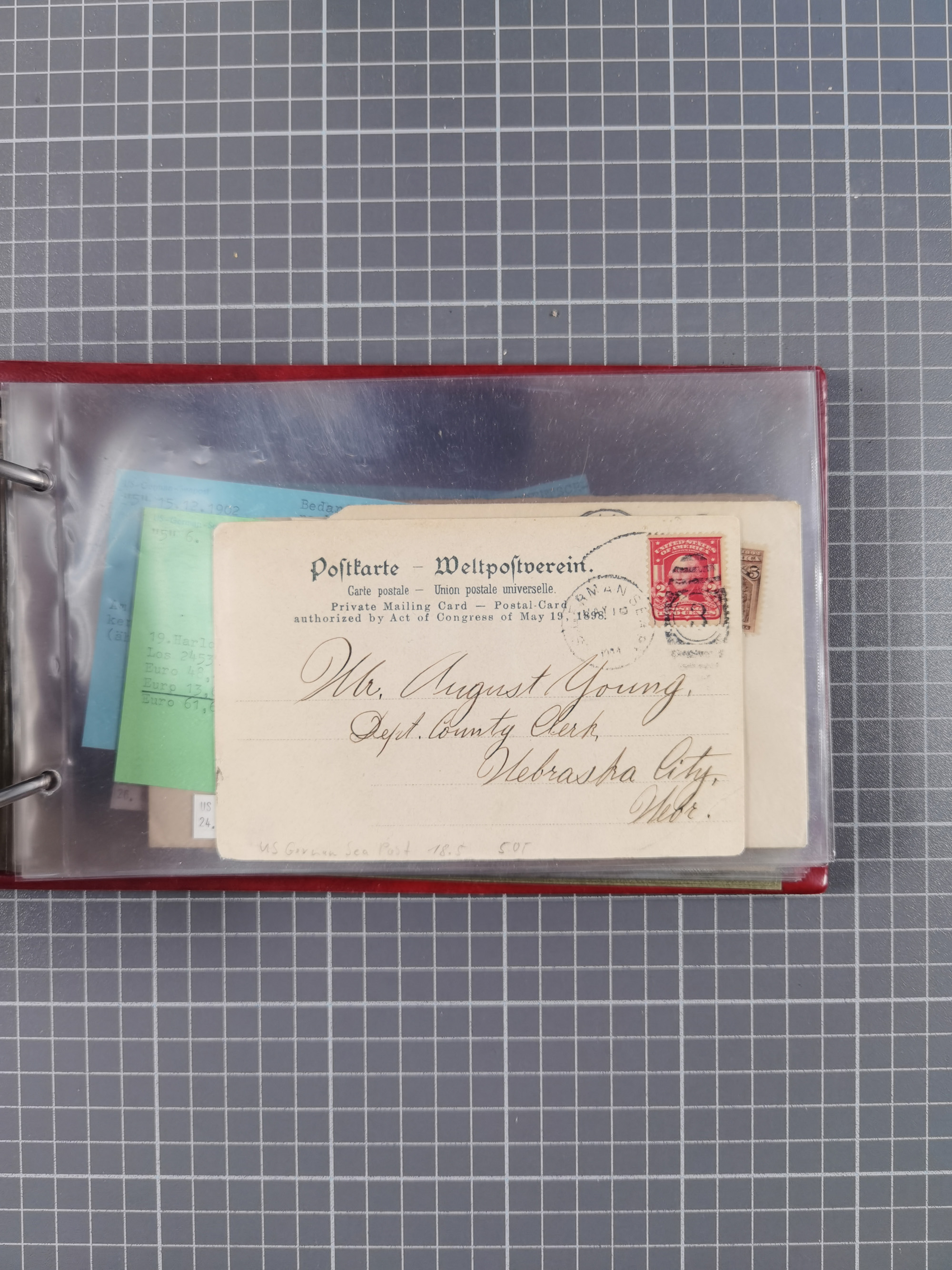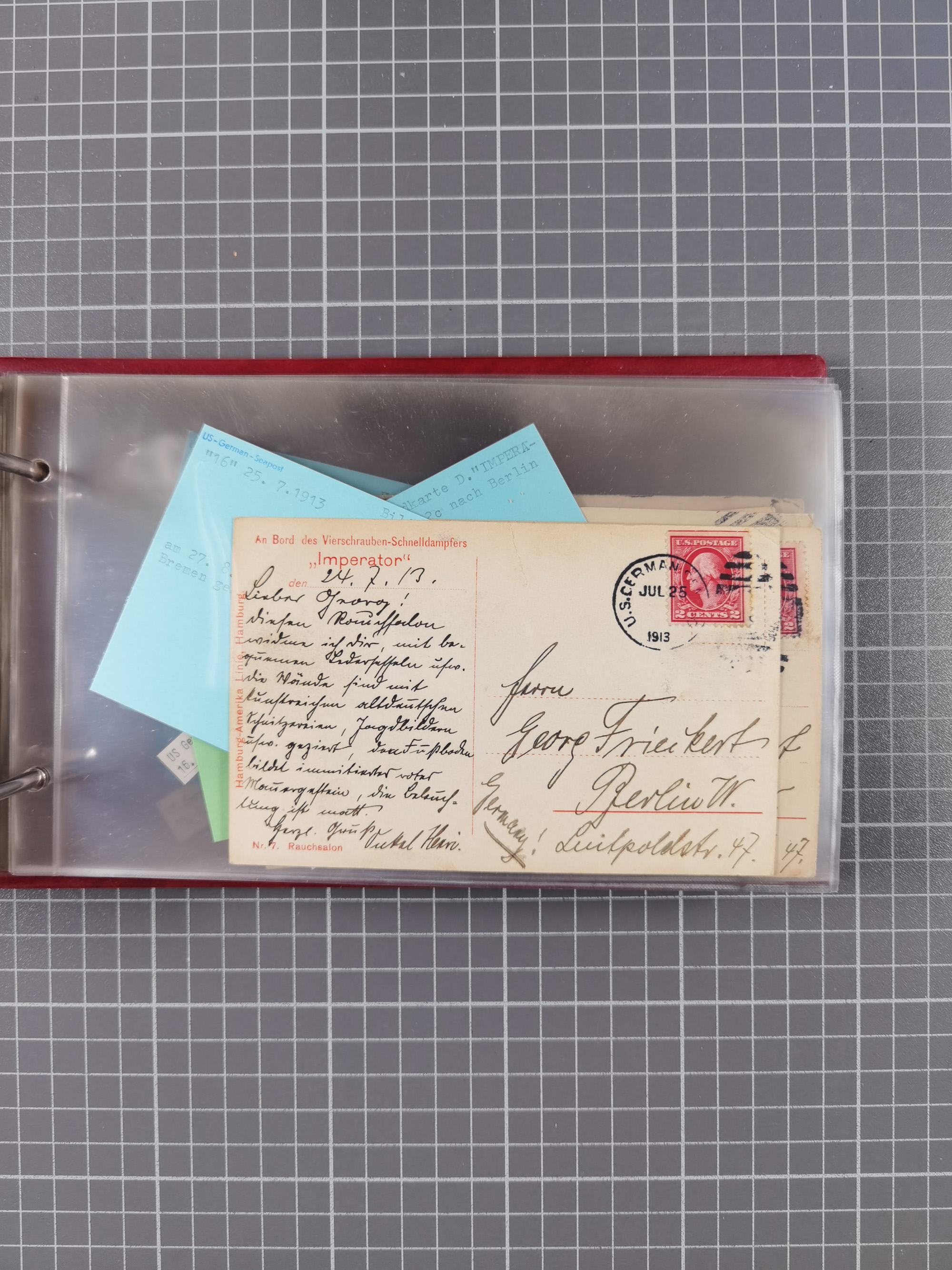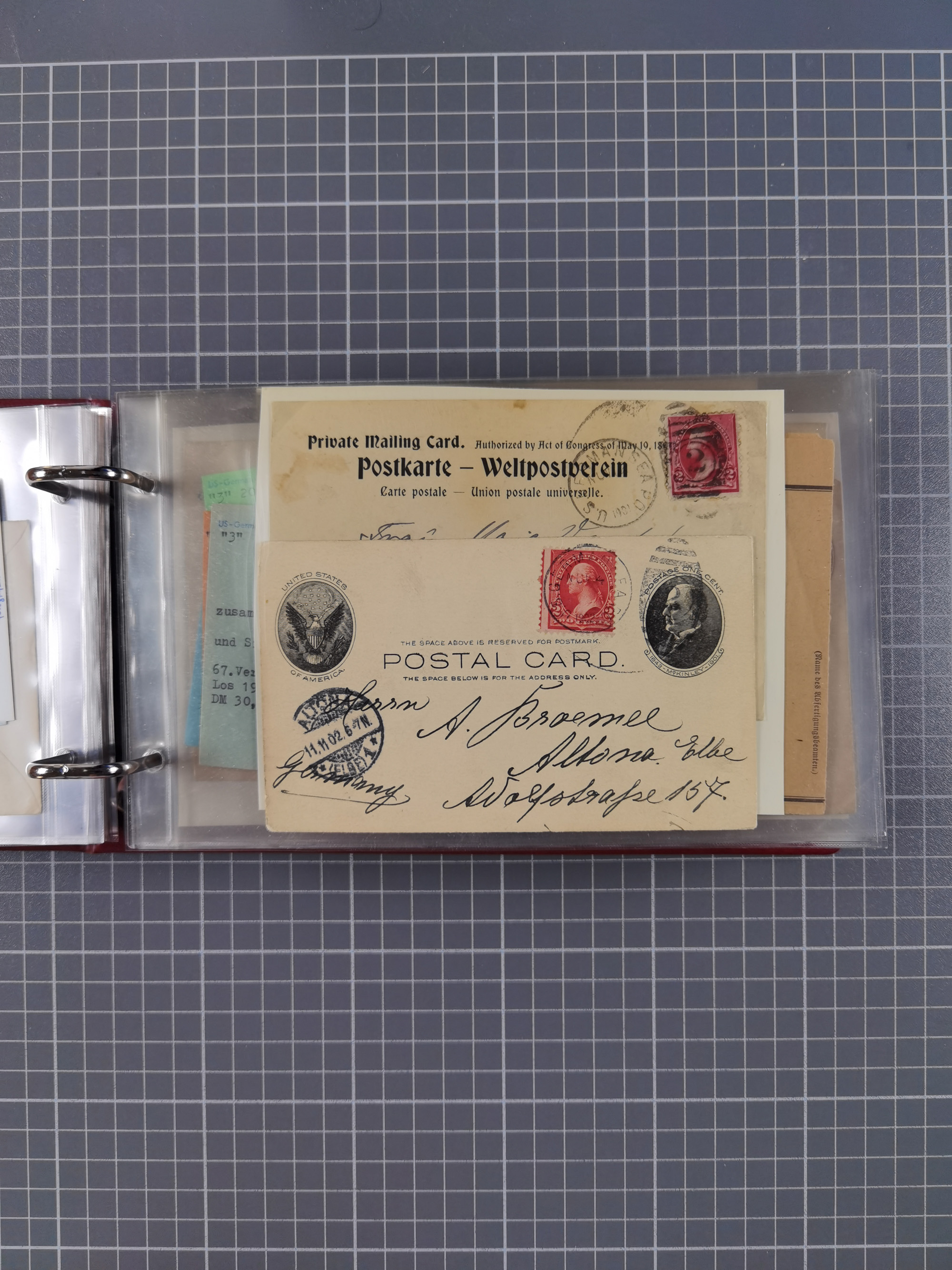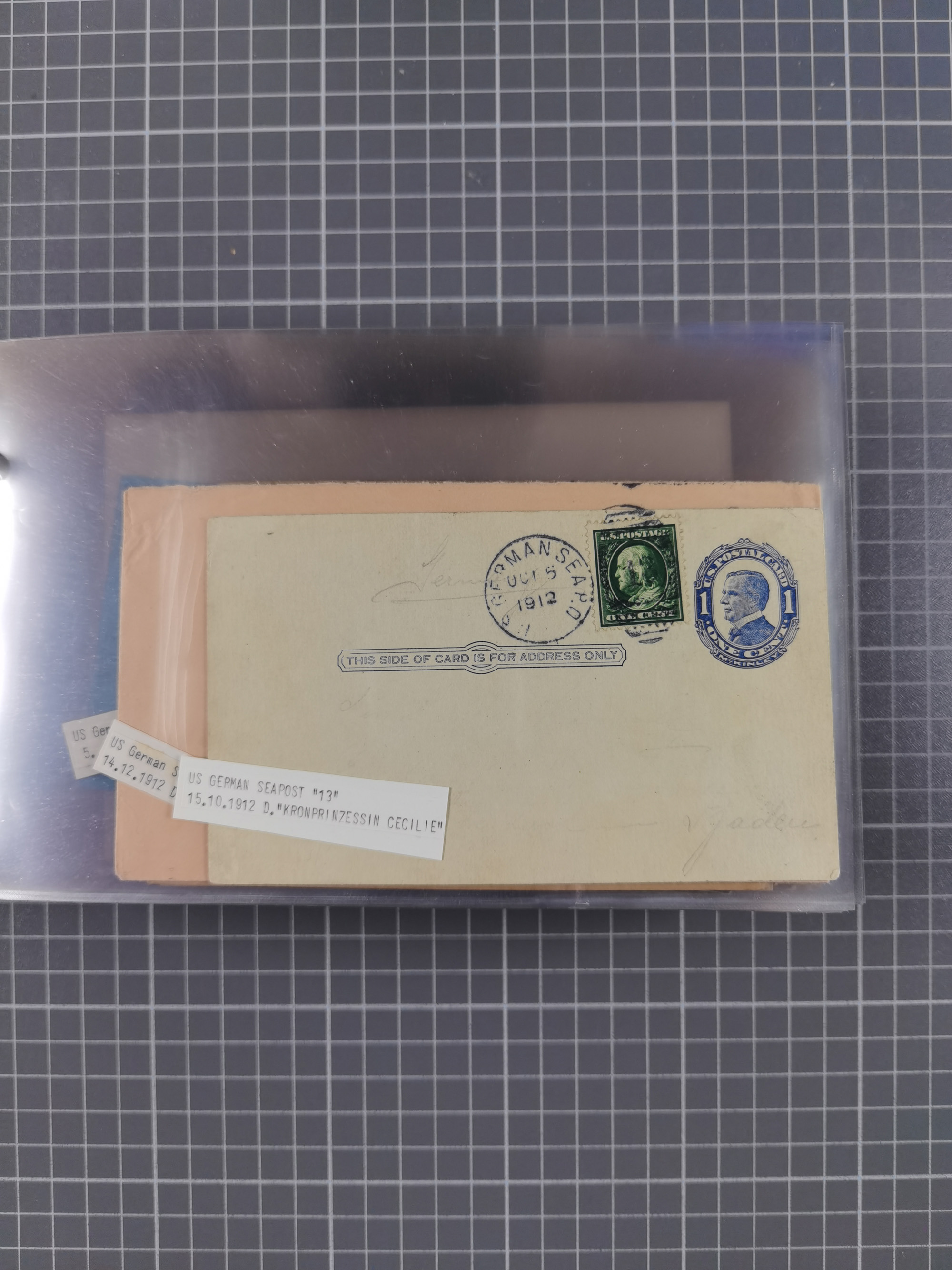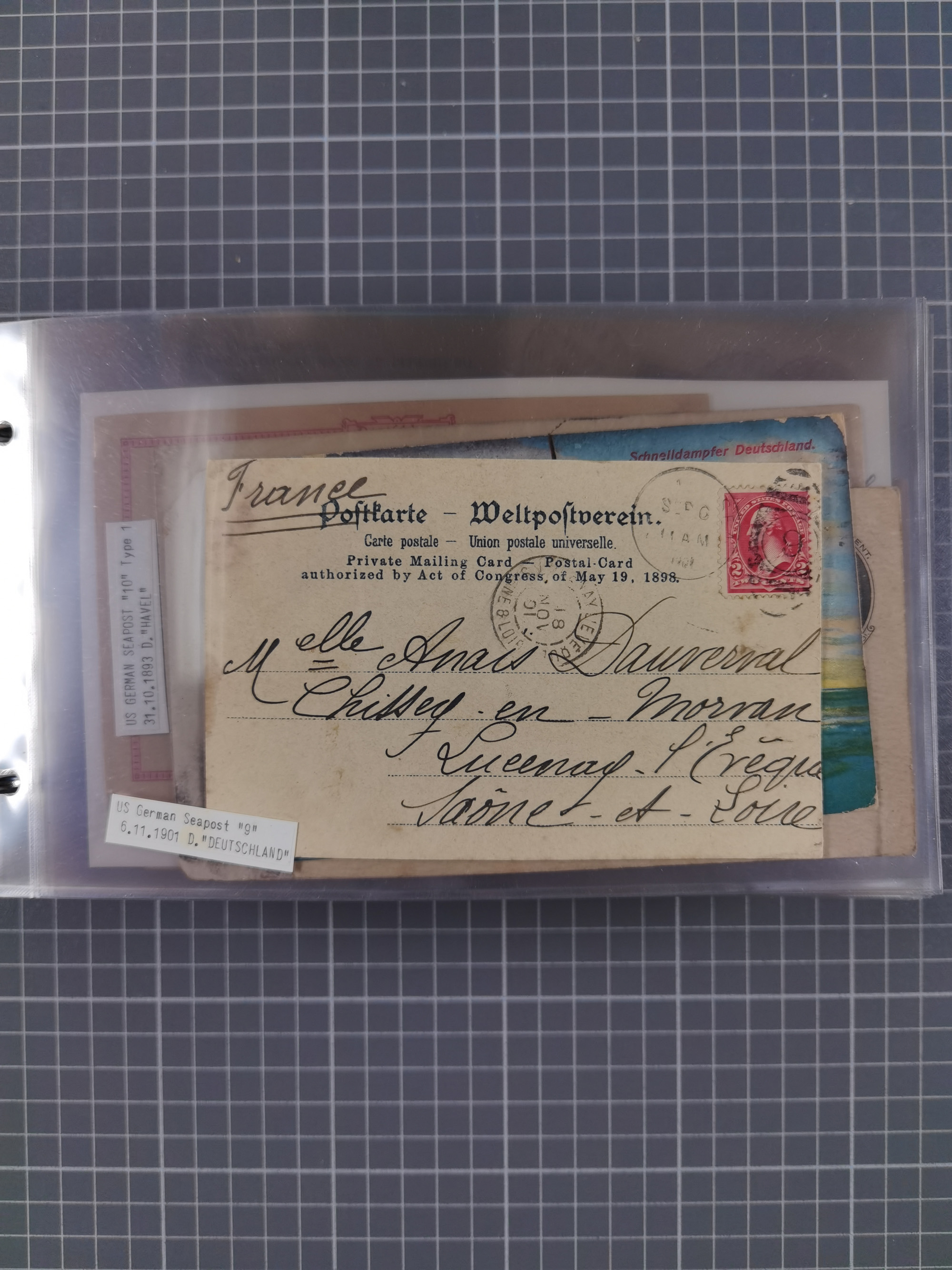 1892/1939, umfangreiche Sammlung “U.S. GERMAN SEA POST” mit ca. 400 Briefen, Karten und Ganzsachen, Schwerpunkt vor 1920 mit den Dublex-Stempeln mit Nr. 1-16, dabei verschiedene Verwendungen mit besseren (u.a. auf Briefen/Karten vom D. Reich), 1 R-GSU und weiteren Besonderheiten. Dazu noch einige Schiffs-Ansichtskarten, bei vielen Belegen mit Vermerken zu den Schiffen usw. und meist in guter Erhaltung. Eine in diesem Umfang seltene Sammlung in sechs Alben, ex Steinmeyer