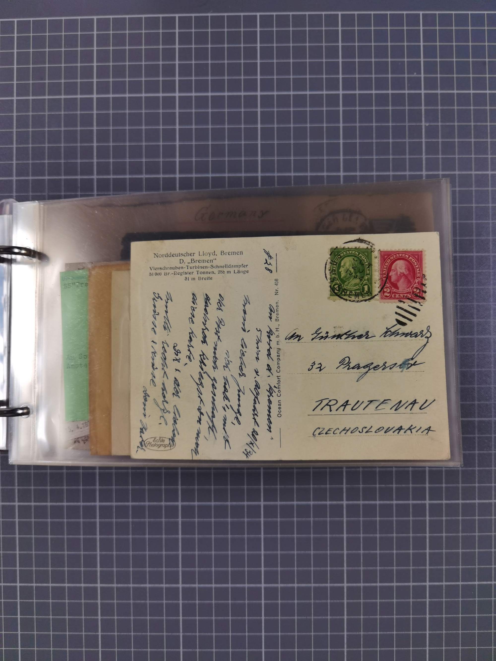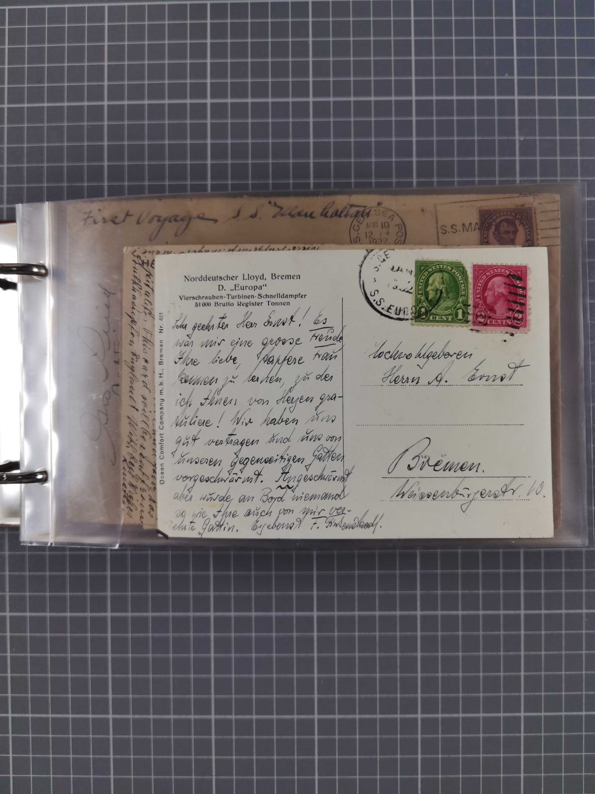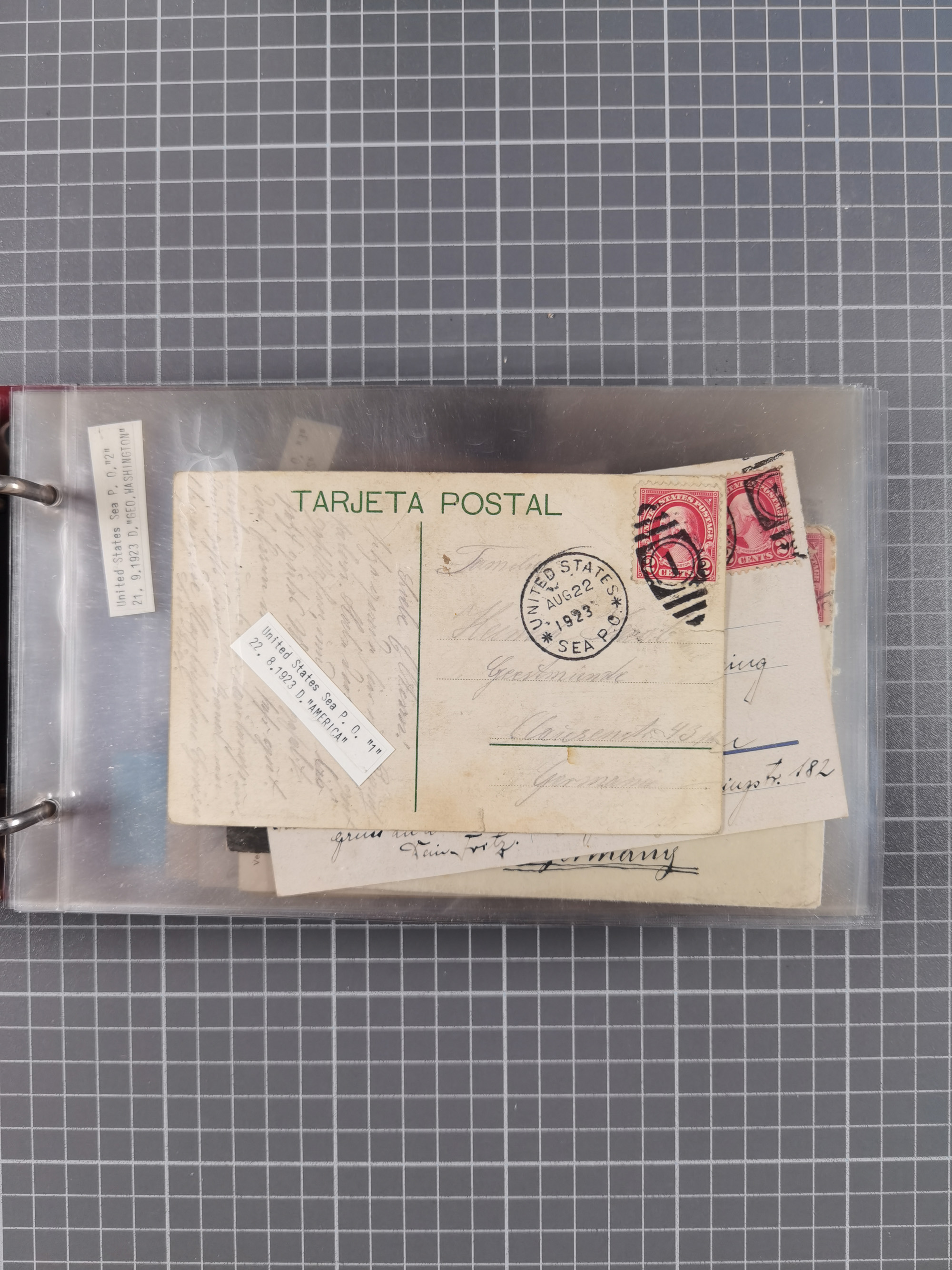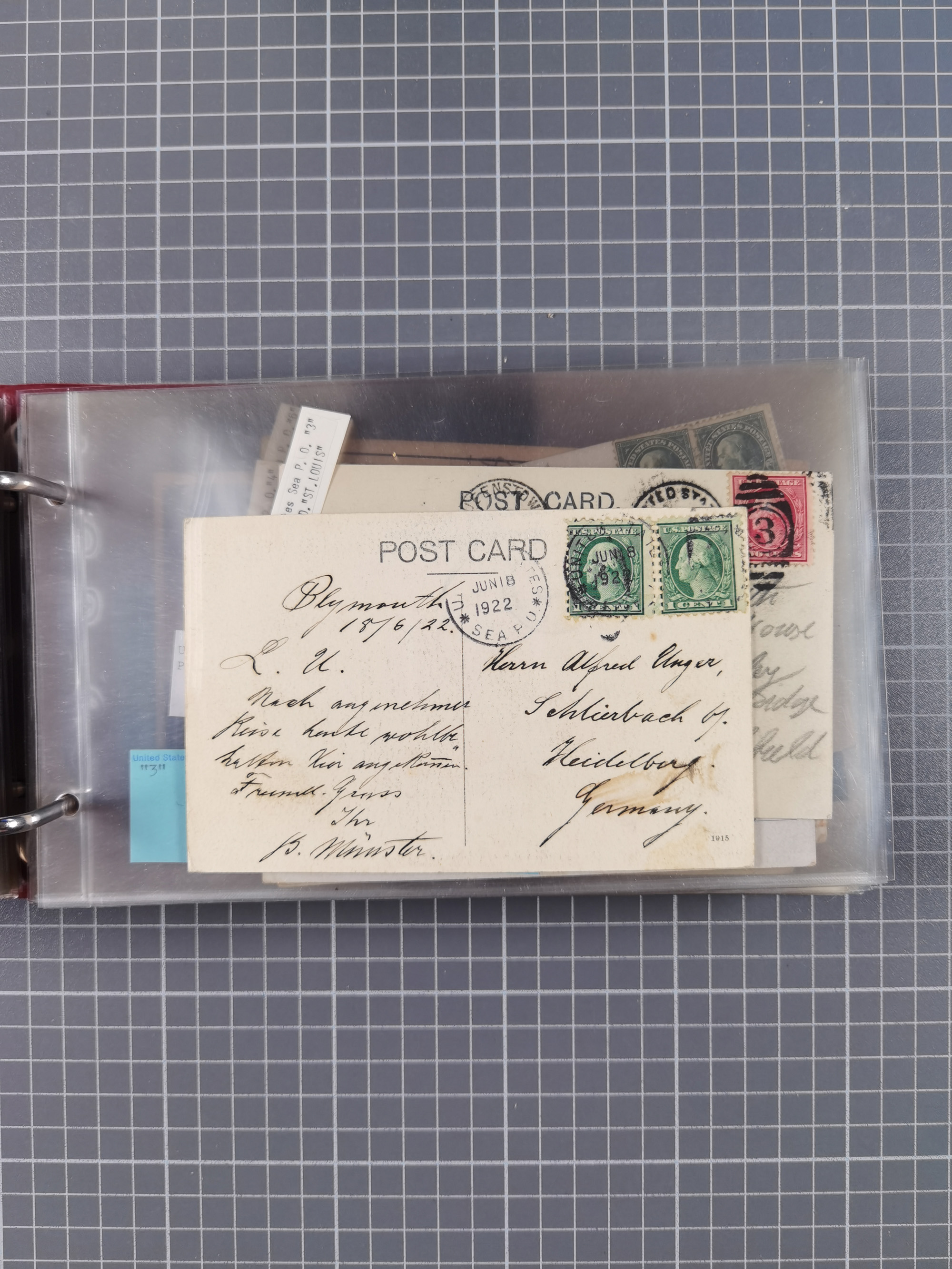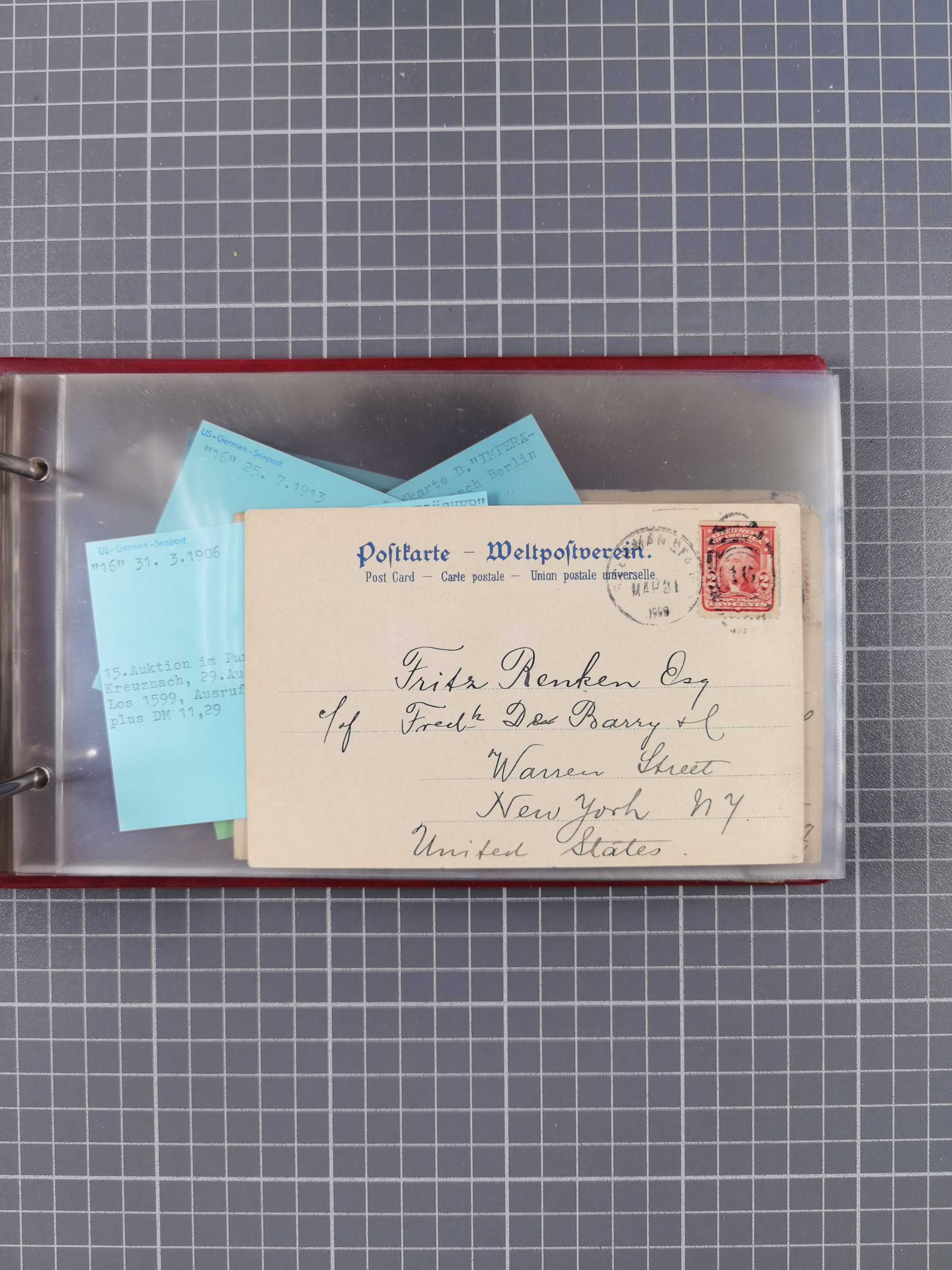1892/1939, umfangreiche Sammlung “U.S. GERMAN SEA POST” mit ca. 400 Briefen, Karten und Ganzsachen, Schwerpunkt vor 1920 mit den Dublex-Stempeln mit Nr. 1-16, dabei verschiedene Verwendungen mit besseren (u.a. auf Briefen/Karten vom D. Reich), 1 R-GSU und weiteren Besonderheiten. Dazu noch einige Schiffs-Ansichtskarten, bei vielen Belegen mit Vermerken zu den Schiffen usw. und meist in guter Erhaltung. Eine in diesem Umfang seltene Sammlung in sechs Alben, ex Steinmeyer
