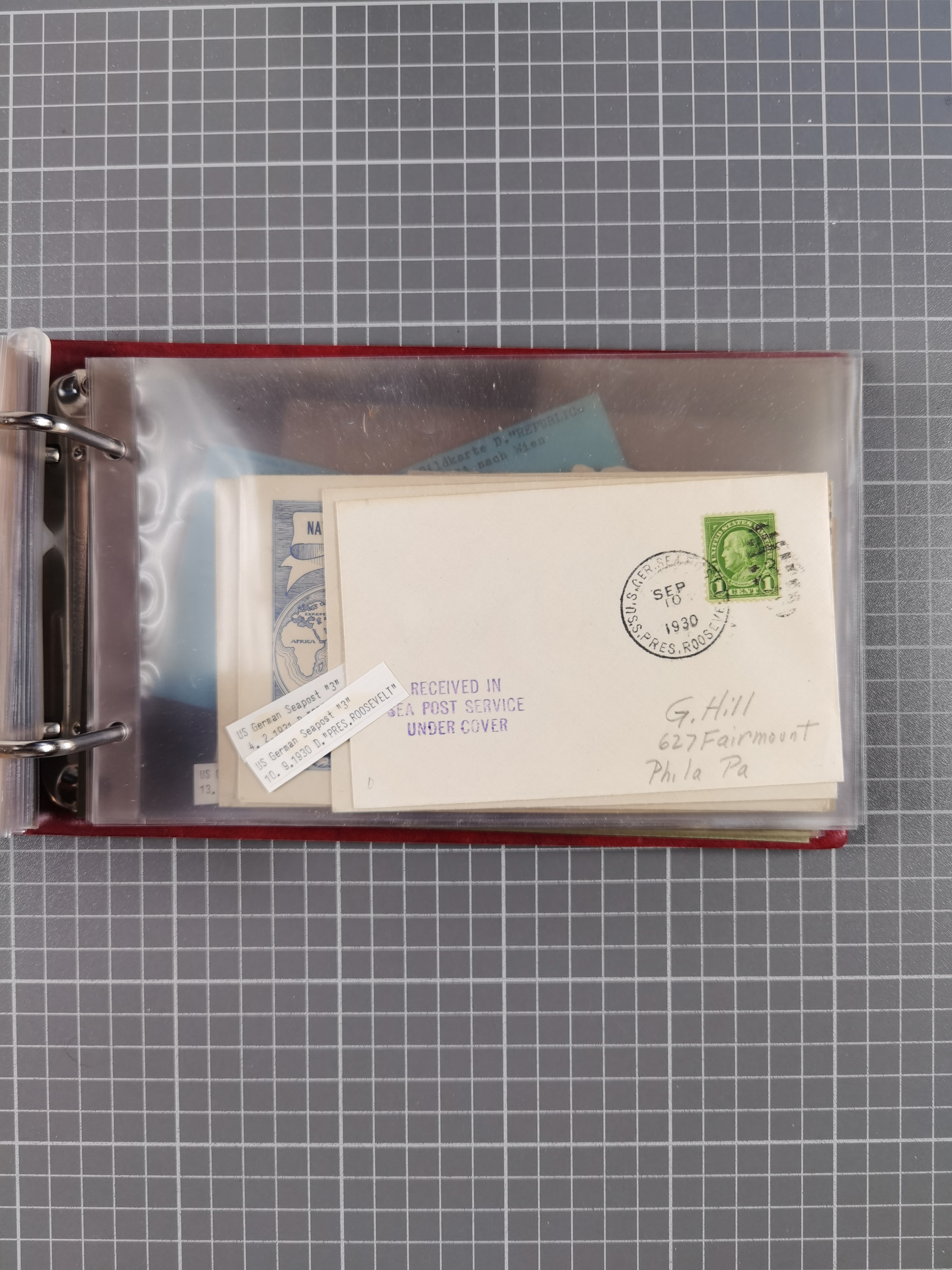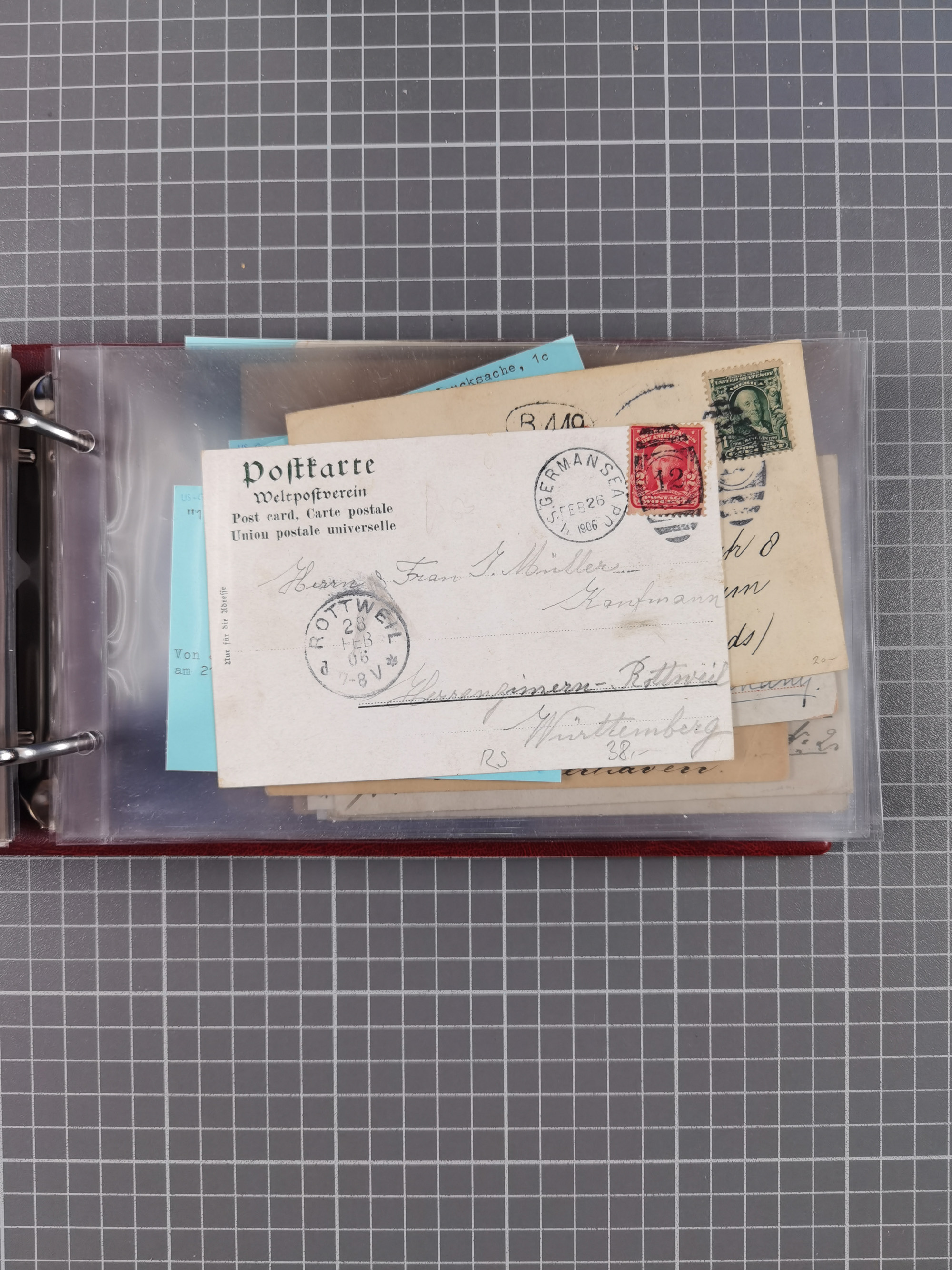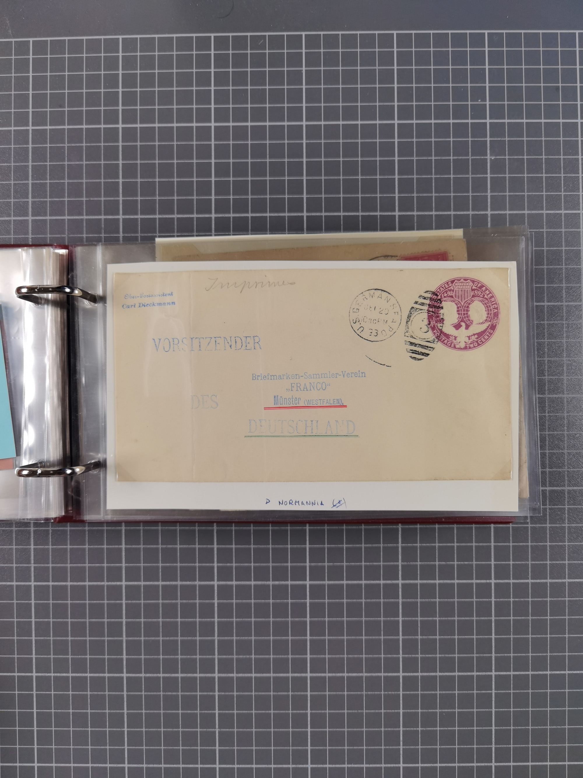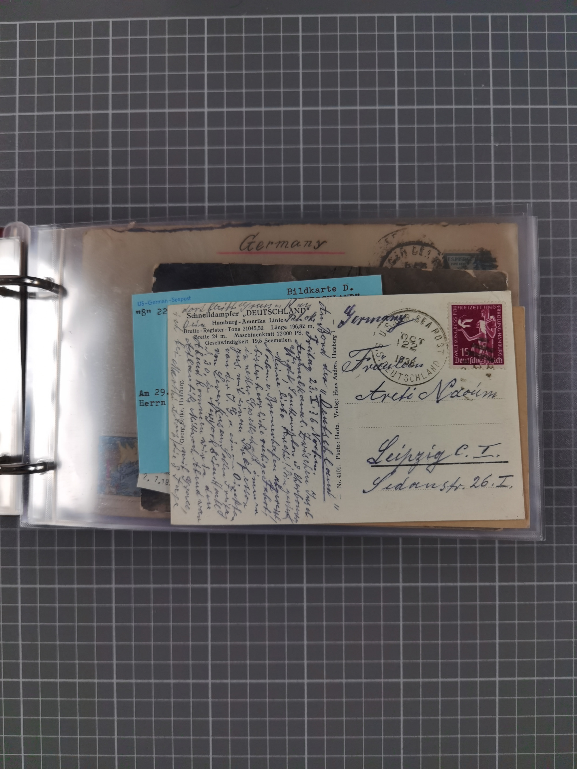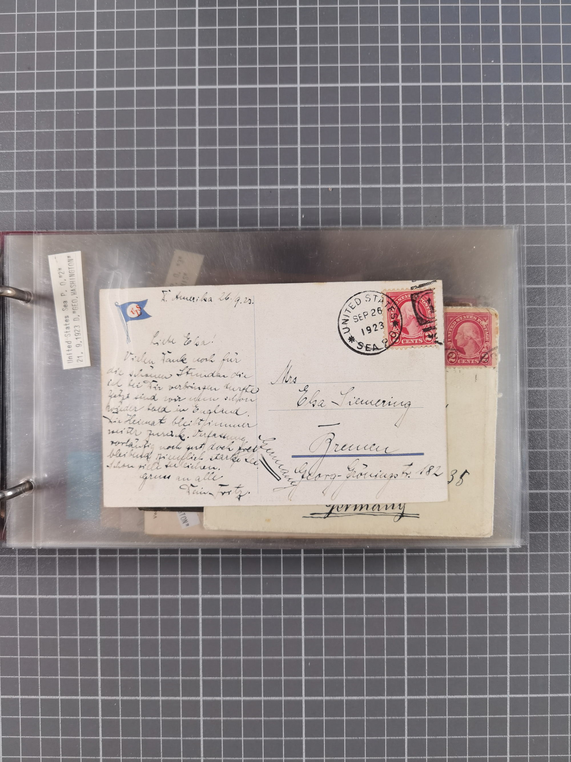 1892/1939, umfangreiche Sammlung “U.S. GERMAN SEA POST” mit ca. 400 Briefen, Karten und Ganzsachen, Schwerpunkt vor 1920 mit den Dublex-Stempeln mit Nr. 1-16, dabei verschiedene Verwendungen mit besseren (u.a. auf Briefen/Karten vom D. Reich), 1 R-GSU und weiteren Besonderheiten. Dazu noch einige Schiffs-Ansichtskarten, bei vielen Belegen mit Vermerken zu den Schiffen usw. und meist in guter Erhaltung. Eine in diesem Umfang seltene Sammlung in sechs Alben, ex Steinmeyer