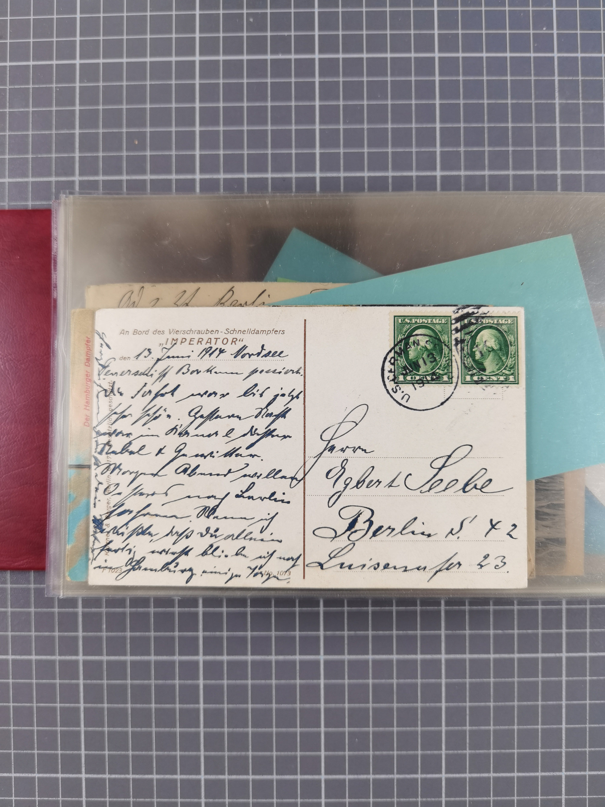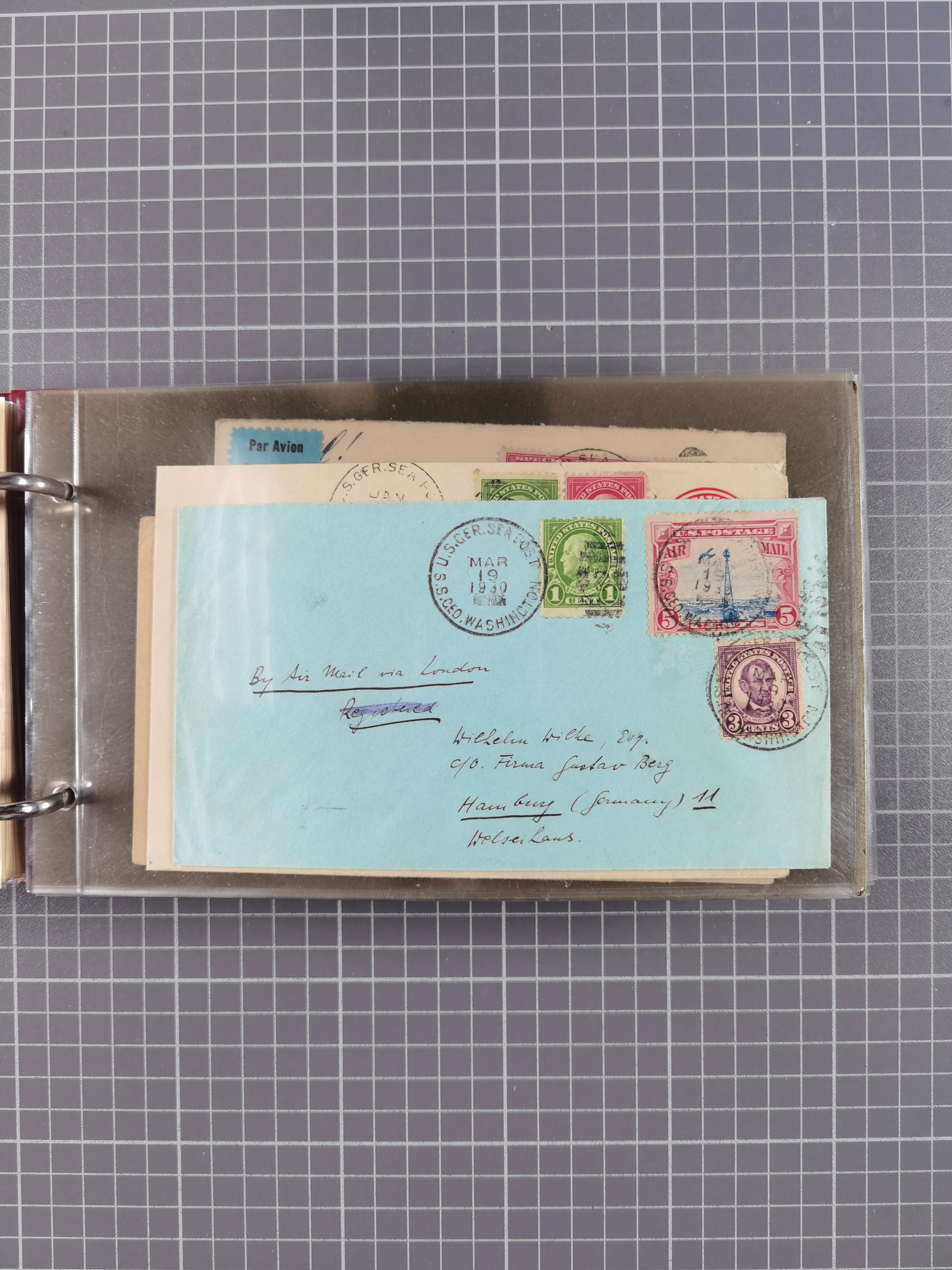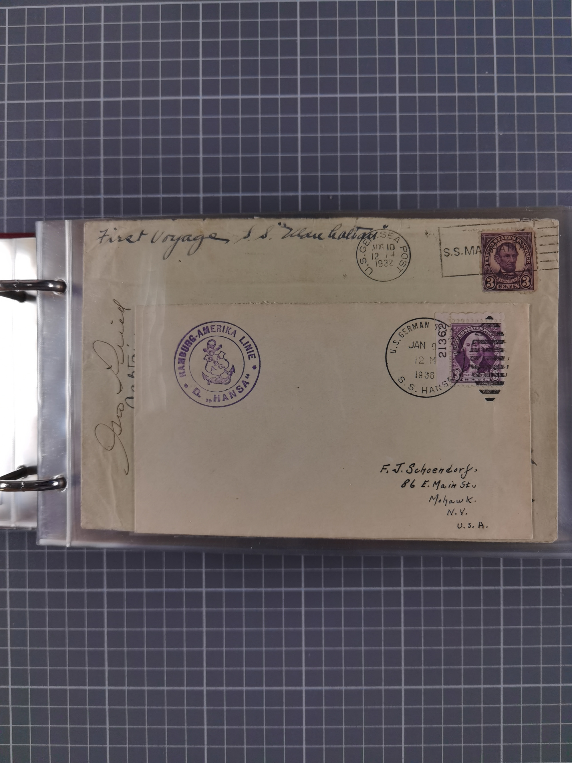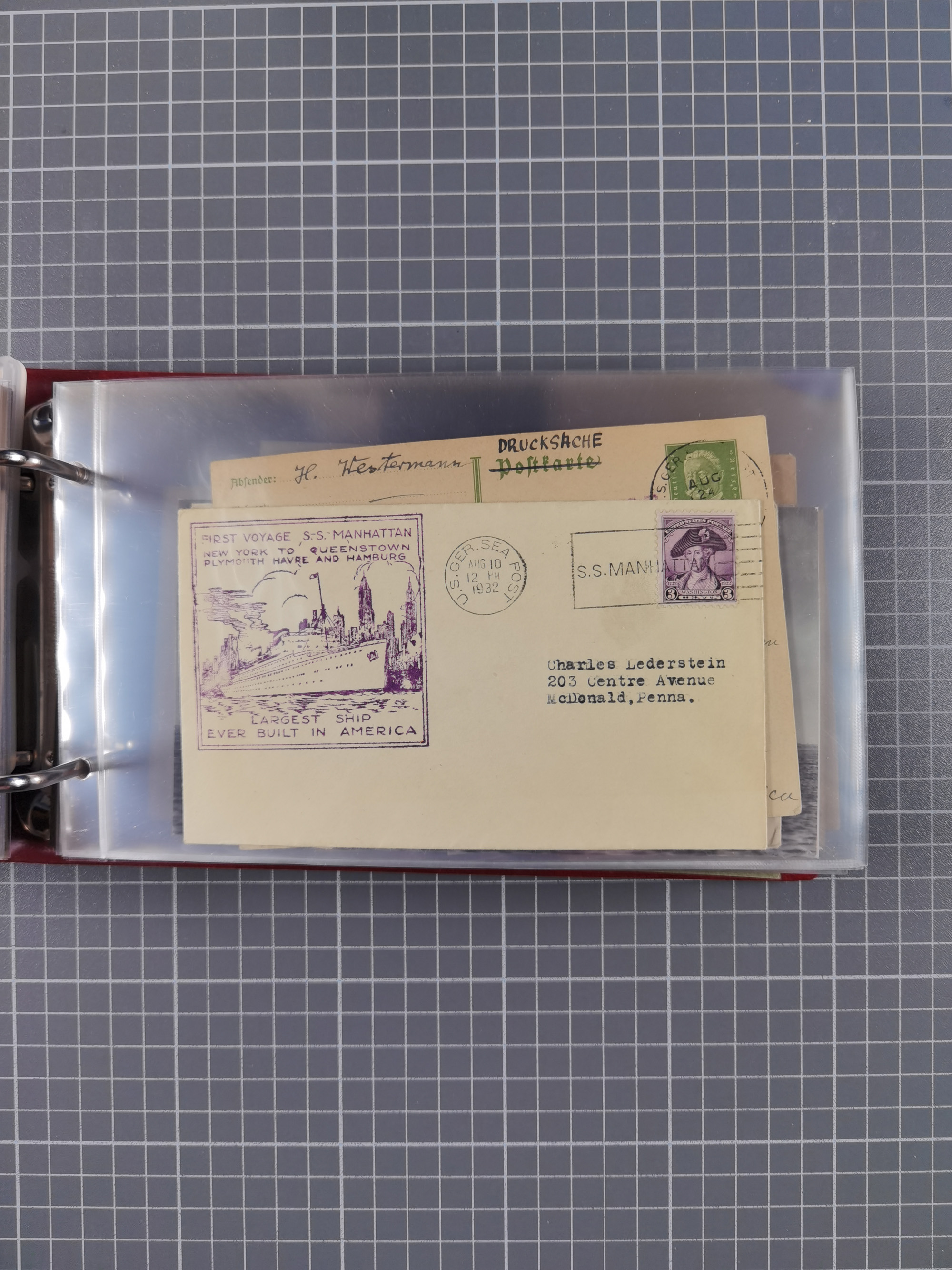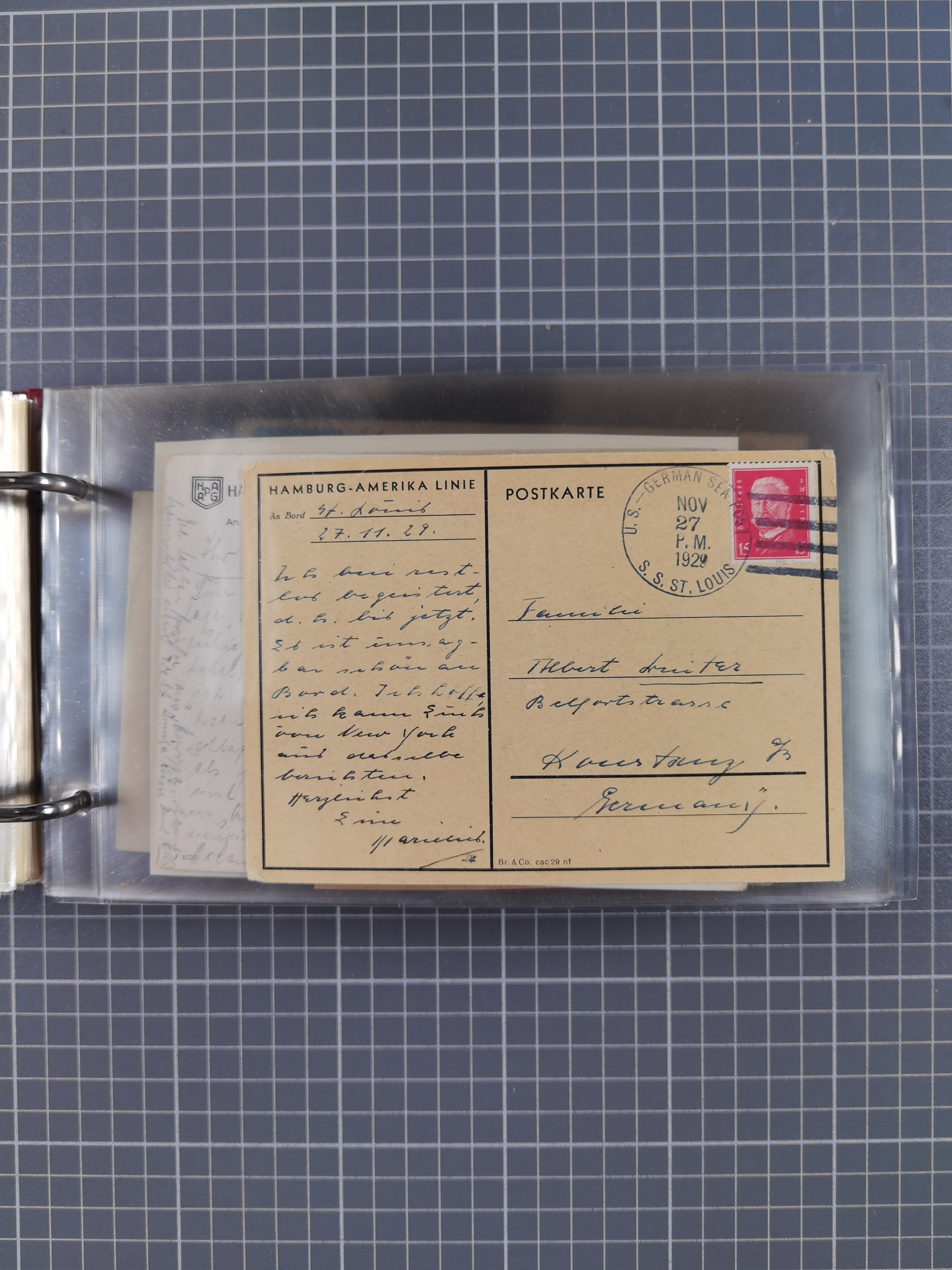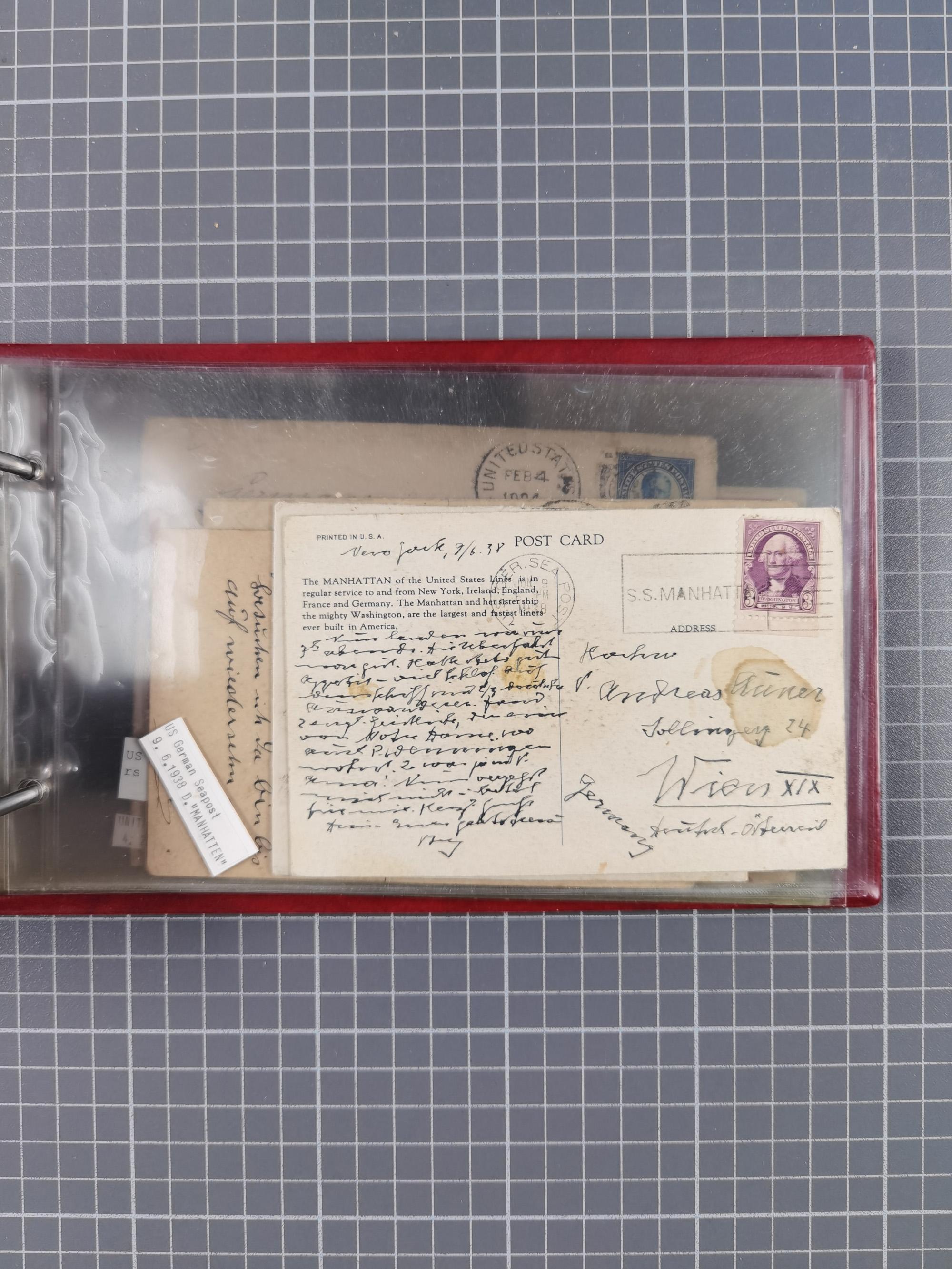 1892/1939, umfangreiche Sammlung “U.S. GERMAN SEA POST” mit ca. 400 Briefen, Karten und Ganzsachen, Schwerpunkt vor 1920 mit den Dublex-Stempeln mit Nr. 1-16, dabei verschiedene Verwendungen mit besseren (u.a. auf Briefen/Karten vom D. Reich), 1 R-GSU und weiteren Besonderheiten. Dazu noch einige Schiffs-Ansichtskarten, bei vielen Belegen mit Vermerken zu den Schiffen usw. und meist in guter Erhaltung. Eine in diesem Umfang seltene Sammlung in sechs Alben, ex Steinmeyer