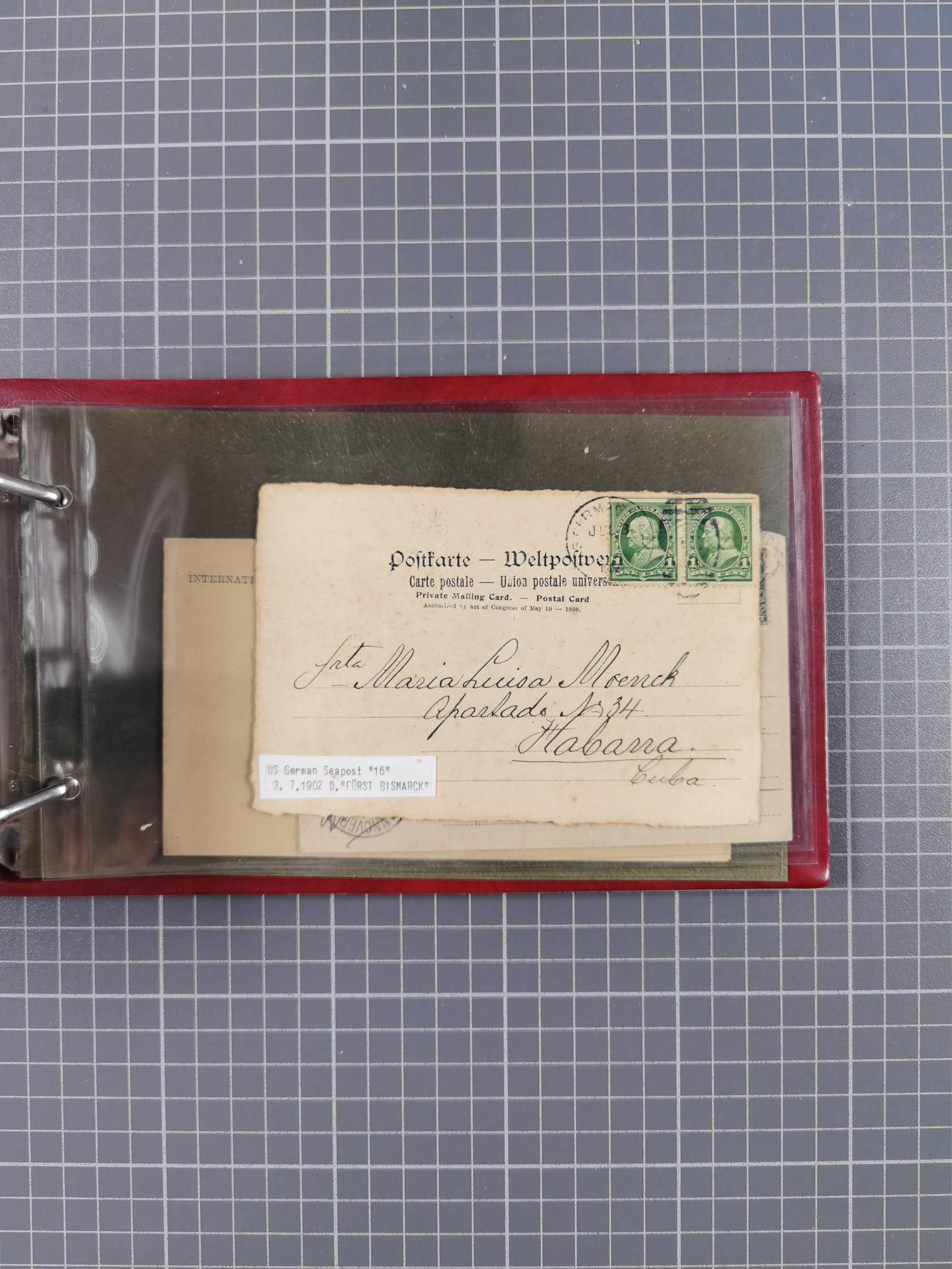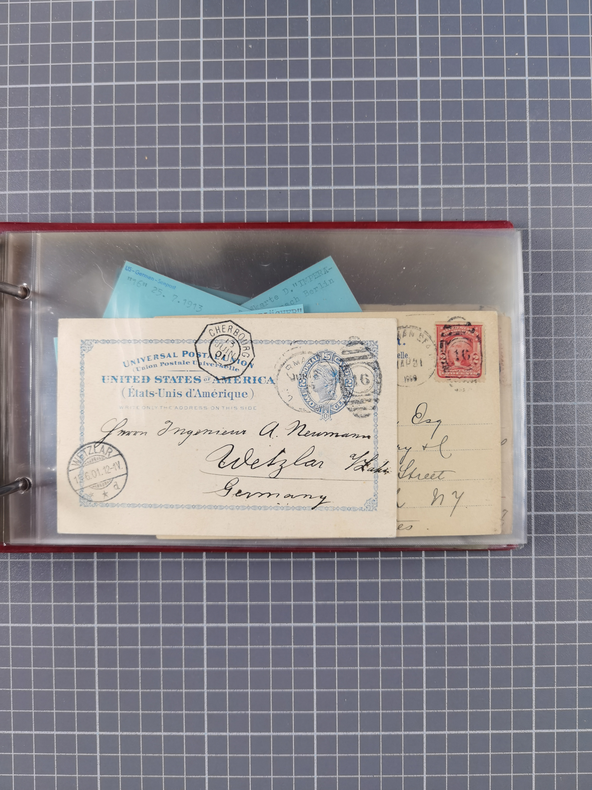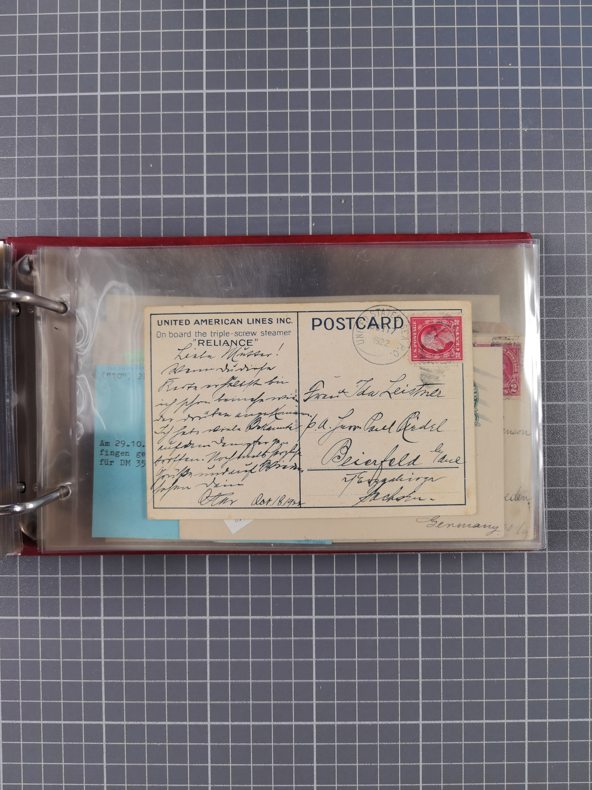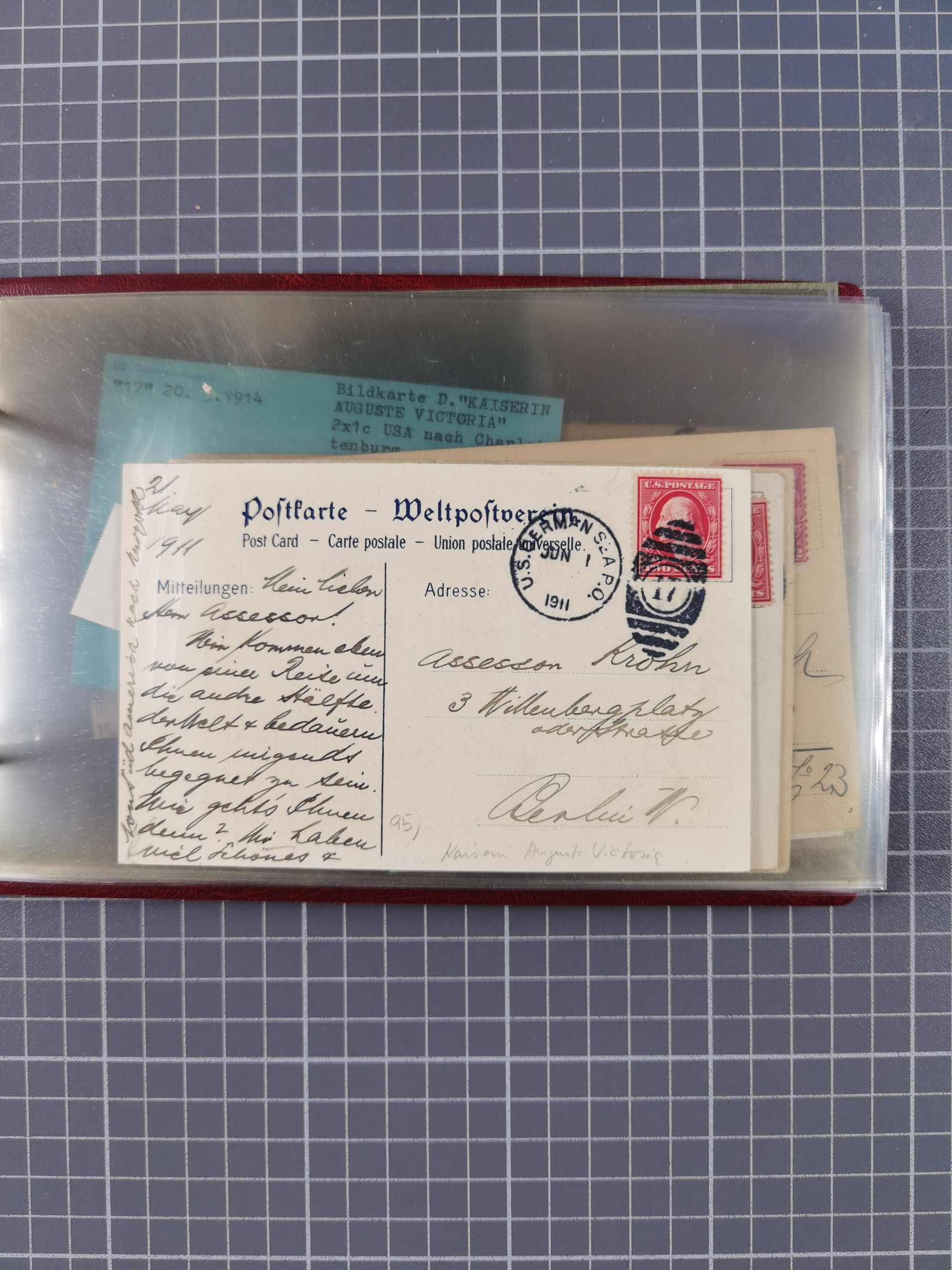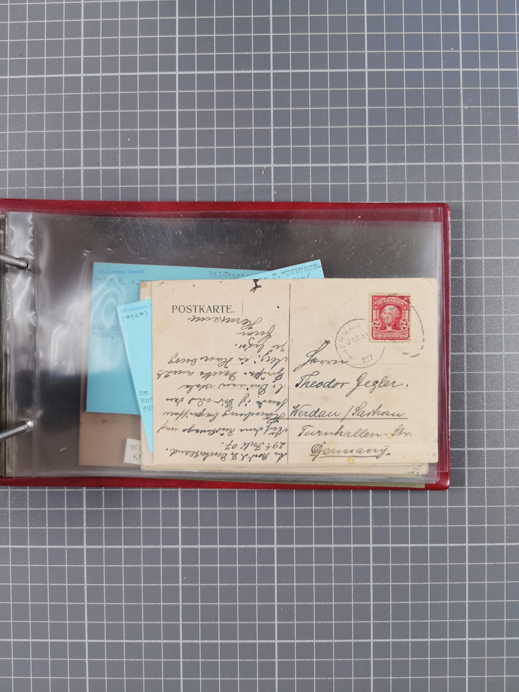 1892/1939, umfangreiche Sammlung “U.S. GERMAN SEA POST” mit ca. 400 Briefen, Karten und Ganzsachen, Schwerpunkt vor 1920 mit den Dublex-Stempeln mit Nr. 1-16, dabei verschiedene Verwendungen mit besseren (u.a. auf Briefen/Karten vom D. Reich), 1 R-GSU und weiteren Besonderheiten. Dazu noch einige Schiffs-Ansichtskarten, bei vielen Belegen mit Vermerken zu den Schiffen usw. und meist in guter Erhaltung. Eine in diesem Umfang seltene Sammlung in sechs Alben, ex Steinmeyer