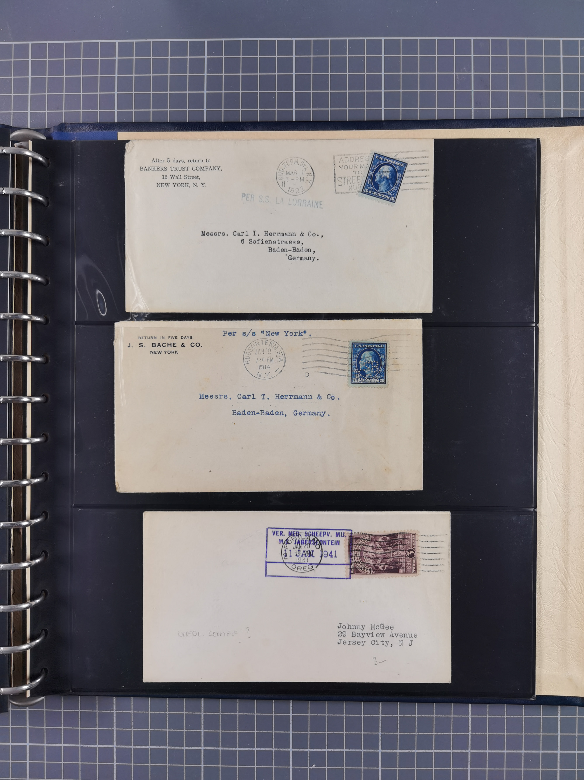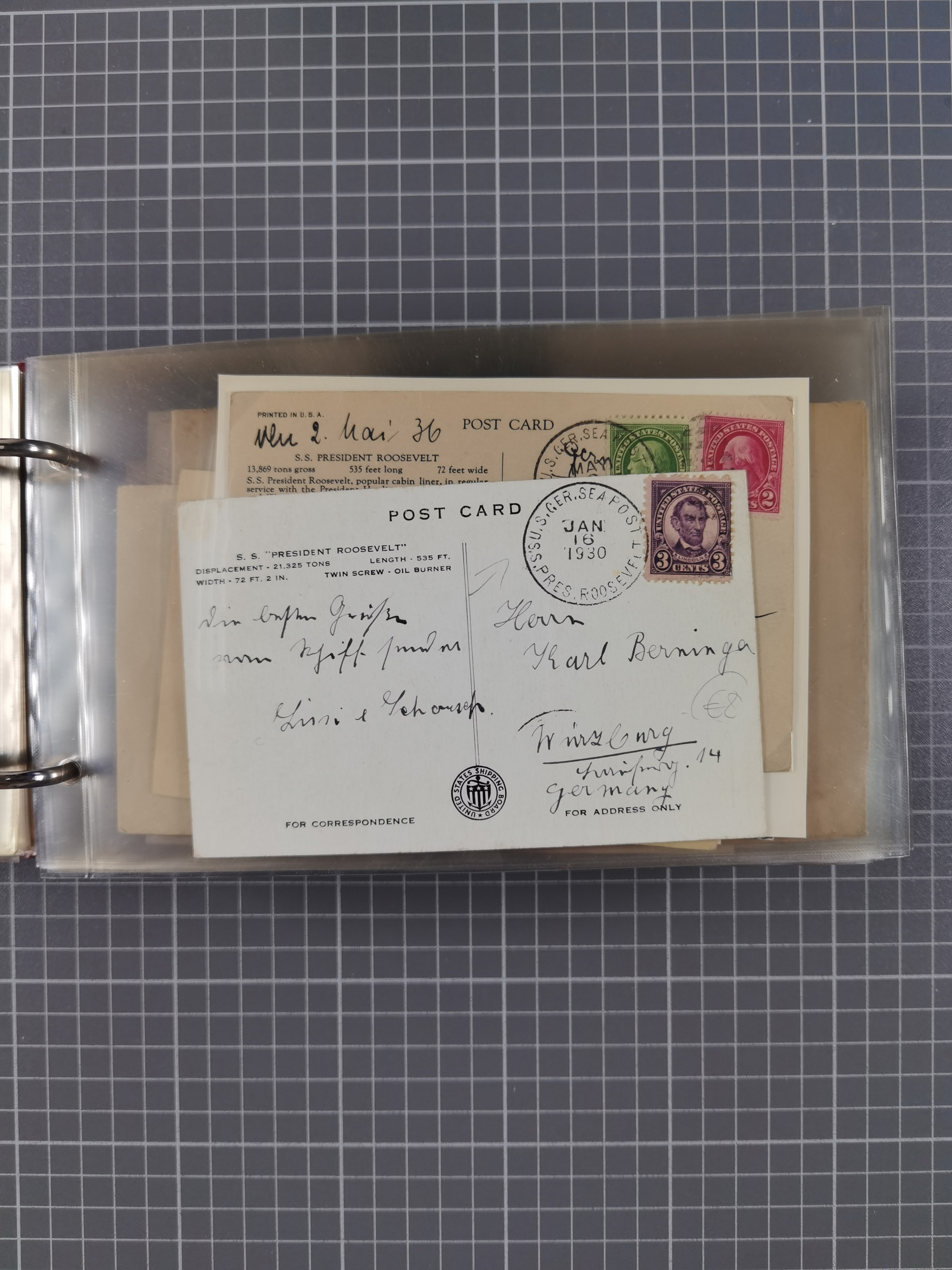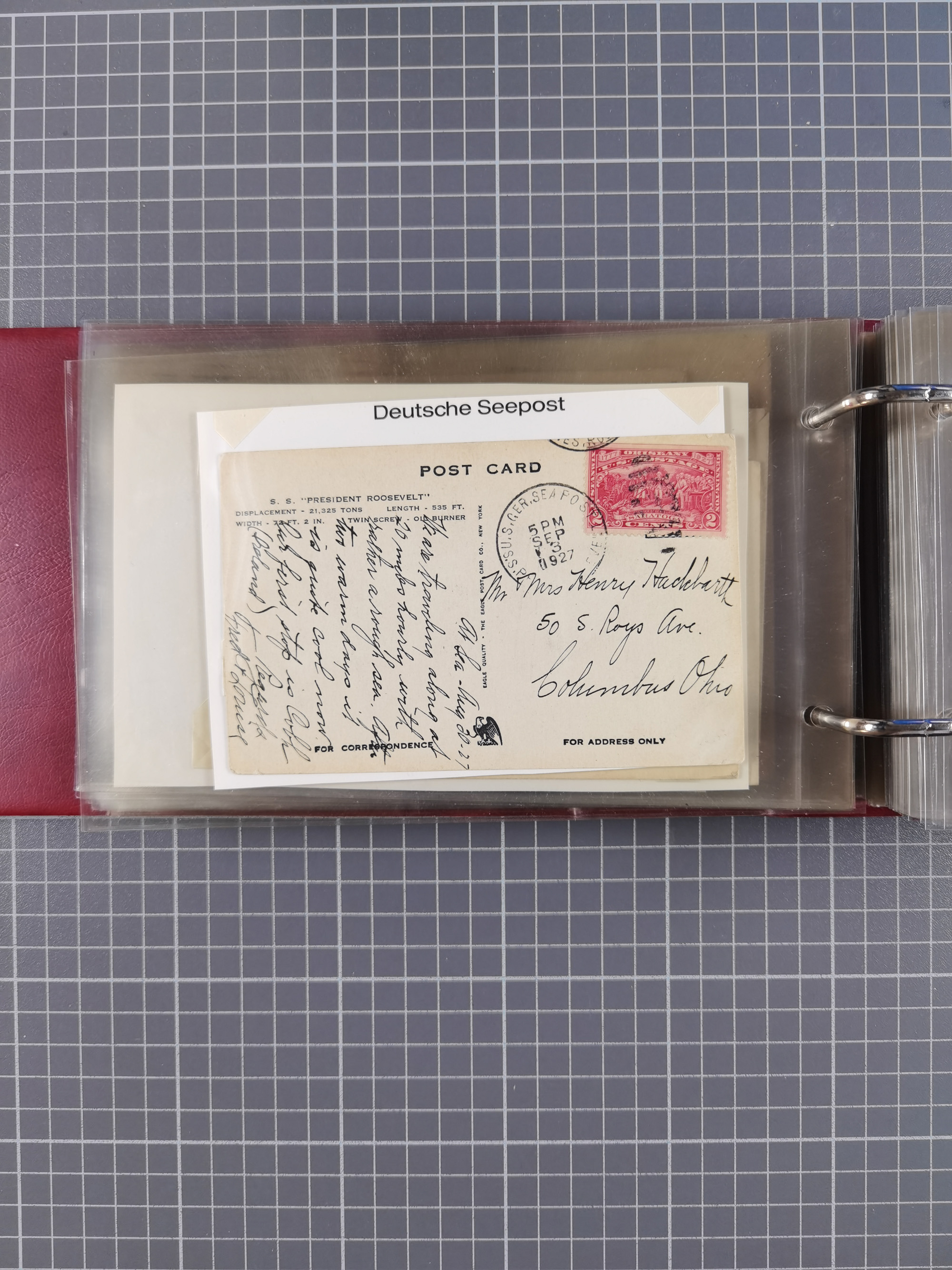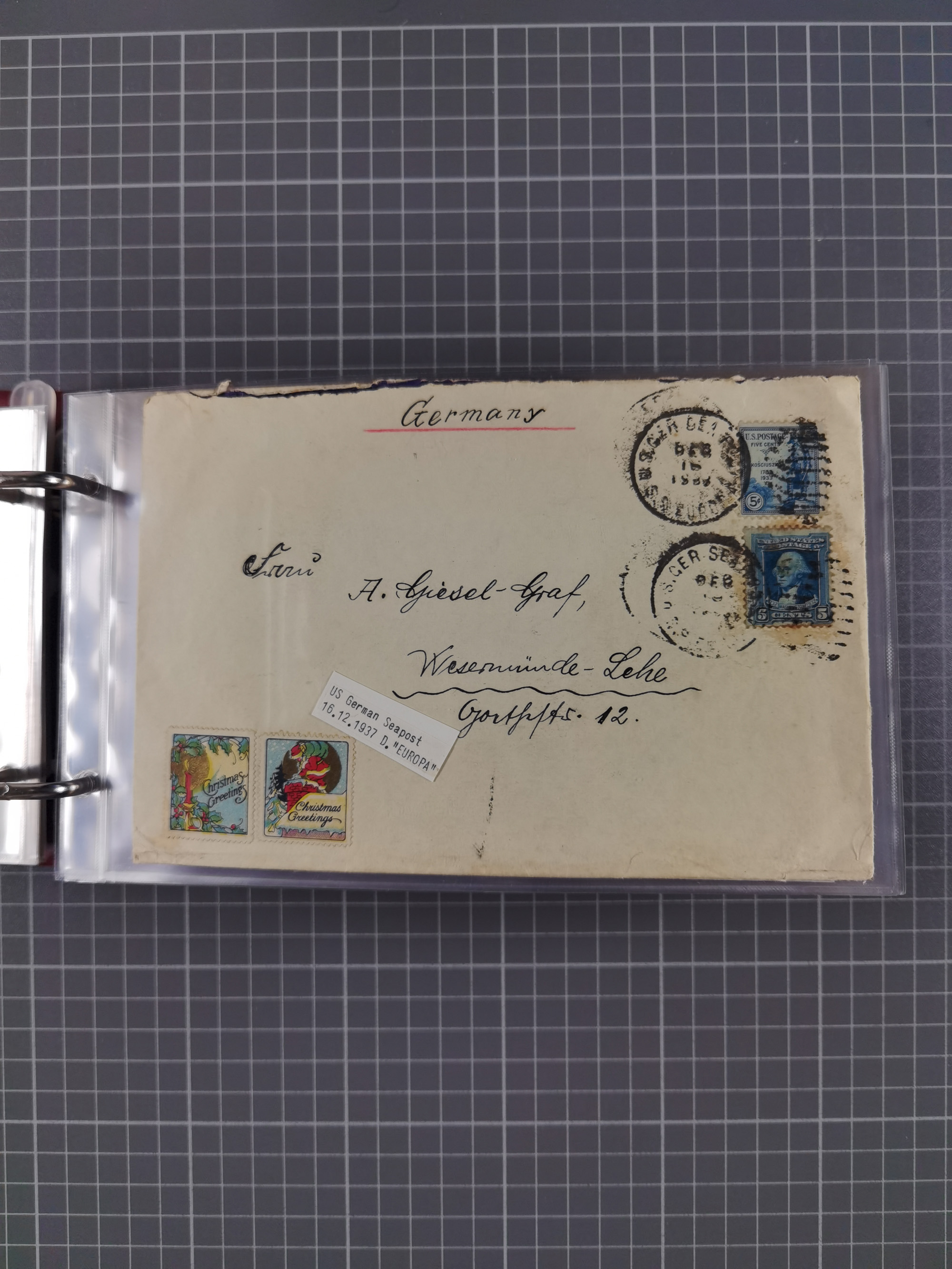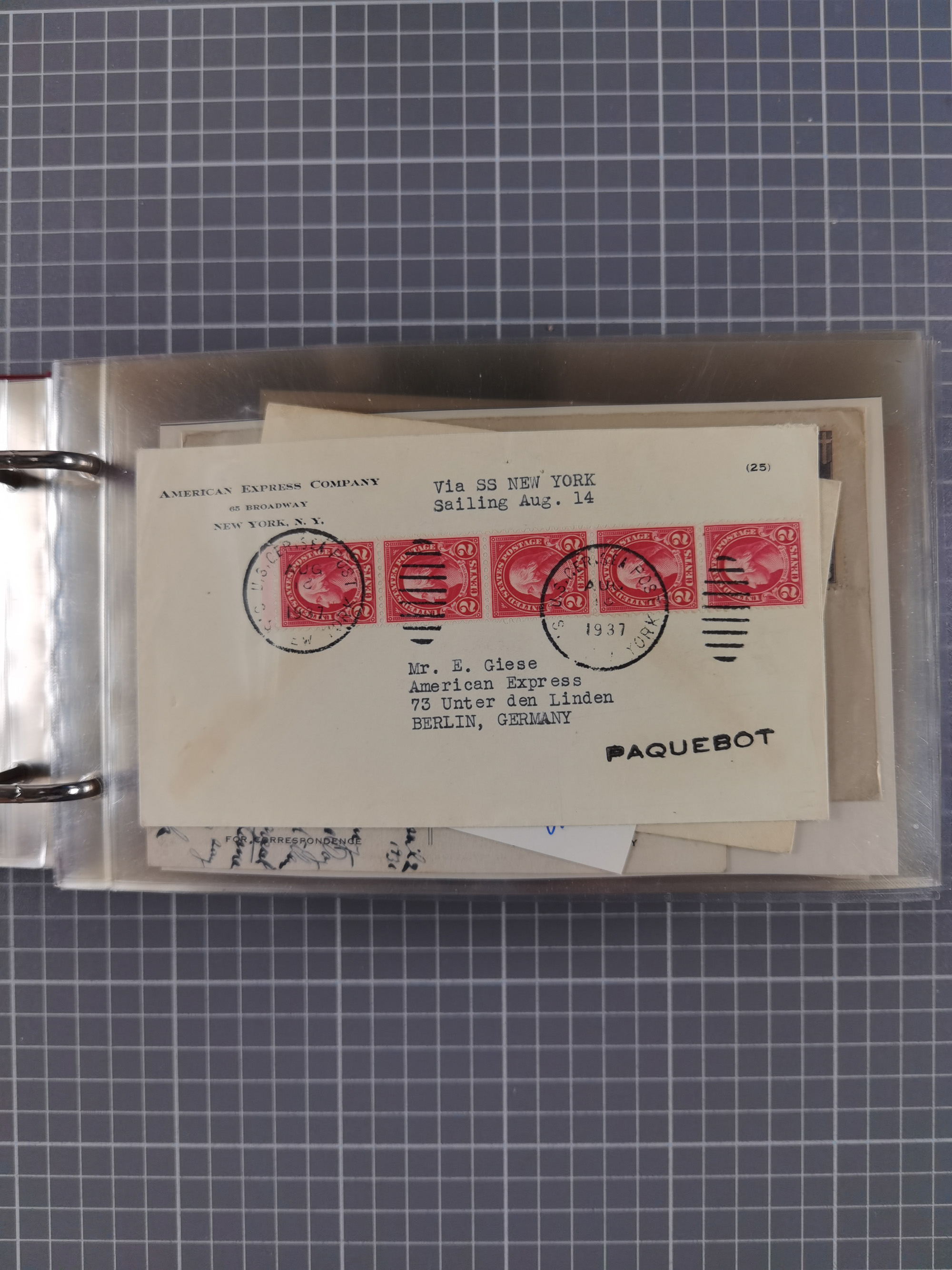 1892/1939, umfangreiche Sammlung “U.S. GERMAN SEA POST” mit ca. 400 Briefen, Karten und Ganzsachen, Schwerpunkt vor 1920 mit den Dublex-Stempeln mit Nr. 1-16, dabei verschiedene Verwendungen mit besseren (u.a. auf Briefen/Karten vom D. Reich), 1 R-GSU und weiteren Besonderheiten. Dazu noch einige Schiffs-Ansichtskarten, bei vielen Belegen mit Vermerken zu den Schiffen usw. und meist in guter Erhaltung. Eine in diesem Umfang seltene Sammlung in sechs Alben, ex Steinmeyer