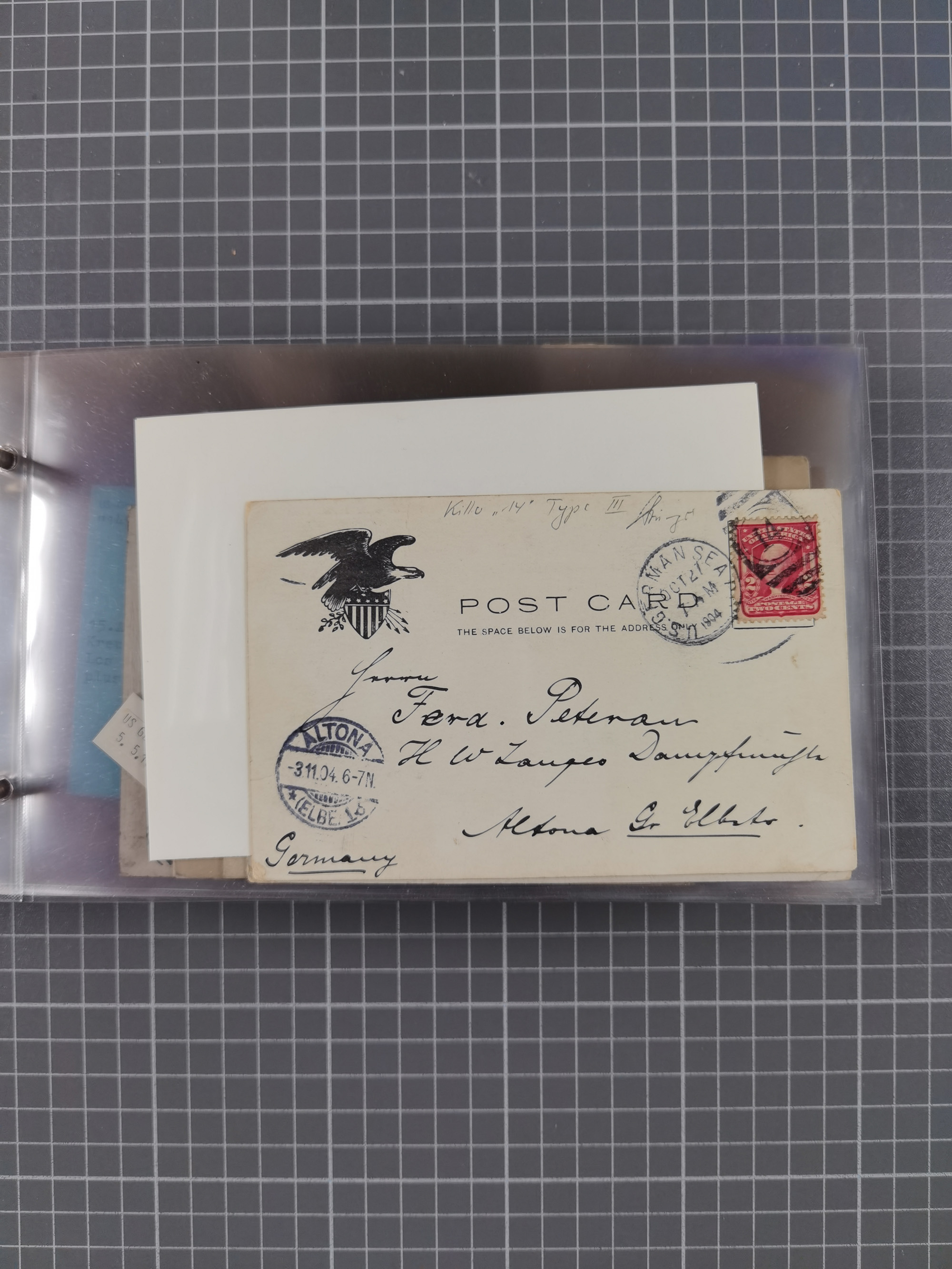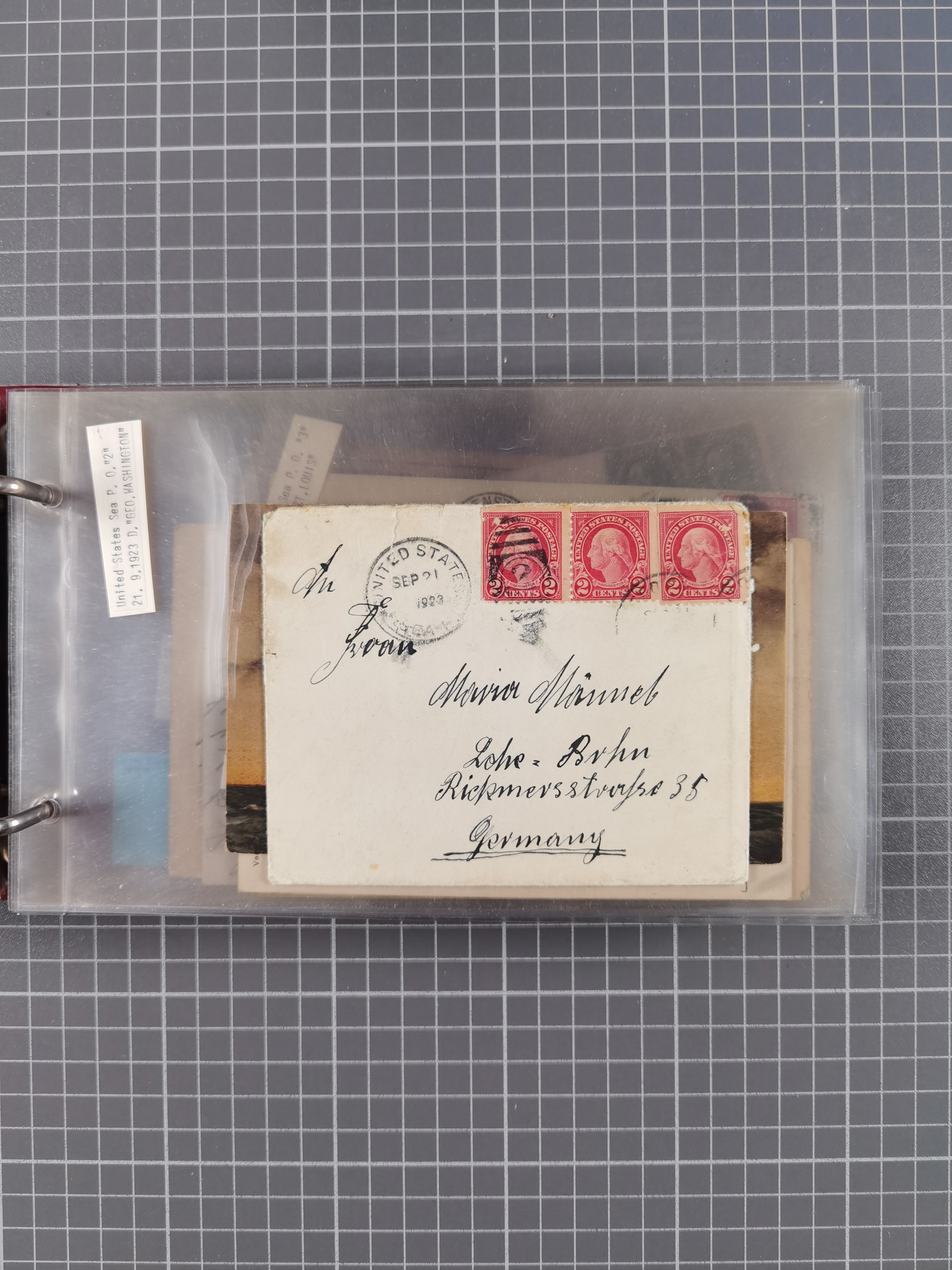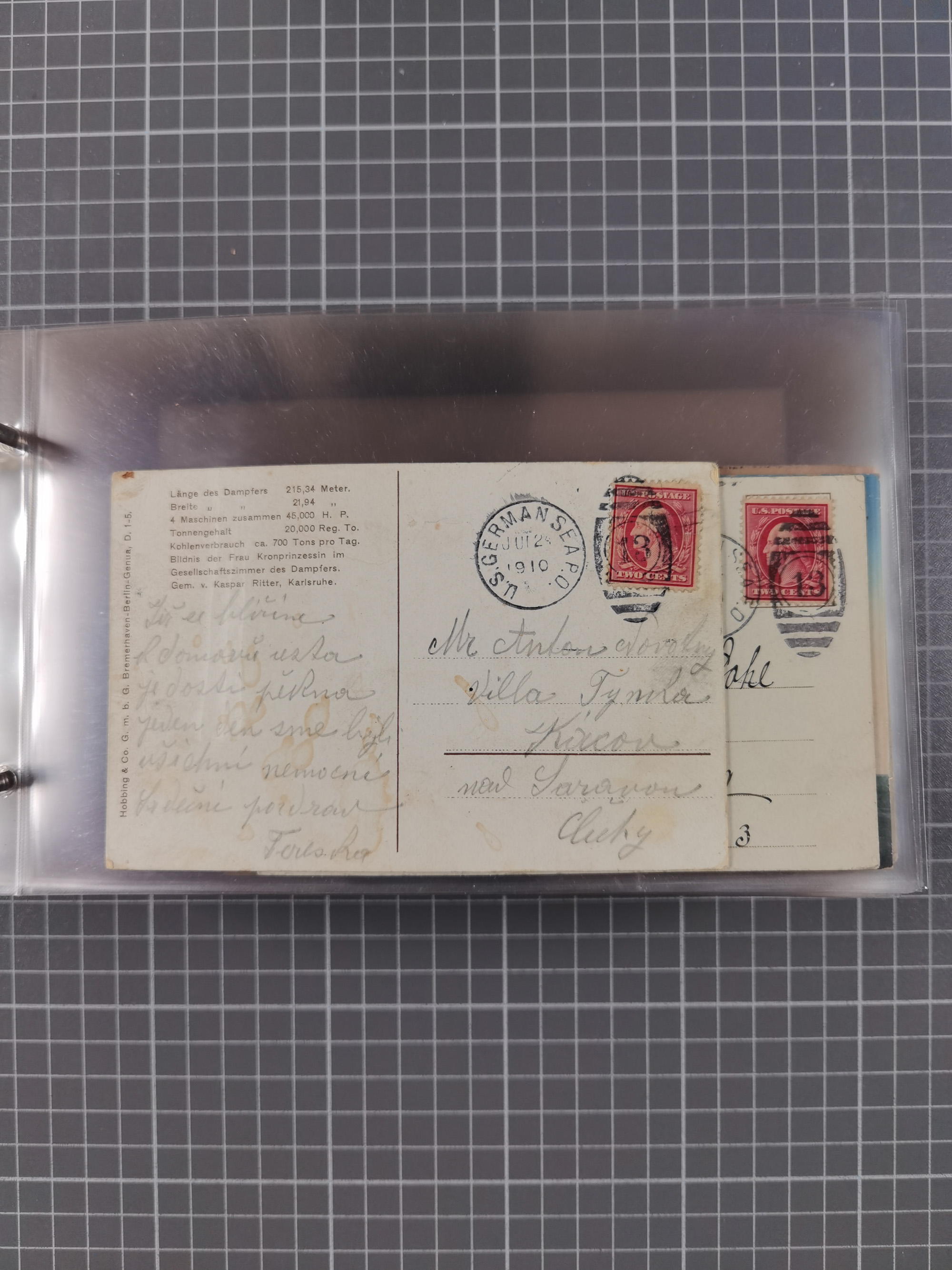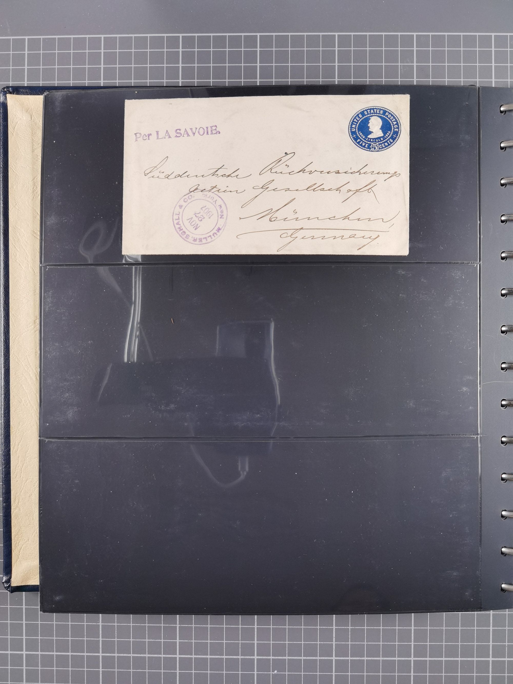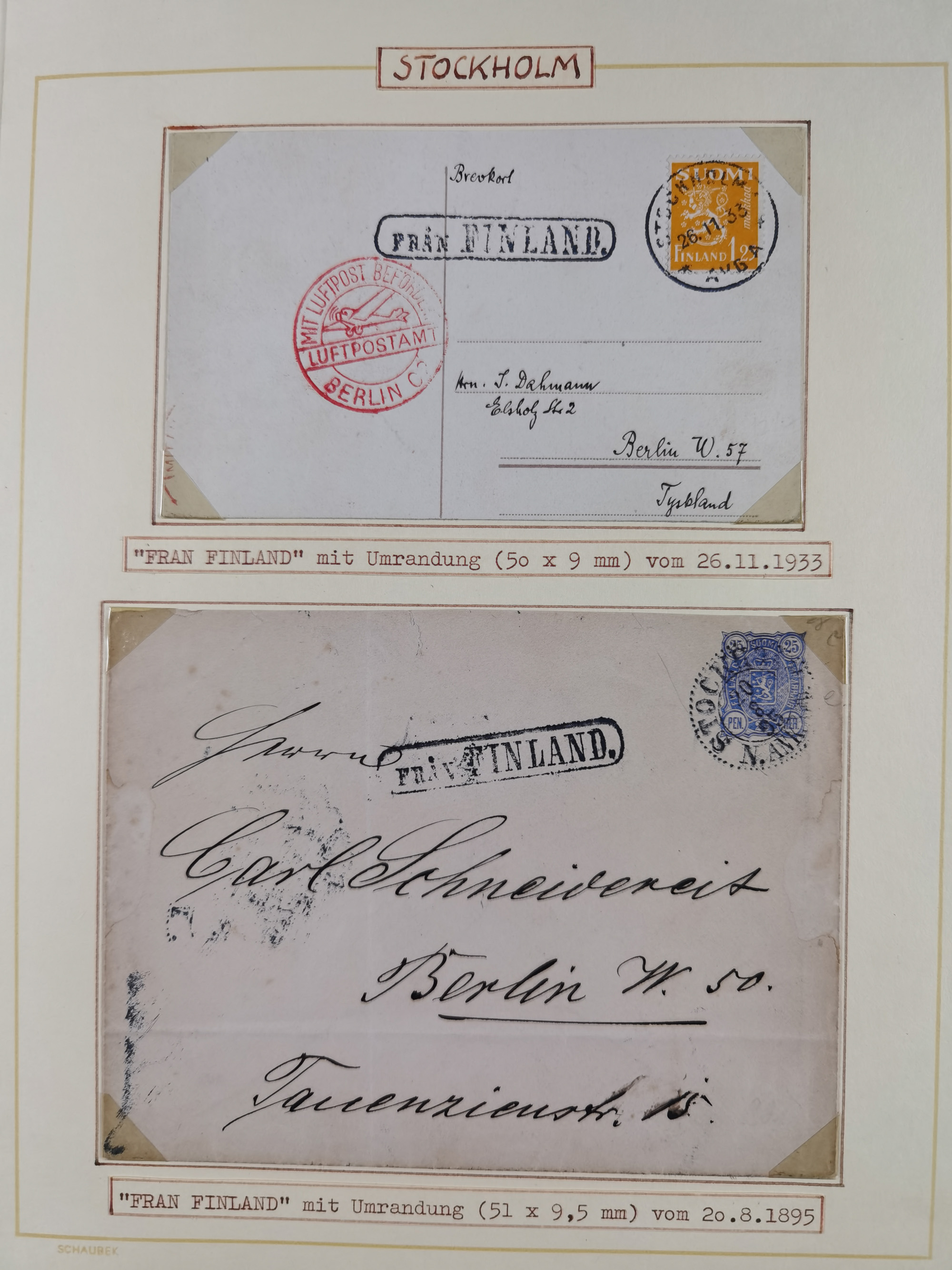 1892/1939, umfangreiche Sammlung “U.S. GERMAN SEA POST” mit ca. 400 Briefen, Karten und Ganzsachen, Schwerpunkt vor 1920 mit den Dublex-Stempeln mit Nr. 1-16, dabei verschiedene Verwendungen mit besseren (u.a. auf Briefen/Karten vom D. Reich), 1 R-GSU und weiteren Besonderheiten. Dazu noch einige Schiffs-Ansichtskarten, bei vielen Belegen mit Vermerken zu den Schiffen usw. und meist in guter Erhaltung. Eine in diesem Umfang seltene Sammlung in sechs Alben, ex Steinmeyer