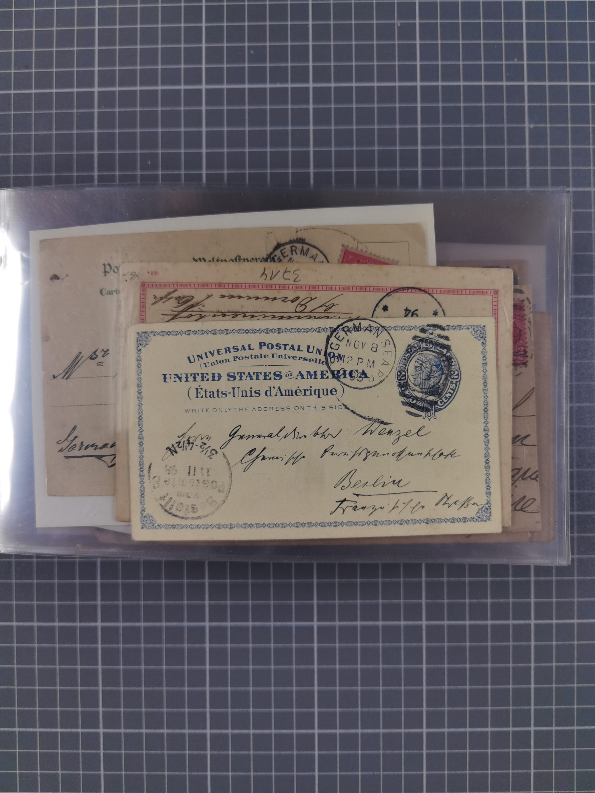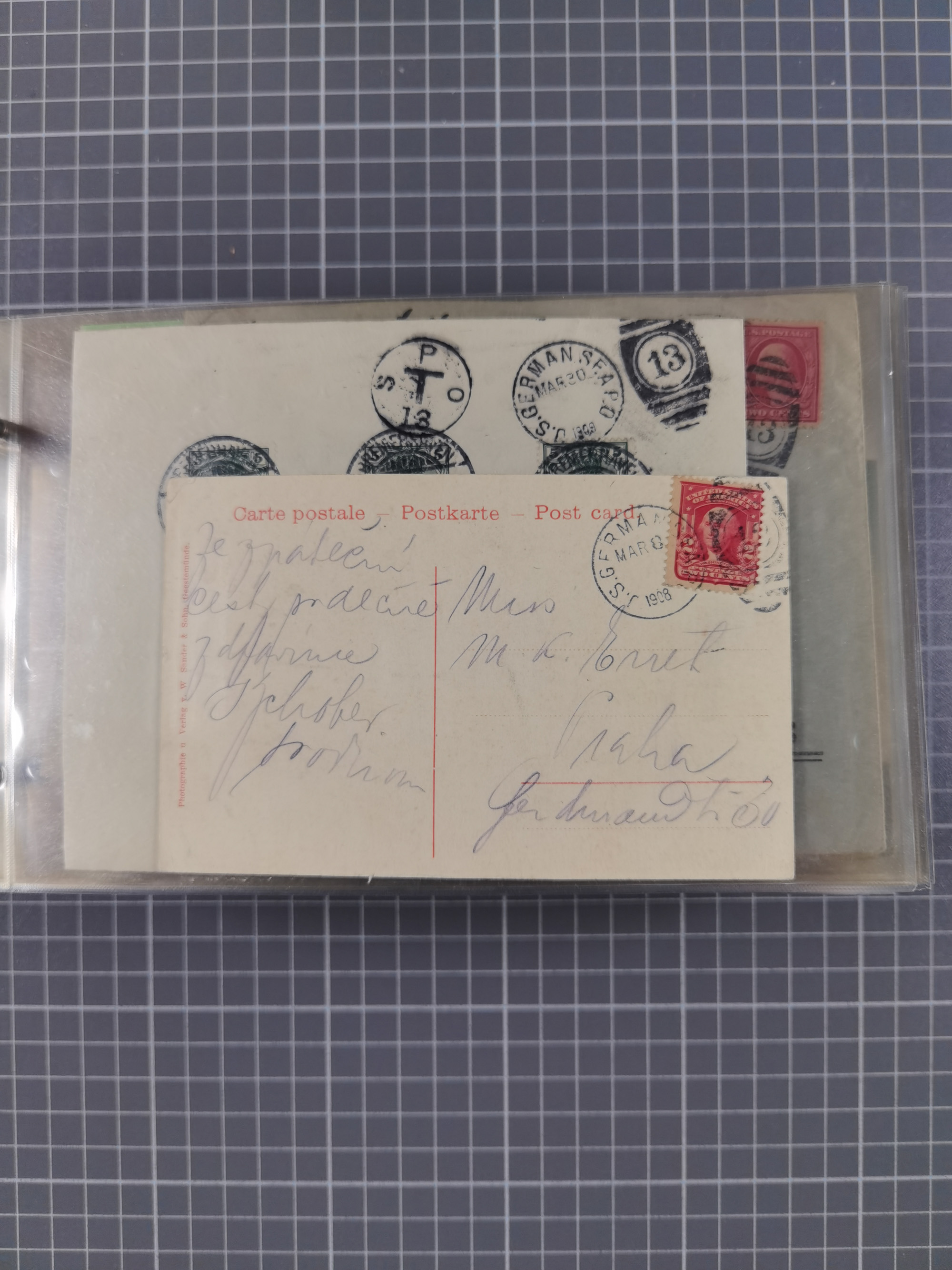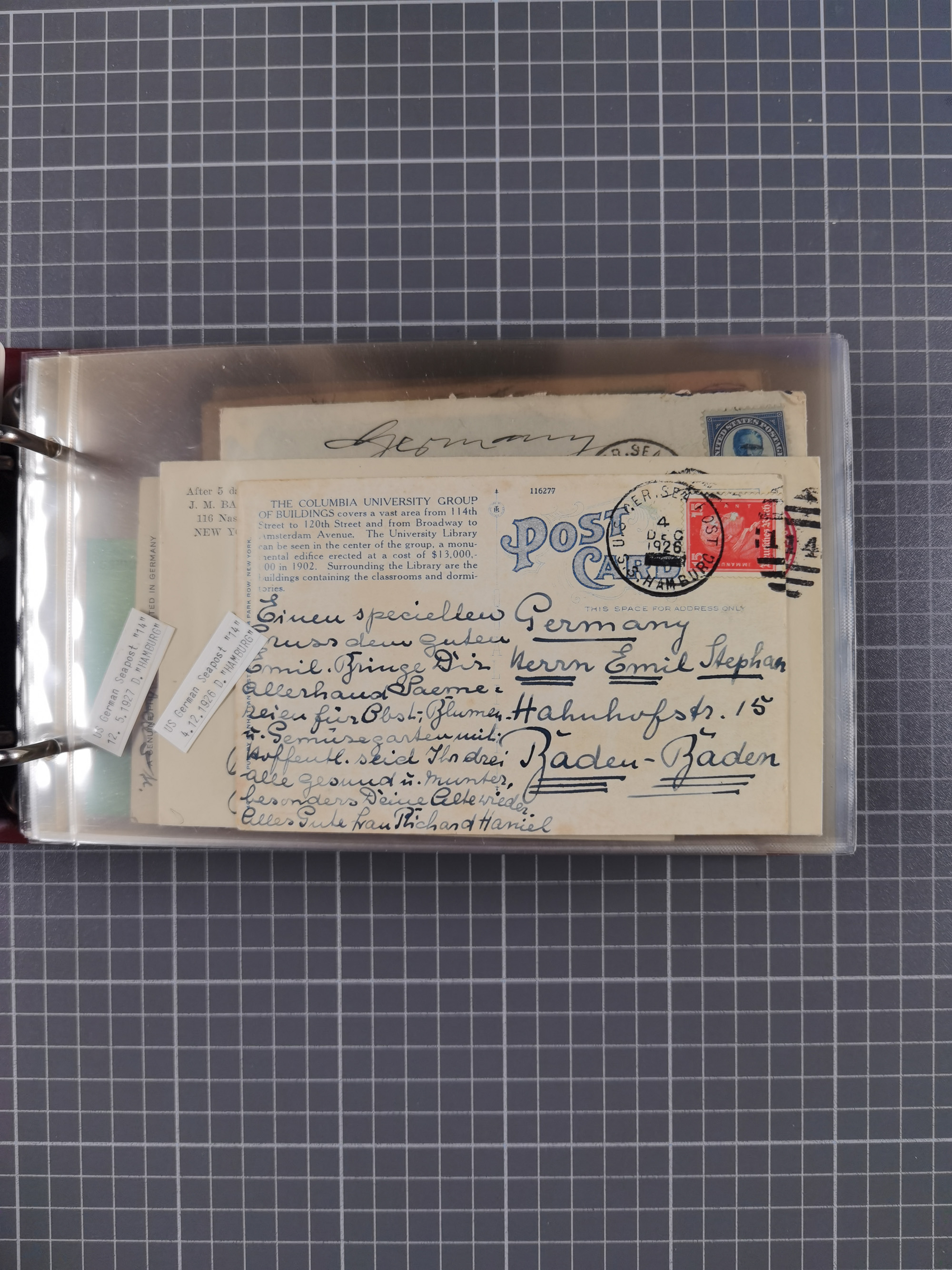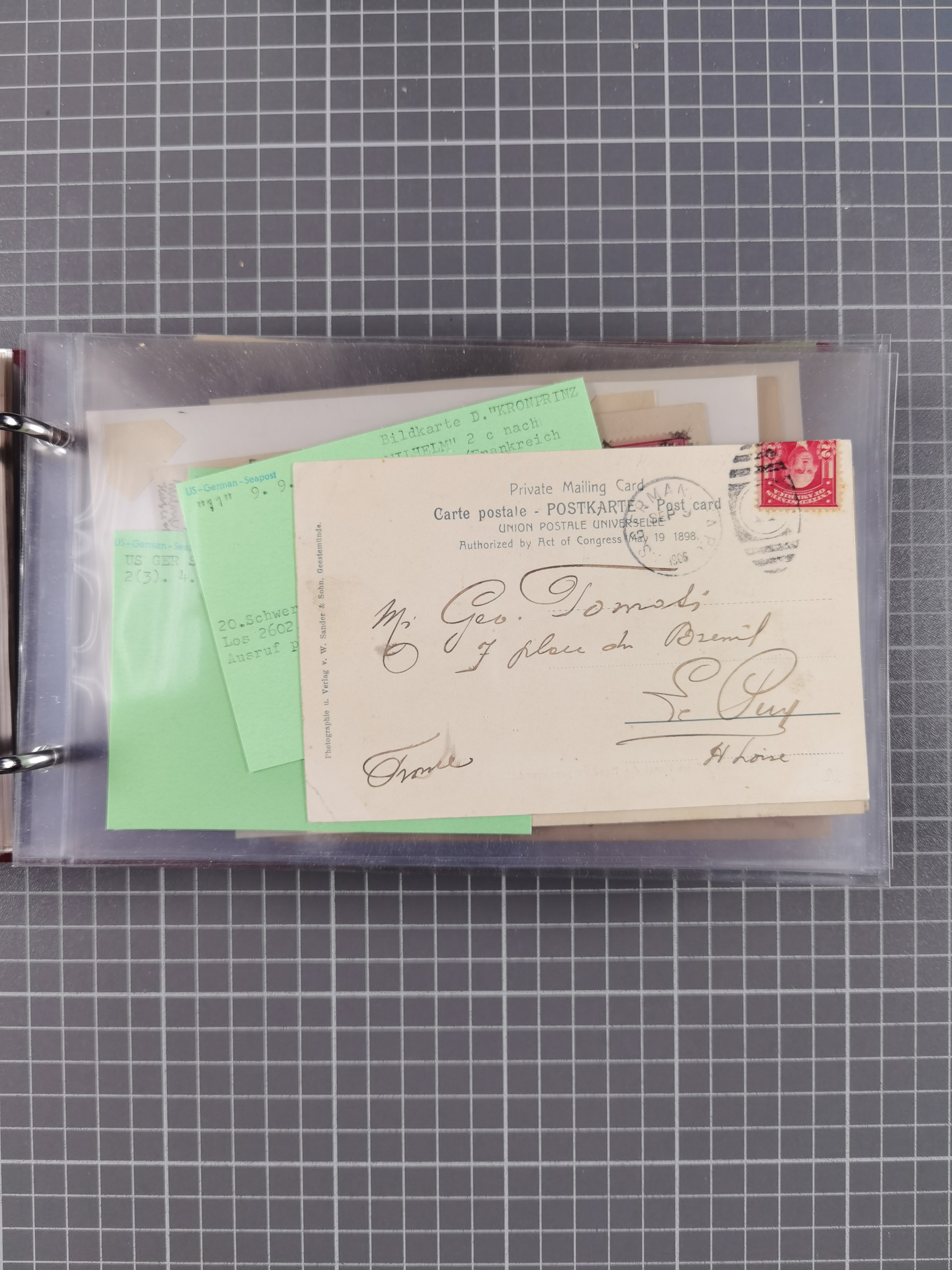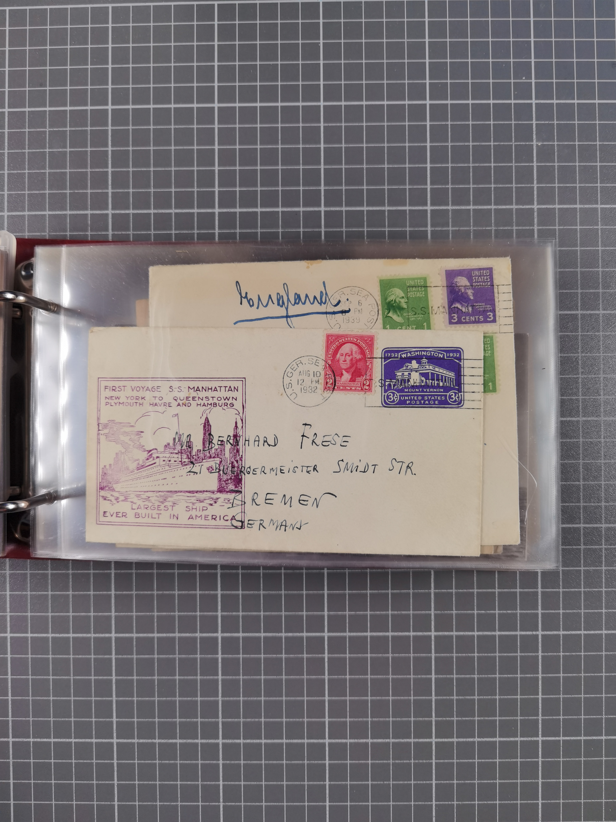 1892/1939, umfangreiche Sammlung “U.S. GERMAN SEA POST” mit ca. 400 Briefen, Karten und Ganzsachen, Schwerpunkt vor 1920 mit den Dublex-Stempeln mit Nr. 1-16, dabei verschiedene Verwendungen mit besseren (u.a. auf Briefen/Karten vom D. Reich), 1 R-GSU und weiteren Besonderheiten. Dazu noch einige Schiffs-Ansichtskarten, bei vielen Belegen mit Vermerken zu den Schiffen usw. und meist in guter Erhaltung. Eine in diesem Umfang seltene Sammlung in sechs Alben, ex Steinmeyer