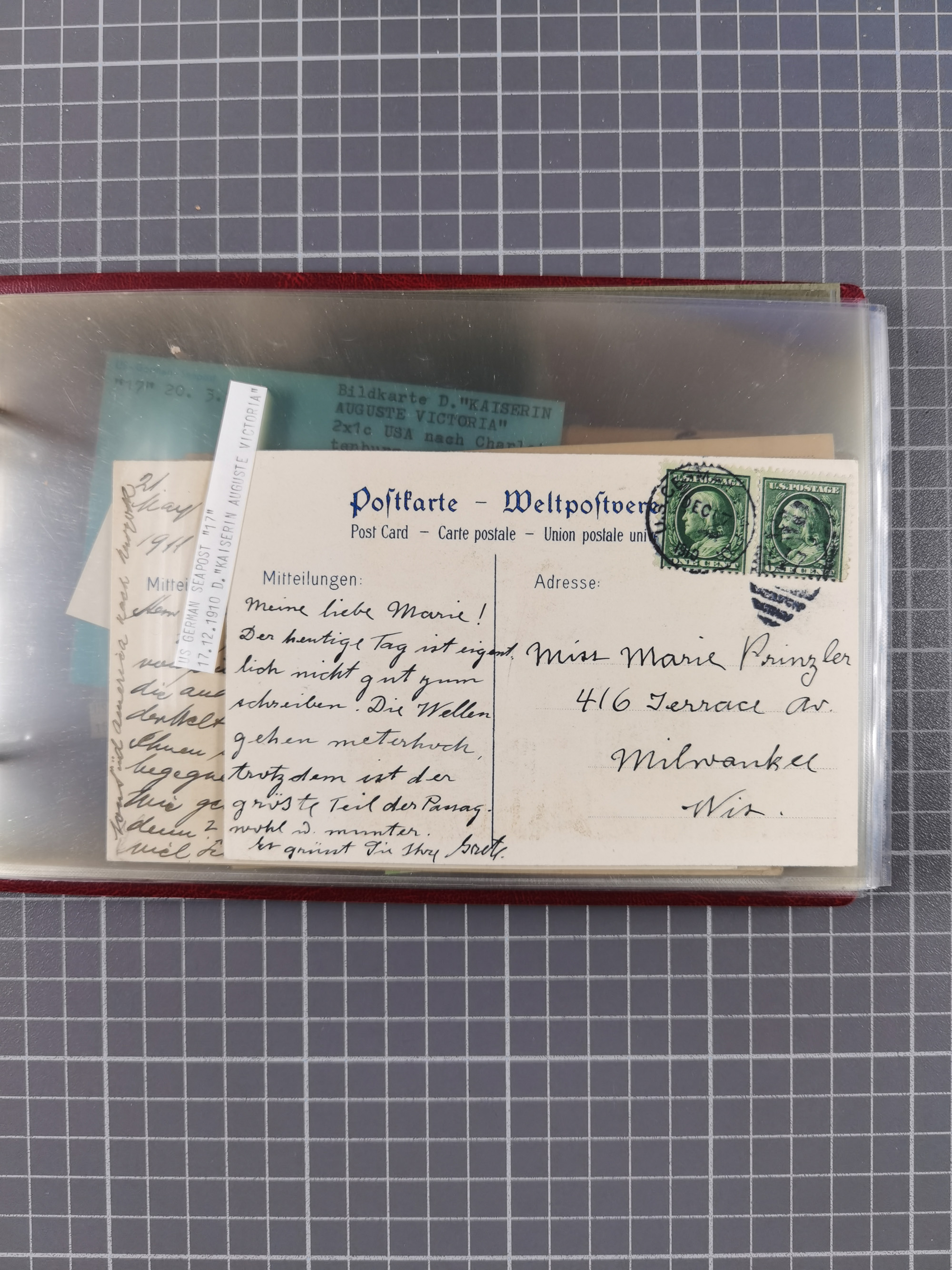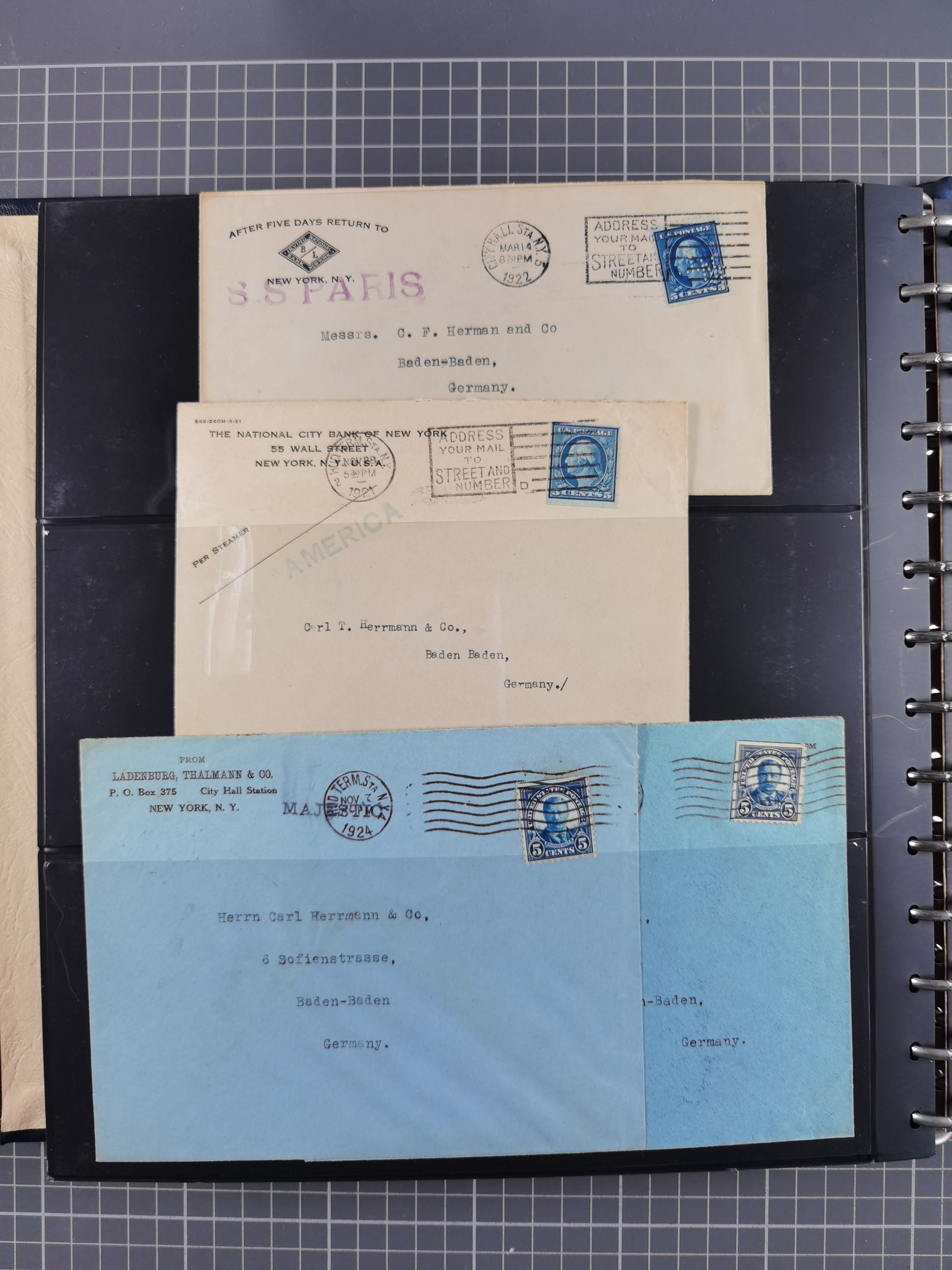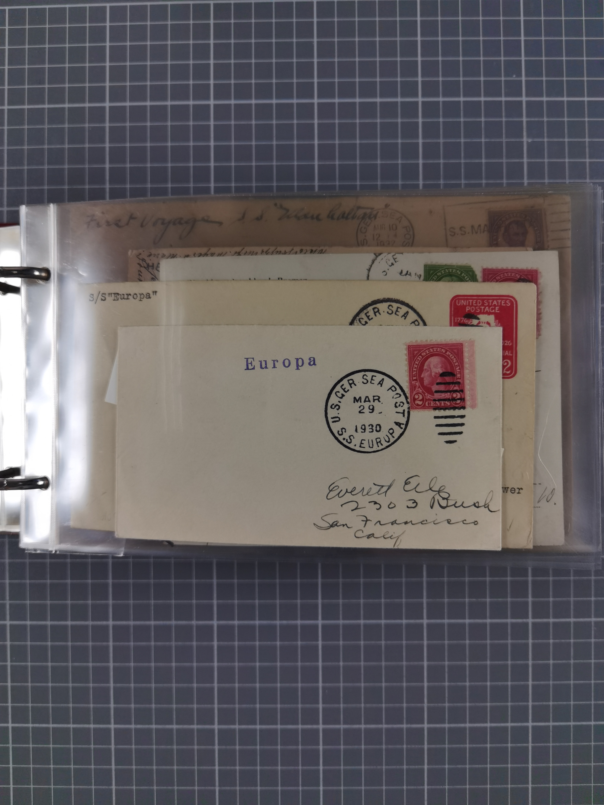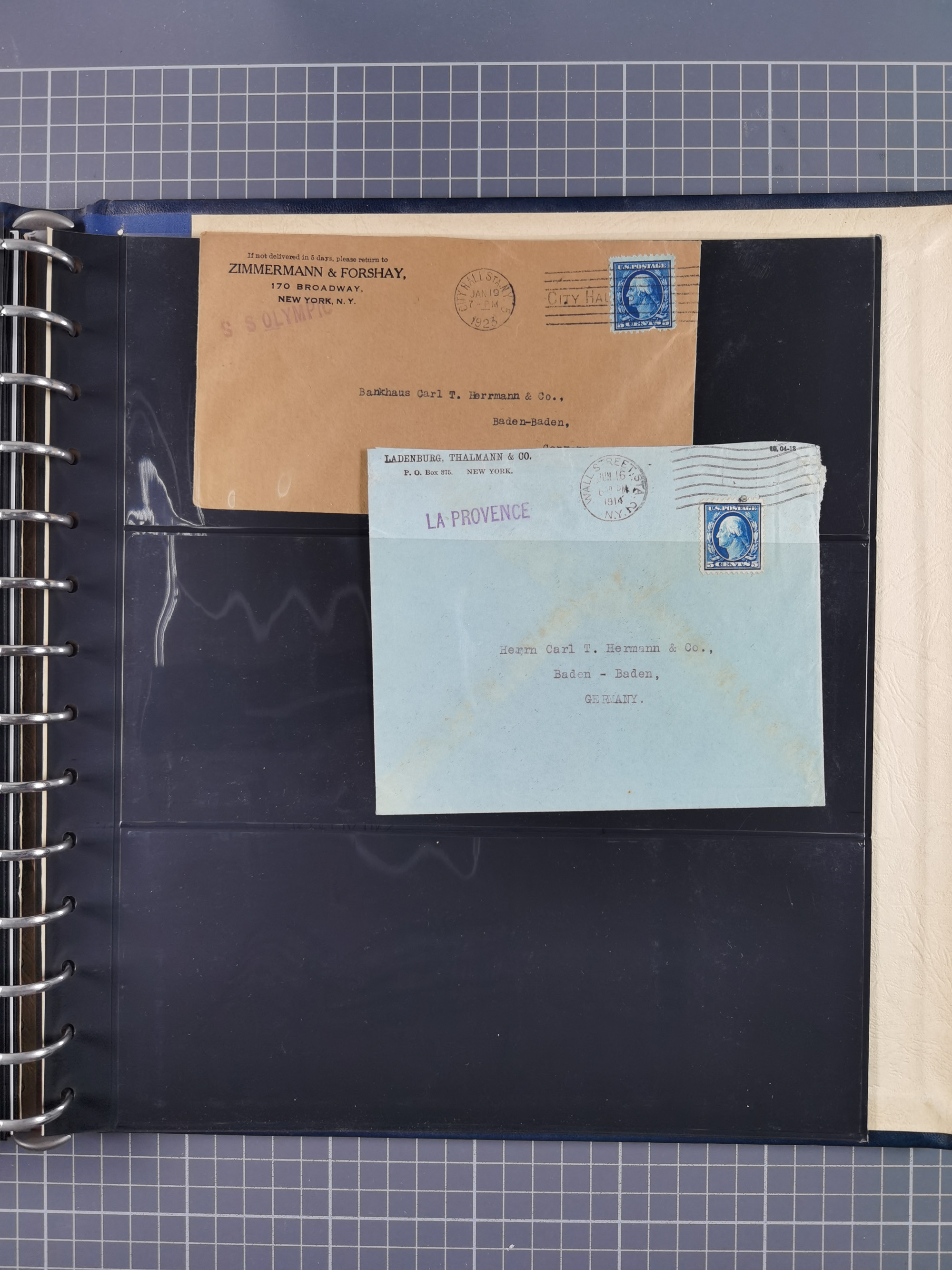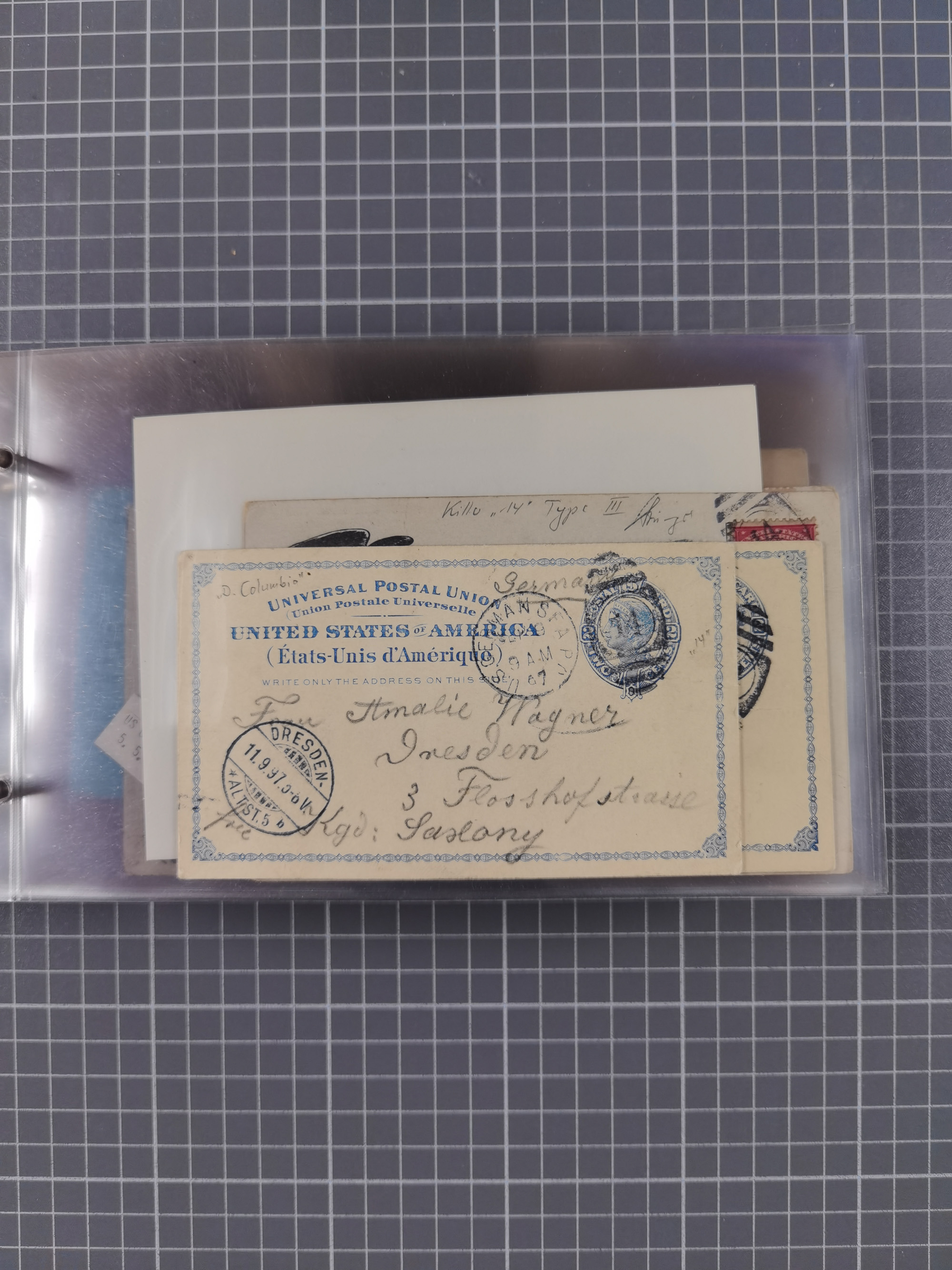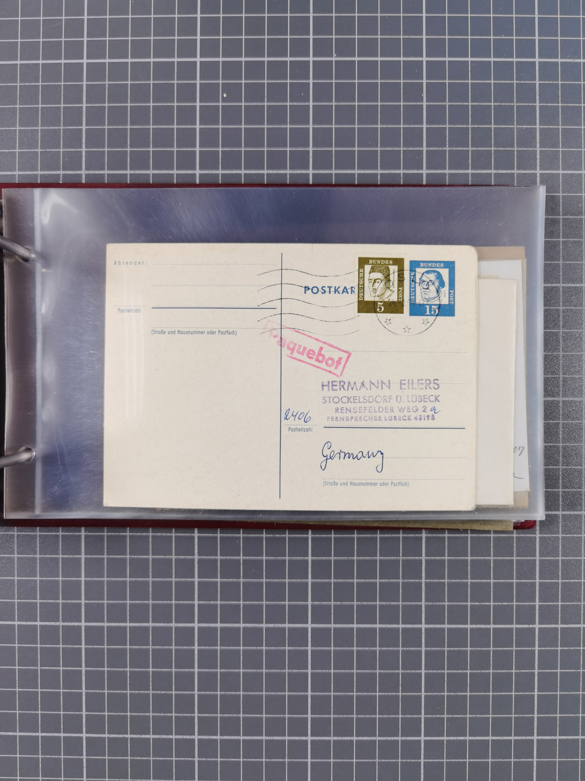 1892/1939, umfangreiche Sammlung “U.S. GERMAN SEA POST” mit ca. 400 Briefen, Karten und Ganzsachen, Schwerpunkt vor 1920 mit den Dublex-Stempeln mit Nr. 1-16, dabei verschiedene Verwendungen mit besseren (u.a. auf Briefen/Karten vom D. Reich), 1 R-GSU und weiteren Besonderheiten. Dazu noch einige Schiffs-Ansichtskarten, bei vielen Belegen mit Vermerken zu den Schiffen usw. und meist in guter Erhaltung. Eine in diesem Umfang seltene Sammlung in sechs Alben, ex Steinmeyer