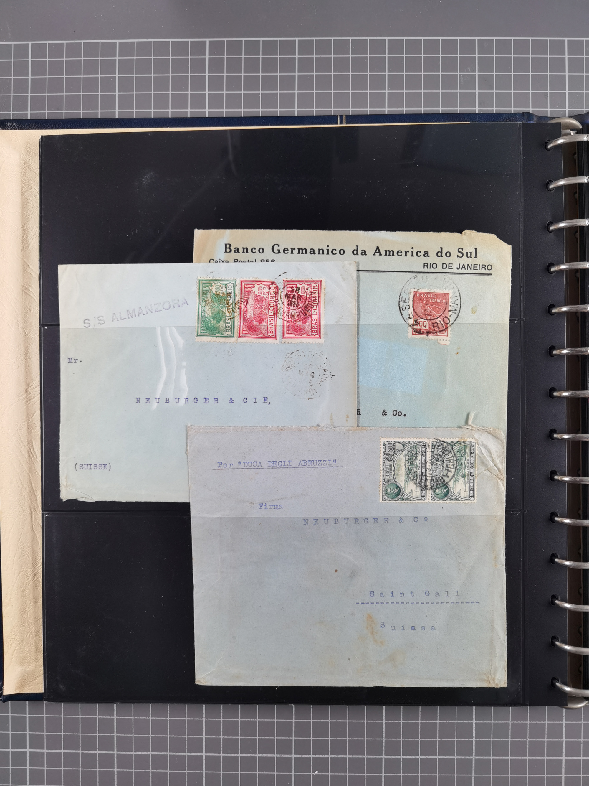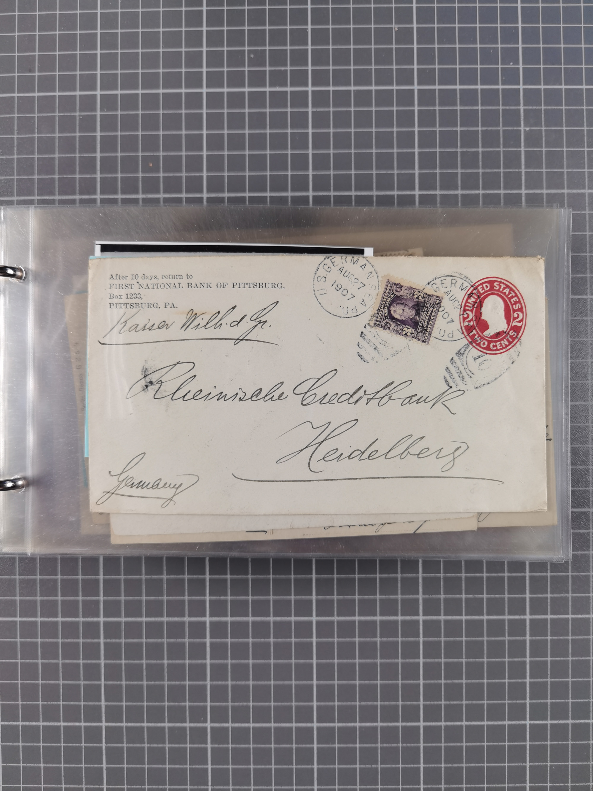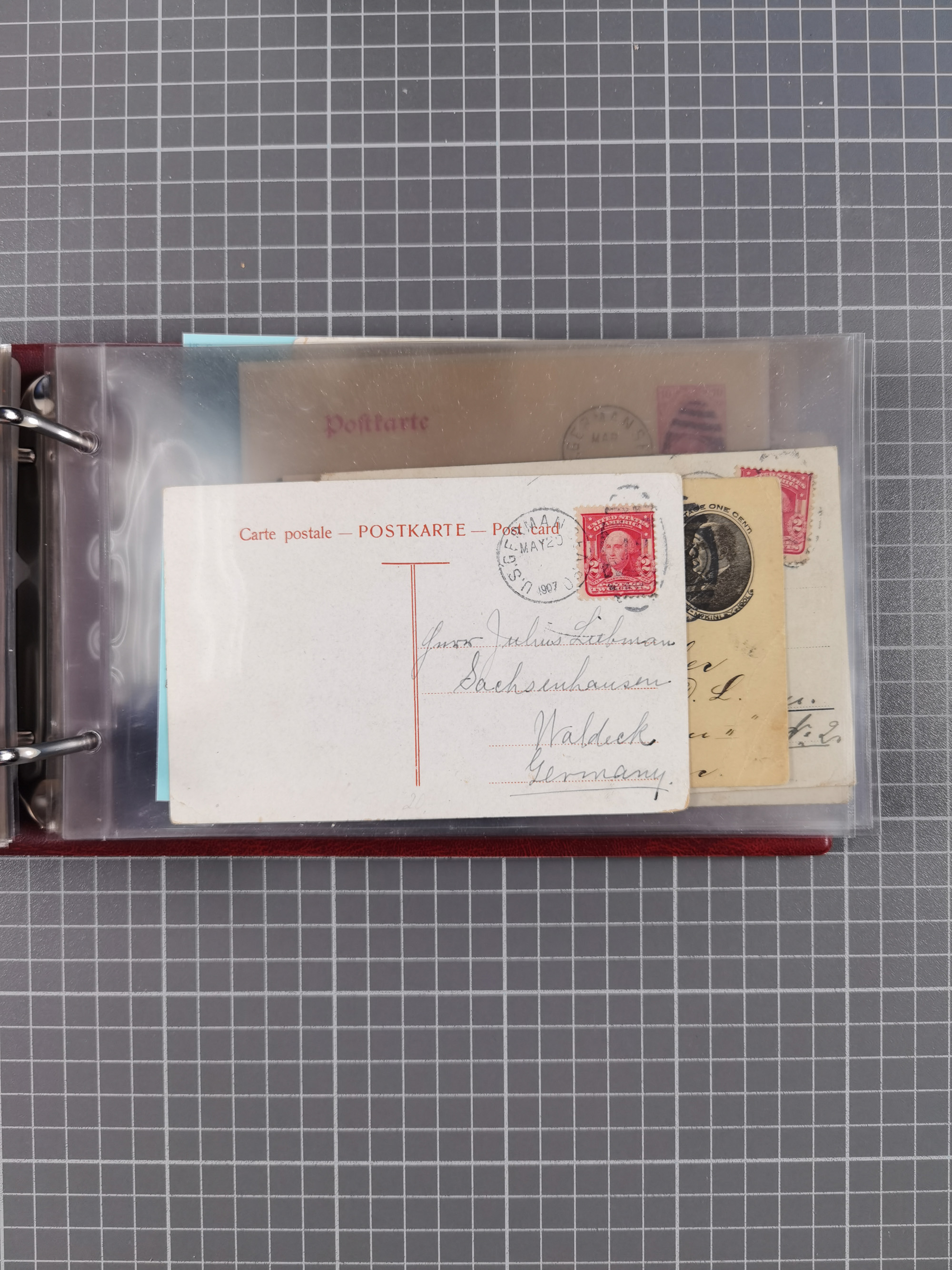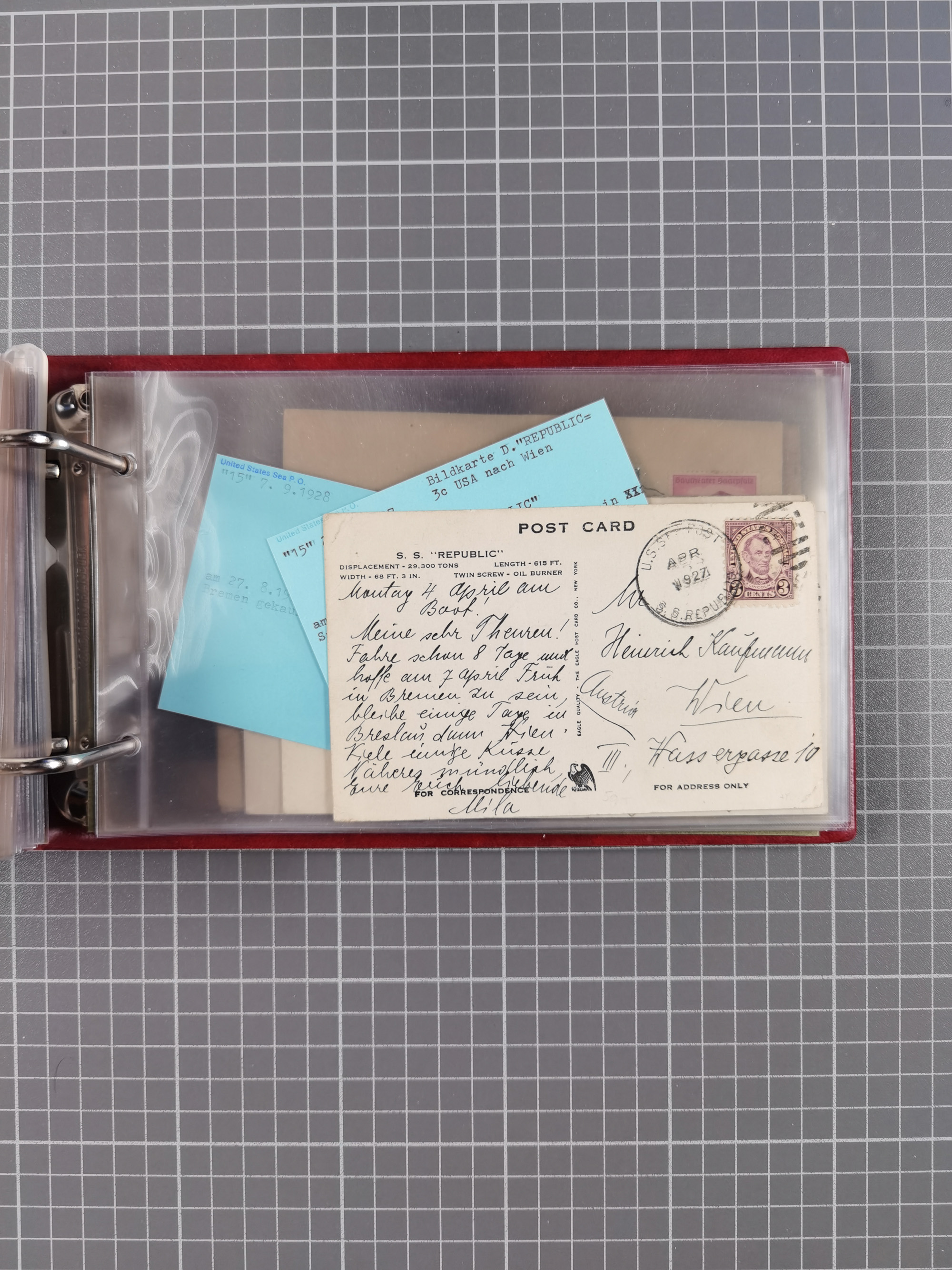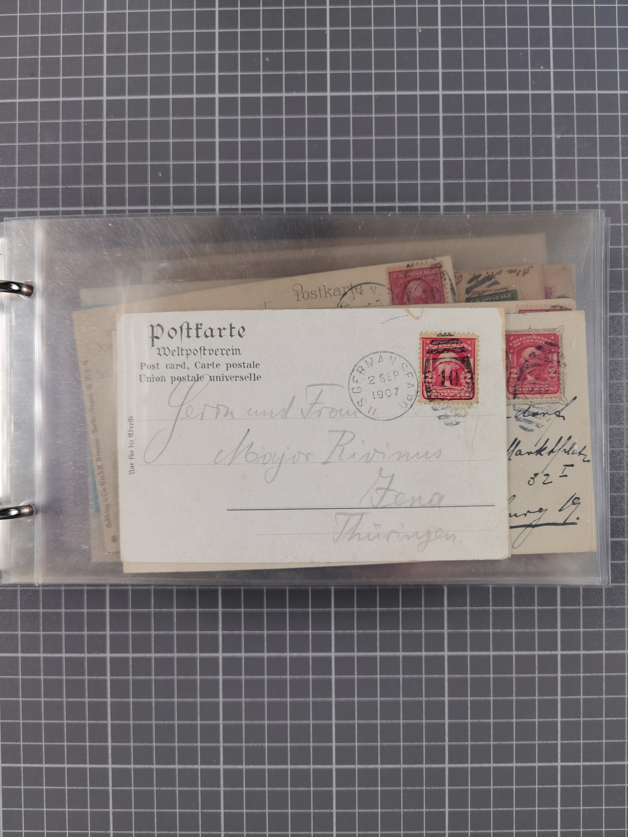 1892/1939, umfangreiche Sammlung “U.S. GERMAN SEA POST” mit ca. 400 Briefen, Karten und Ganzsachen, Schwerpunkt vor 1920 mit den Dublex-Stempeln mit Nr. 1-16, dabei verschiedene Verwendungen mit besseren (u.a. auf Briefen/Karten vom D. Reich), 1 R-GSU und weiteren Besonderheiten. Dazu noch einige Schiffs-Ansichtskarten, bei vielen Belegen mit Vermerken zu den Schiffen usw. und meist in guter Erhaltung. Eine in diesem Umfang seltene Sammlung in sechs Alben, ex Steinmeyer