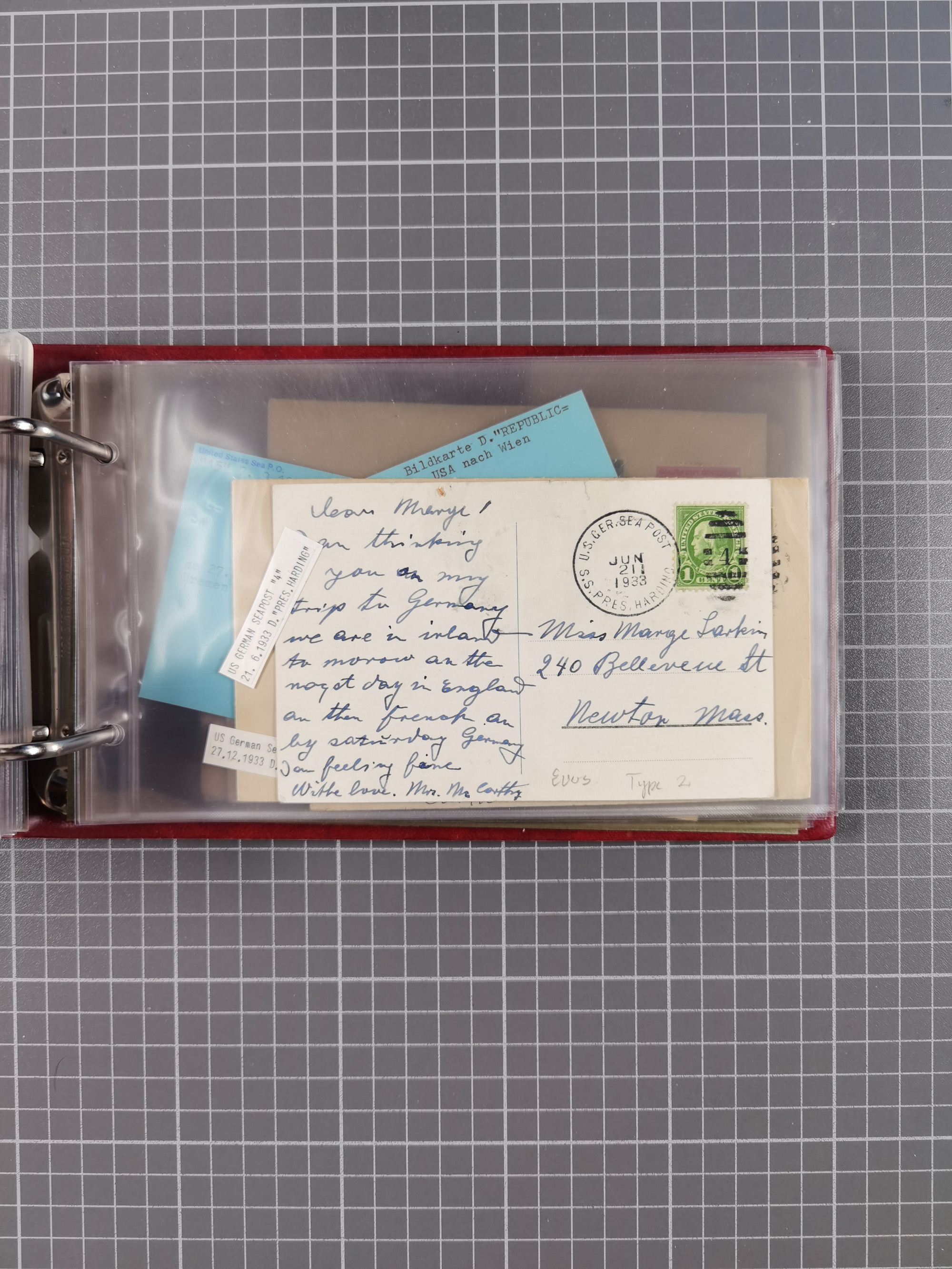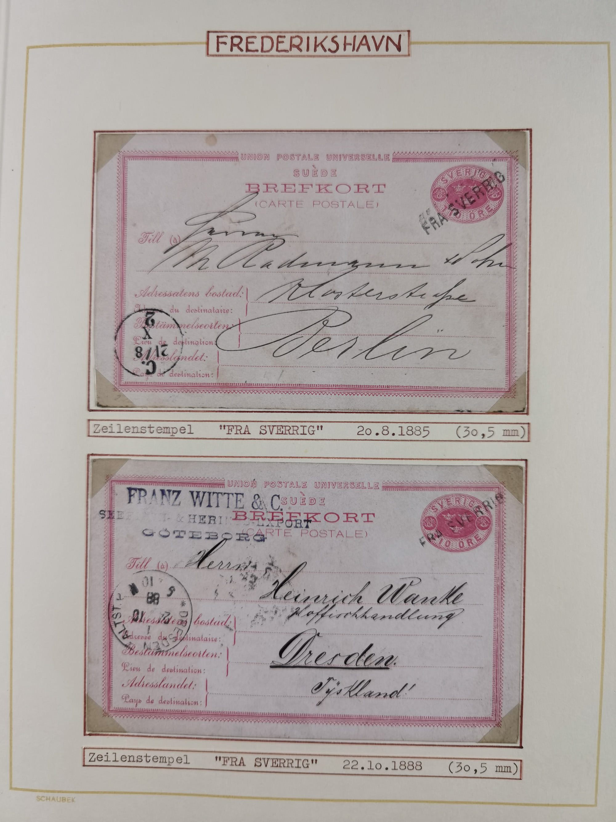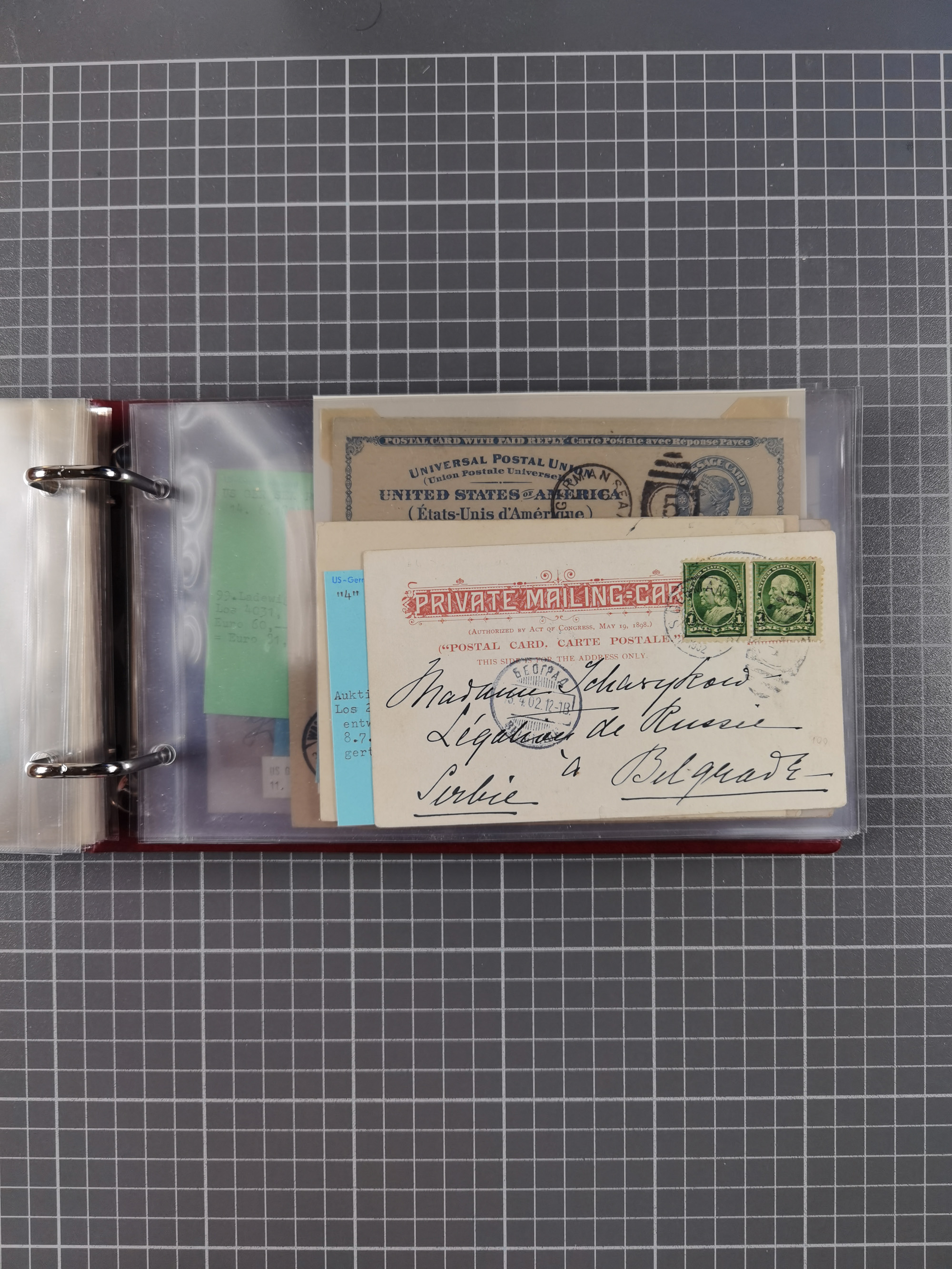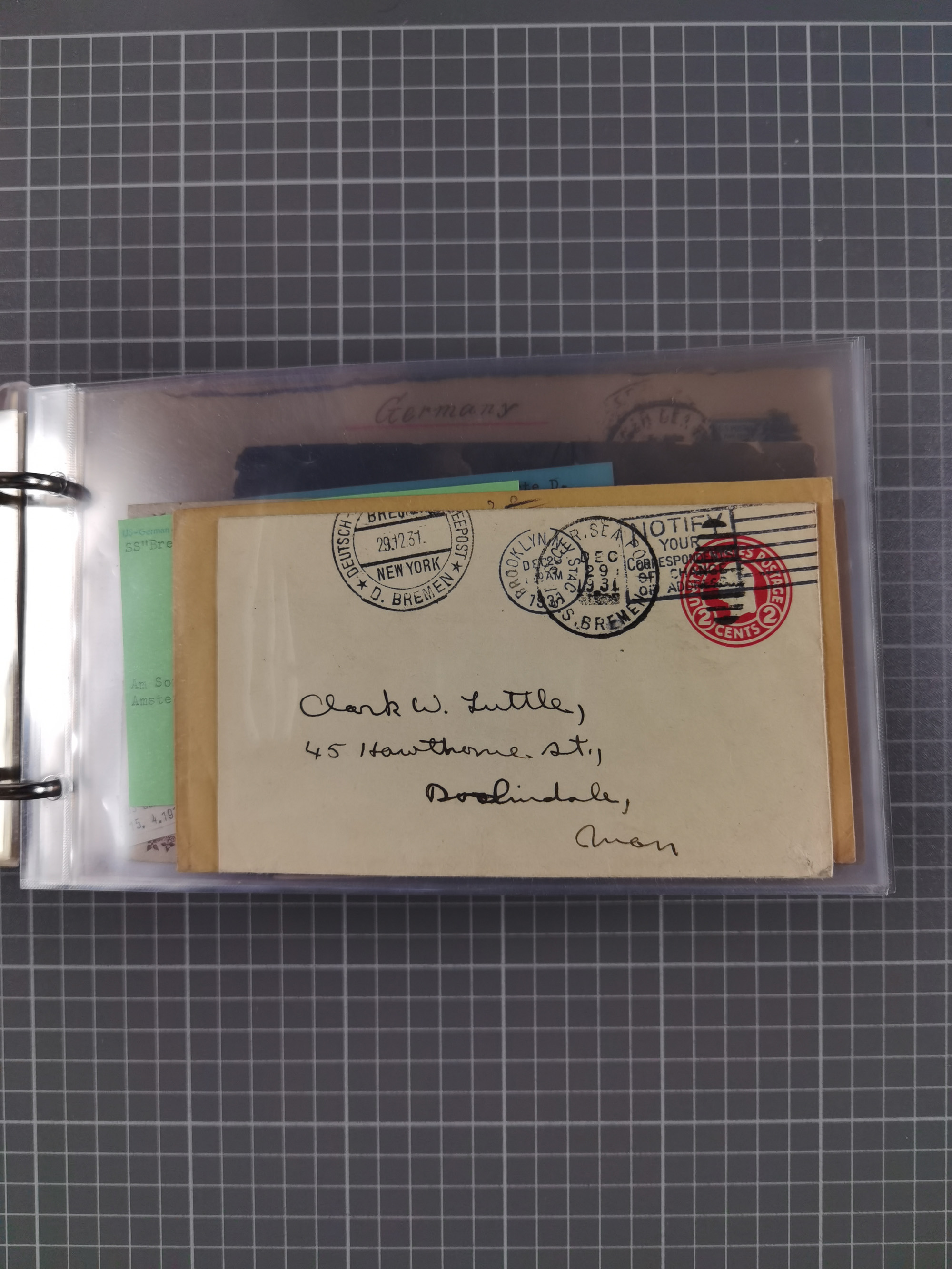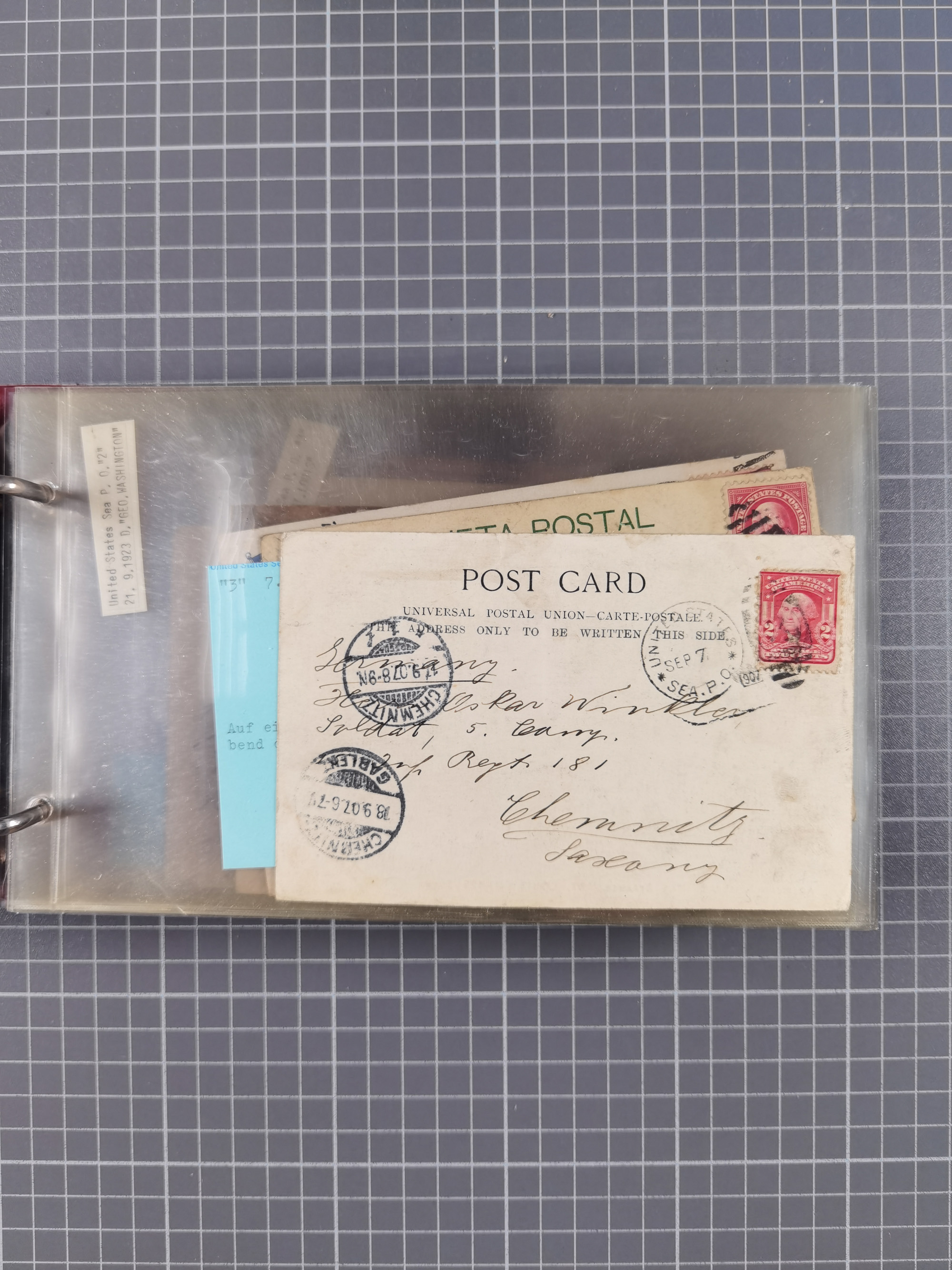 1892/1939, umfangreiche Sammlung “U.S. GERMAN SEA POST” mit ca. 400 Briefen, Karten und Ganzsachen, Schwerpunkt vor 1920 mit den Dublex-Stempeln mit Nr. 1-16, dabei verschiedene Verwendungen mit besseren (u.a. auf Briefen/Karten vom D. Reich), 1 R-GSU und weiteren Besonderheiten. Dazu noch einige Schiffs-Ansichtskarten, bei vielen Belegen mit Vermerken zu den Schiffen usw. und meist in guter Erhaltung. Eine in diesem Umfang seltene Sammlung in sechs Alben, ex Steinmeyer