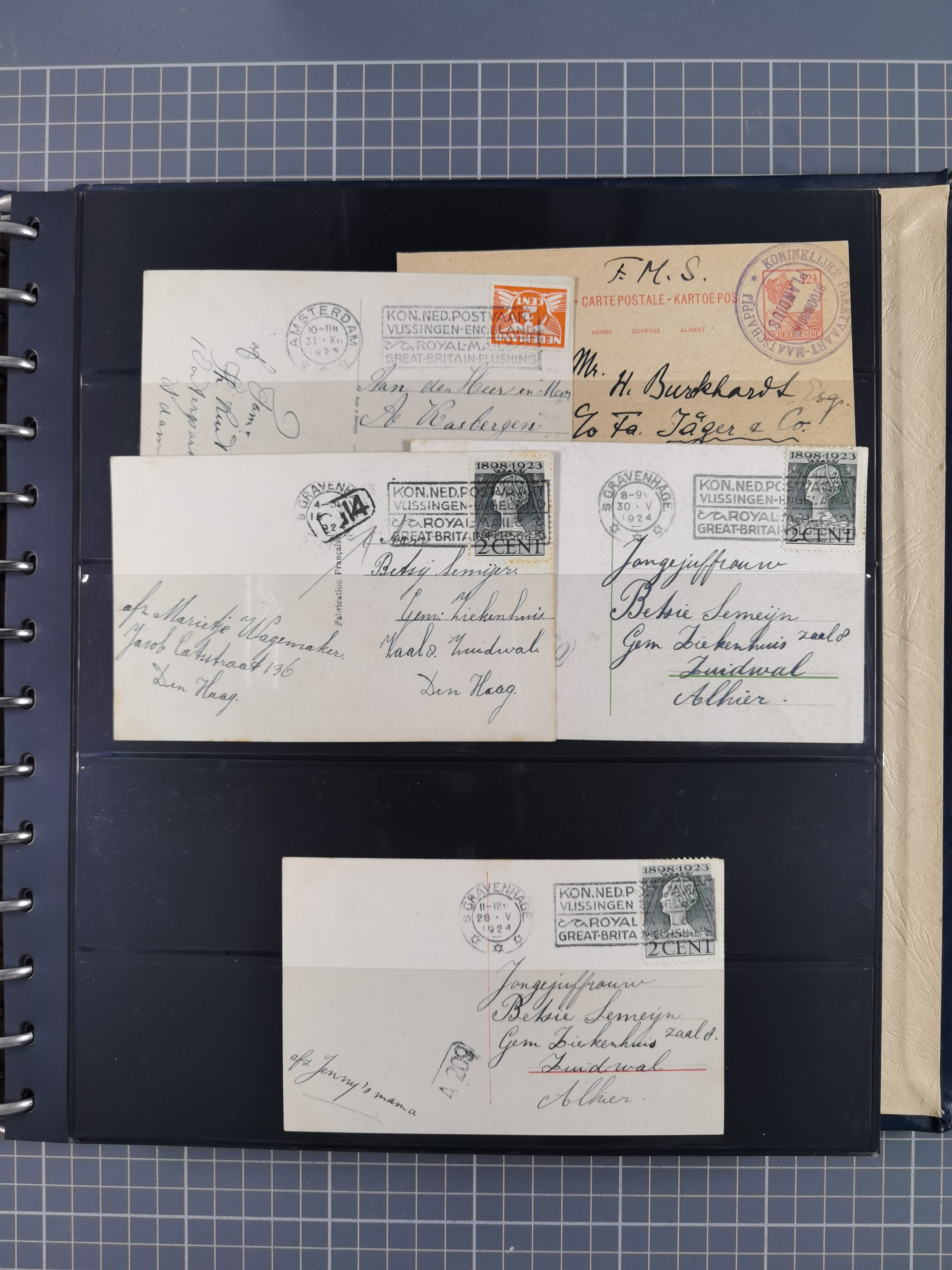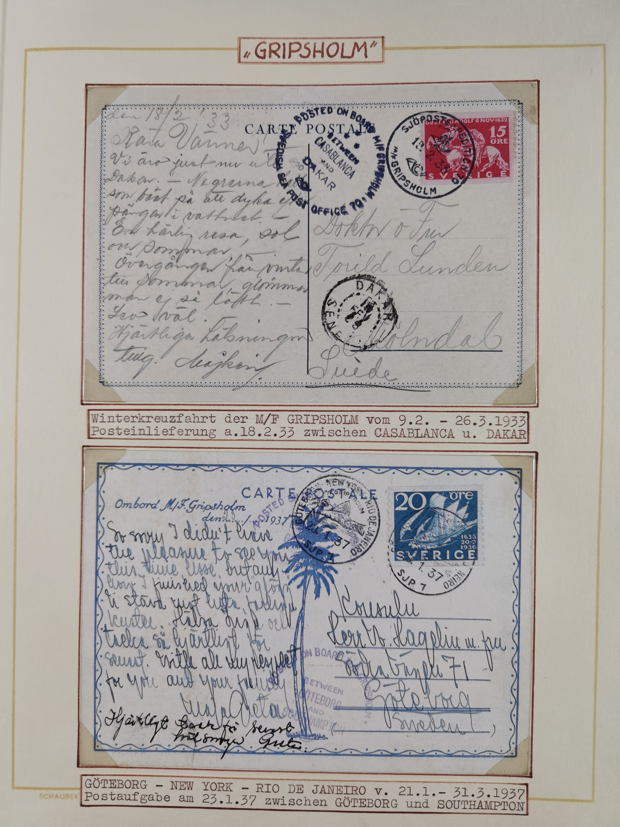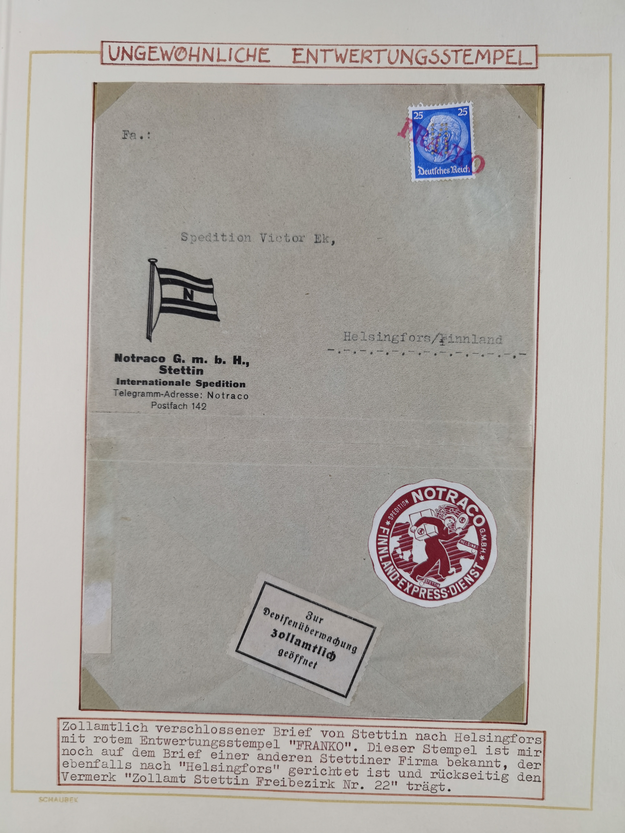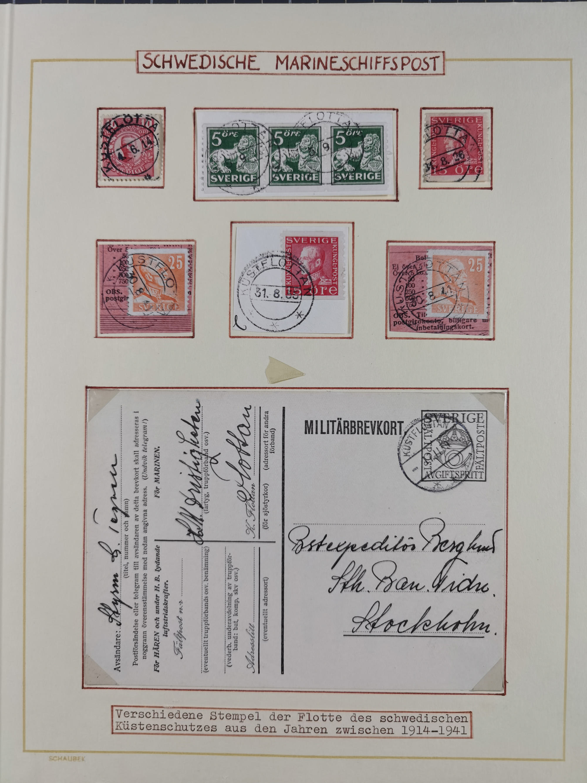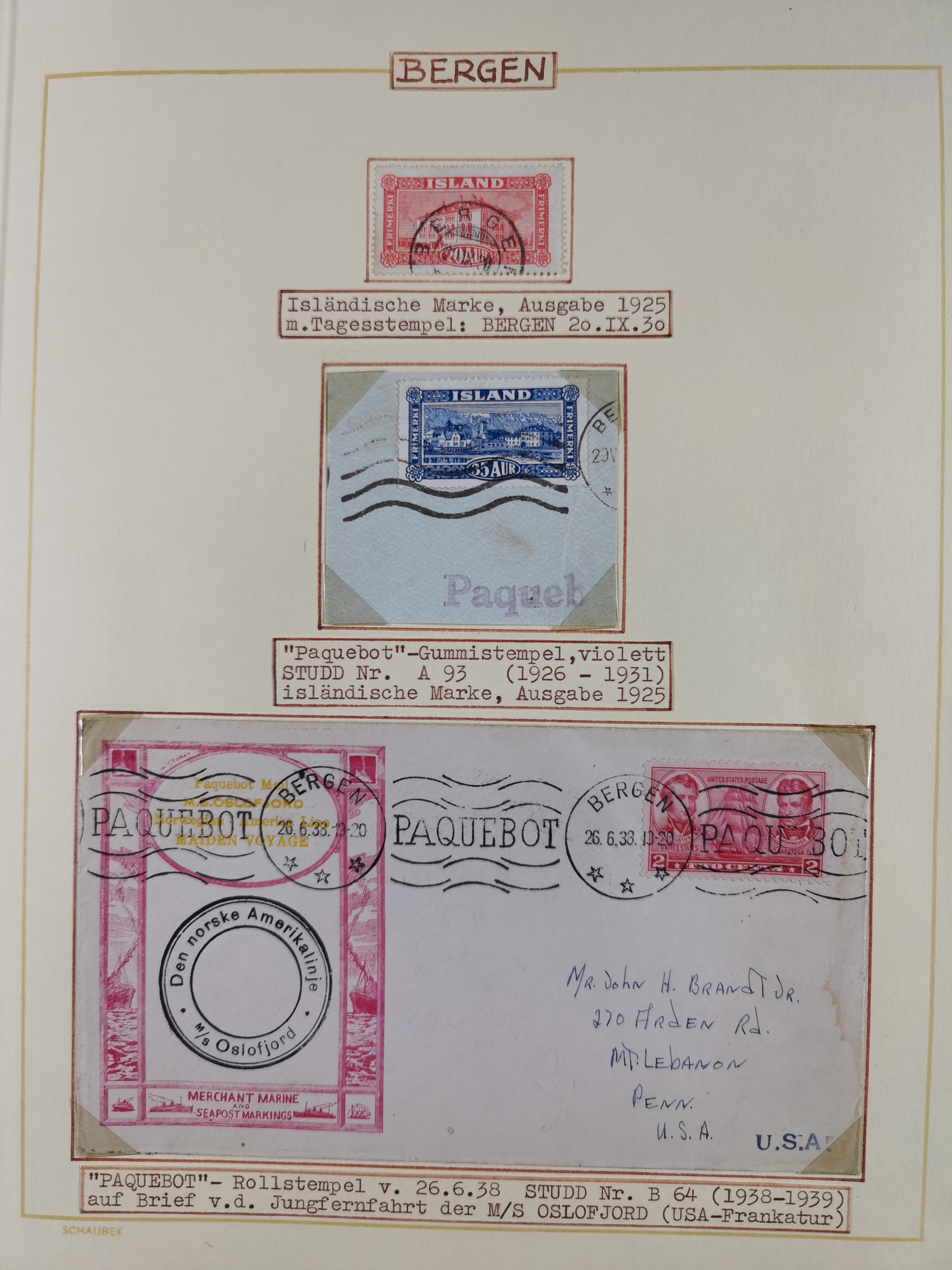 NORWEGEN: 1838/1980 (ca.), umfangreiche Sammlung “Norwegische Schiffspost” mit ca. fast 700 Briefen, Karten und GSK bis ca. 1960 inkl. Incoming Mail und etlichen nicht eingearbeiteten Belegen. Dabei frühe Post mit u.a. kpl. Faltbrief 1838 von Christiania mit ovalem Stempel “ALTONA SCHIFFSBRIEF” nach Schottland, kpl. Faltbrief 1863 mit handschriftlichem Aufgabevermerk “Foldin”, kpl. Faltbrief 1861 mit handschriftlichem Aufgabevermerk “Bjprn Farmand”, blauer EKr. “HALDEN 6.10.1854” auf kpl. Faltbrief und Briefhülle mit schwarzem EKr. “HAKON JARL 29.5.1861”. Danach u.a. zwei Briefe 1861/63 mit EKr. “NORDLAND”, Transitstempel “Norwegen direct” rückseitig auf Faltbrief mit zweimal 8 Sk. mit EKr. “STAVANGER 14.9.1864”, viele Nordlands Posteksp.-Stempel inkl. R-Briefen, Stempel “BÜREAU DE MER DE NORVEGE B 27.X.23” auf frankiertem R-Brief nach Schweden und 12 Briefe “NORSK SKIPSPOST HANDELSFLÄTEN” 1943/45 (6x mit Zensur). Dazu viele lose Marken und Briefstücke mit Schiffspost-Stempeln und zusätzlich viele Briefe nach 1960, alles auf Albenblättern mit Beschriftung in 24 Alben und ein mittlerer Karton mit nicht eingearbeitetem Material. Ein außergewöhnliches und empfehlenswertes Objekt