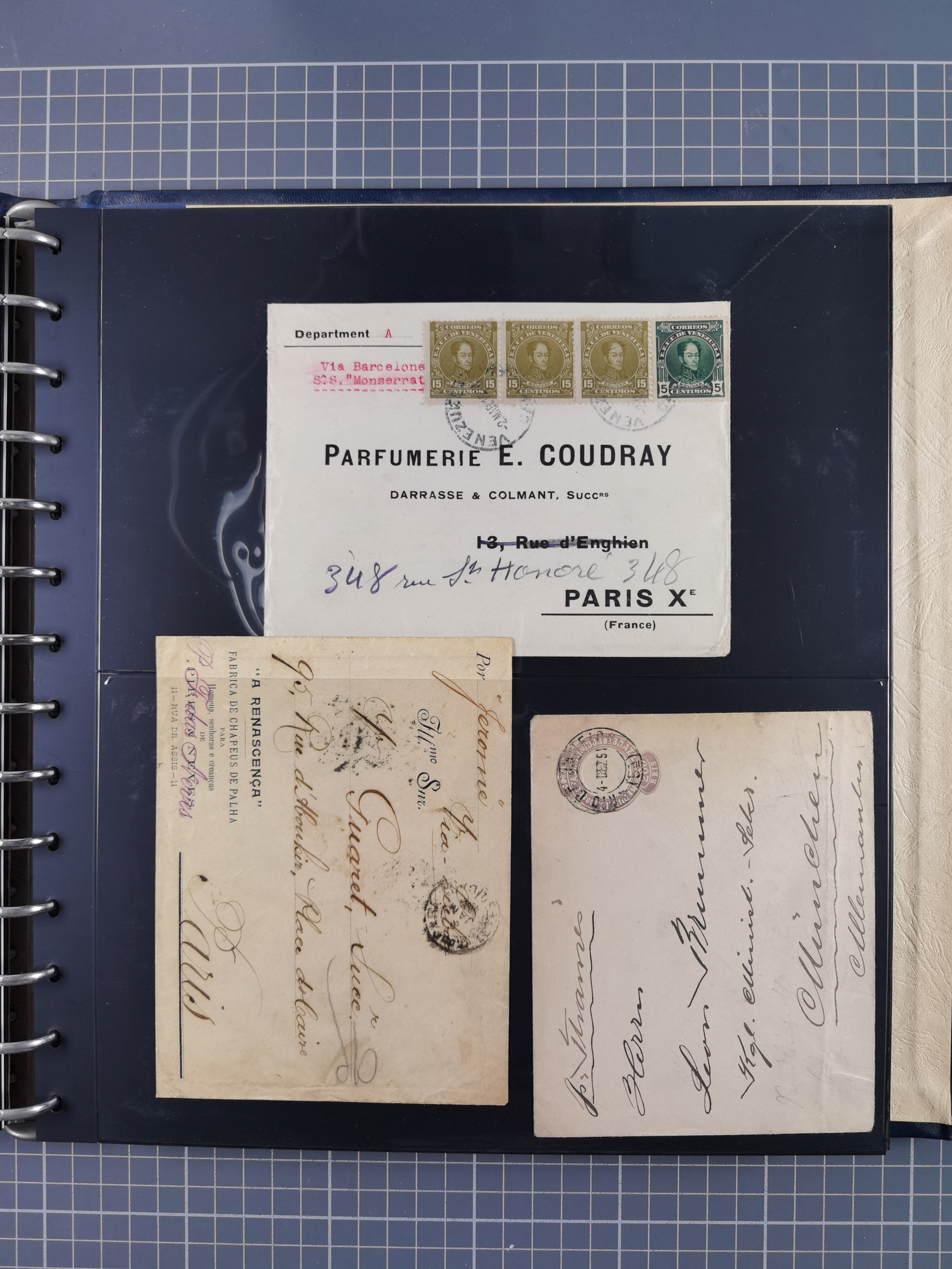 1858, Folded tissue-paper envelope bootlegged from Smyrna, Turkey to Boston, carried by Capt. Watson ‘Ship Henry Hill’ with 122 bales madder roots, ms. “Via Trieste” inside, letter with embossing and black sender cachet F.C. Blackler Smyrna on reverse. At arrival in US Franklin 1 c. blue type V tied by black “PAID” in circle to envelope and red “Boston Mass. Nov/12” arrival cds. on front. Tiny file fold, otherwise Very Fine and a scarce usage.