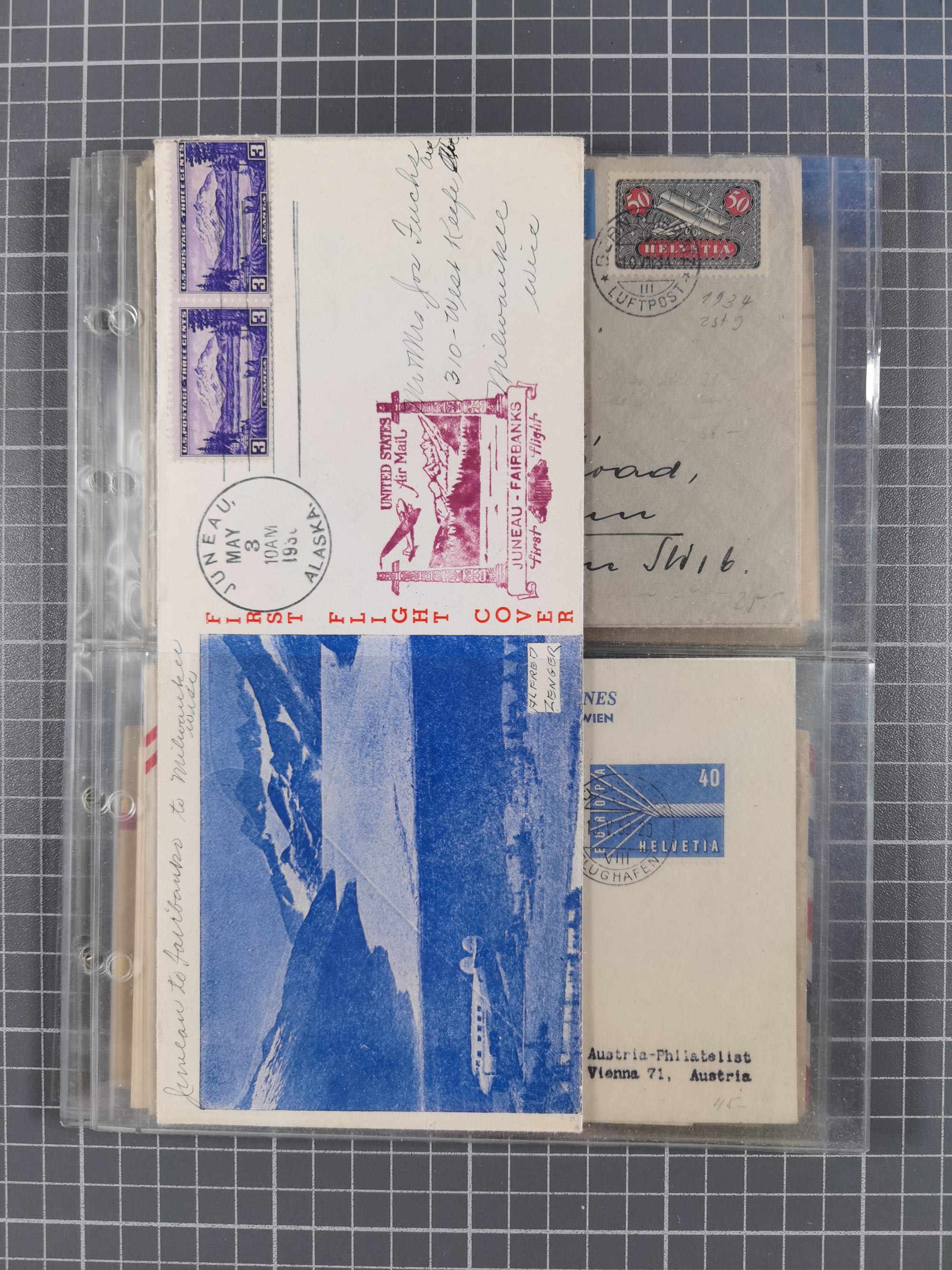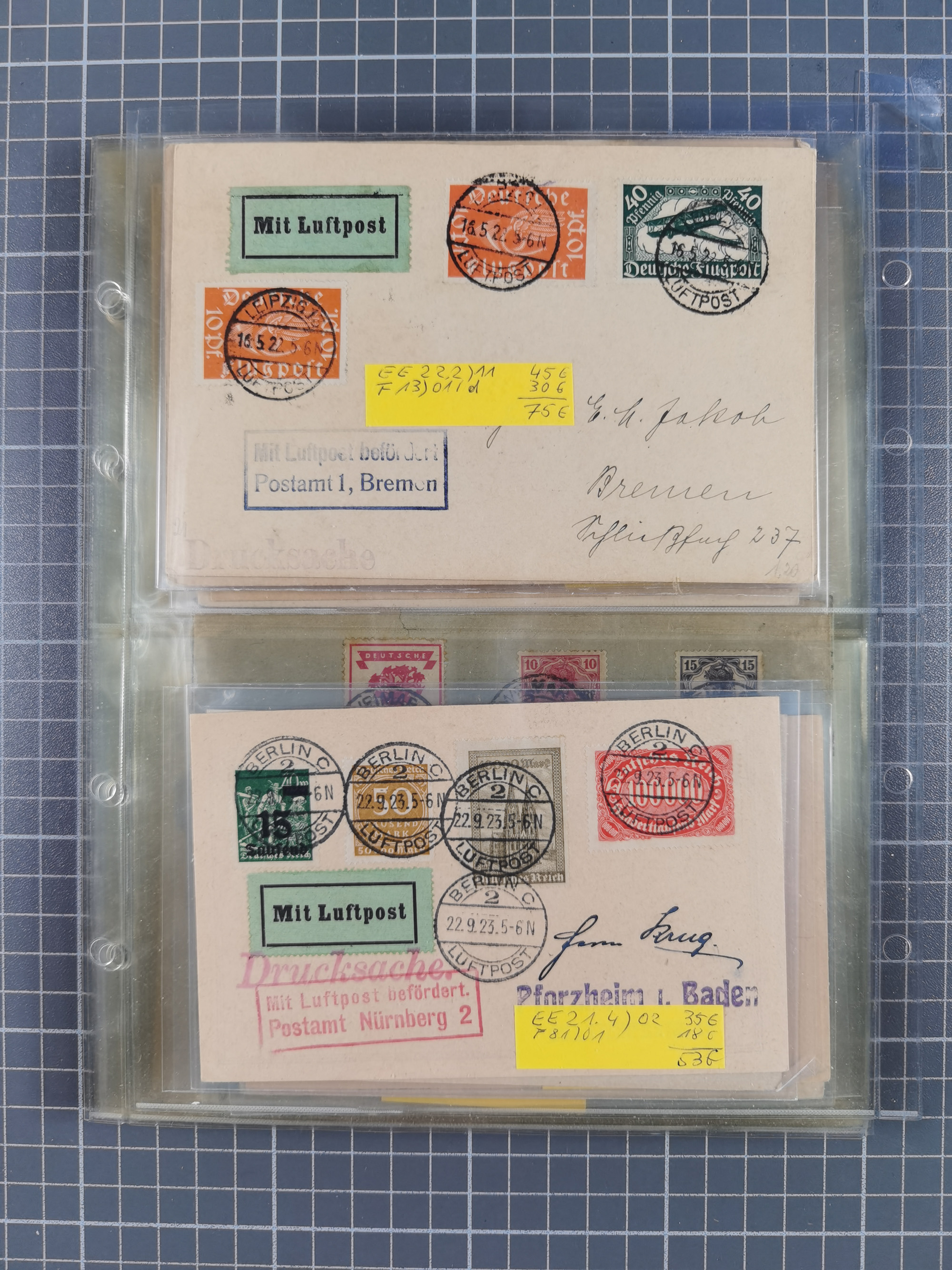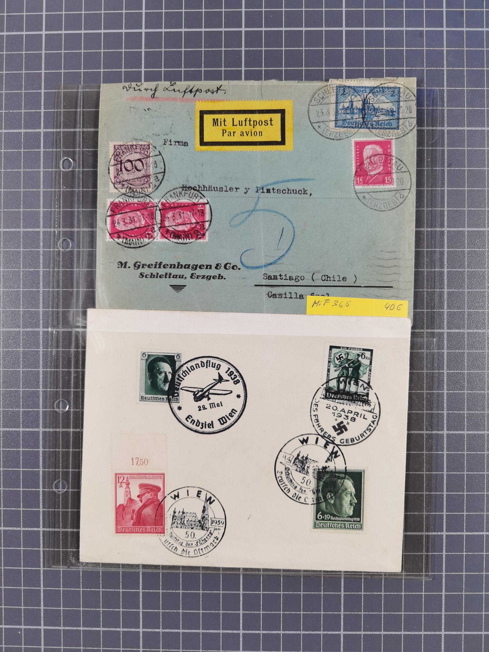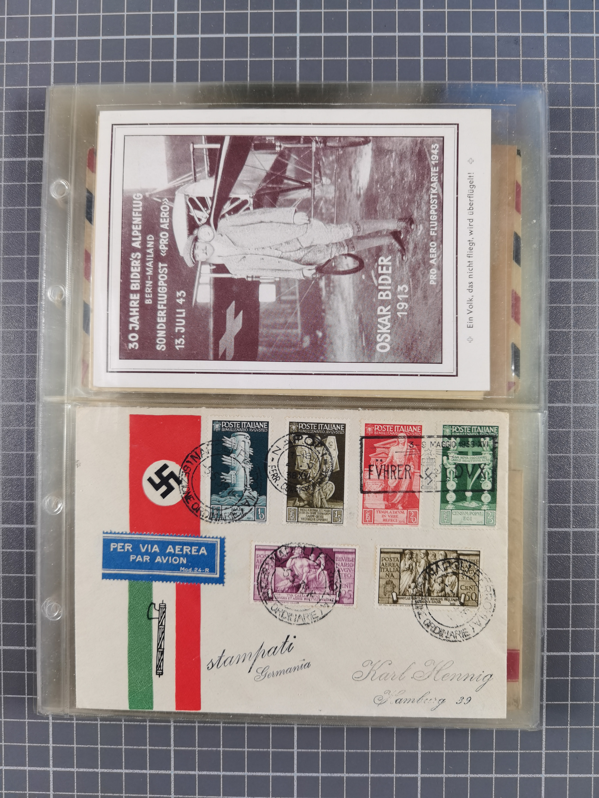 1910/45, Deutsche und internationale Flugpost, 2 Alben mit 430 Briefen, Karten, GZ, Ansichtskarten, dabei Deutsches Reich mit 88 Stück, mit vielen besseren Belegen, besonders zwischen 1919-1926, aber auch mit Bayern SFP 1/02 (1912) und 4 x Rhein-Main. Vom Einlieferer wurden 48 deutsche Flugbriefe/ Karten nach Michel Flugpost Spezial bewertet, diese über 4.600 €, darunter Flugkarte mit 2 RM Polarfahrt. Dabei auch gute und attraktive Flugpostbelege von Europa, Übersee und USA z.B. 2 x Flugpost Lemberg-Wien 1918, viele Erstflüge (besonders USA) und Sonderkarten, meist gute Erhaltung