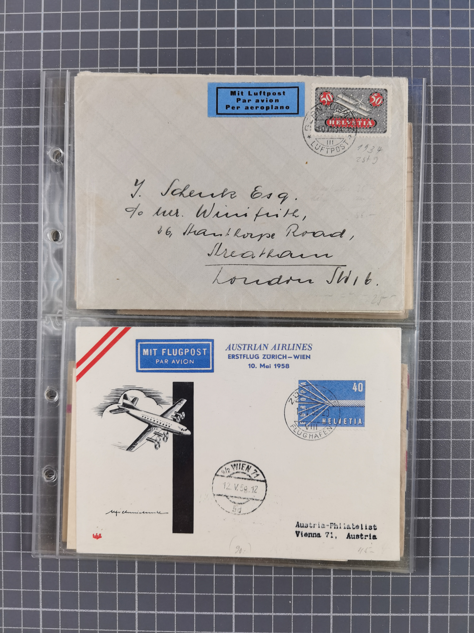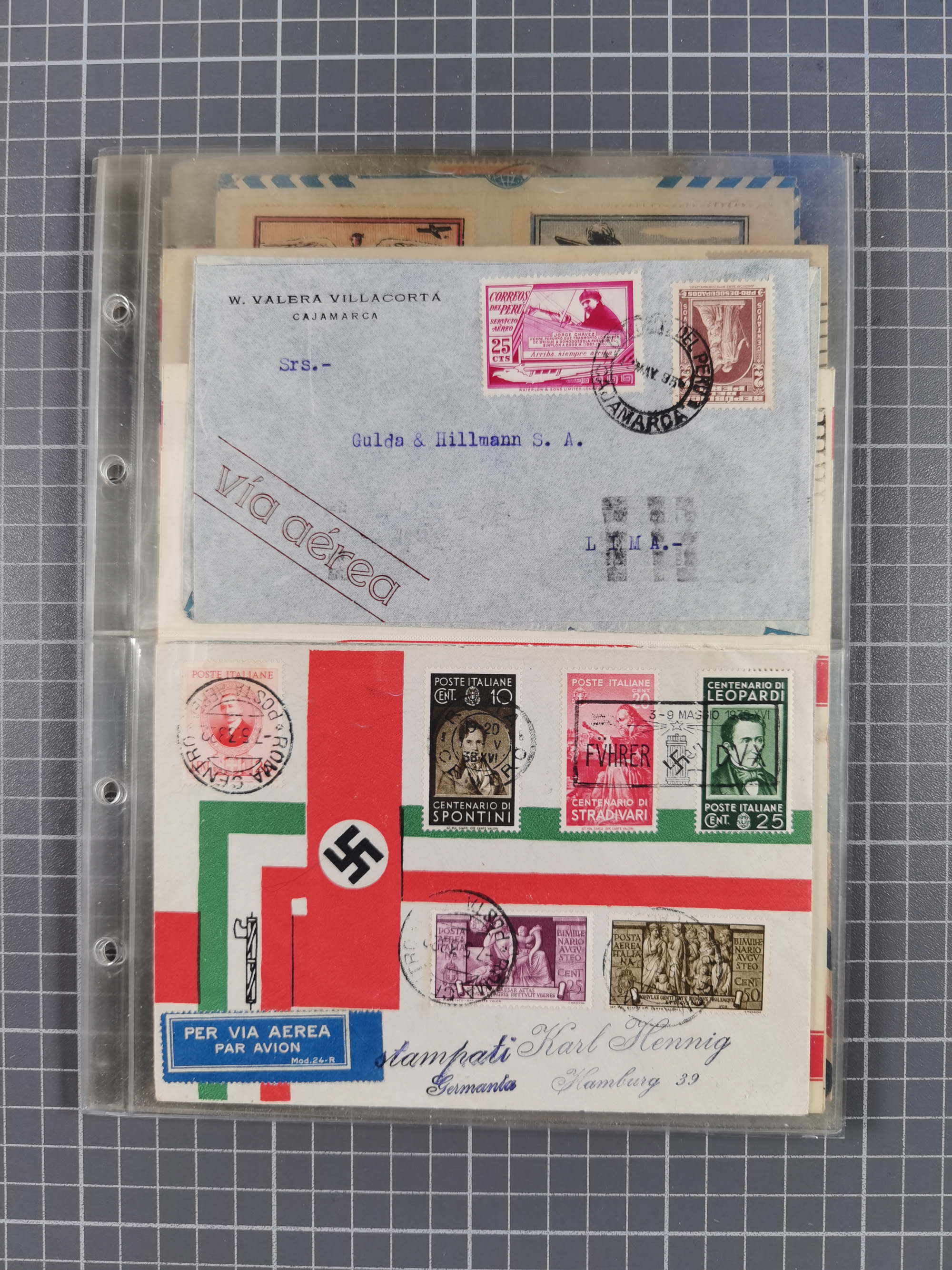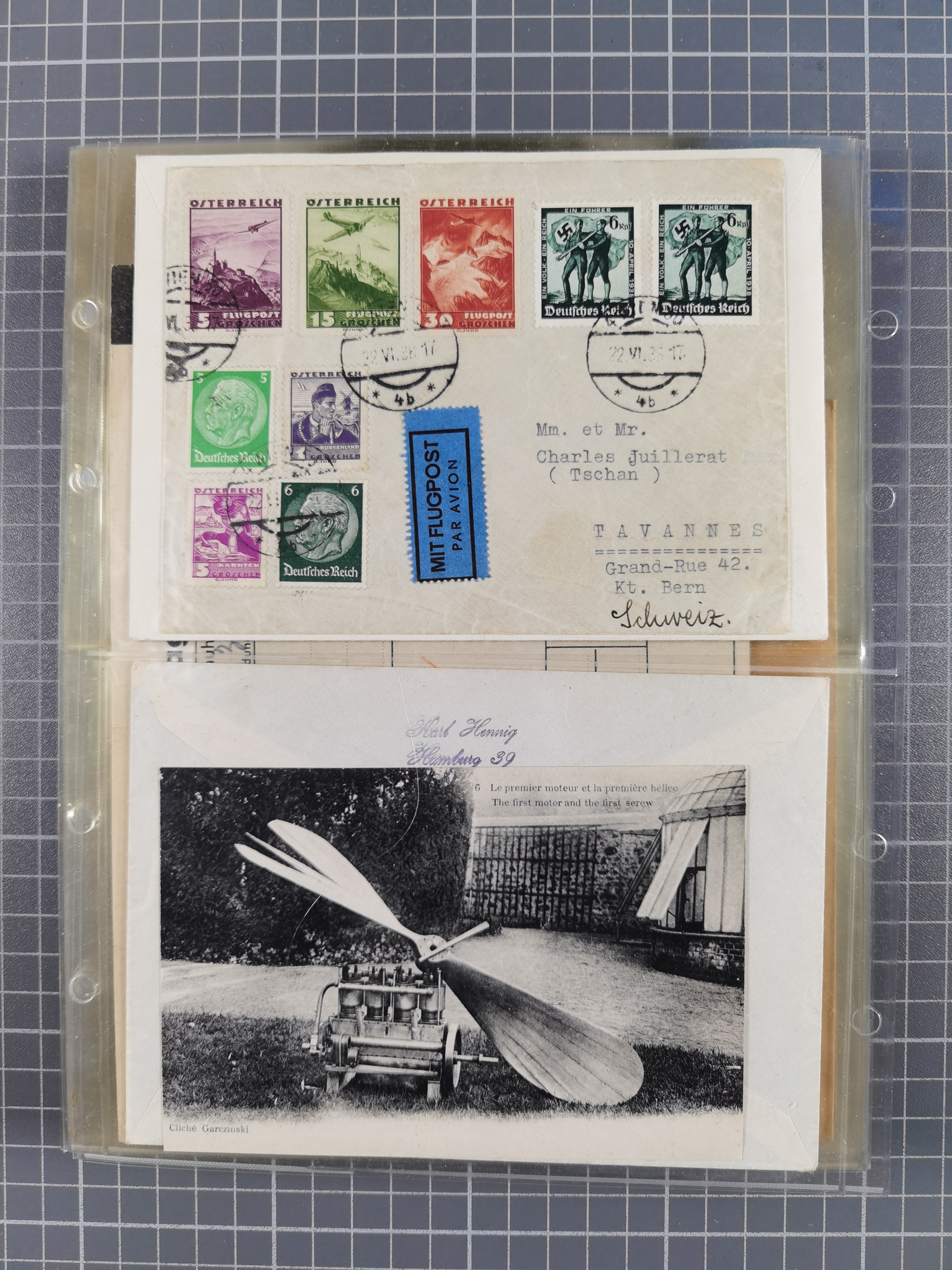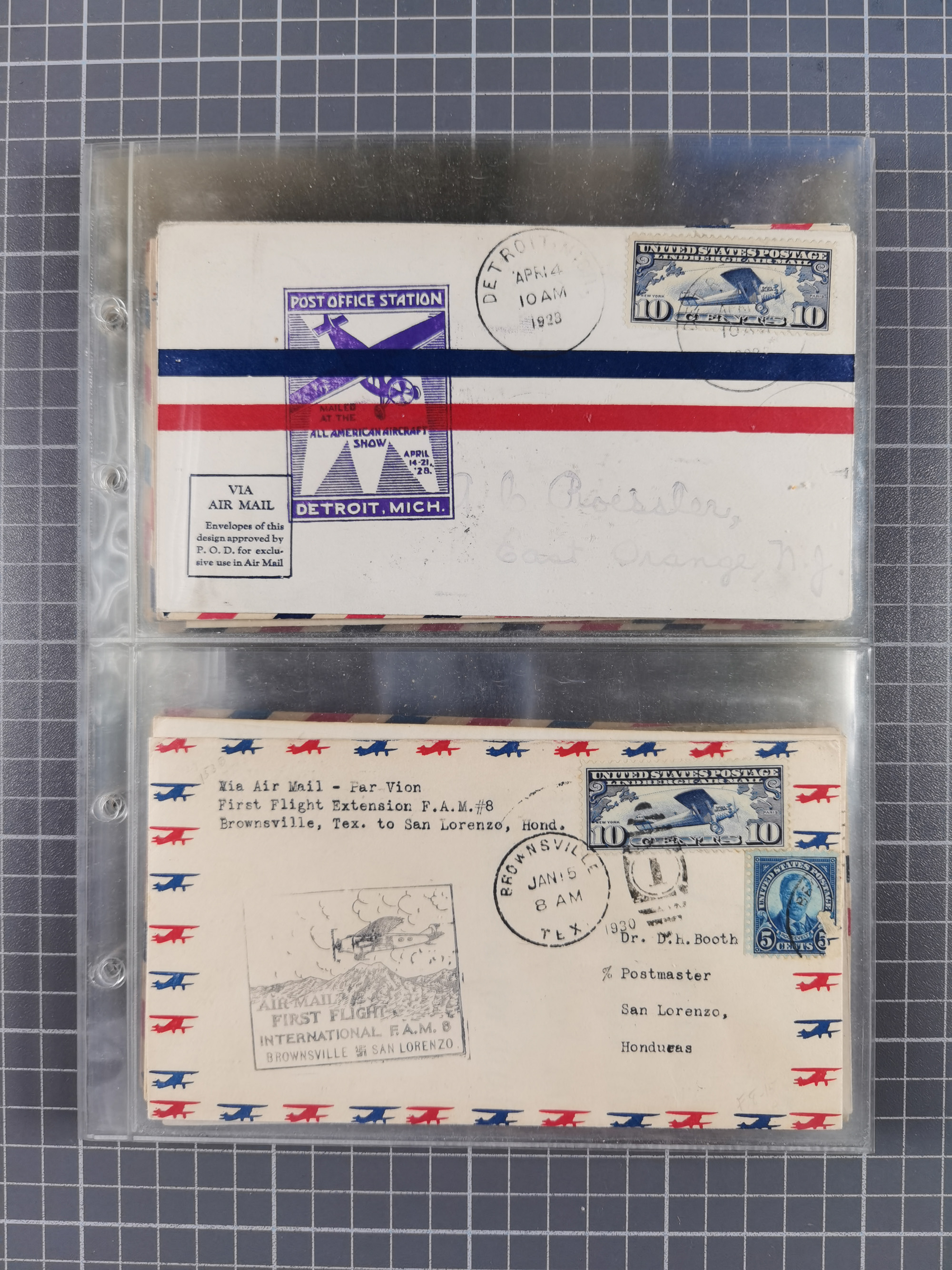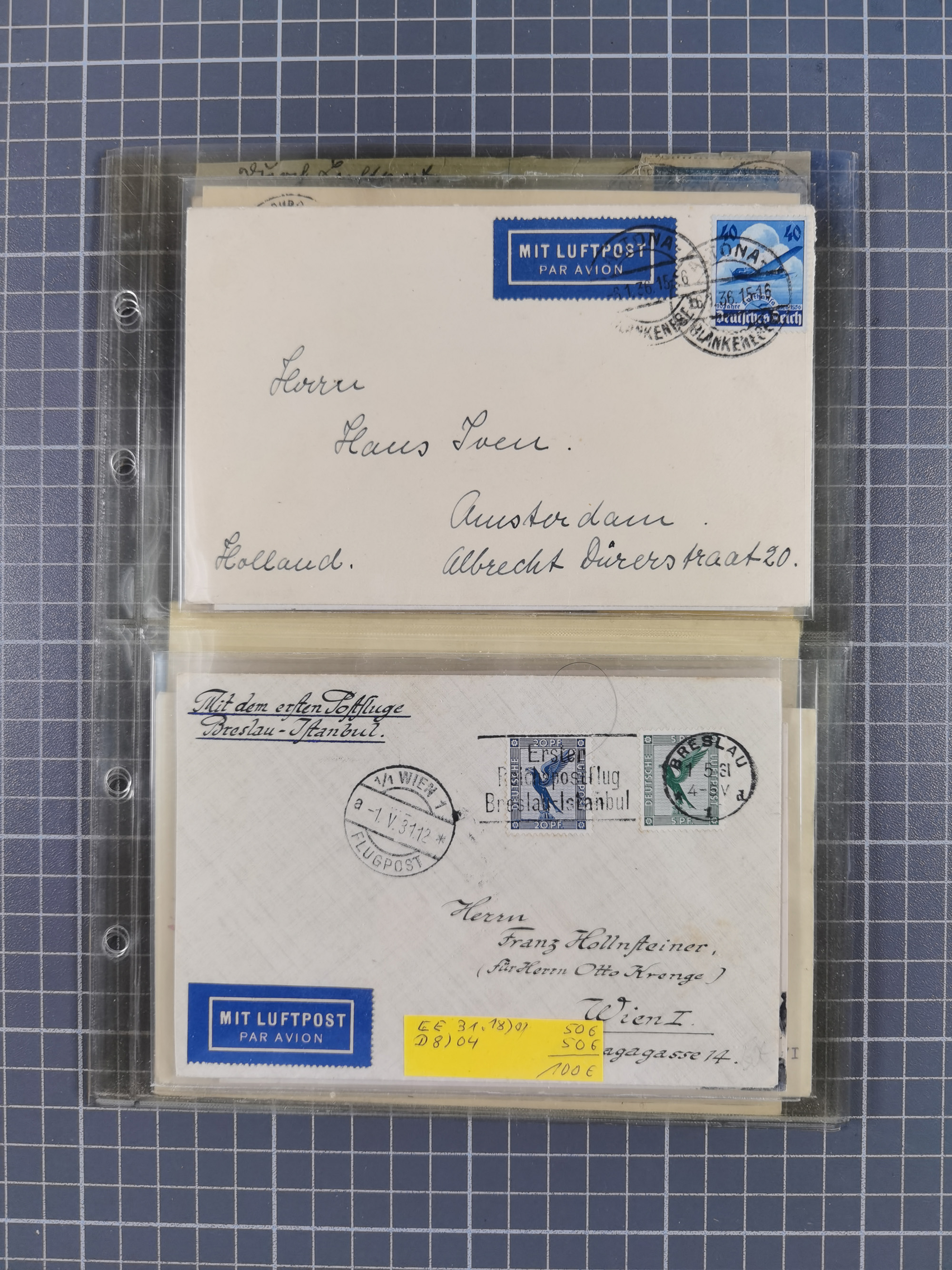 1910/45, Deutsche und internationale Flugpost, 2 Alben mit 430 Briefen, Karten, GZ, Ansichtskarten, dabei Deutsches Reich mit 88 Stück, mit vielen besseren Belegen, besonders zwischen 1919-1926, aber auch mit Bayern SFP 1/02 (1912) und 4 x Rhein-Main. Vom Einlieferer wurden 48 deutsche Flugbriefe/ Karten nach Michel Flugpost Spezial bewertet, diese über 4.600 €, darunter Flugkarte mit 2 RM Polarfahrt. Dabei auch gute und attraktive Flugpostbelege von Europa, Übersee und USA z.B. 2 x Flugpost Lemberg-Wien 1918, viele Erstflüge (besonders USA) und Sonderkarten, meist gute Erhaltung