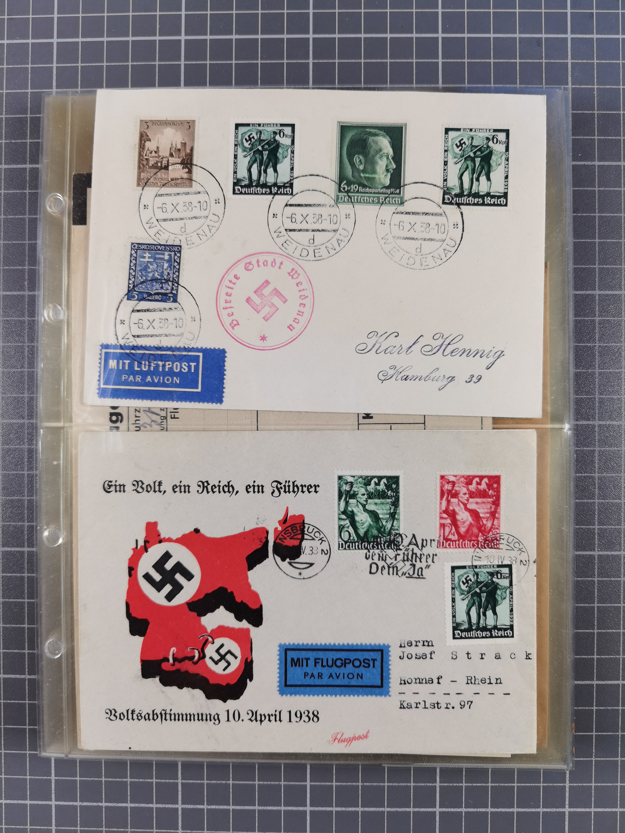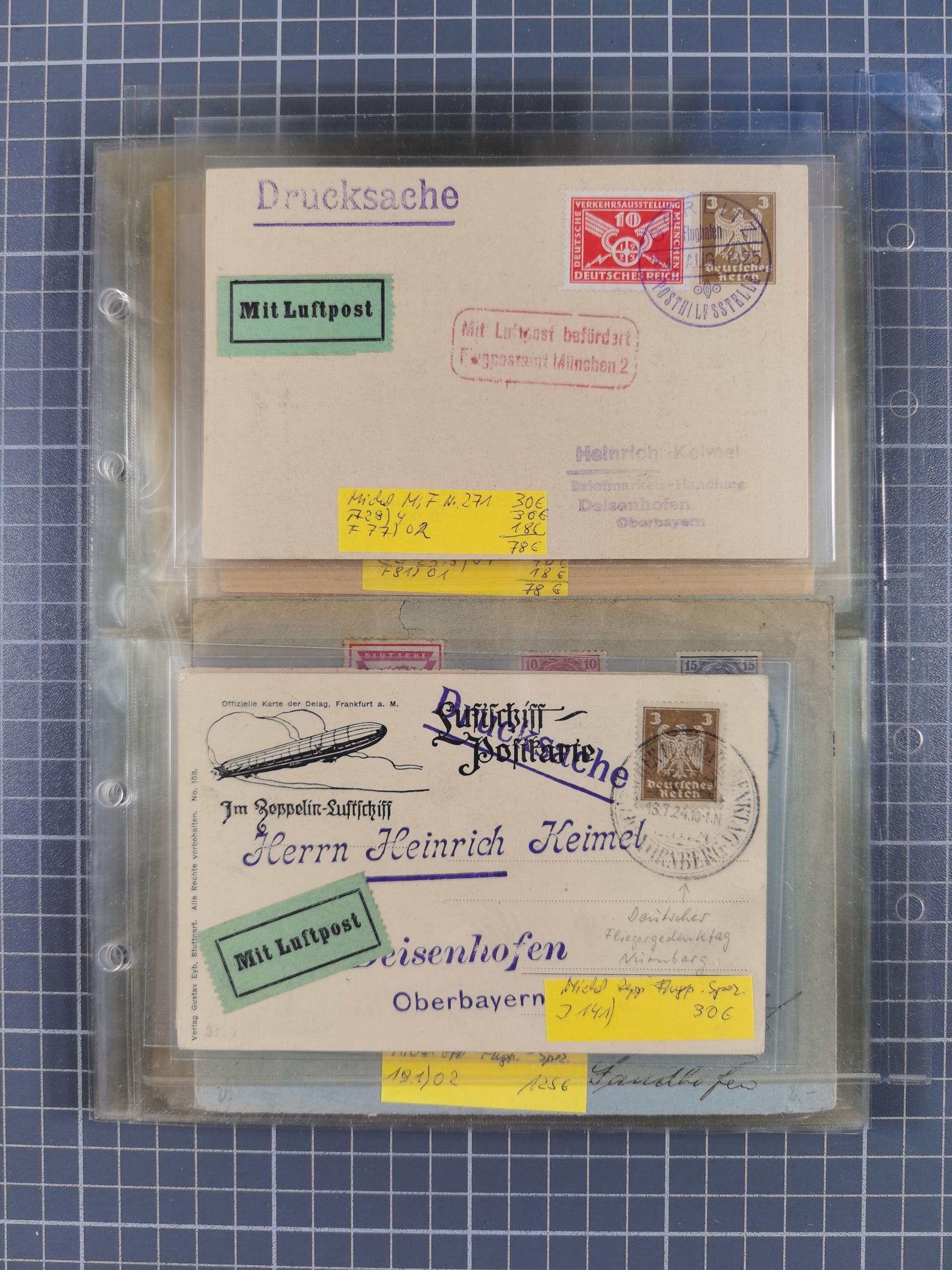 1912/38 (ca., interessante Partie, dabei über 100 Zeppelin-Belege, Karten mit 10 Pfg. und 20 Pfg. E.EL.P., Gute Zeppelin-Marken-Frankaturen, etc.