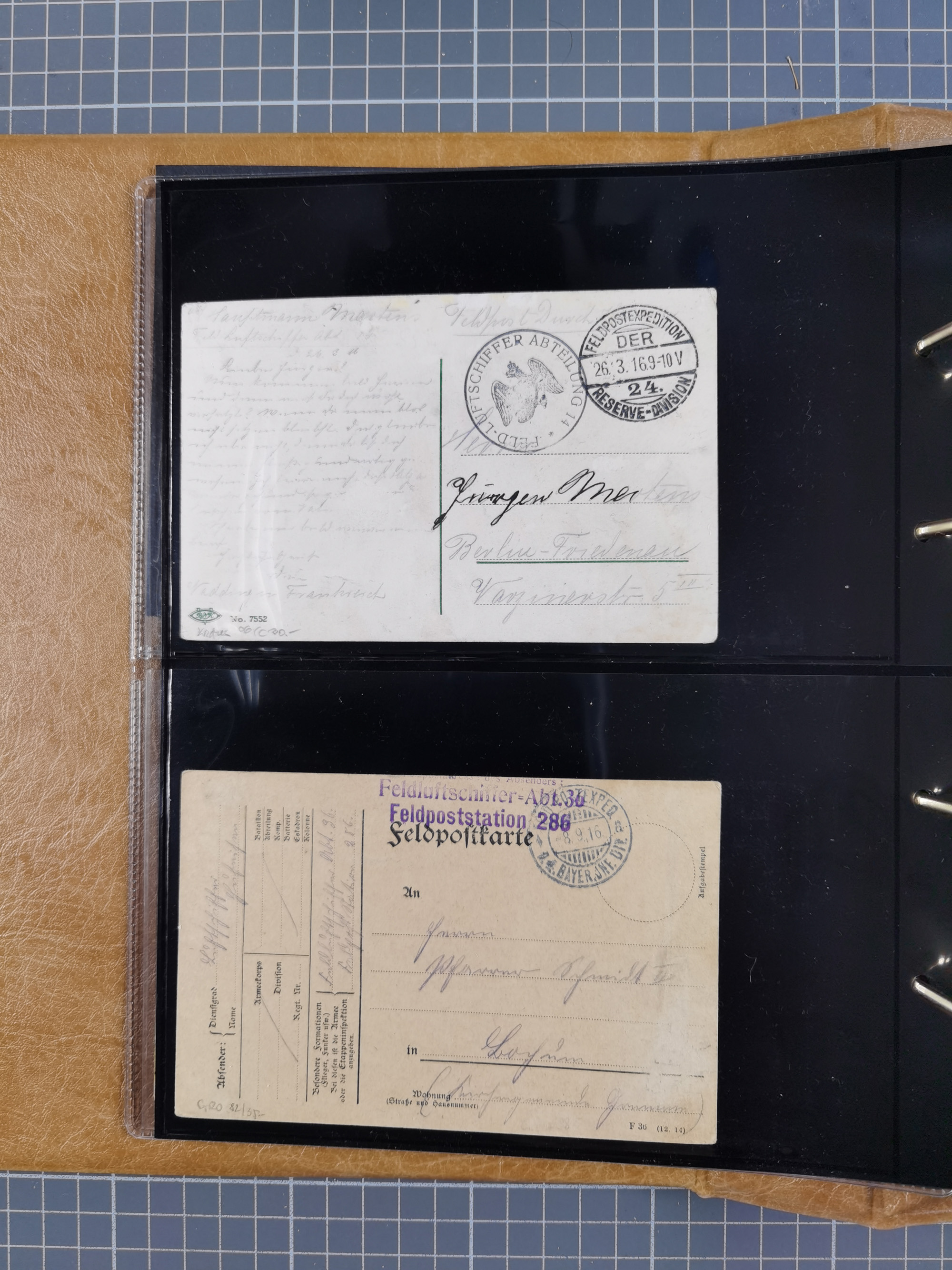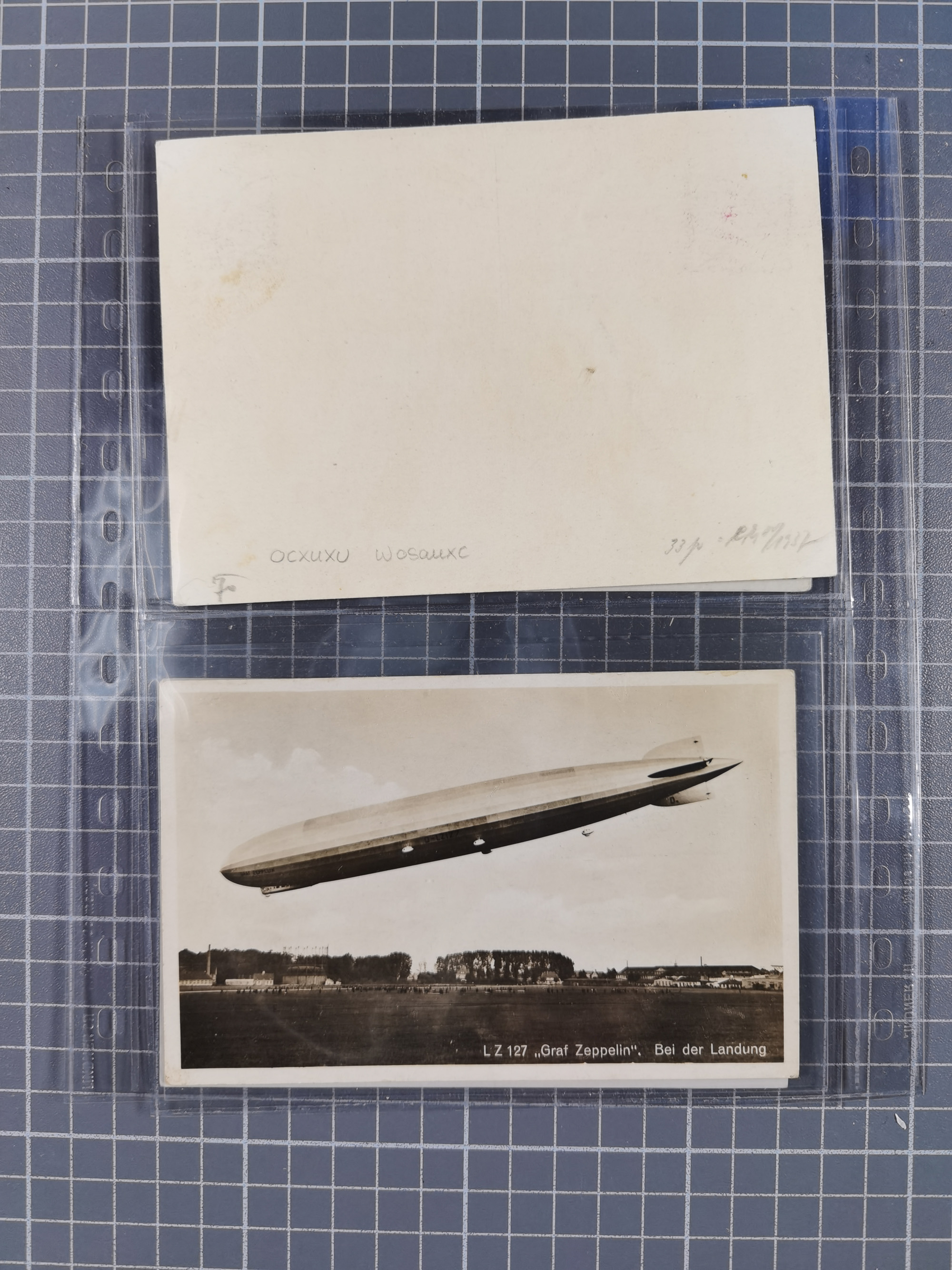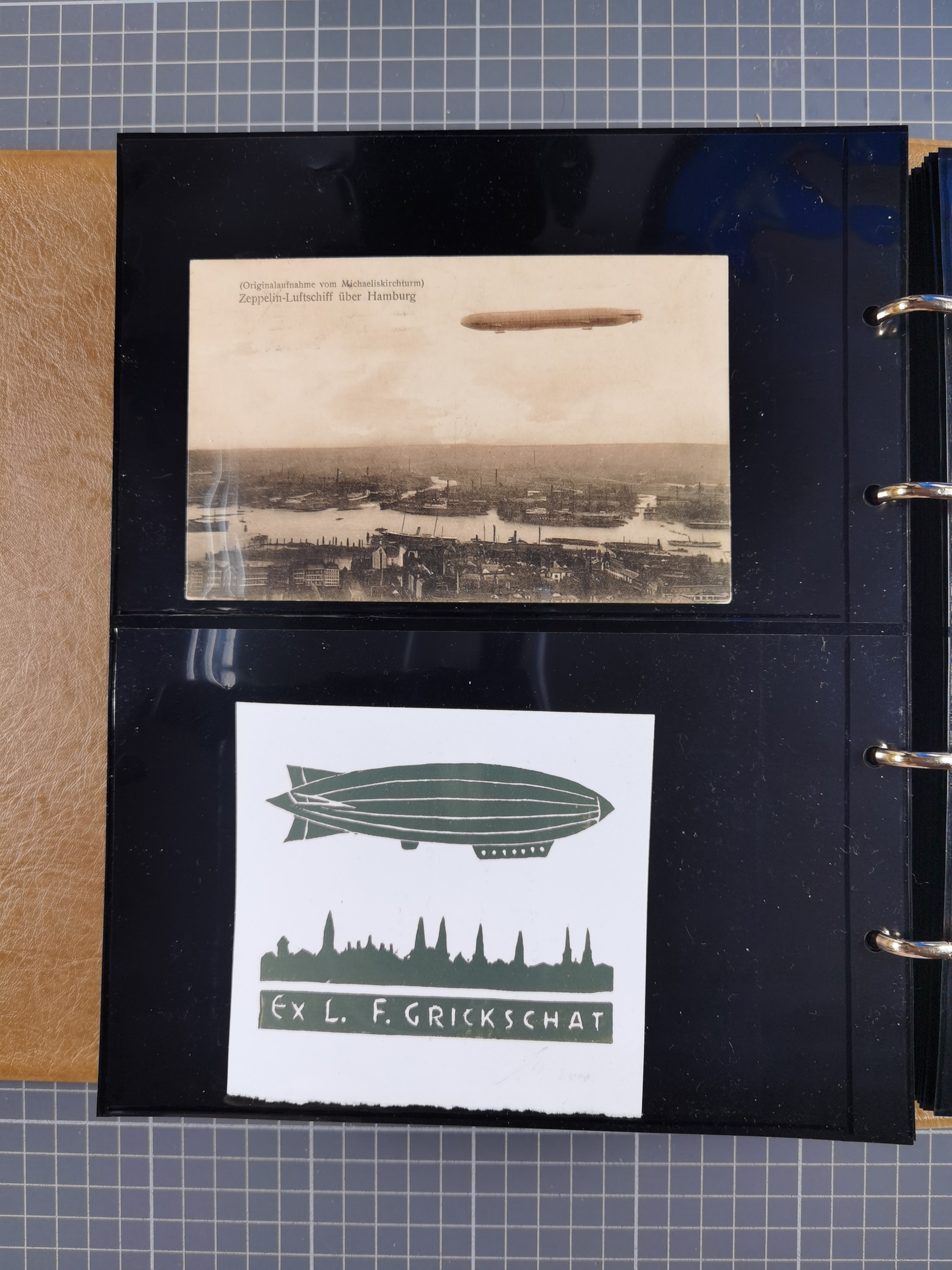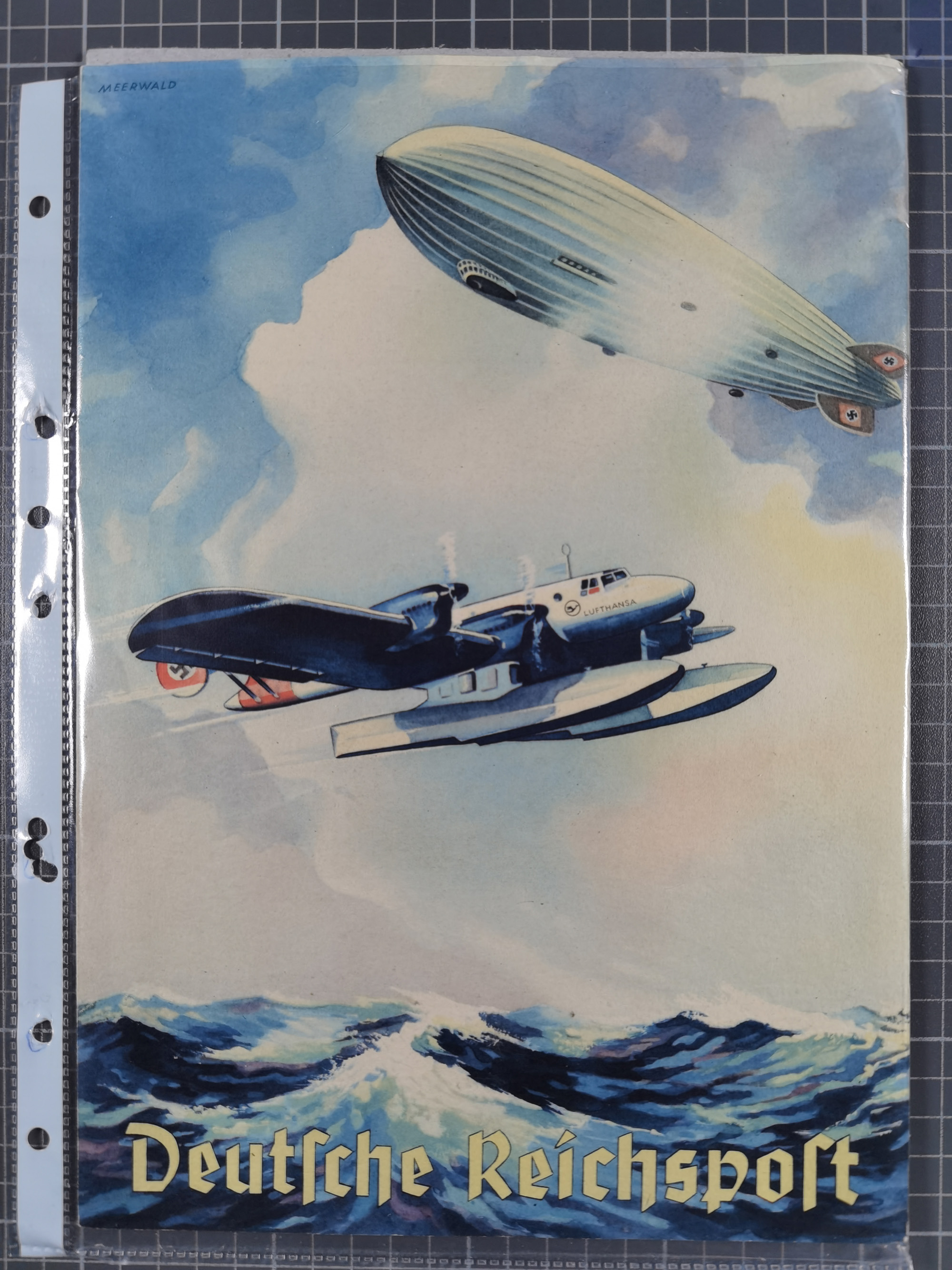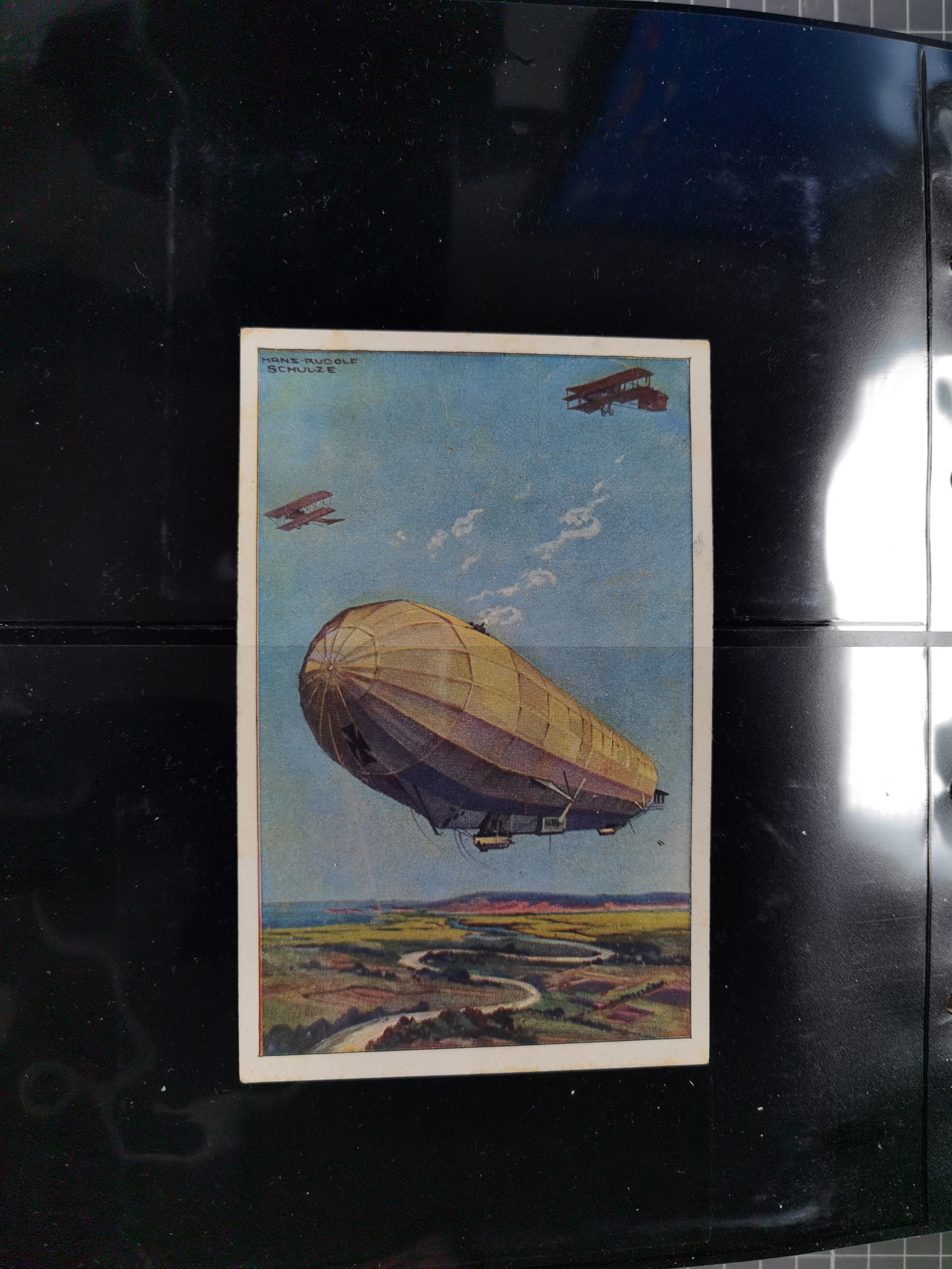 1912, “Deutsche Luftschiffahrts-Aktien violetter Kreisstempel auf Passier-Karte zum Luftschiffhafen Frankfurt mit Originalfoto einer Halle von innen und zwei ungebraucht/gebraucht Ansichtskarten mit Abbildung der „Victoria Louise”. Dazu “Wein-Karte” der Restauration Luftschiff-Halle mit acht eingeklebten Fotos, u.a. von der Victoria Luise