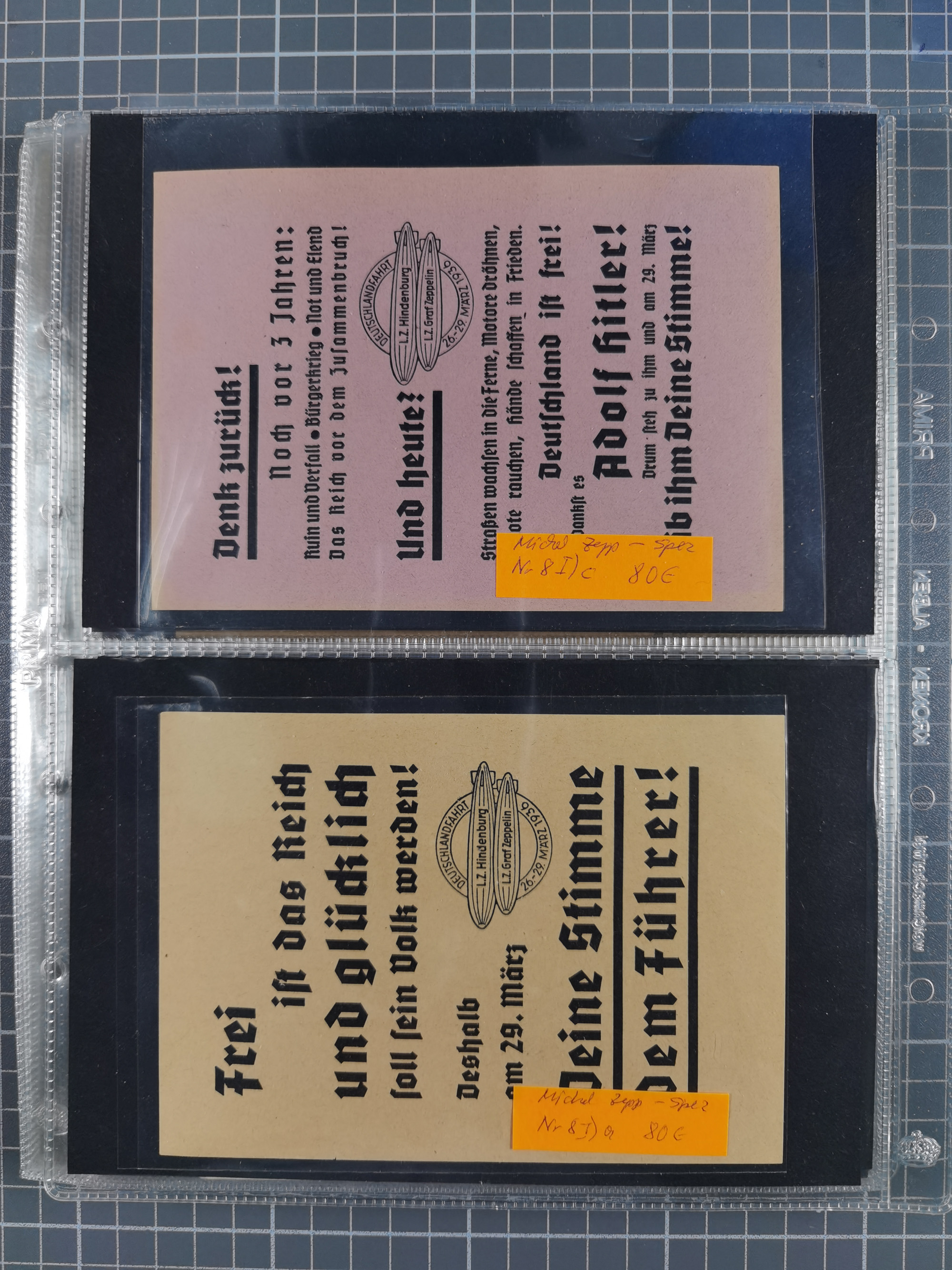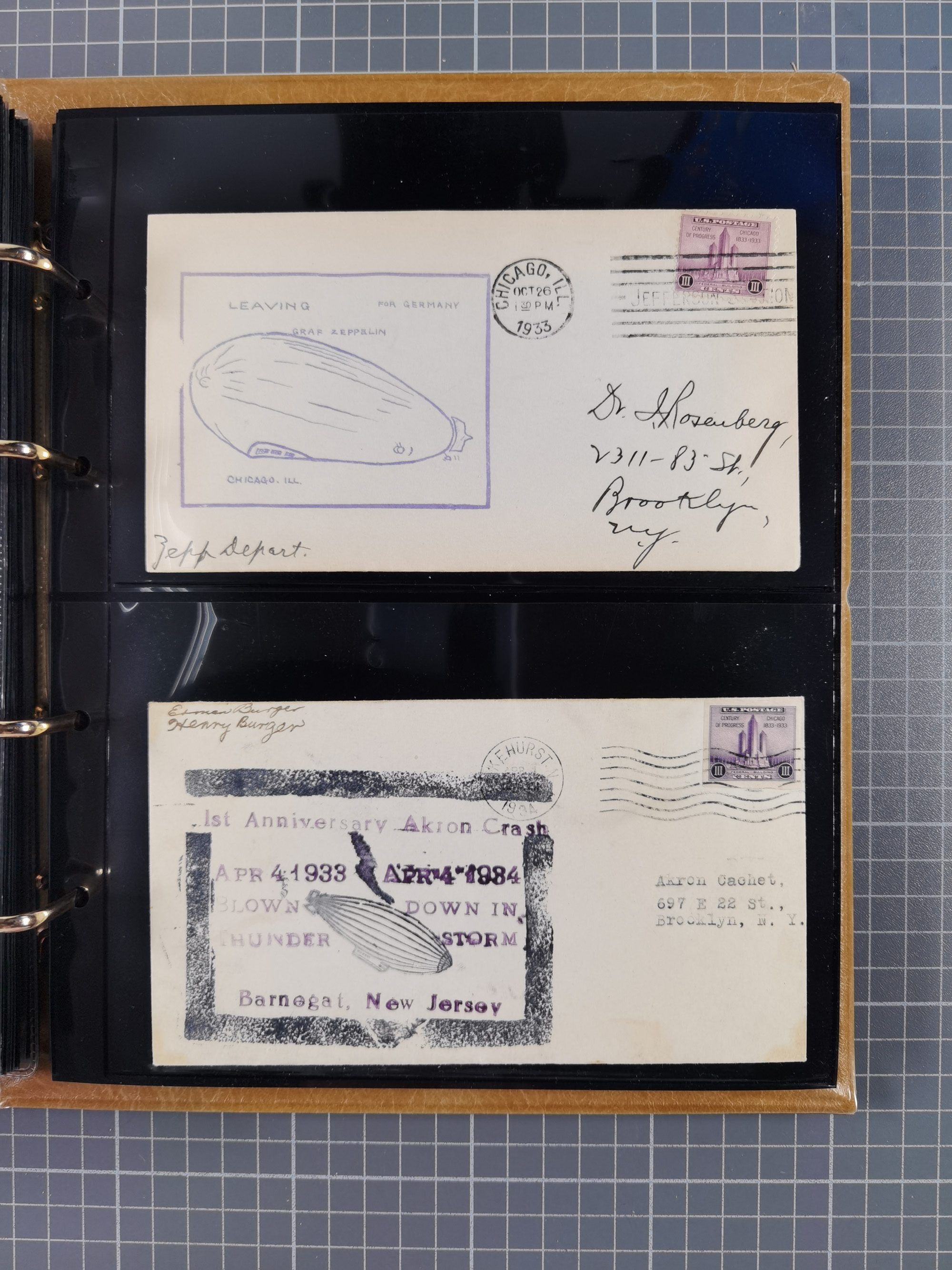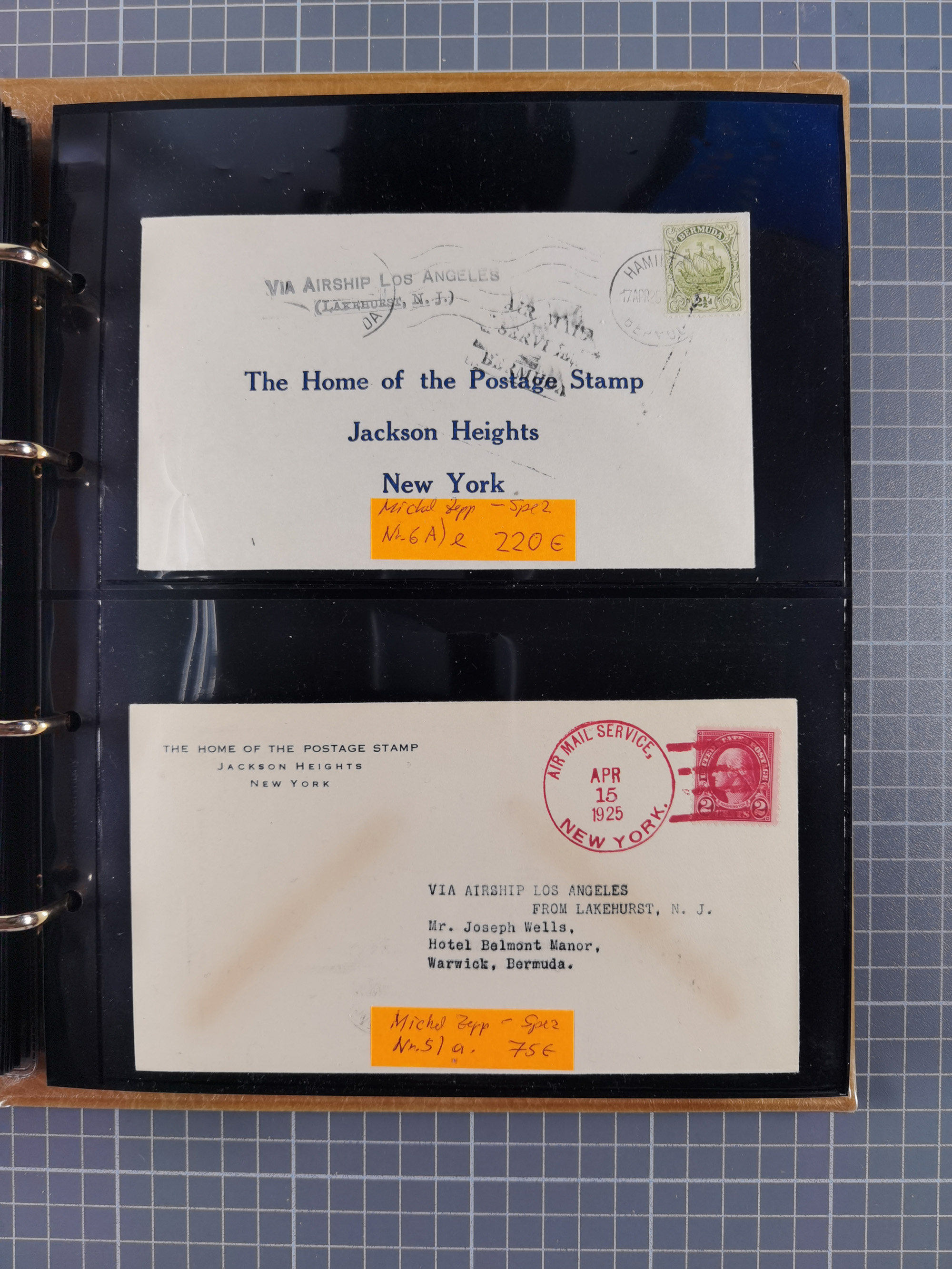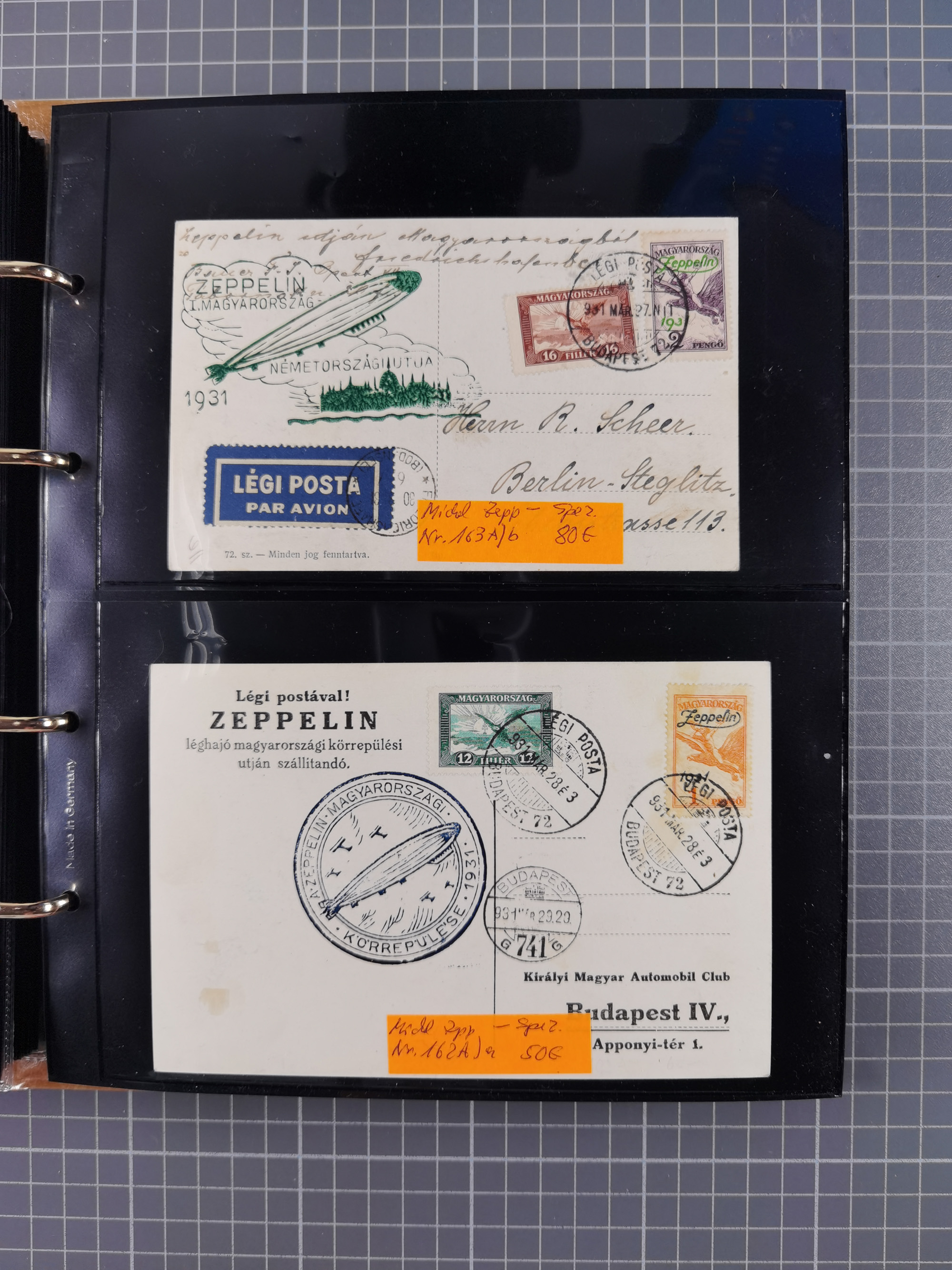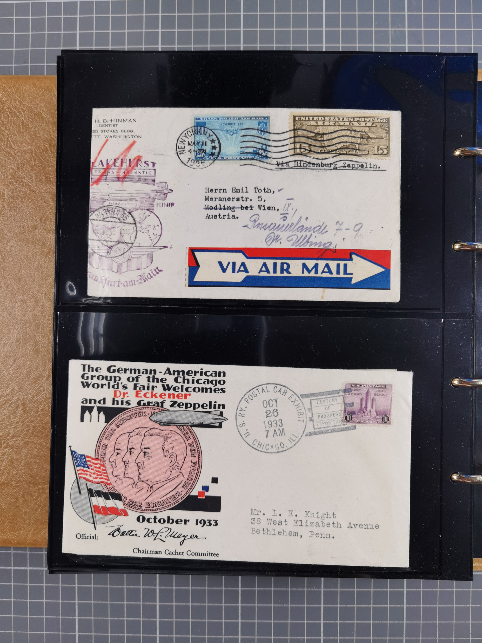 1913/36, Album mit 55 Zeppelinbriefen -Karten, (51 St. DR) dabei viele bessere Belege, u.a. DR großes Telegramm Luftschiff Hindenburg. Zeppelinkarte Viktoria Luise" und Hansa" (Sieger Nr. 4 und 6 II) Zeppelinbrief mit 1 und 2 RM Chicagofahrt!, Zeppelinkarte Nordpolarfahrt Zuleitung Niederlande. 2. SAF 1933, Zuleitung franz. Andorra, Zeppelin-Karte mit 2. SAF 1931 Hin- und Rückfahrt mit brasilianischer und deutscher Frankatur (2 x 1 RM Zeppelin) 10 Zeppelinbriefe/Karten mit 1.2 und 4 RM Zeppelin, meist gute Erhaltung