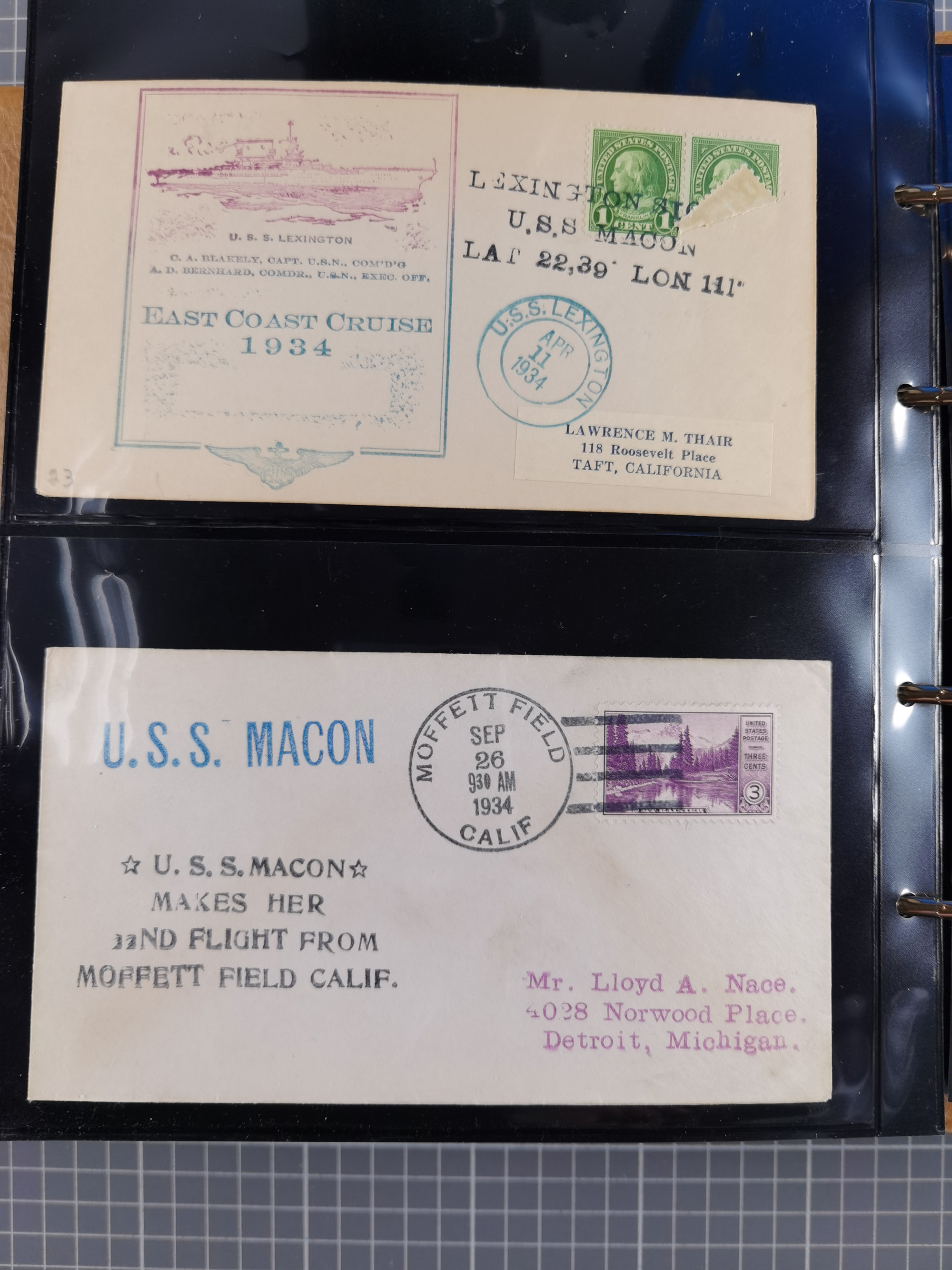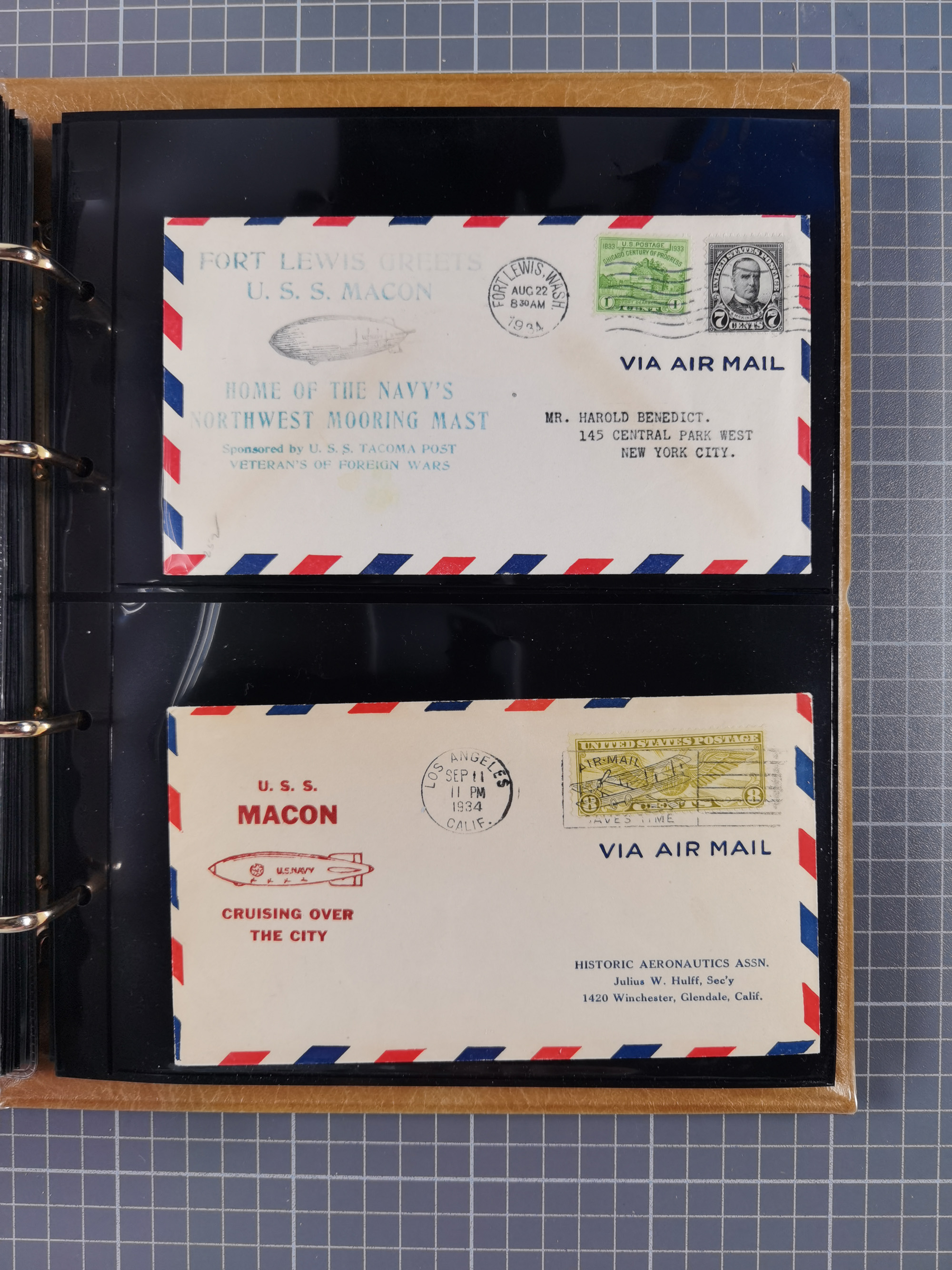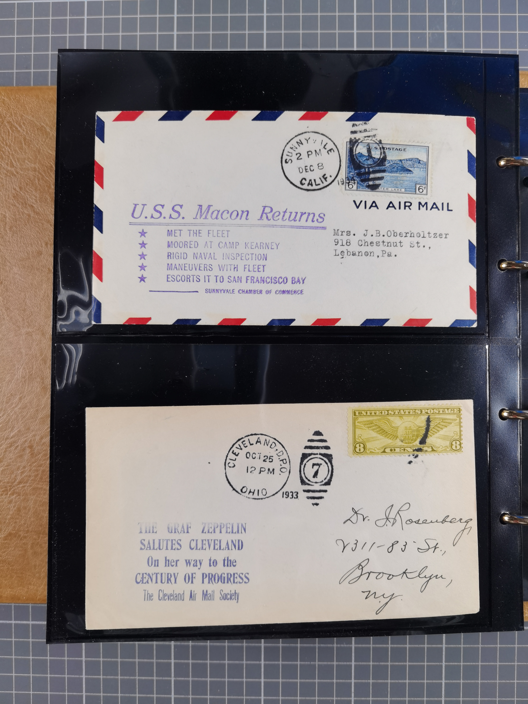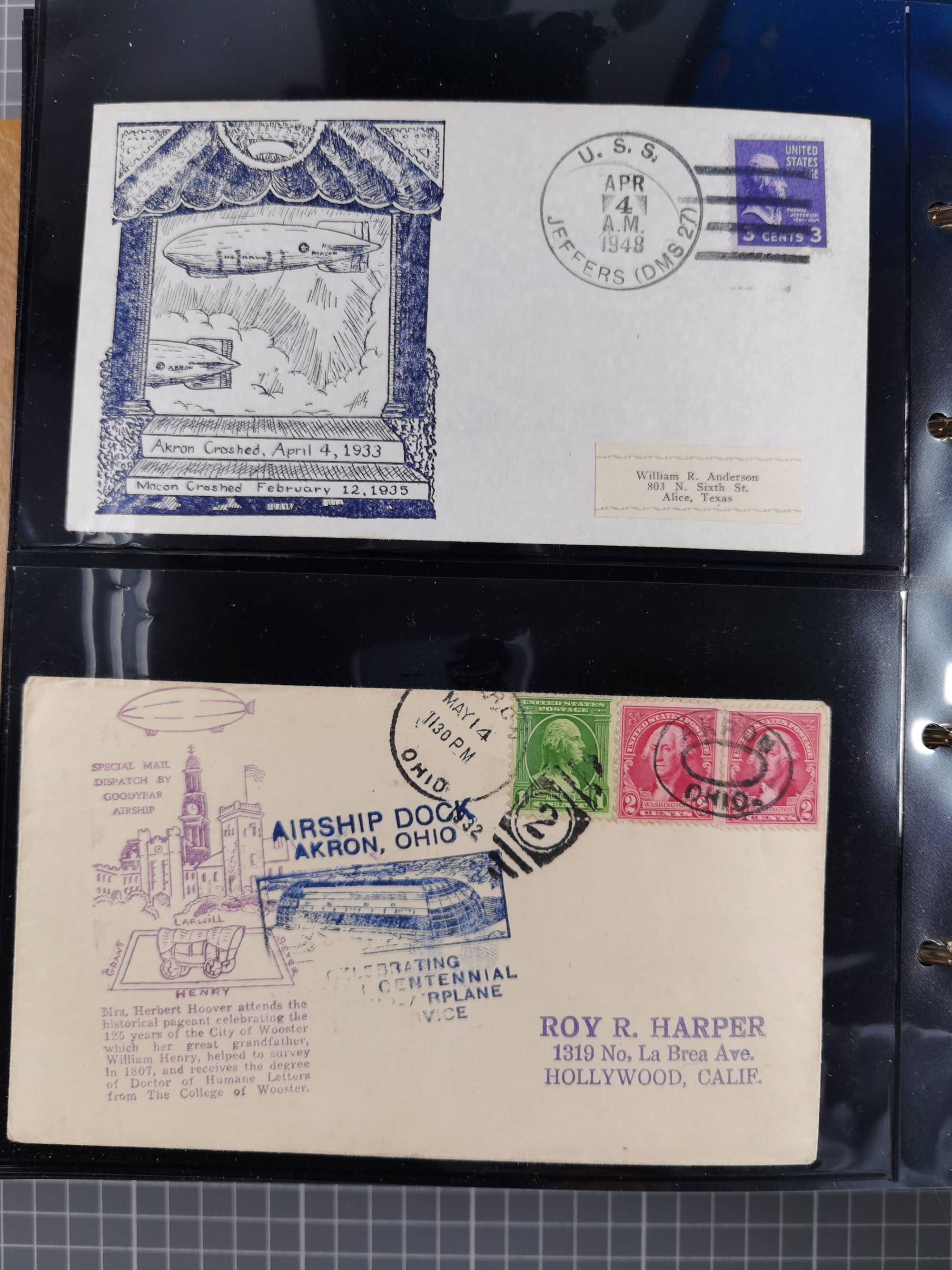 1929, Weltrundfahrt, kleine Sammlung der amerikanischen Post mit 17 Briefen und Ganzsachen, dabei verschiedene Etappen und interessante Frankaturen, alles auf Albenblättern