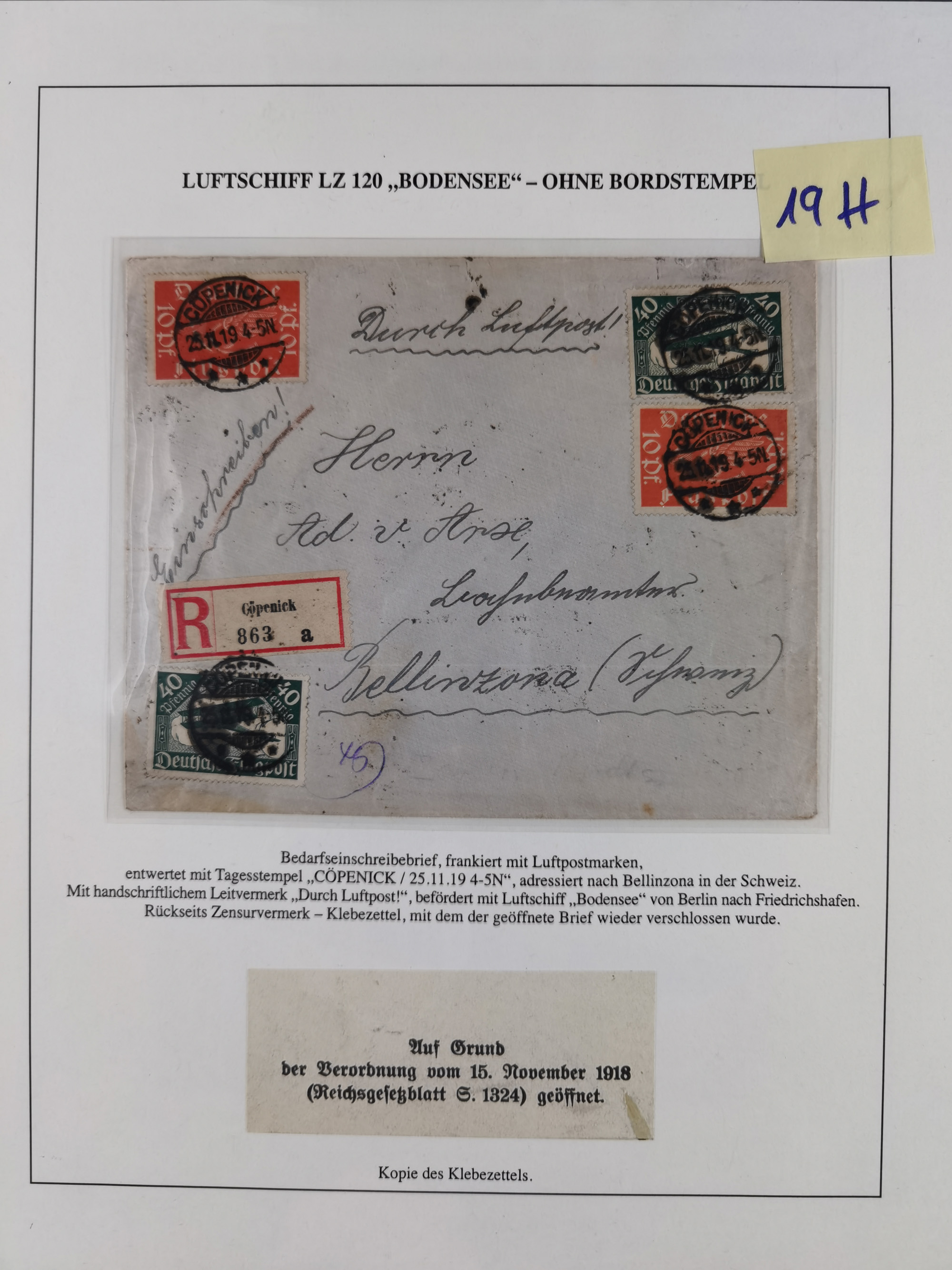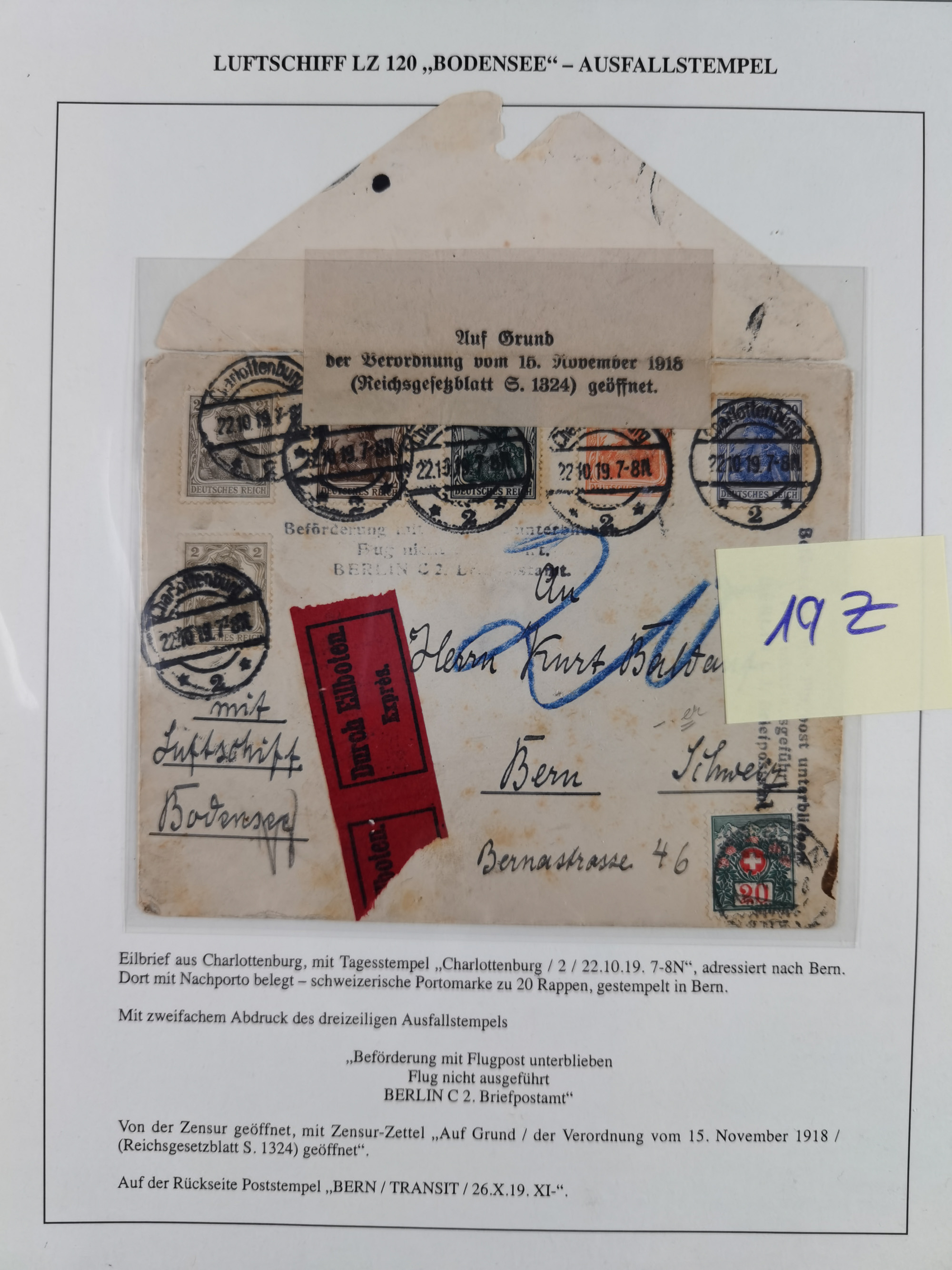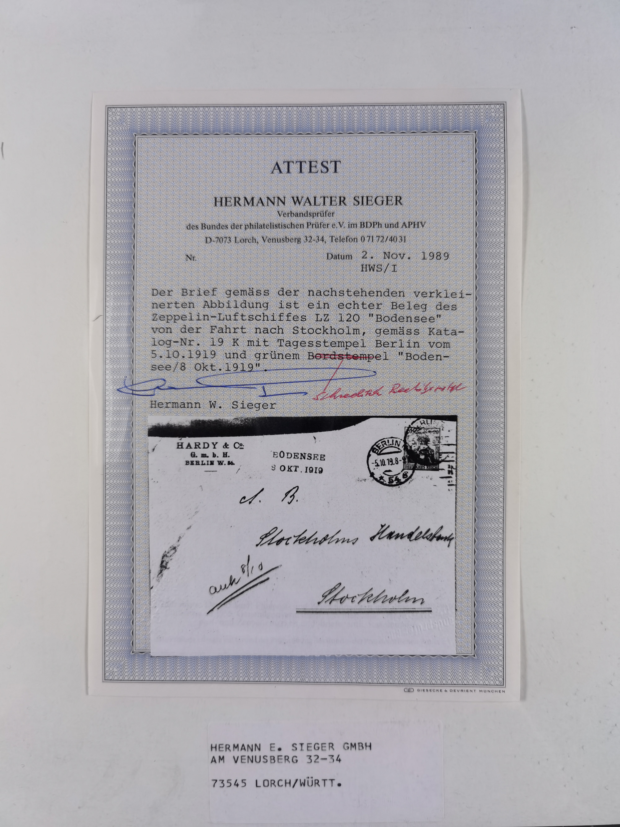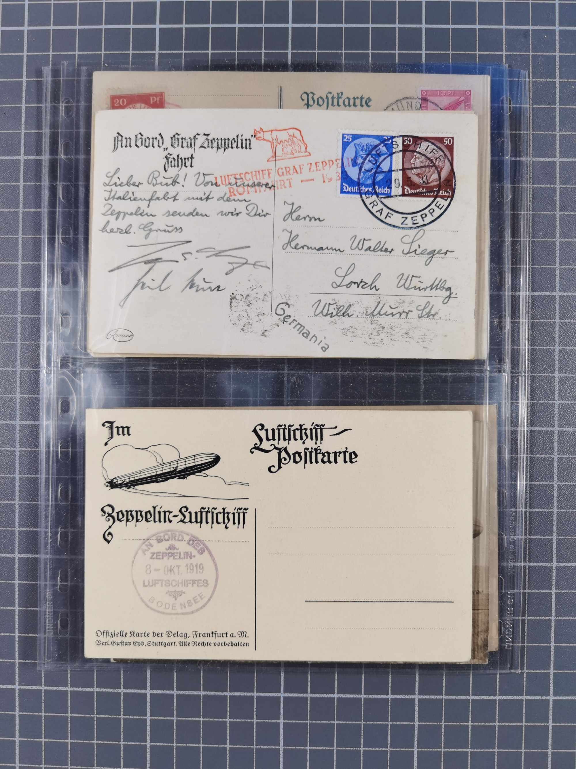 1919/1933, fast 30 Briefe und Karten mit Schwerpunkt bei der “Bodensee”-Post mit u.a. Sieger Nr. 19A, 19Ac, 19Ae, zwei fehlerhafte Briefe 19K (1x mit FA Sieger BPP), 33p und mehrere Karten 1931-33 mit Bordpoststempel, meist in guter Erhaltung