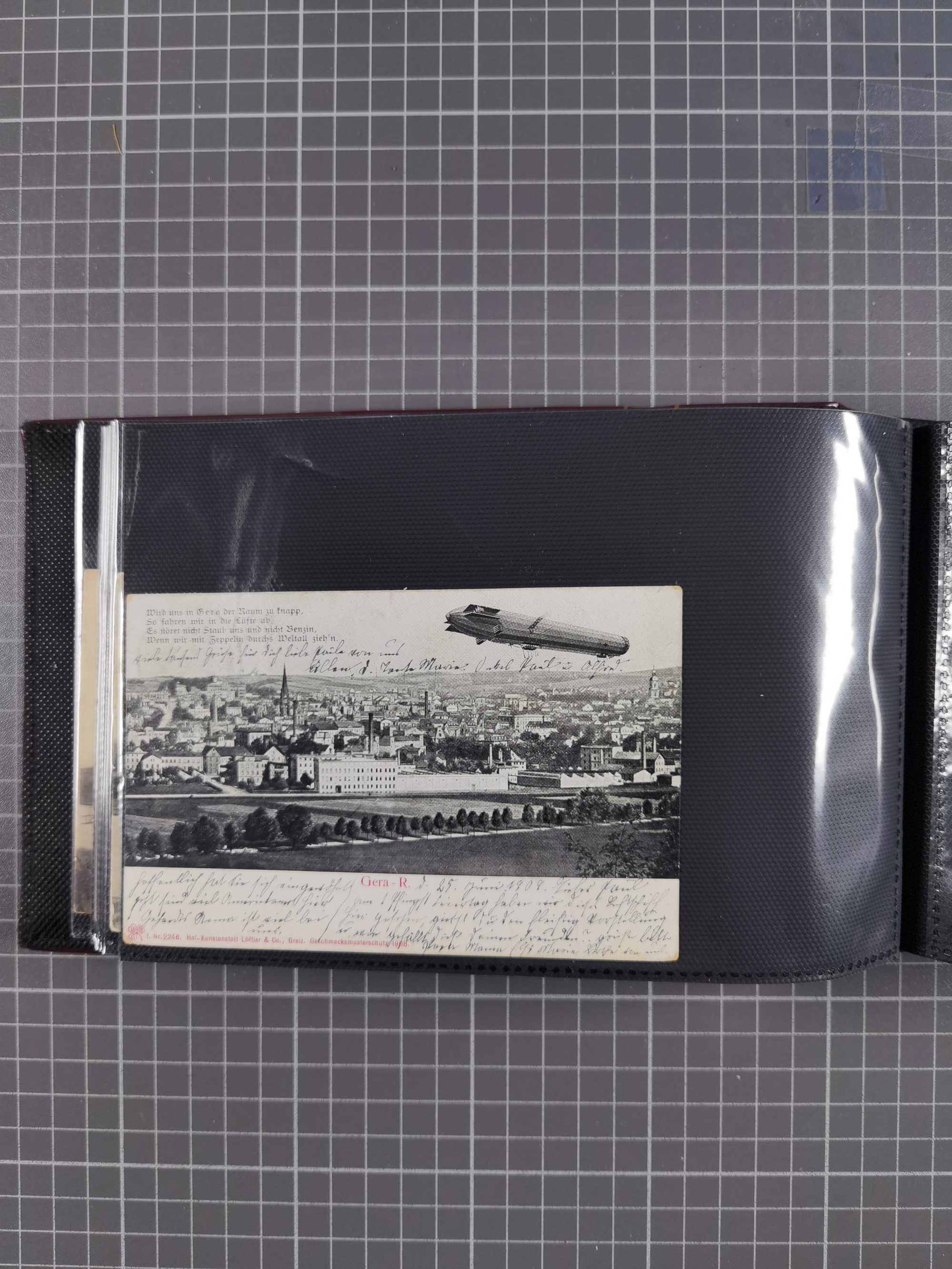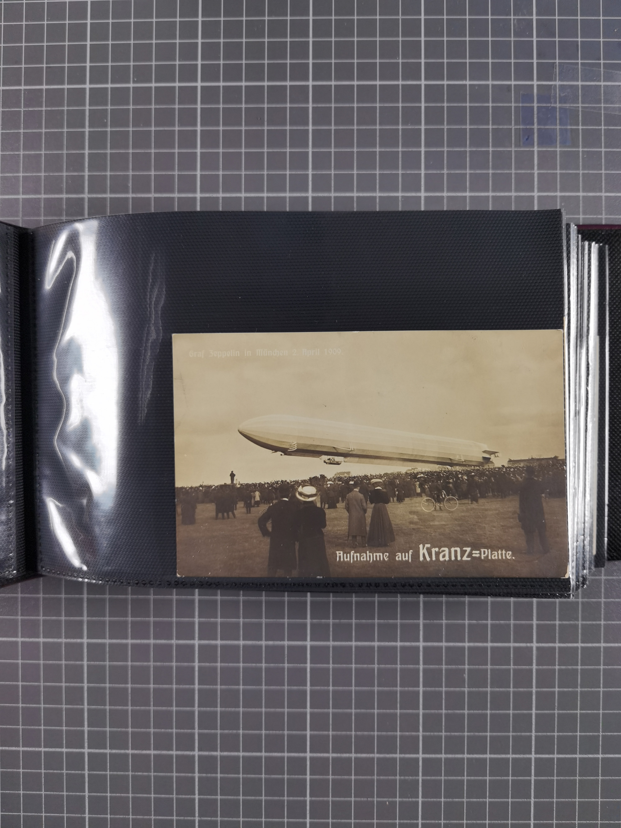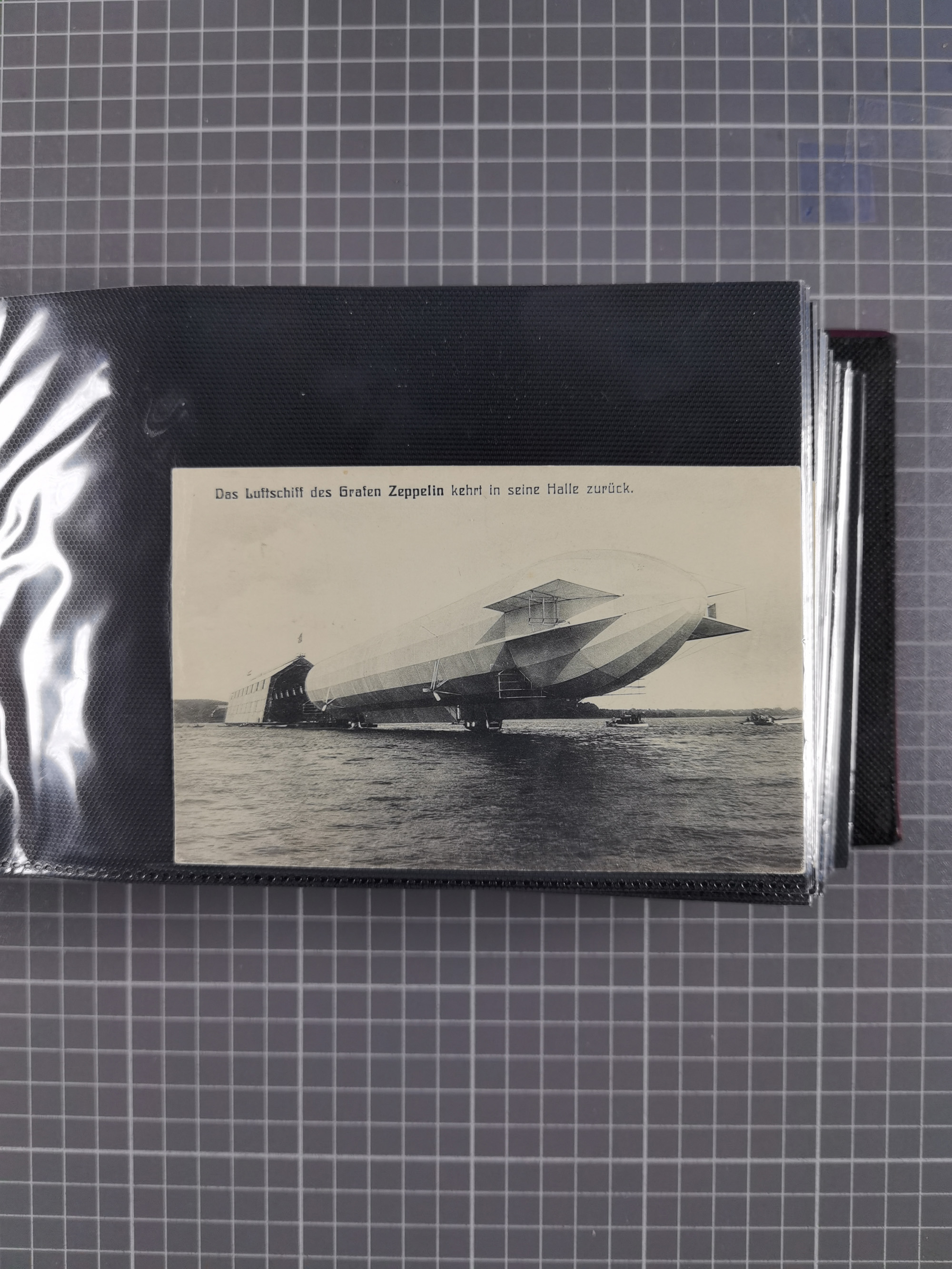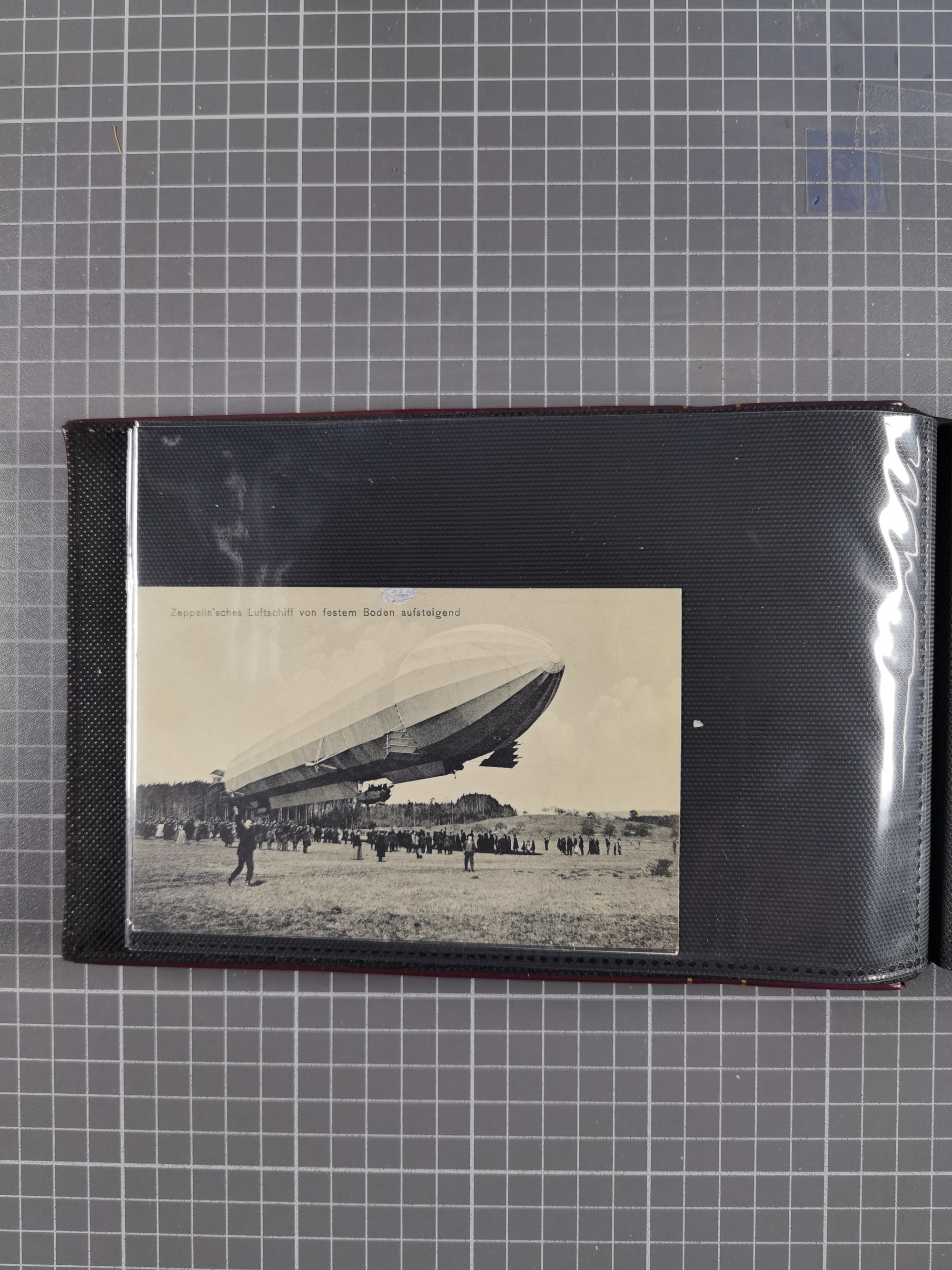 1907/38, Album 100 Zeppelin-Ansichtskarten, dabei 64 Karten bis 1914 (52 AK Deutsches Reich) mit vielen seltenen Ansichten, meist gute Erhaltung