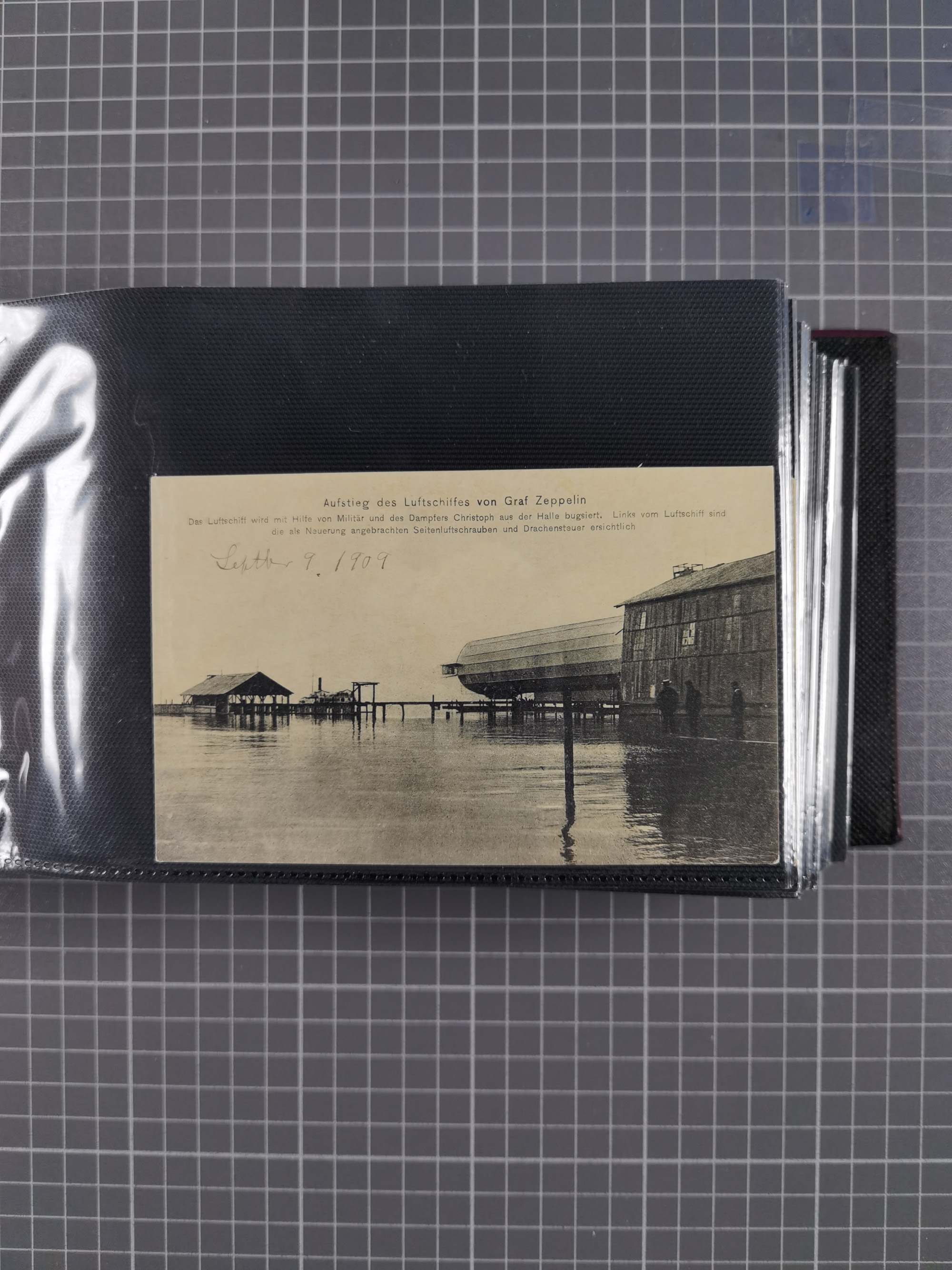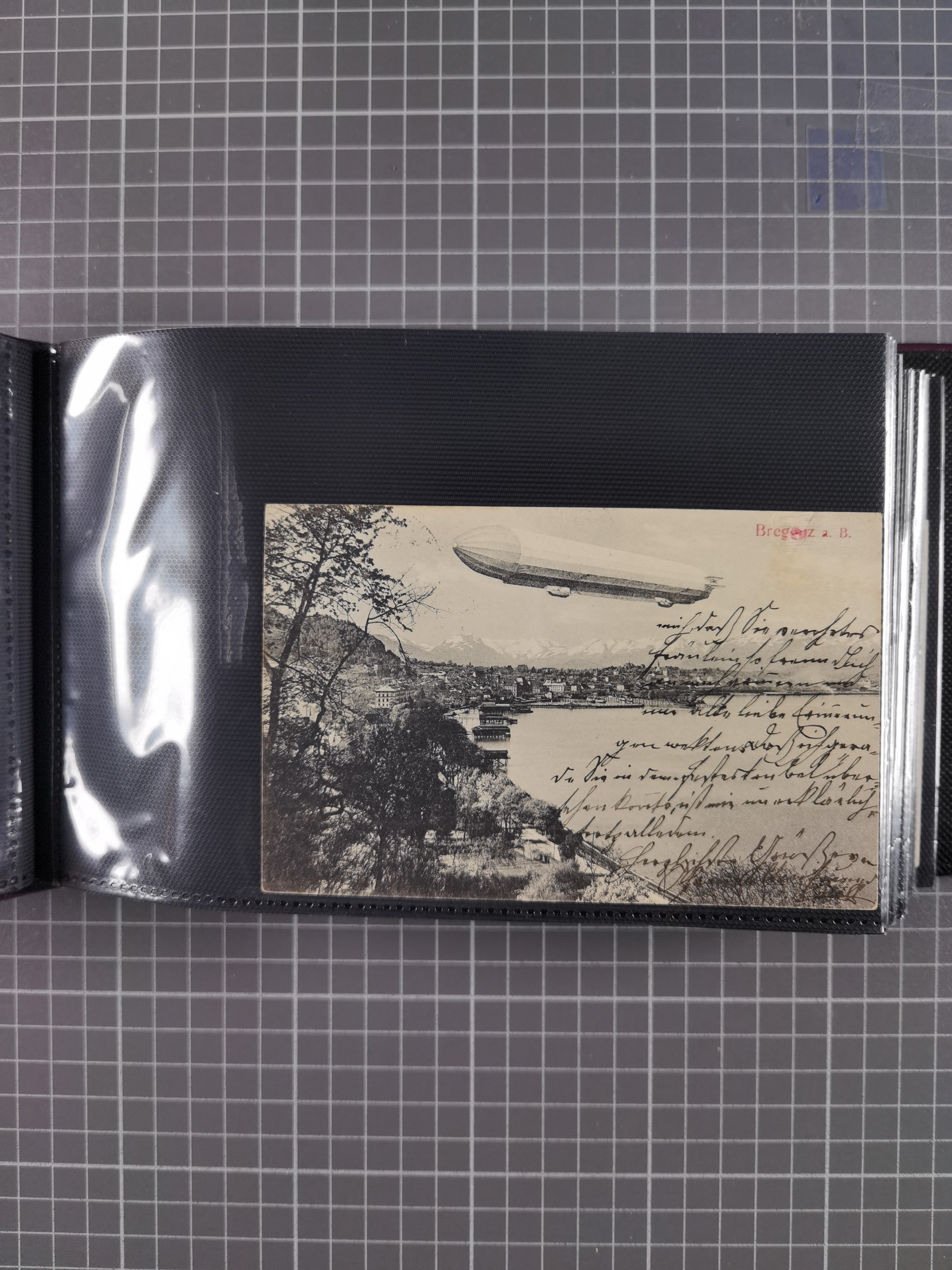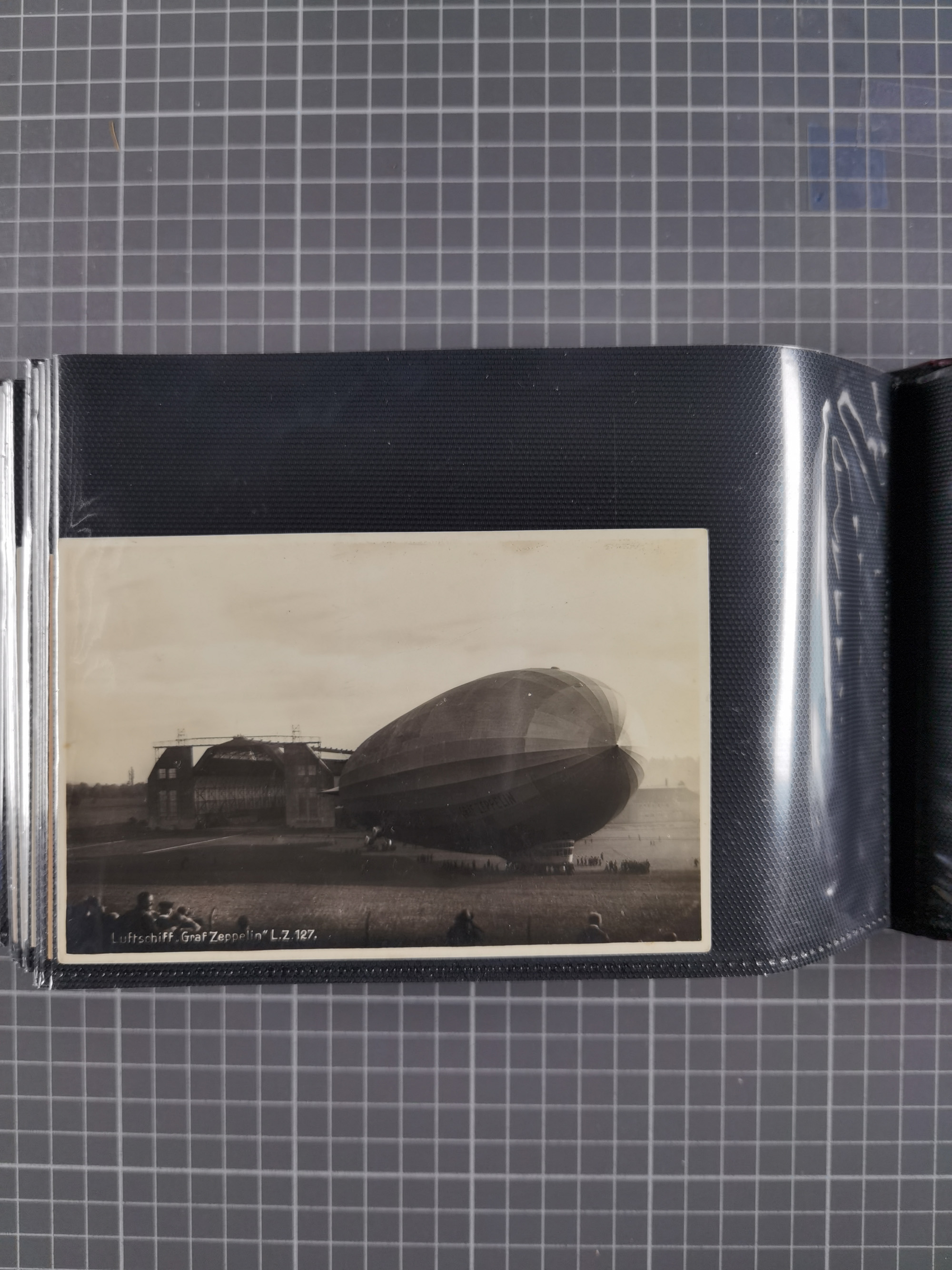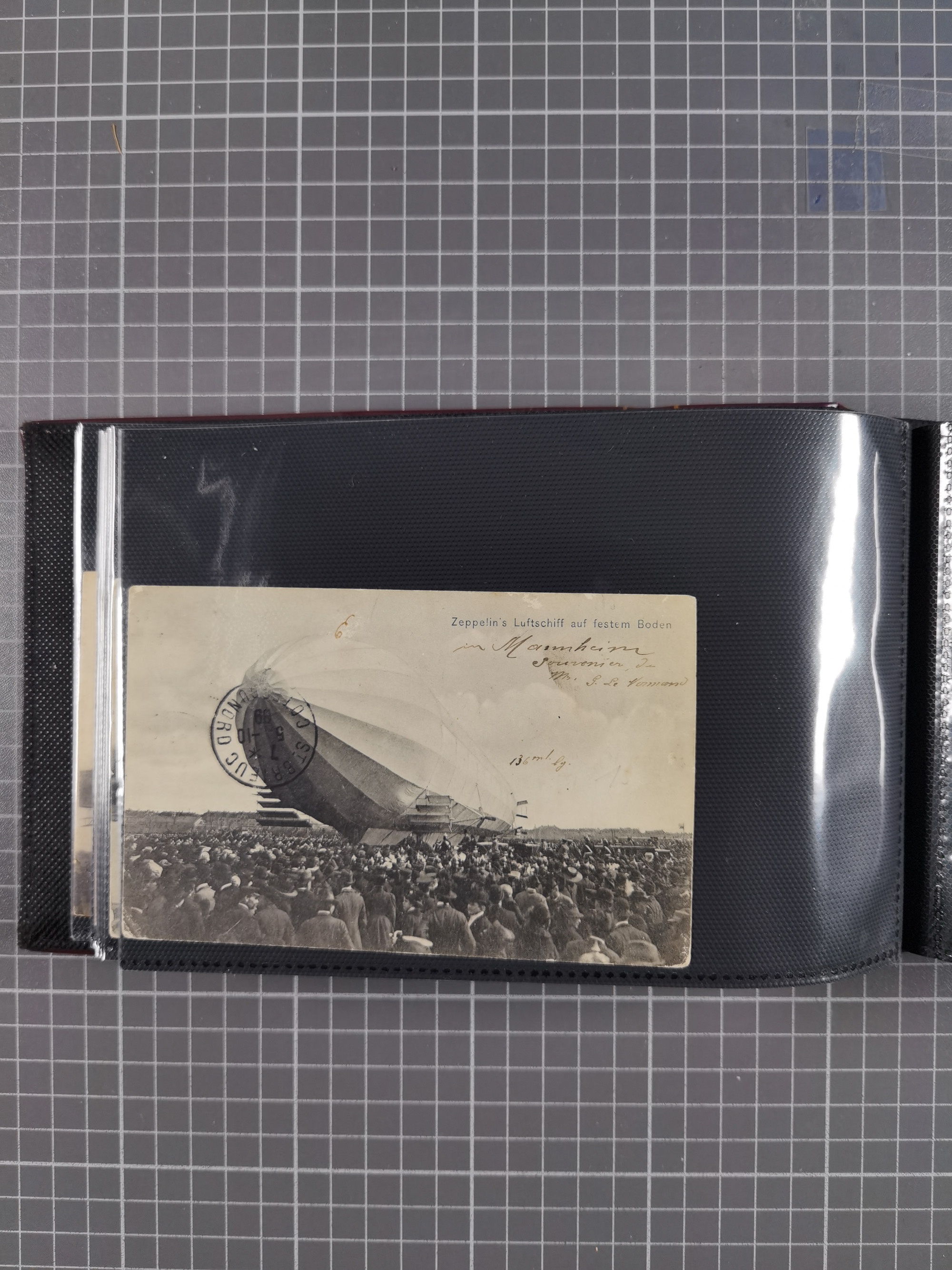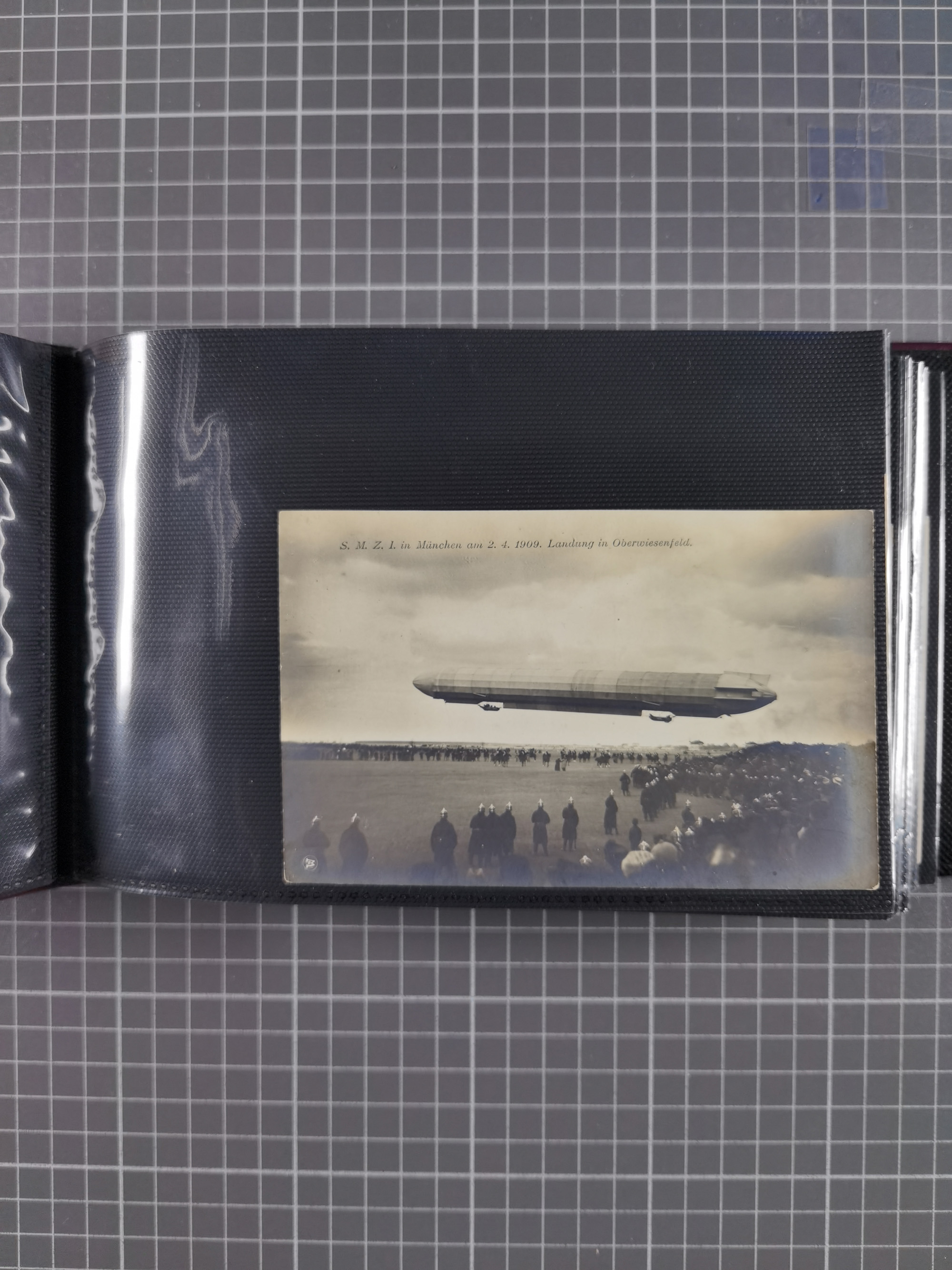 1907/38, Album 100 Zeppelin-Ansichtskarten, dabei 64 Karten bis 1914 (52 AK Deutsches Reich) mit vielen seltenen Ansichten, meist gute Erhaltung