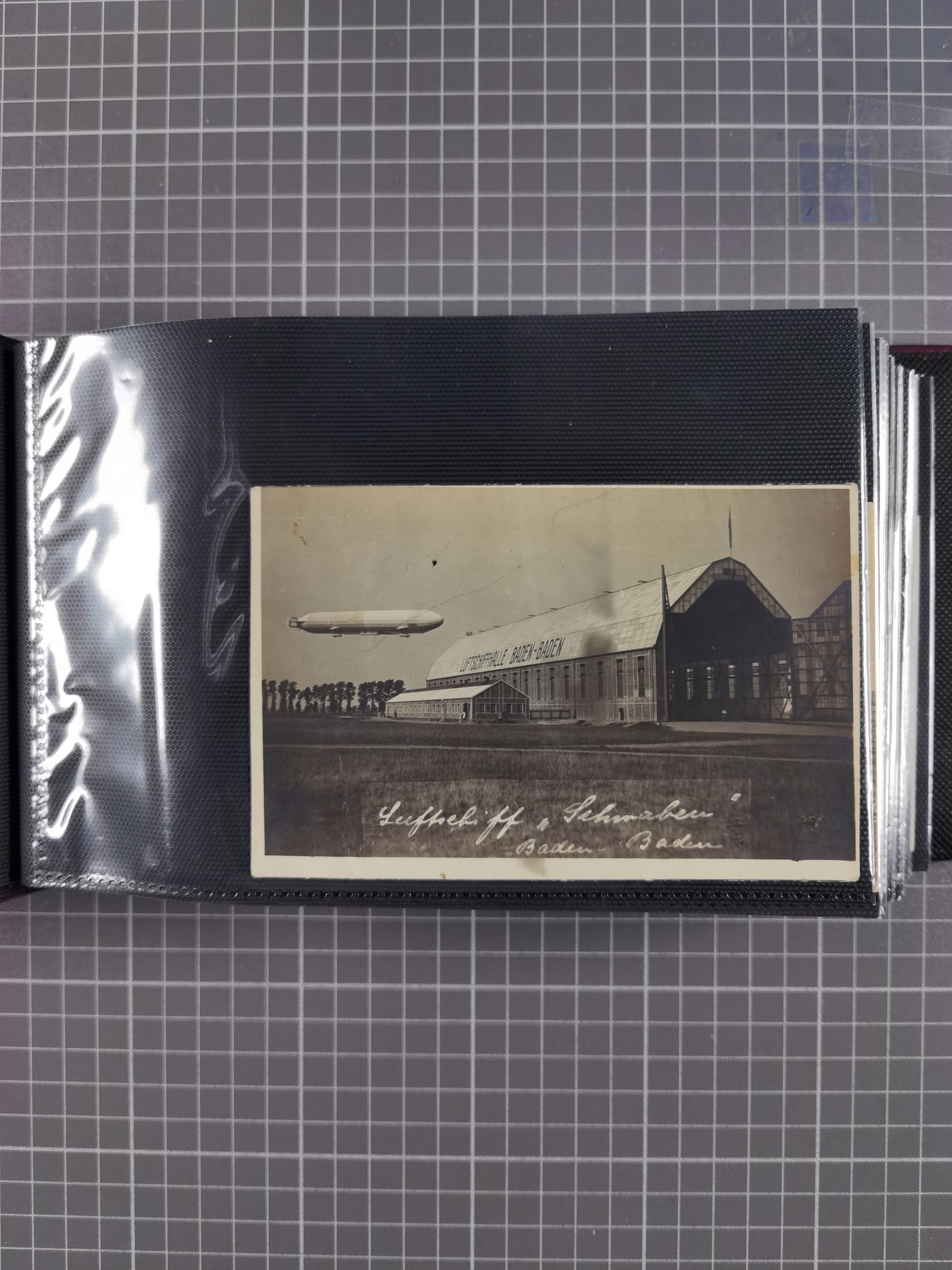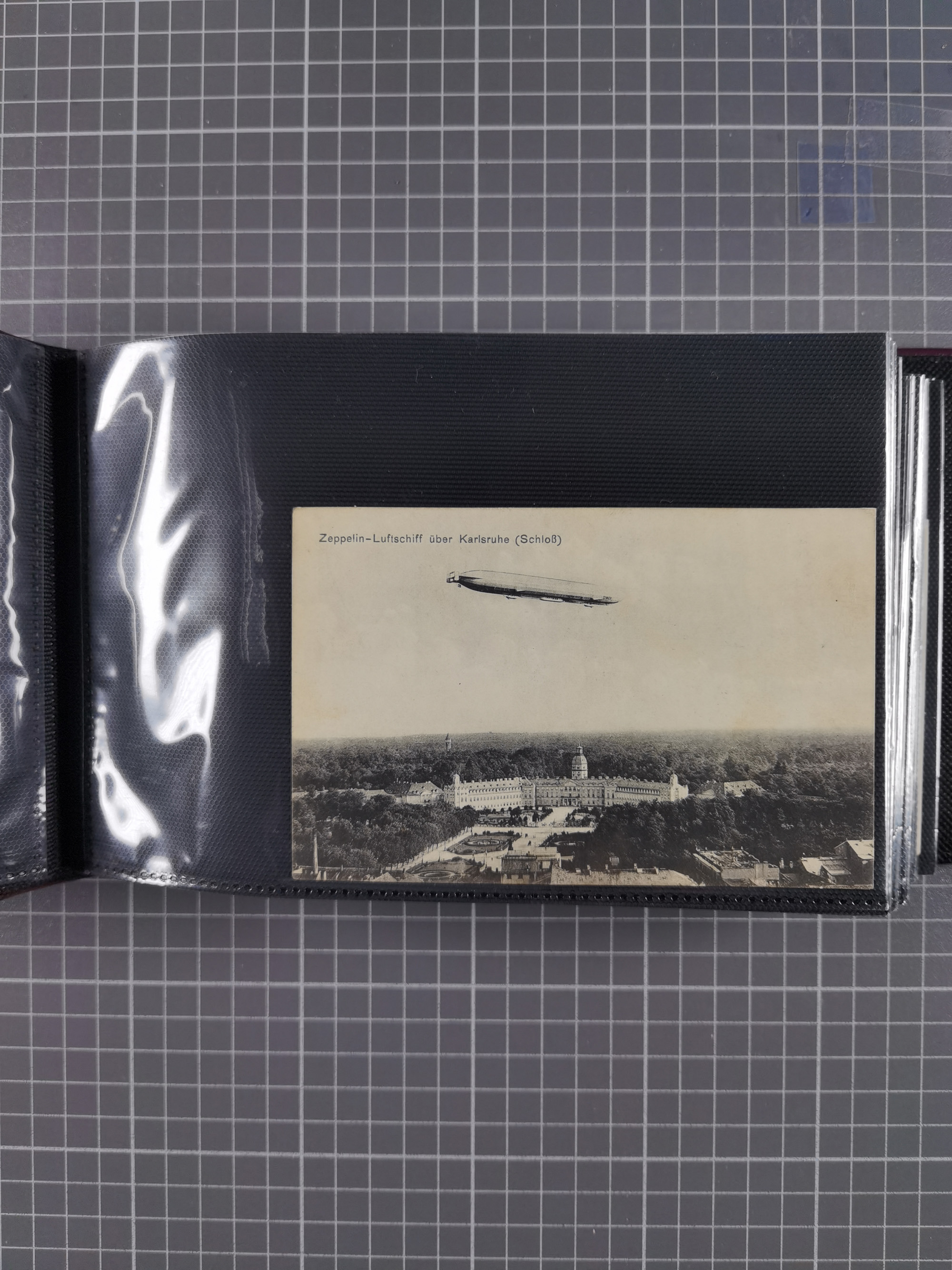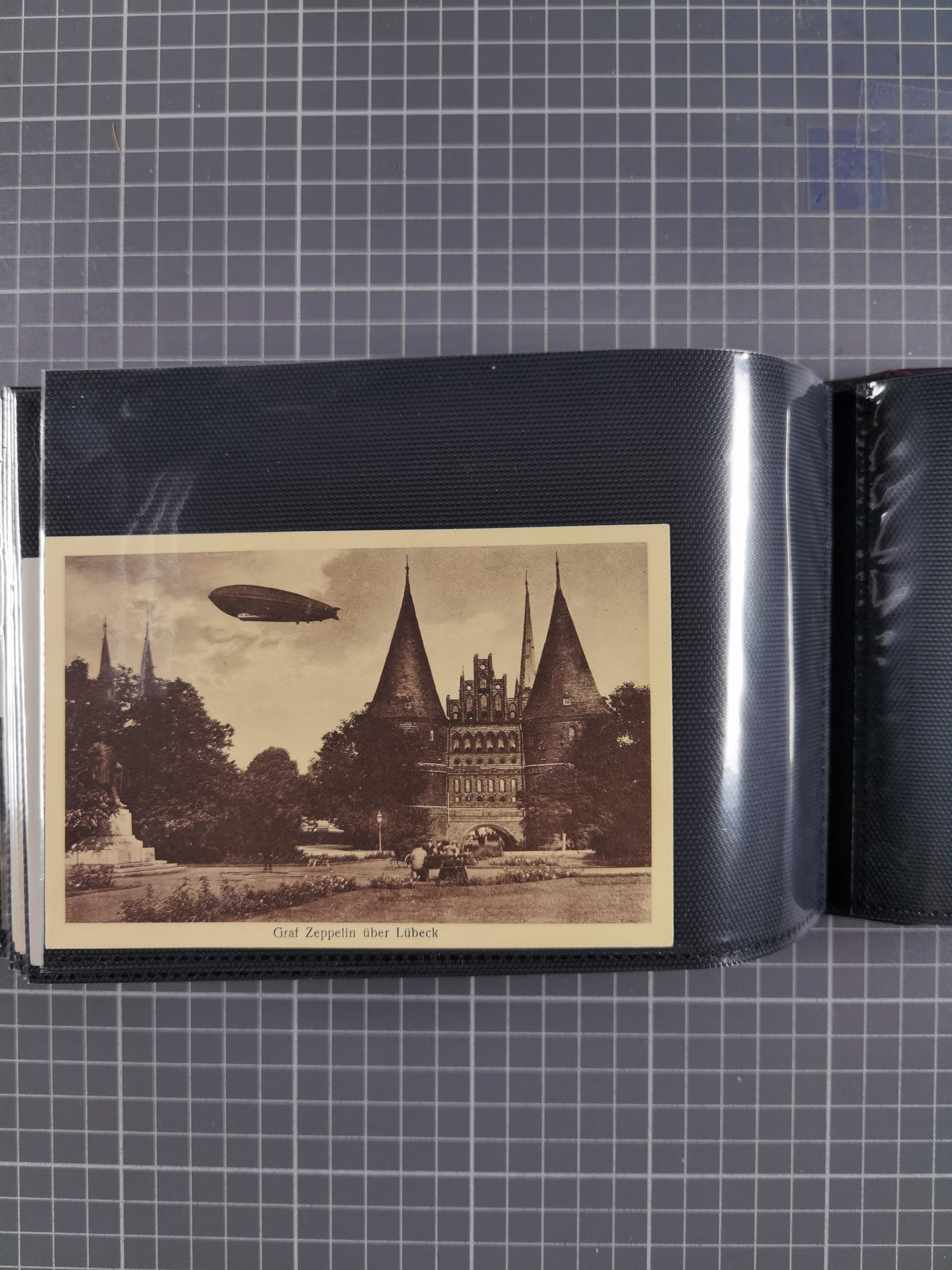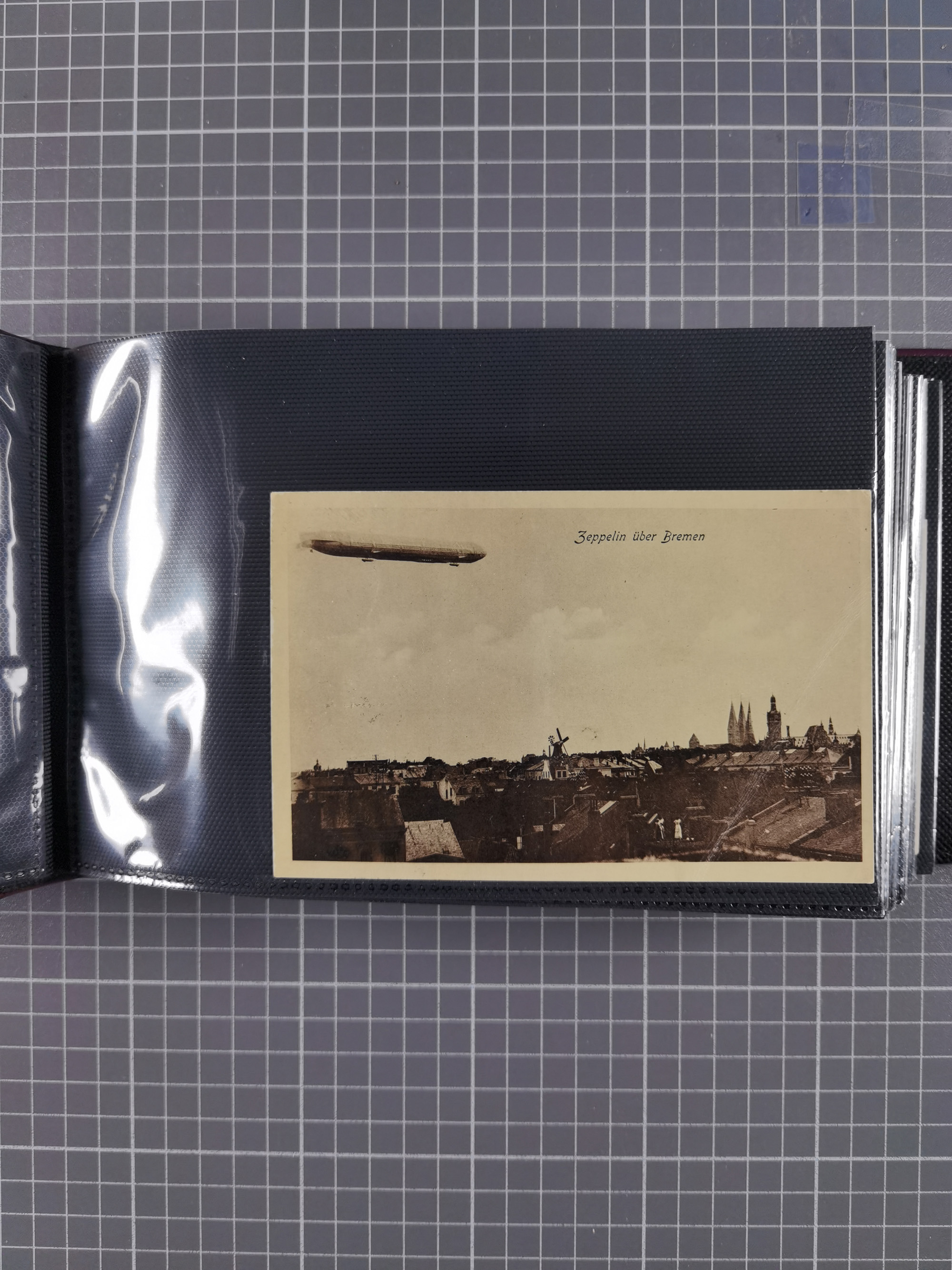 1907/38, Album 100 Zeppelin-Ansichtskarten, dabei 64 Karten bis 1914 (52 AK Deutsches Reich) mit vielen seltenen Ansichten, meist gute Erhaltung