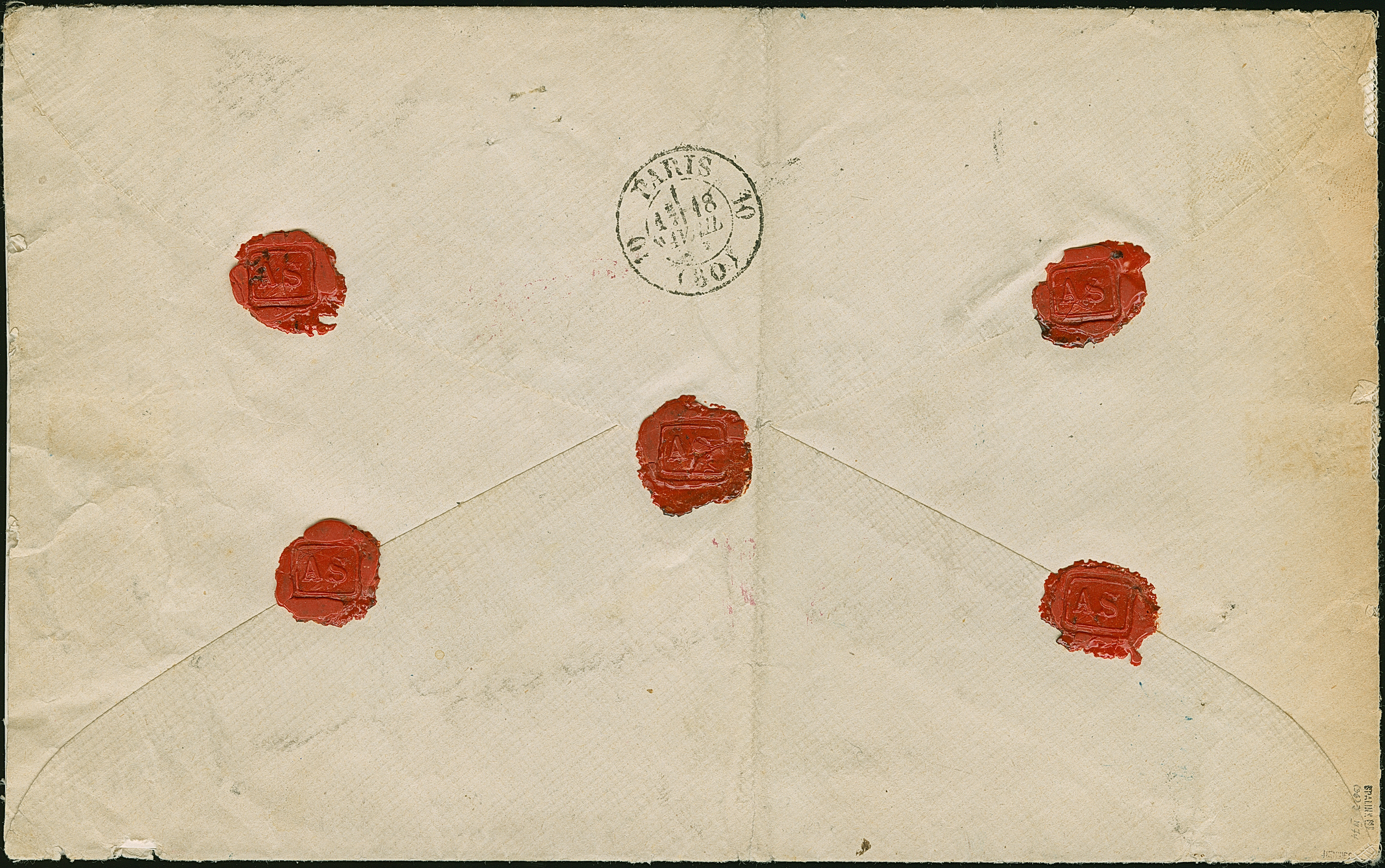 “STRASSBURG i. ELS. 6.MAI.72” (Spalink 36-1) zweimal recht klar auf waagerechtem Paar kleiner Schild 2 Gr. grauultramarin auf komplettem Faltbrief der 2. Gewichtsstufe in Mischfrankatur mit waagerechtem Paar Ceres 25 C. mit DKr. “PARIS ETRANGER 7.MAI.72” nach Paris. Die farbfrischen Brustschildmarken sind gut geprägt und bis auf zwei kurze Zähne gut gezähnt und in einwandfreier Erhaltung, das waagerechte Paar 25 C. ist bis auf einen kurzen Zahn bei der rechten Marke wie der Faltbrief in einwandfreier Erhaltung. Eine dekorative Doppelfrankatur aus der letzten Periode, wobei für den französischen Portoanteil 40 Centimes gereicht hätten, Fotoattest Krug BPP (2020)