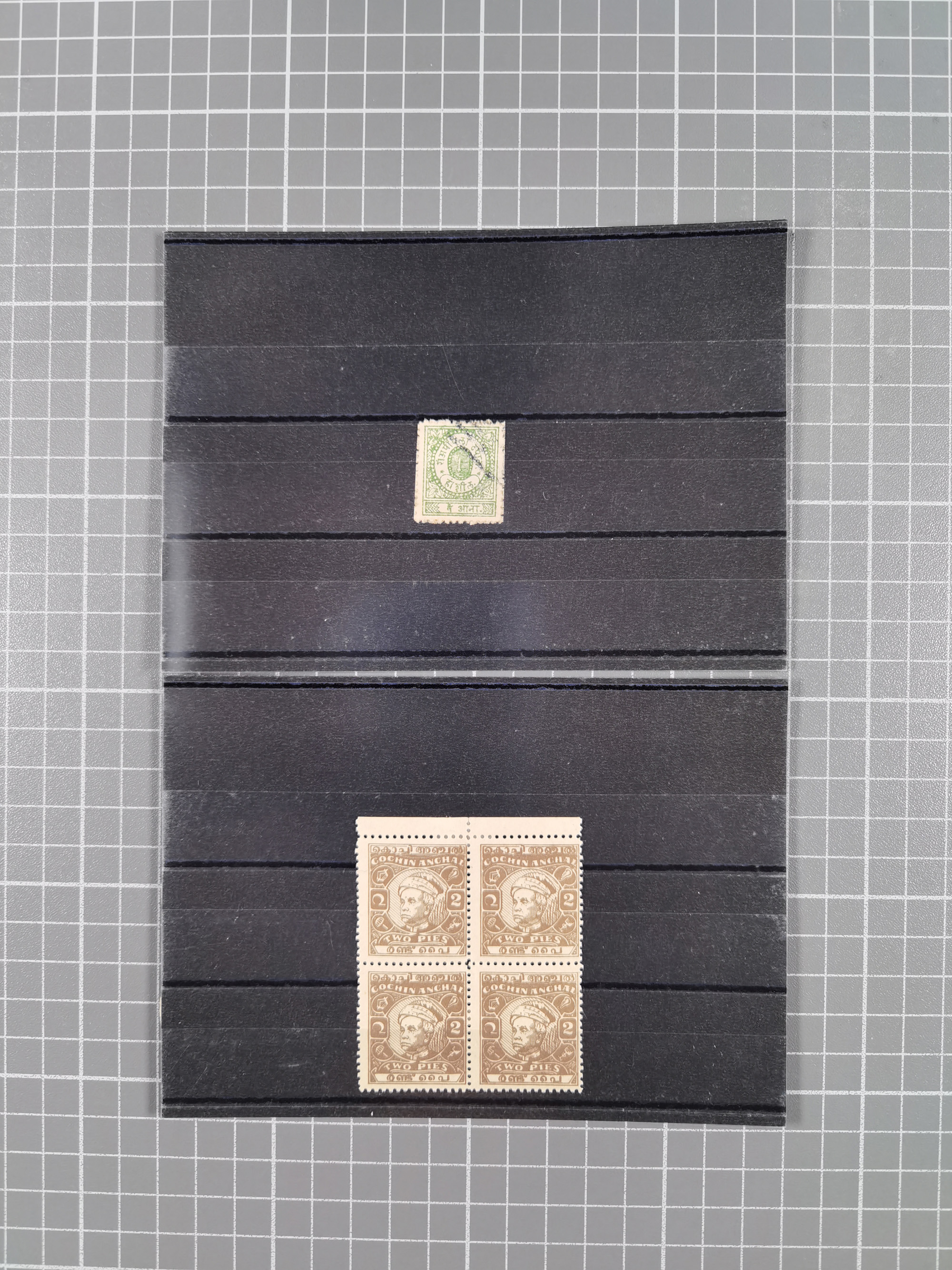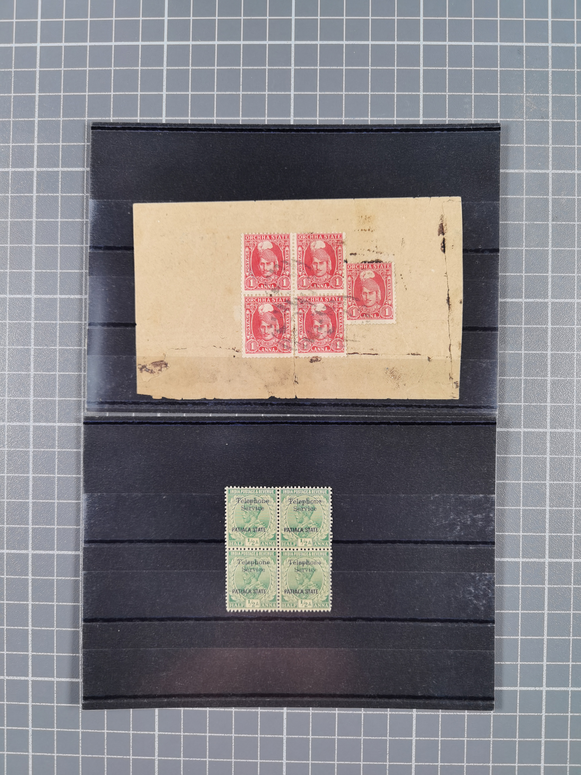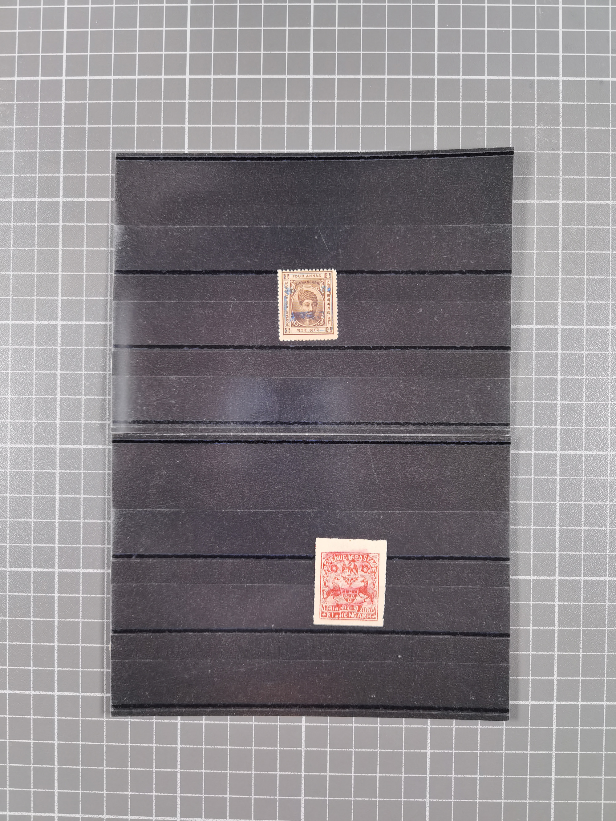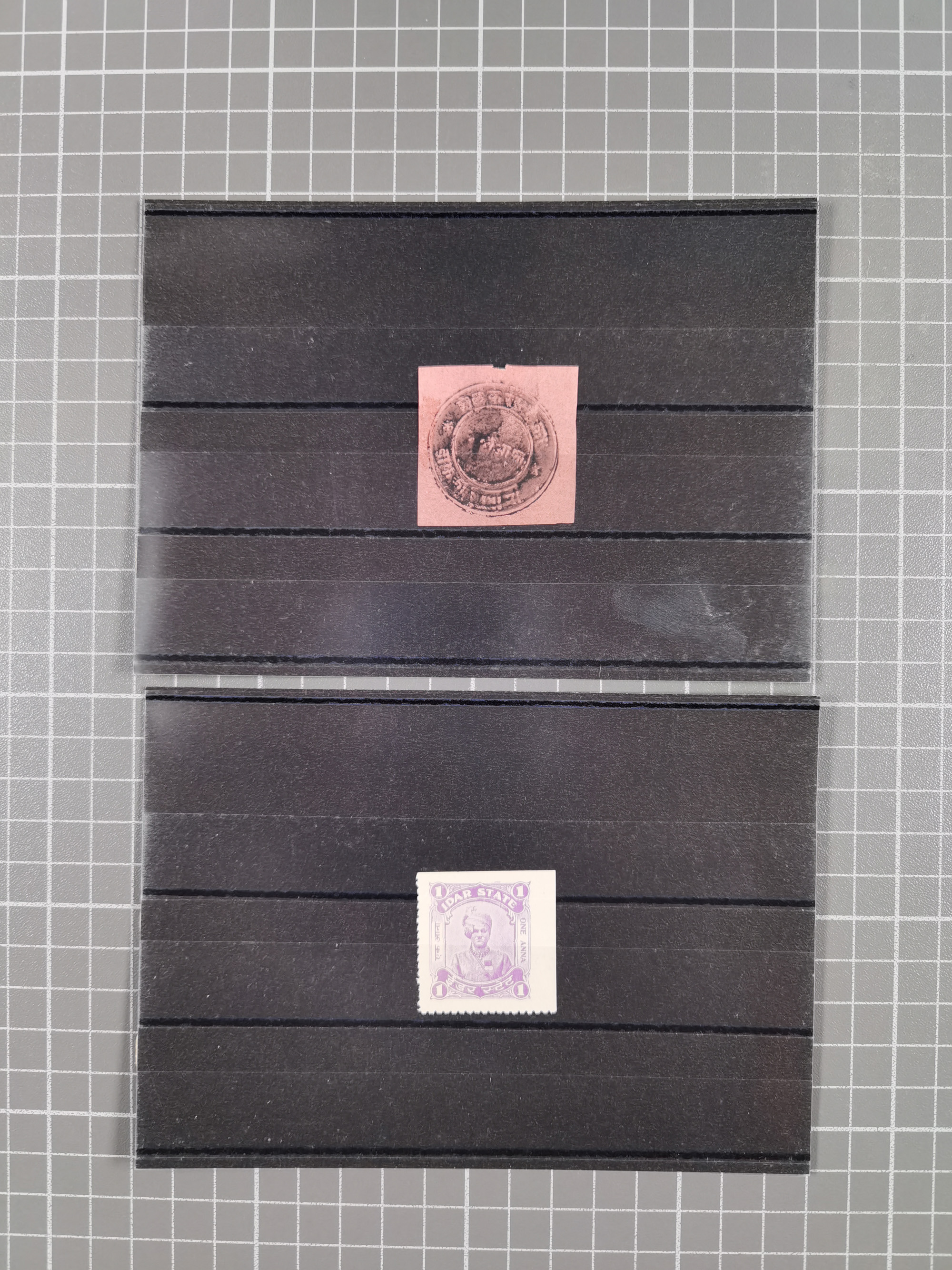 1895-1910, Small collection on two album leaves, including 3 r. 1895 unused, five Specimen overprinted stamps, India stamps with Zanzibar cancellations, postcard 1904 and three postal stationery wrapper