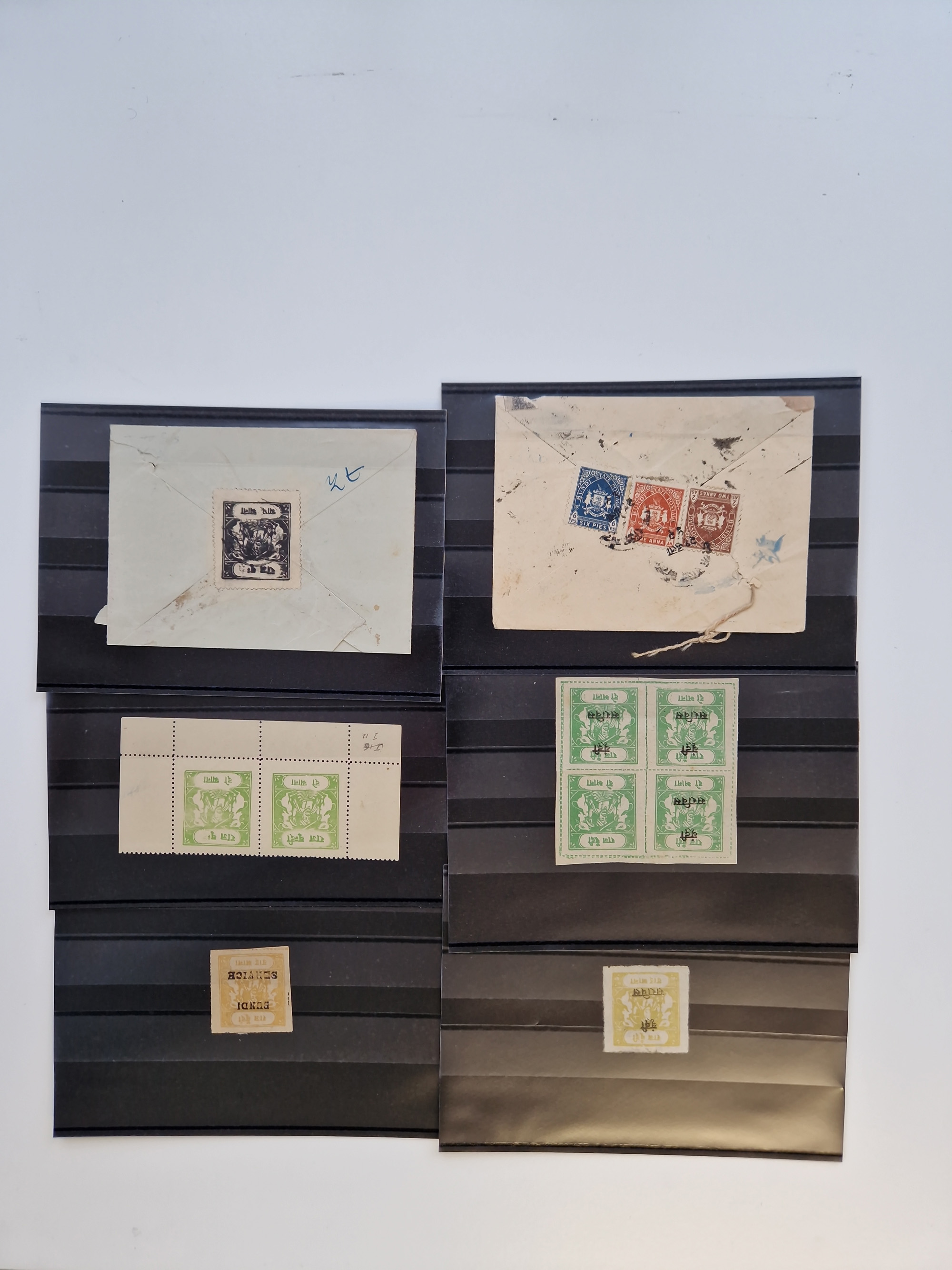 1897/98, Ottoman military occupation of Thessaly: six covers franked with octagonal military stamps, all properly posted, with Volos, Domokos Kalabaka, Trikhala cds., very unusual; one cover with very scarce gutter pair 10 pa. from Volos, sheets and additional forgery study, good to very fine