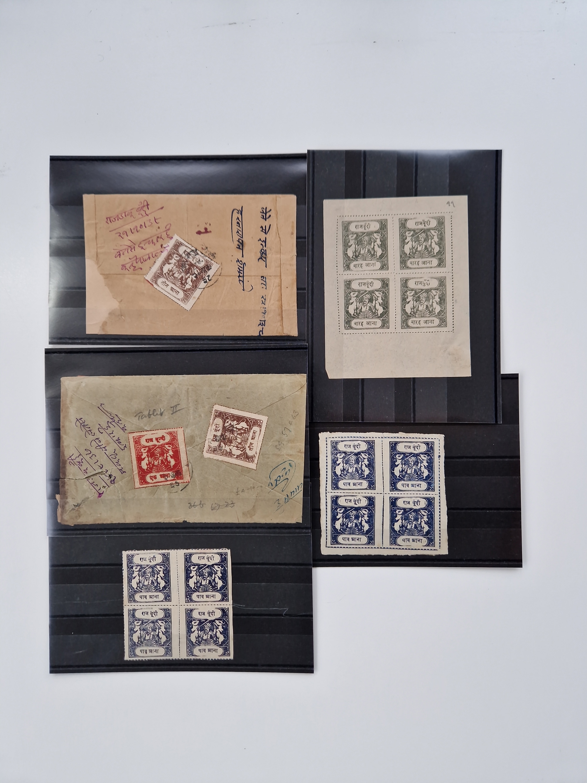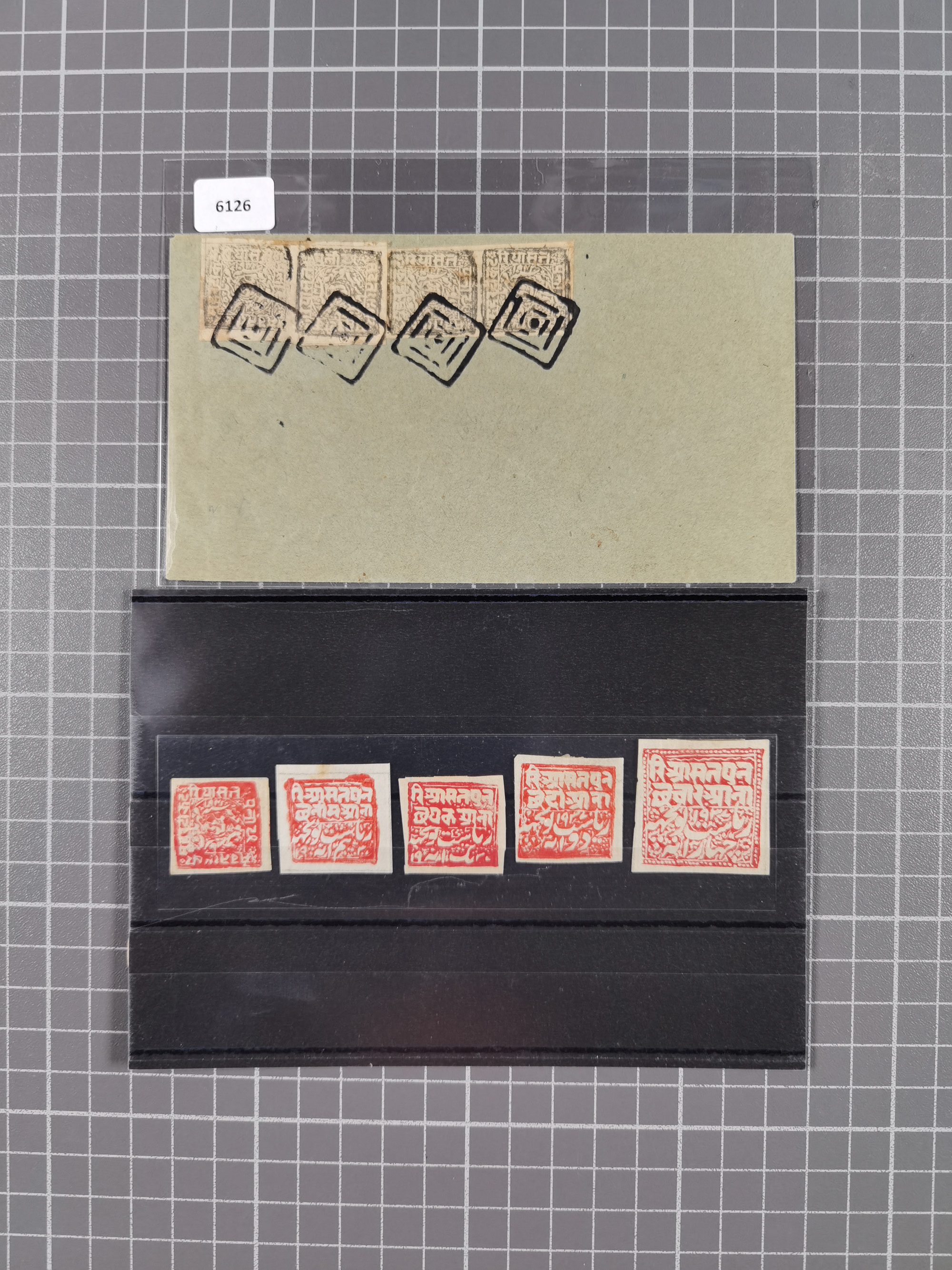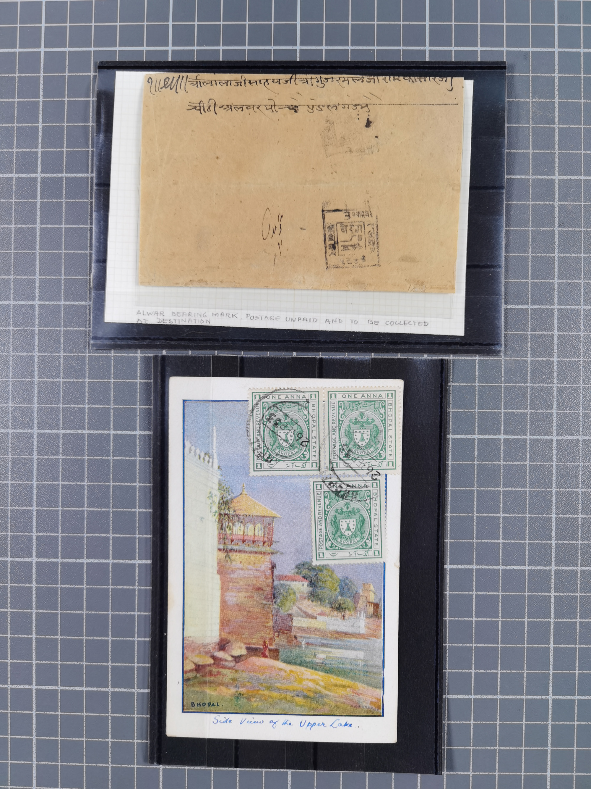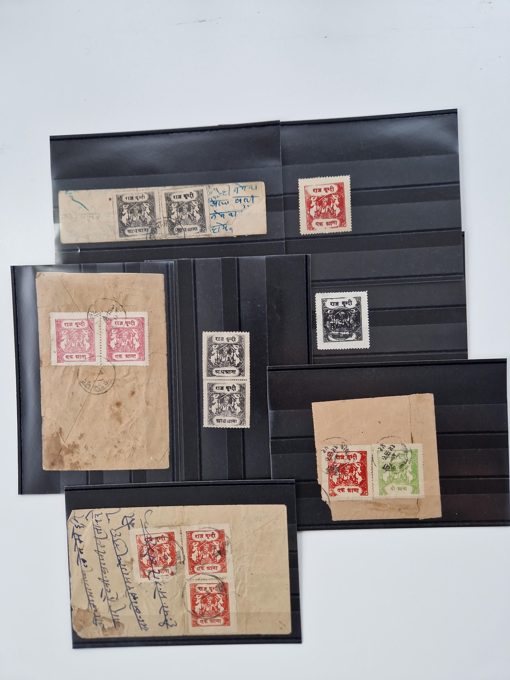 1880/1949, about 60 covers and cards, including many interesting items from different states including combination with British India, registered mail, etc. An interesting lot.