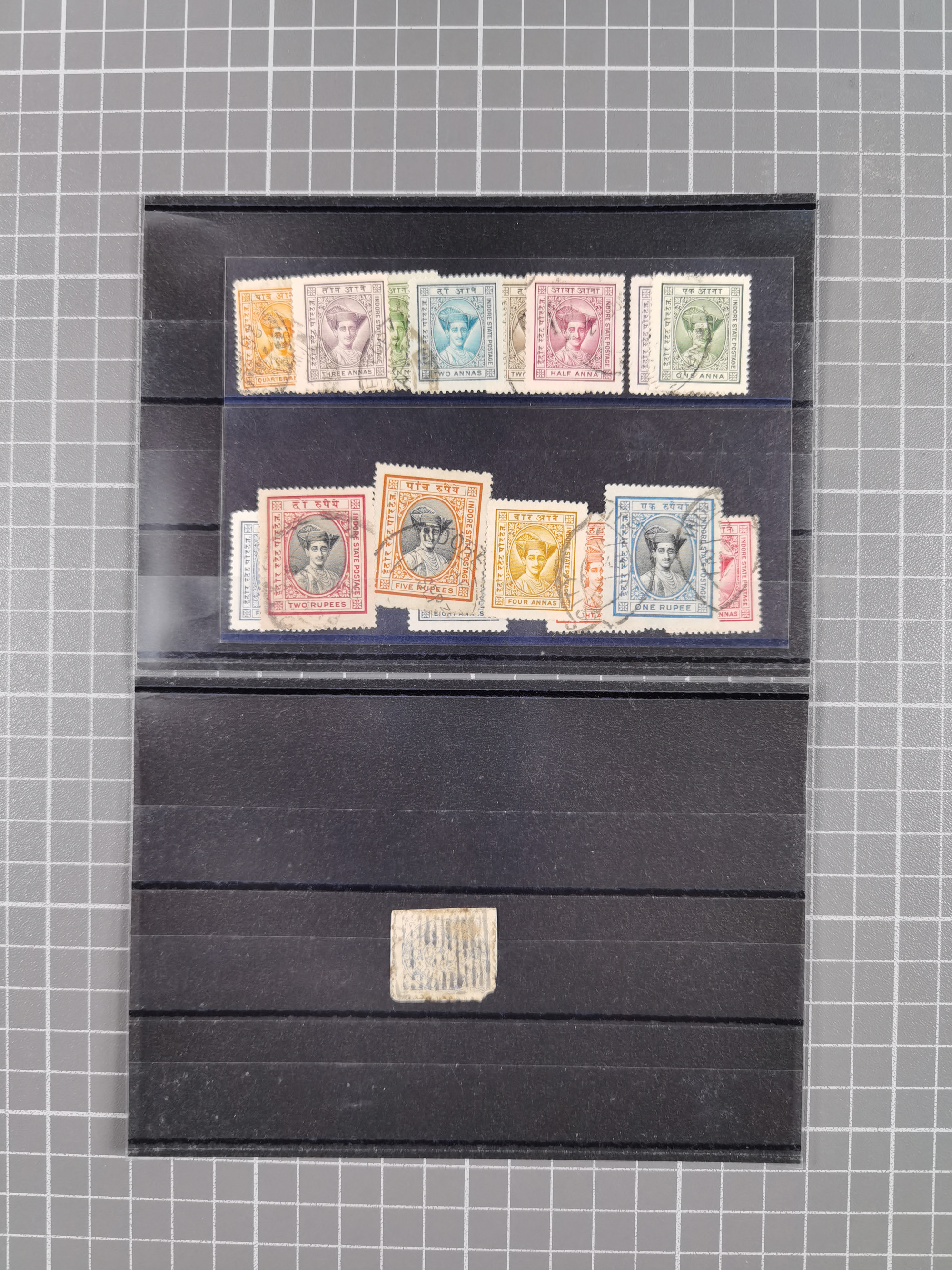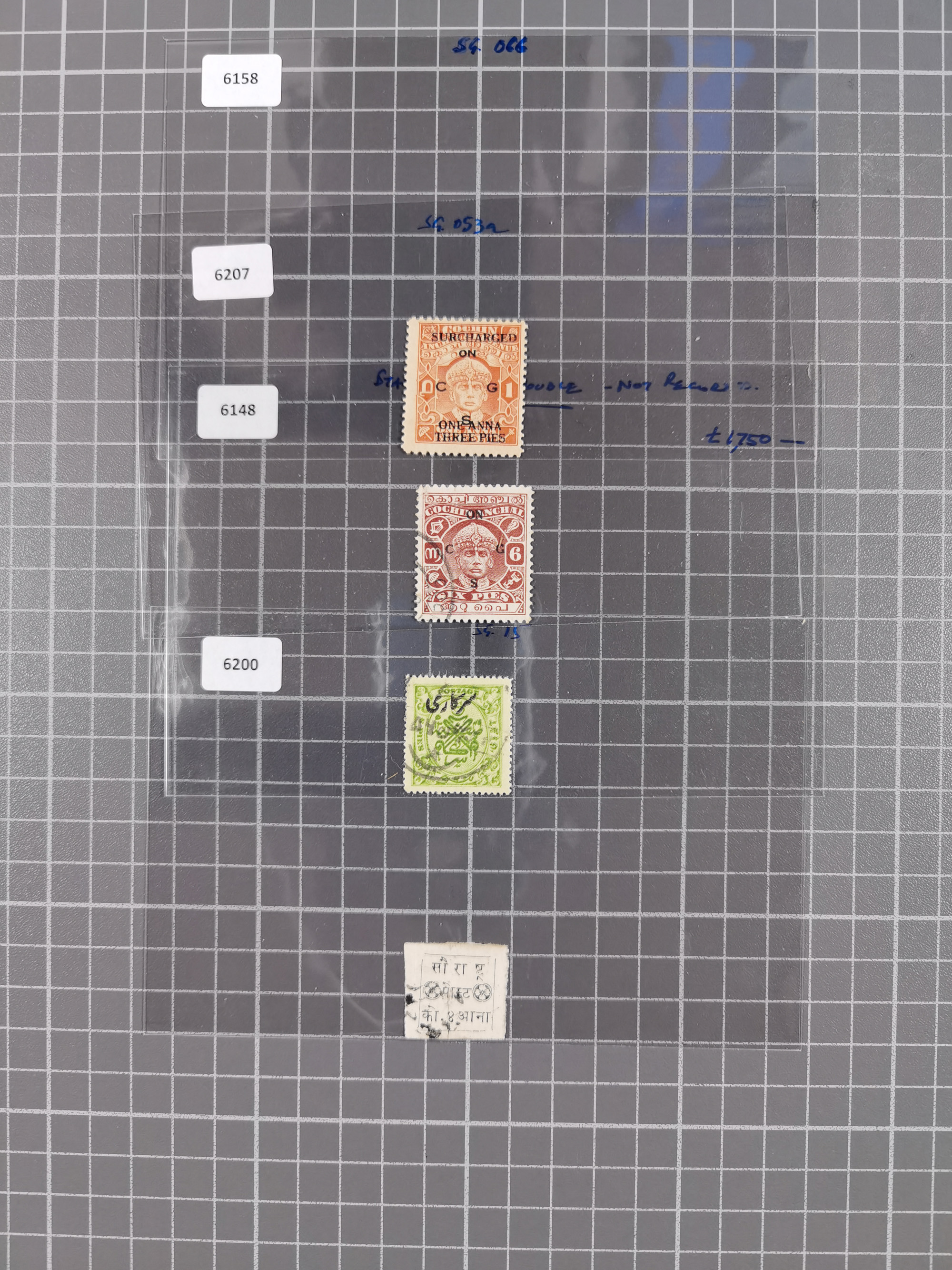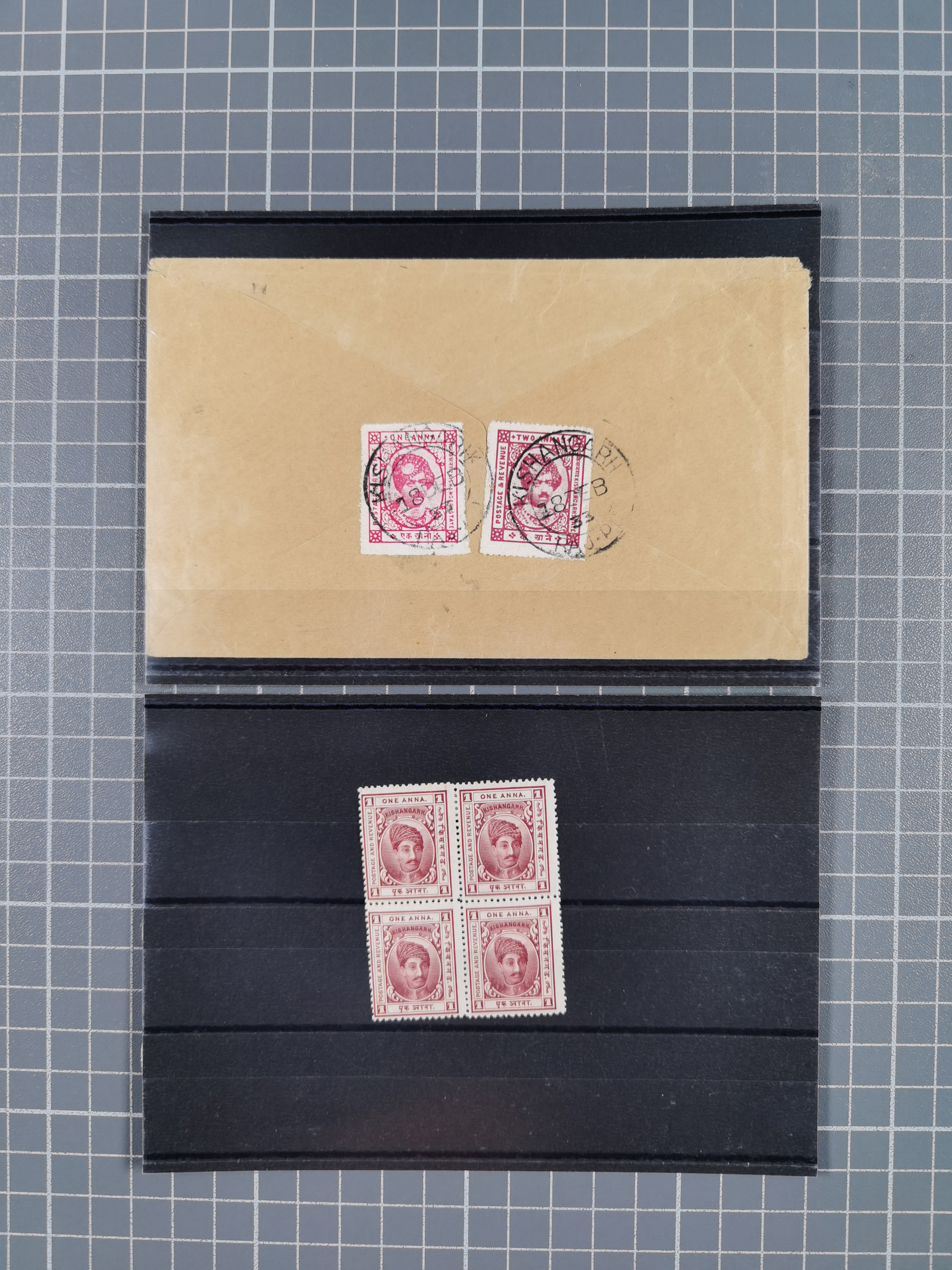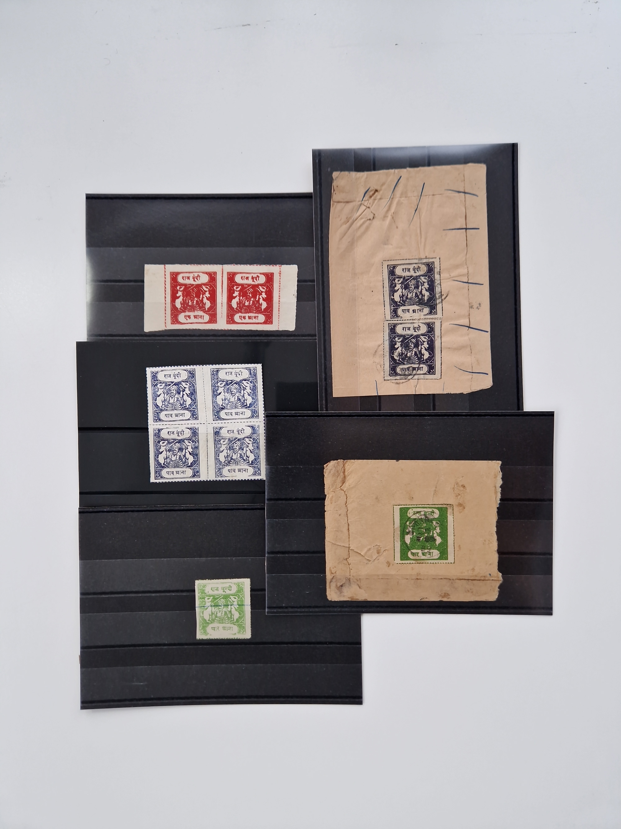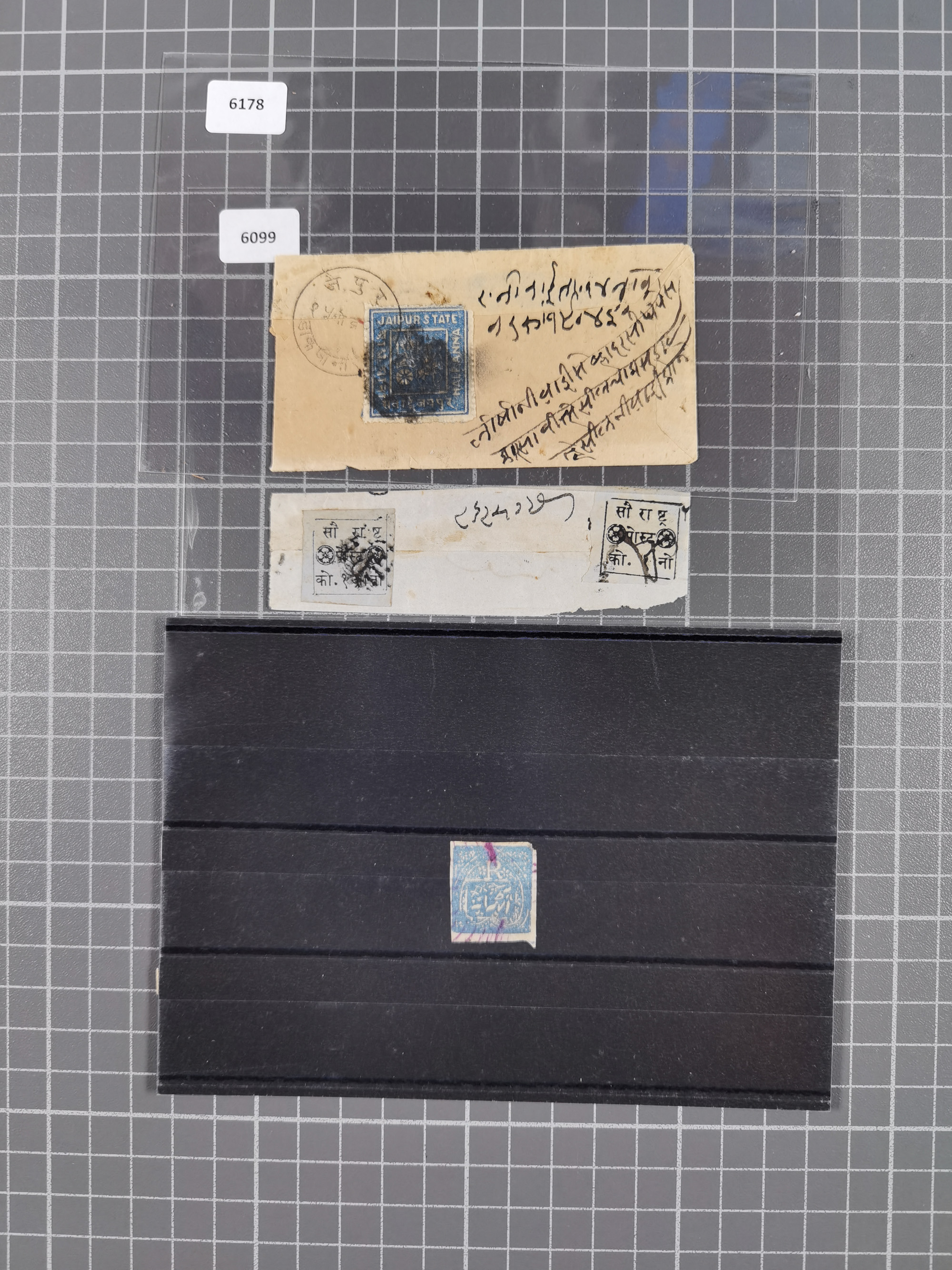 1880/1949, about 60 covers and cards, including many interesting items from different states including combination with British India, registered mail, etc. An interesting lot.