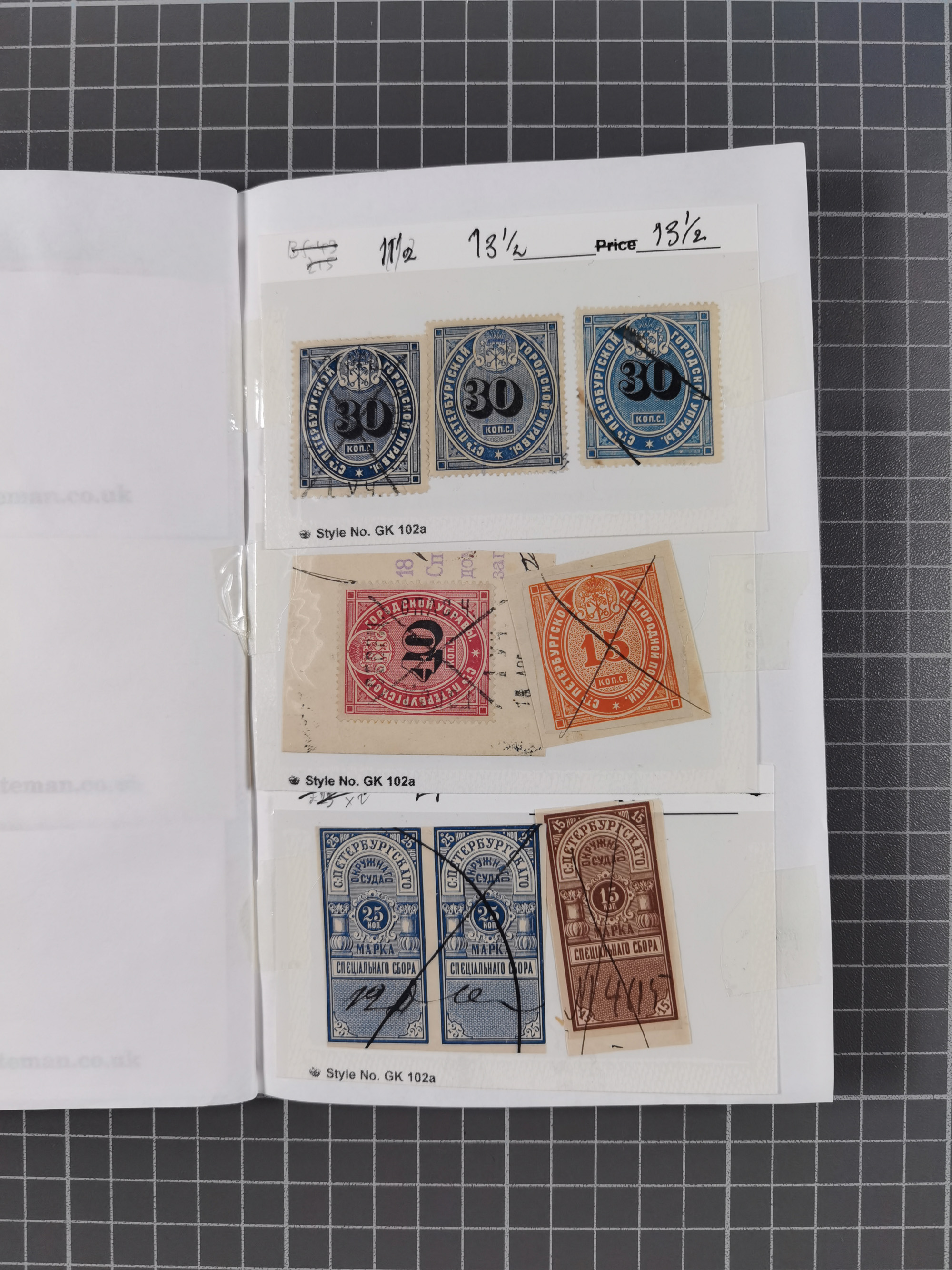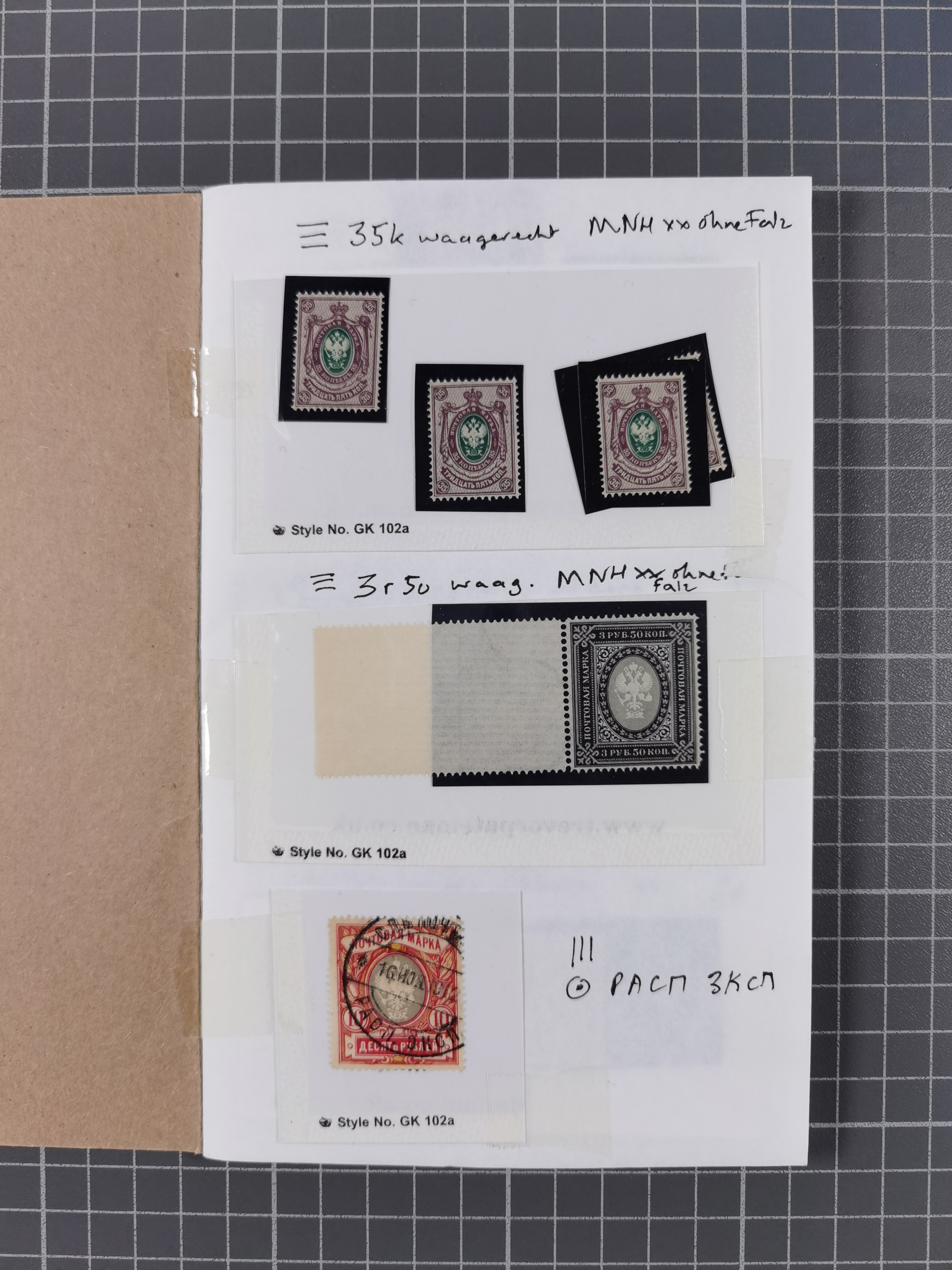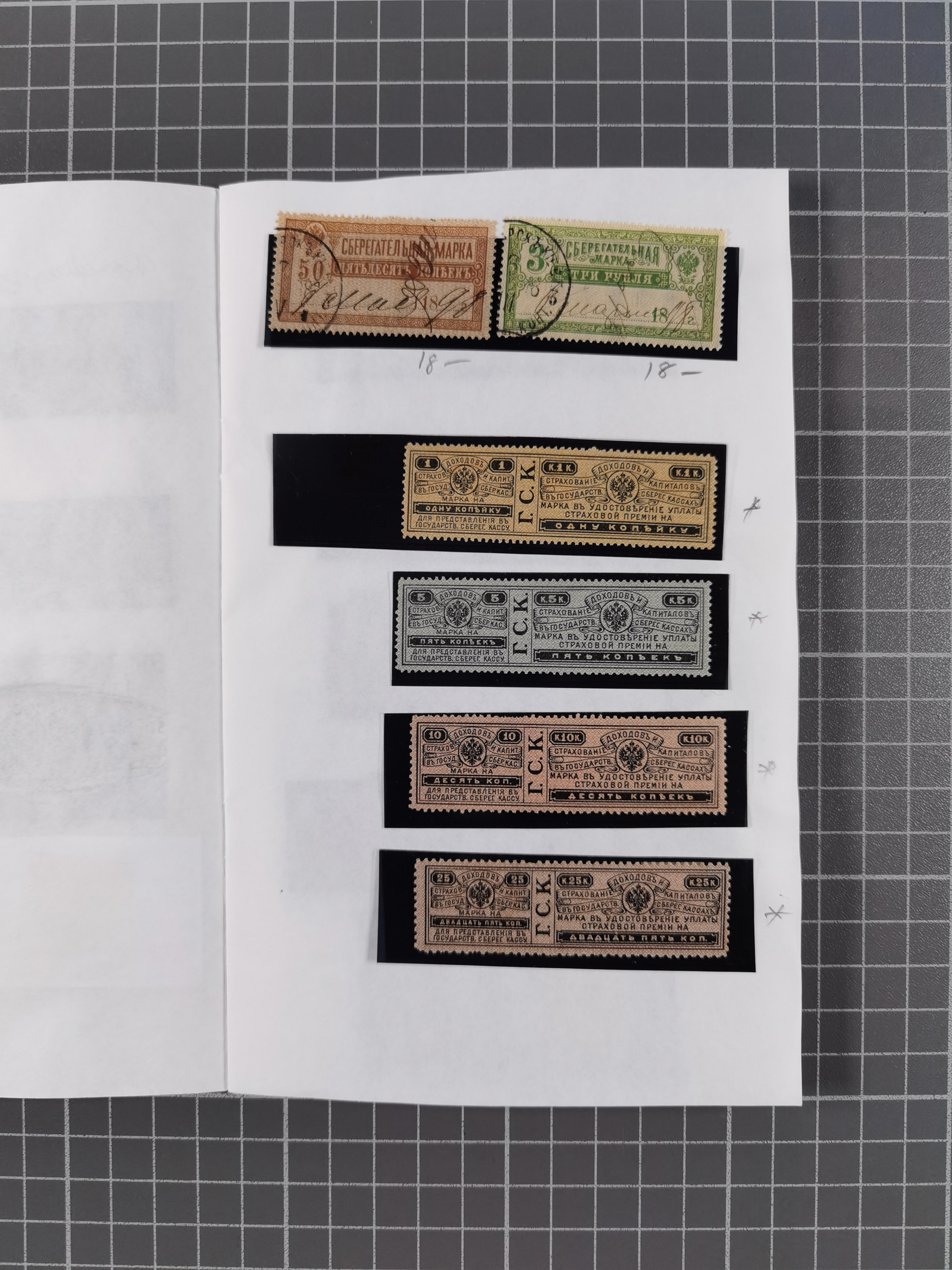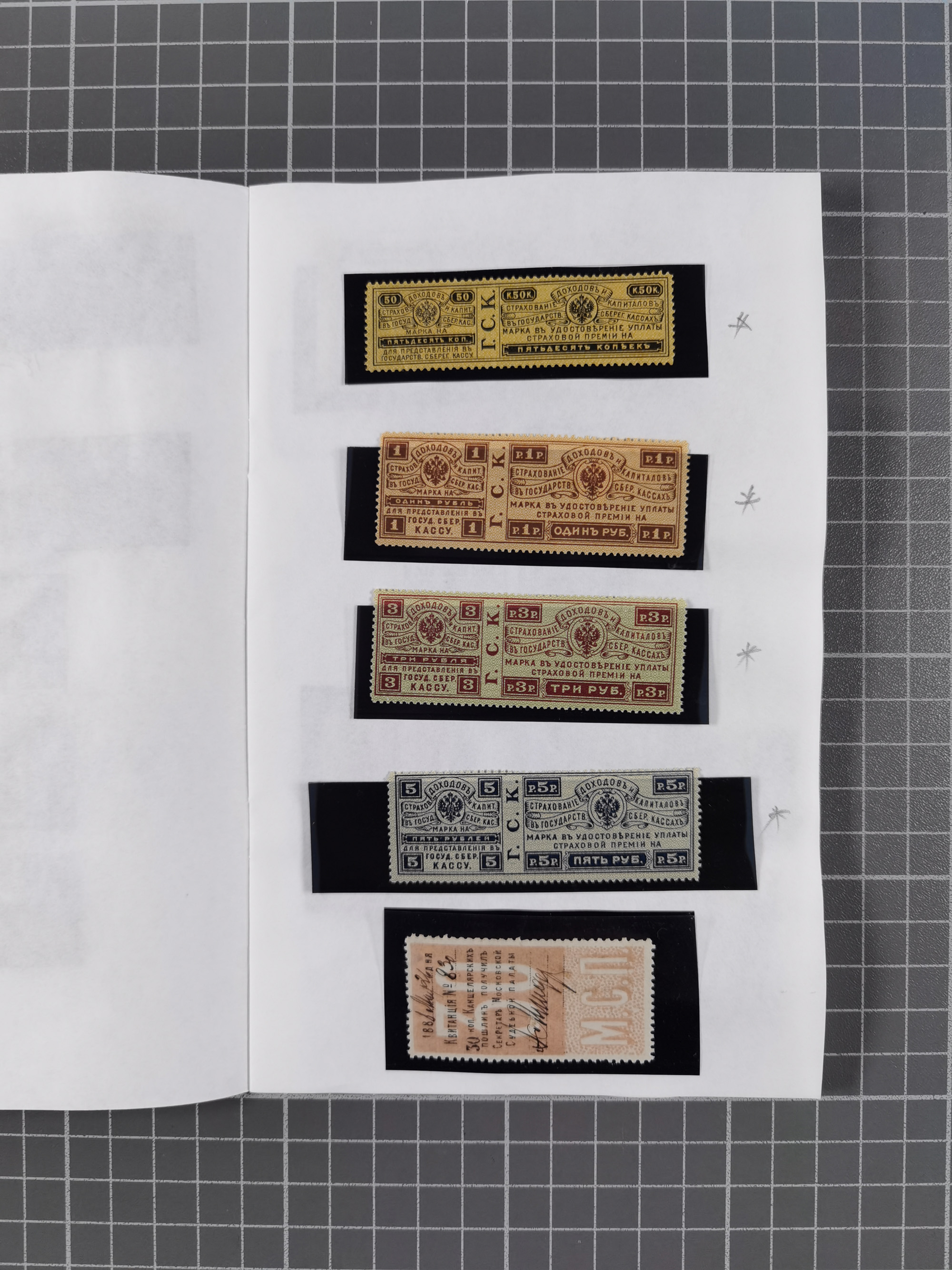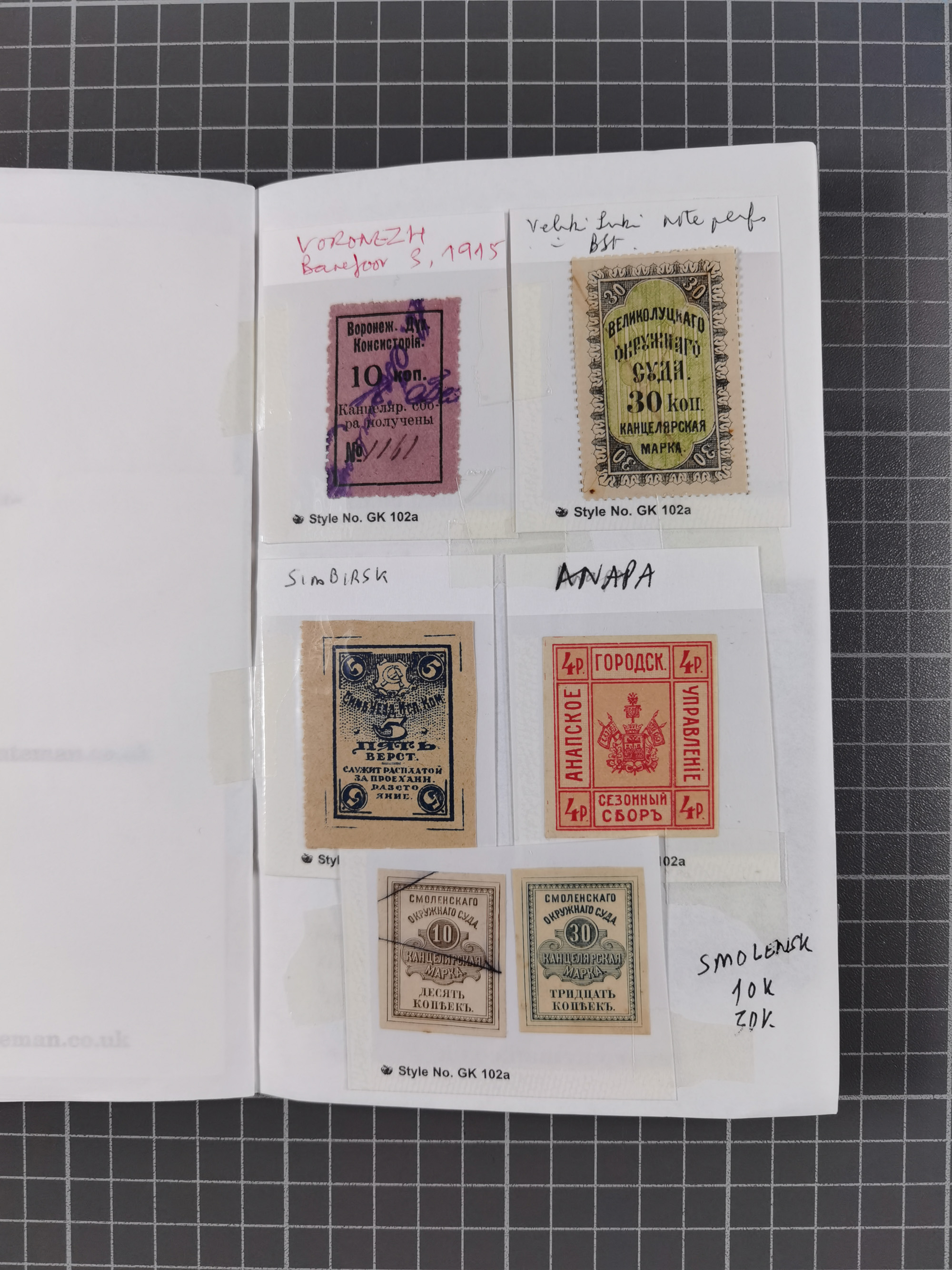 1880/1923 (ca.), Russian Fiscals and Zemstvo, group of unused/used including some multiples, noted Moscow chancellery, Simbirsk, Armavir, Voronezh and more, 1871 “Tabak” 3 roubles green imperforate unused (Standart-Nr. 5, ex Fabergé), small Zemstvo part with Ustssissolsk, Krememchug, Borigolevsk, etc, except for the occasional fault mostly in fine condition, an interesting assembly neatly housed in two booklets