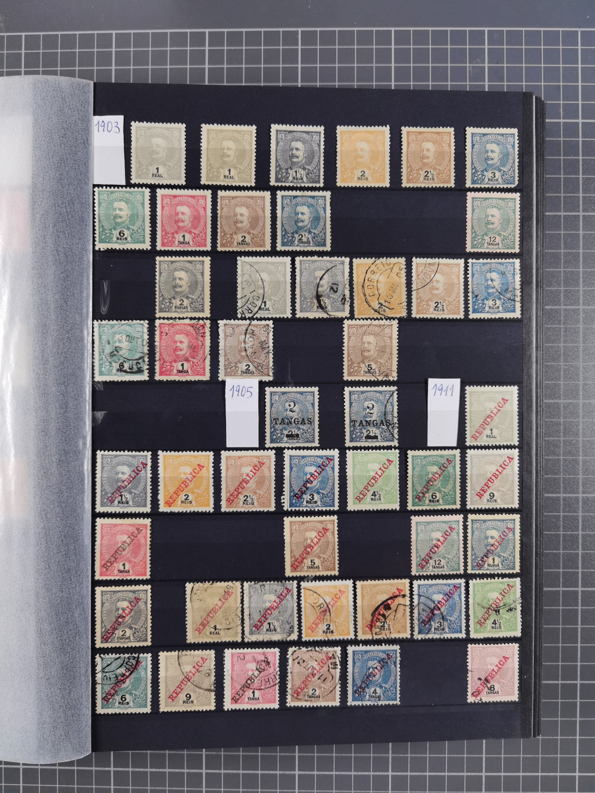 1853/1866, MARIA/PEDRO/LUIS imperforate issues, used collection of 78 stamps of all denominations, slight imperfections to fine, neatly arranged on album pages, incl. two copies each 1853 5r. brown, 50r. green and 100r. lilac, two copies 1855 5r. brown and following issues, good range of shades and postmarks, some units (two strips of four) etc.