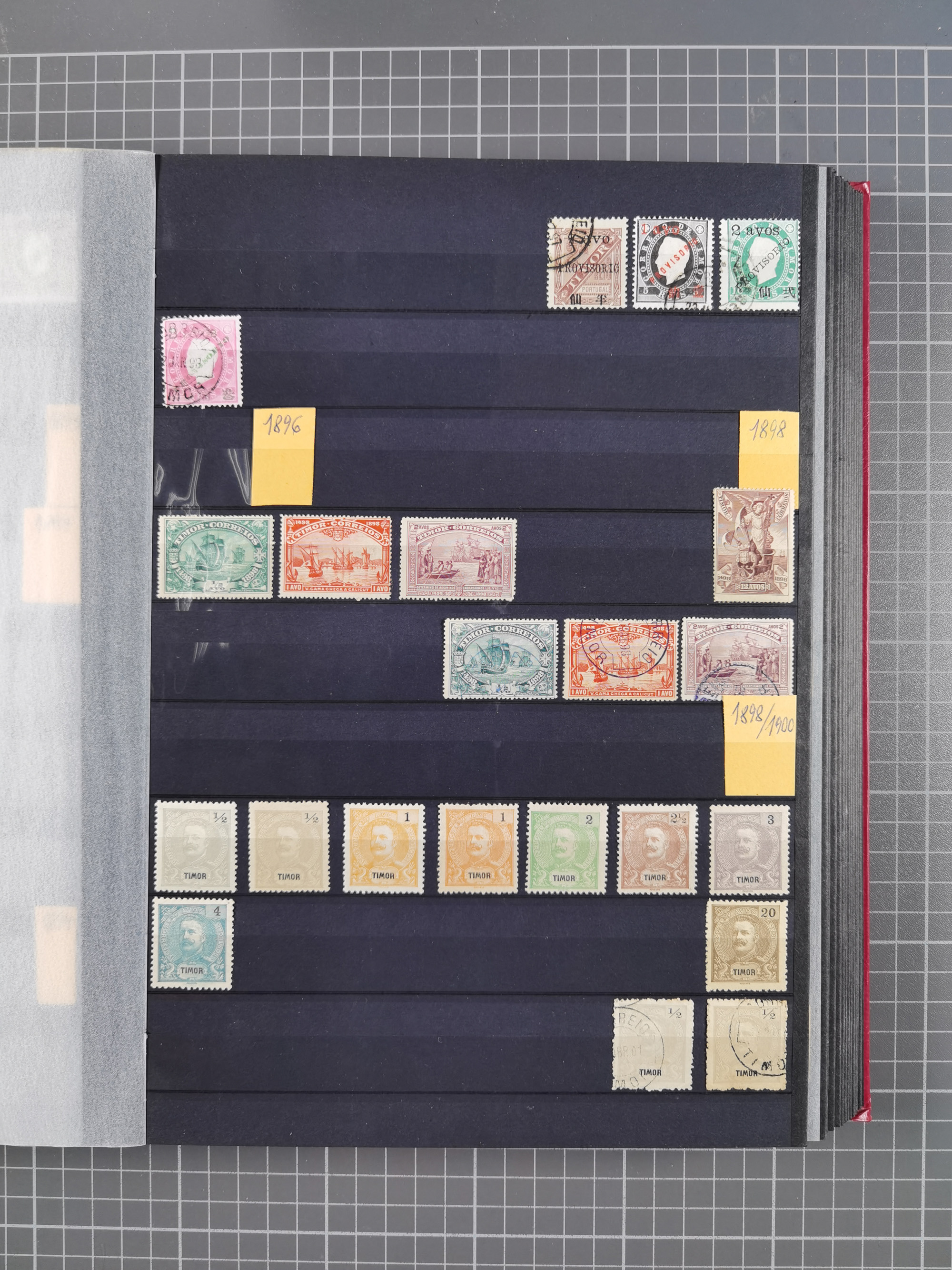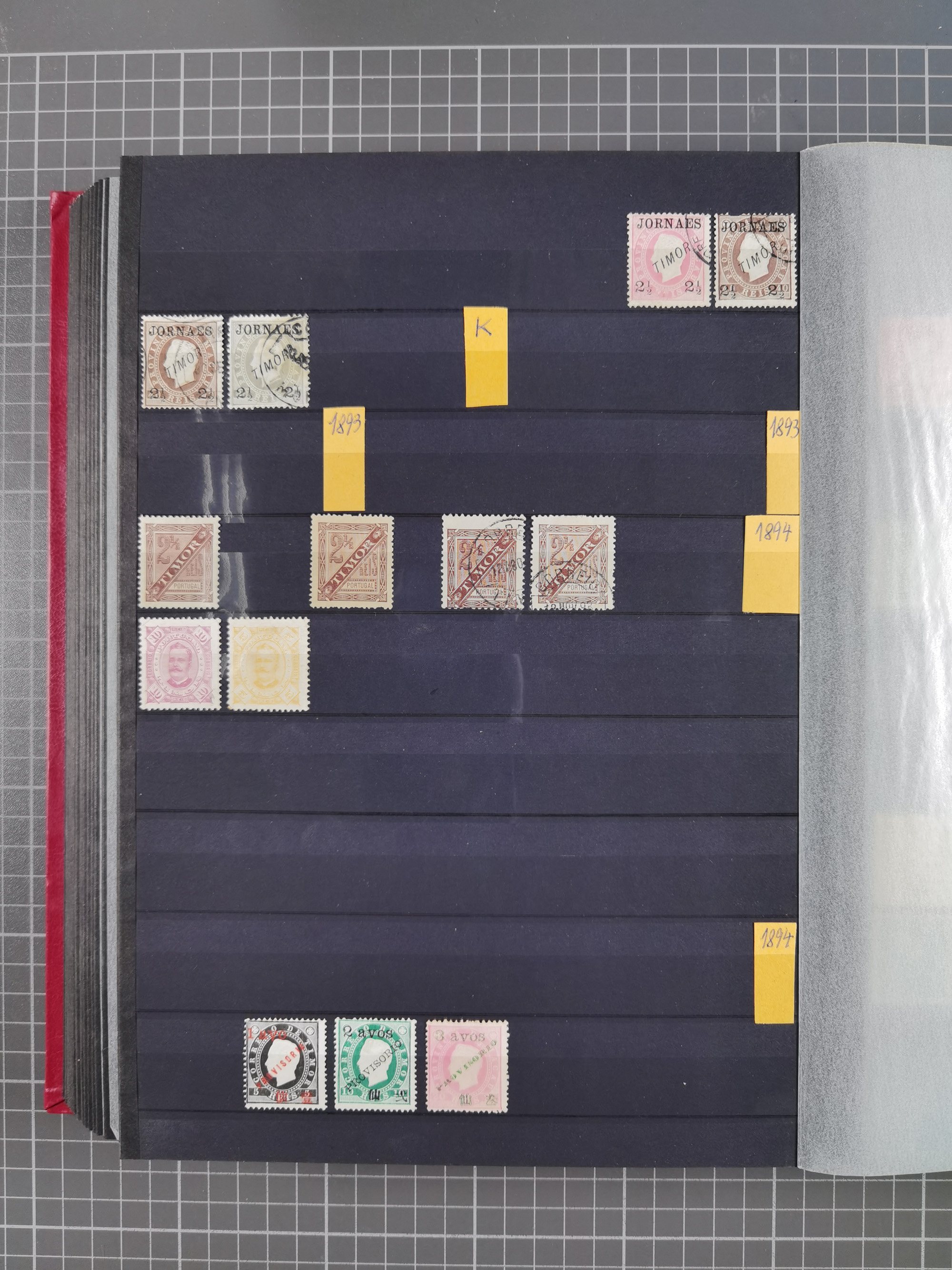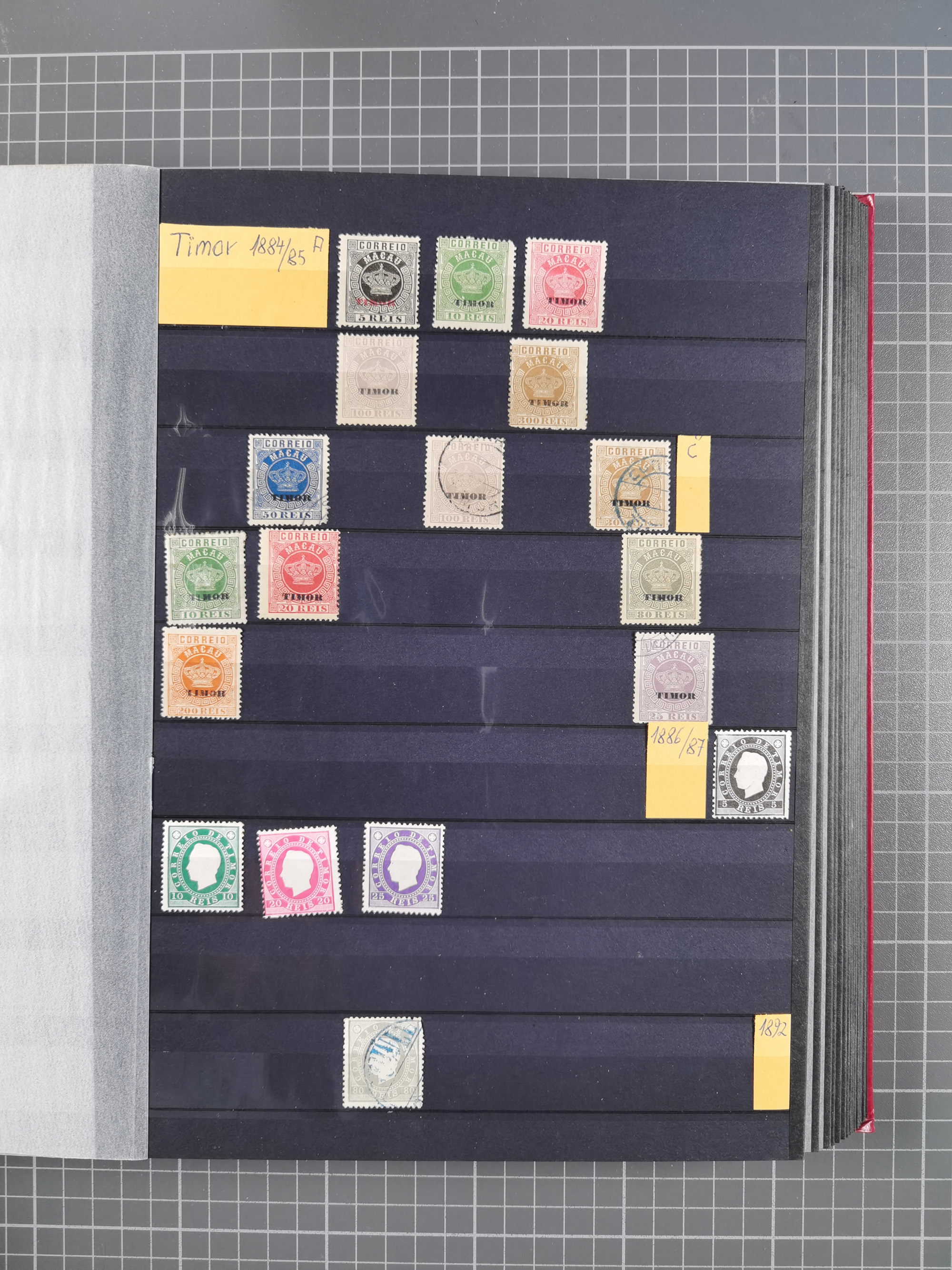 1873, page from the Royal Swedish General Post Office collection with stamps mounted on both sides, stamps handstamped and overprinted “SPECIMEN” include 1889 King William III 15 c., 30 c. and 1.50 g., 1889 Numerals 1-5 c., postage due 2 ½-50 c., 1892 Queen Wilhelmina 12 ½ c., 15 c. and 25 c., also some of the issued values, all fresh colours, scarce (SG of specimen stamps ca. £1.850,-) (Mi.-Nr. 15Sp, 16Sp, 18Sp, 19-23Sp, 26-28Sp, P1-10Sp, etc.)