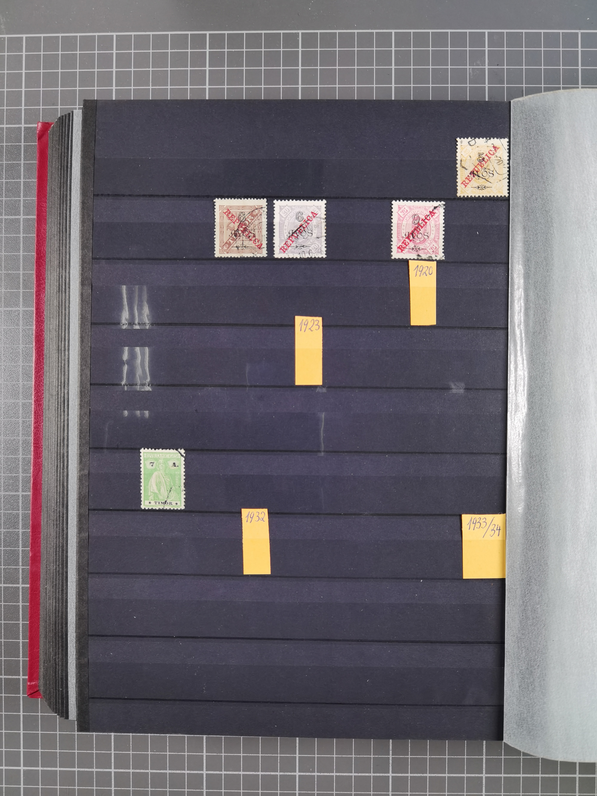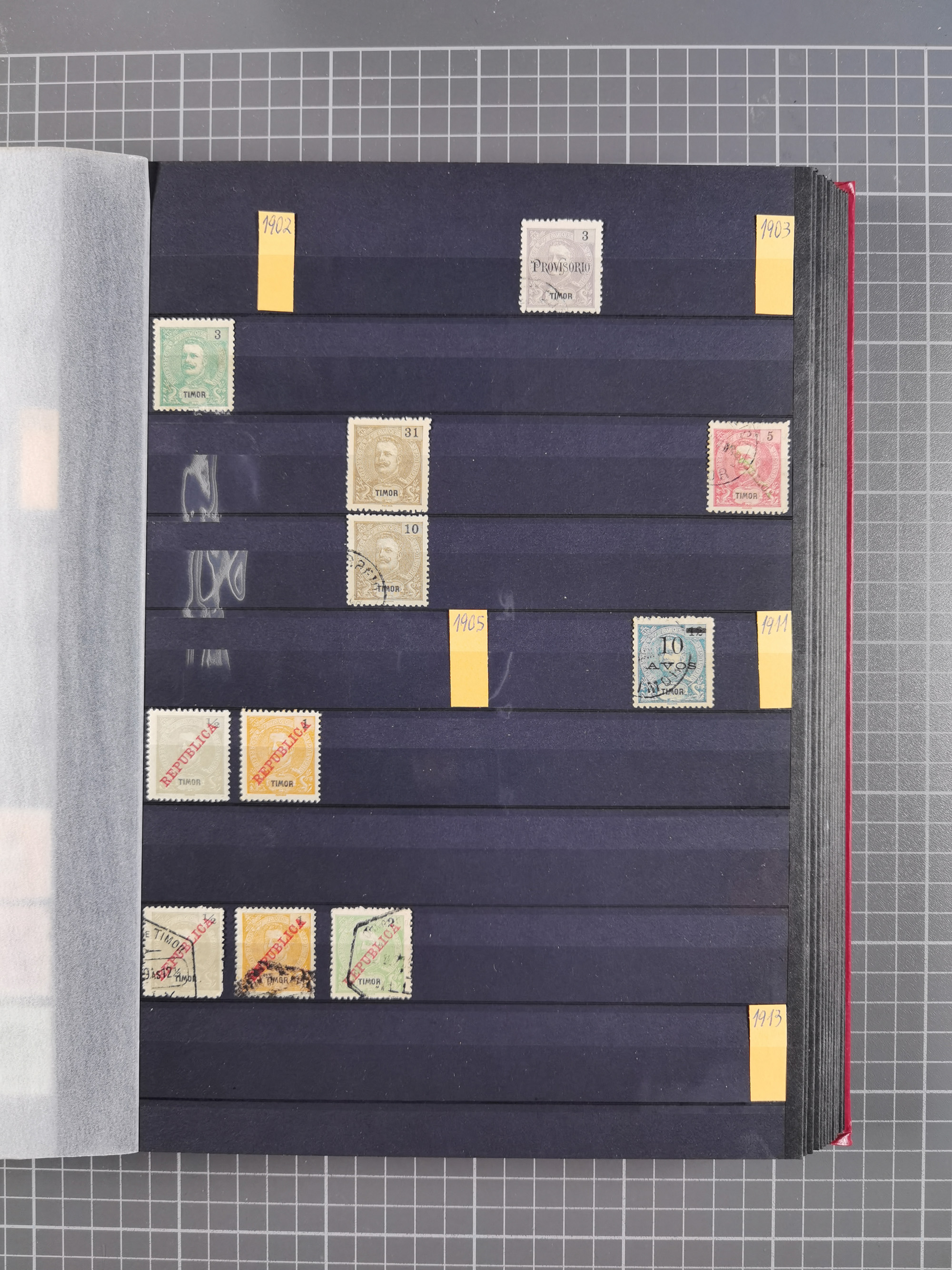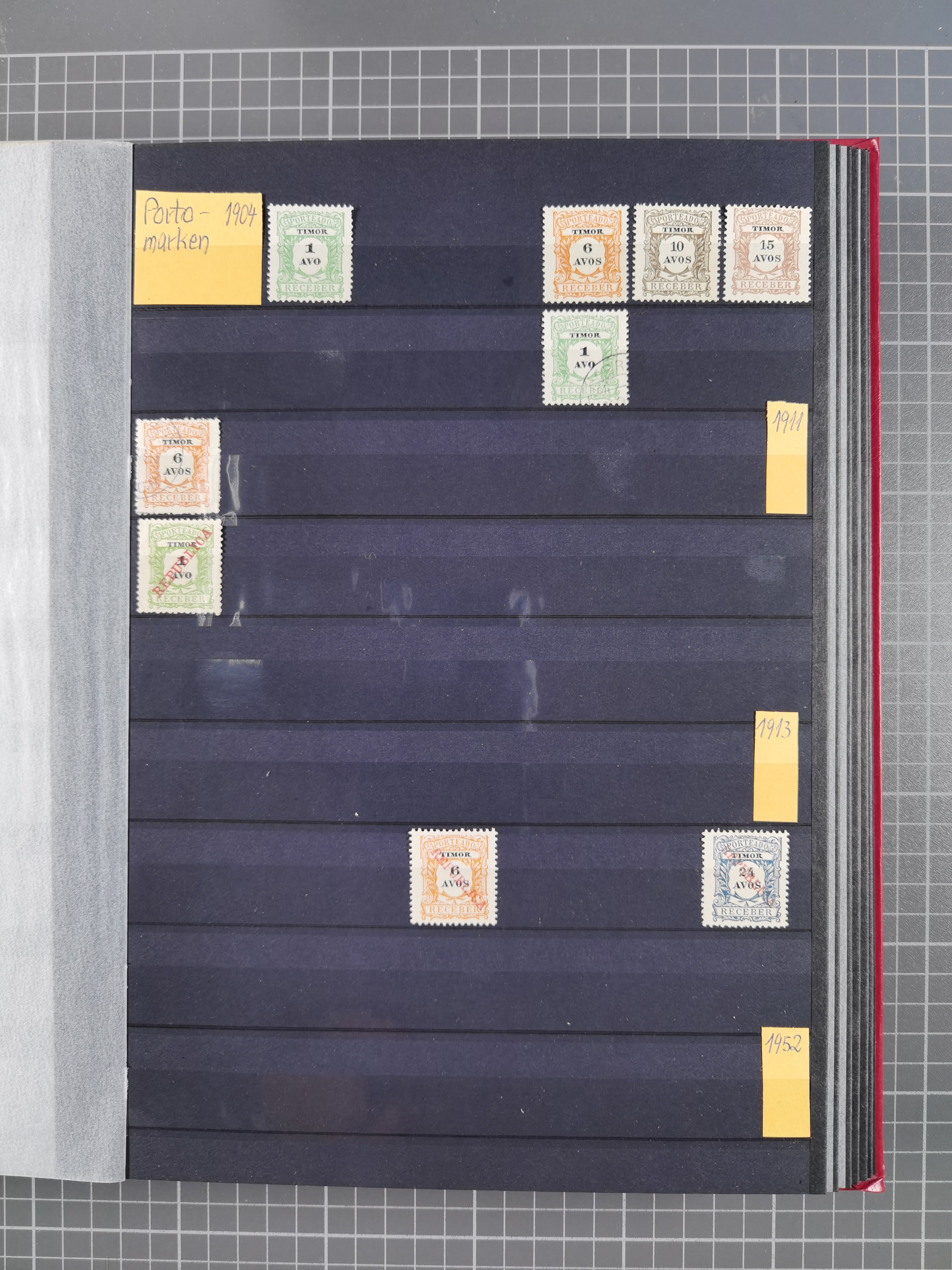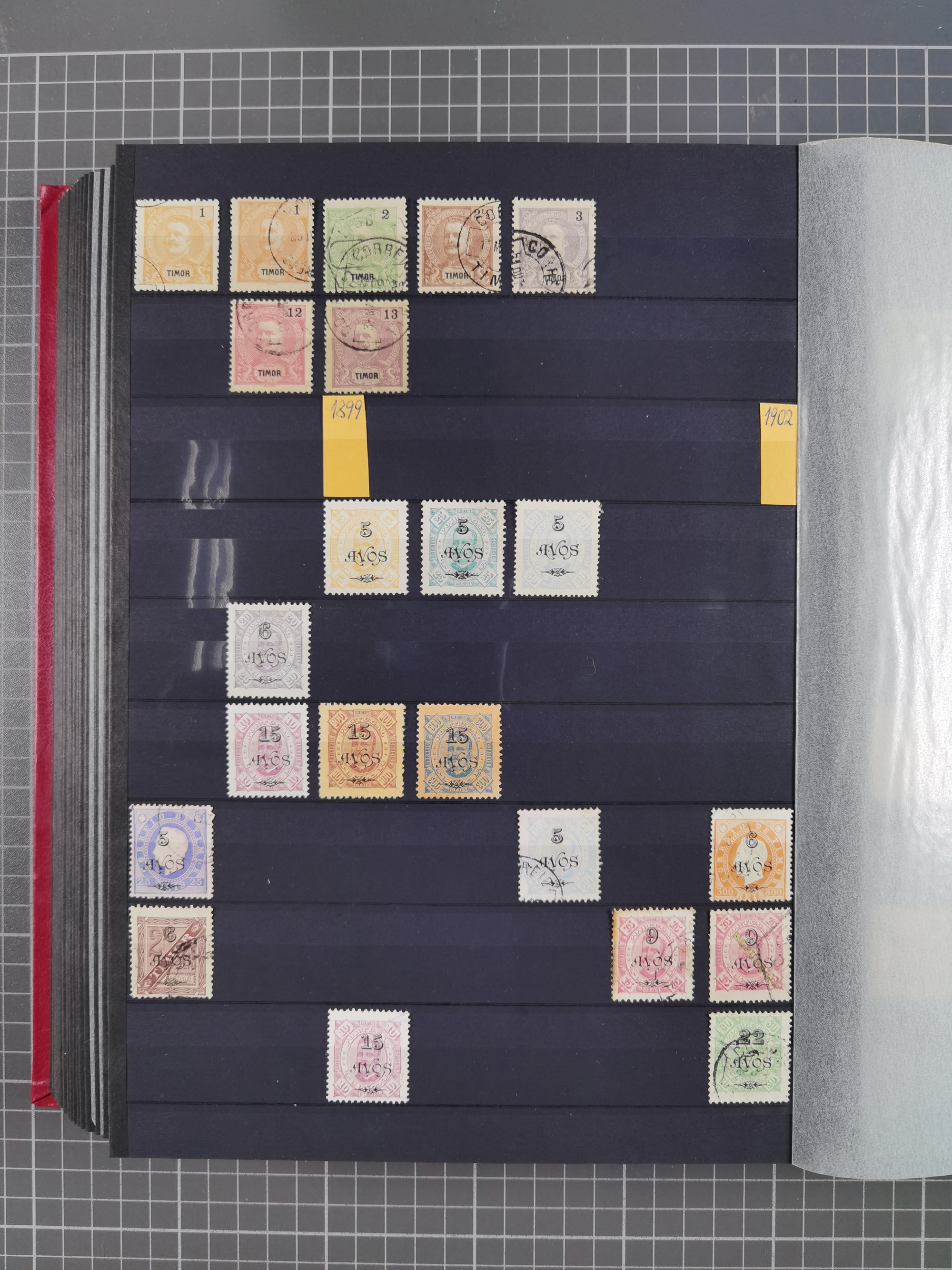 1873, page from the Royal Swedish General Post Office collection with stamps mounted on both sides, stamps handstamped and overprinted “SPECIMEN” include 1889 King William III 15 c., 30 c. and 1.50 g., 1889 Numerals 1-5 c., postage due 2 ½-50 c., 1892 Queen Wilhelmina 12 ½ c., 15 c. and 25 c., also some of the issued values, all fresh colours, scarce (SG of specimen stamps ca. £1.850,-) (Mi.-Nr. 15Sp, 16Sp, 18Sp, 19-23Sp, 26-28Sp, P1-10Sp, etc.)