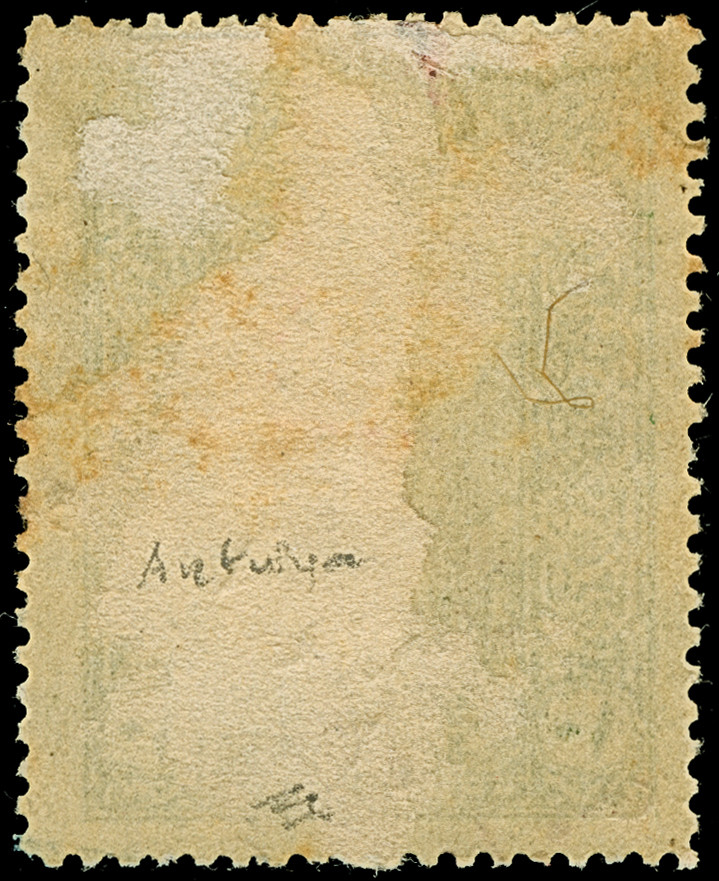 1863, Tughra first printing 5 pia. black on rose vertical pair (less than 10 recorded), central blue band, light cancelled blue and black, showing plate flaw ‘missing corner’ on top left. Very fine, apparently only 2 vertical pairs with this variety recorded, an exceptional and rare showpiece. (Isfila Specialised No. 2 BE108, cat. value 15.000,-€)