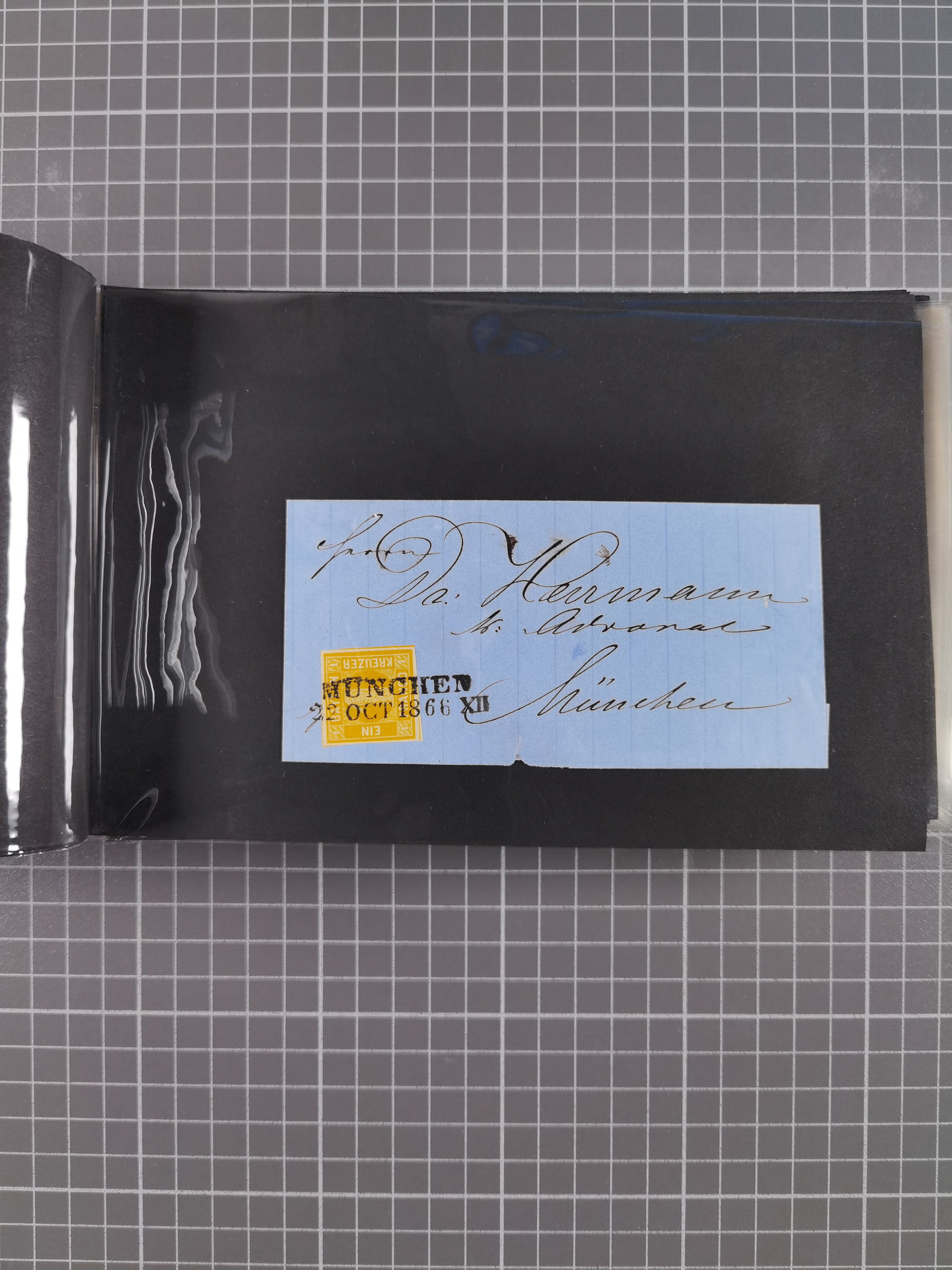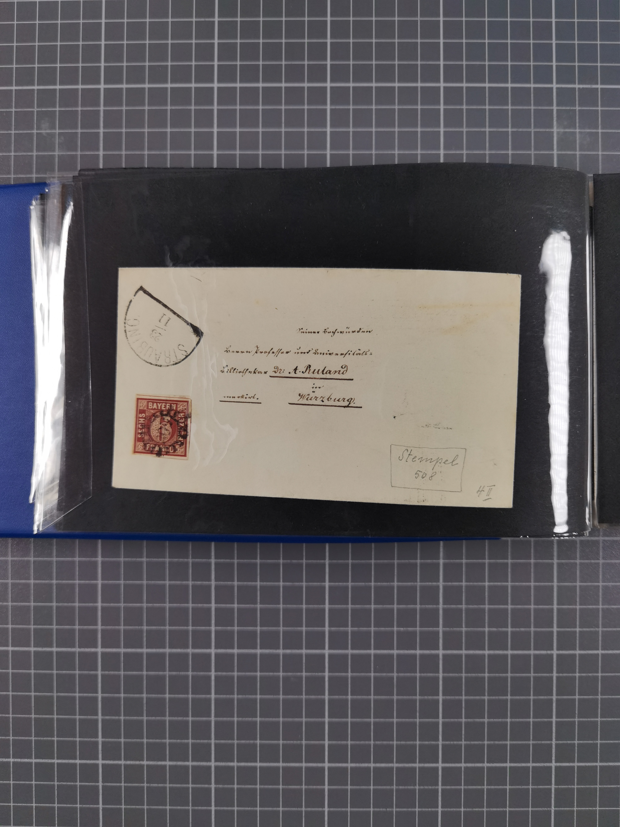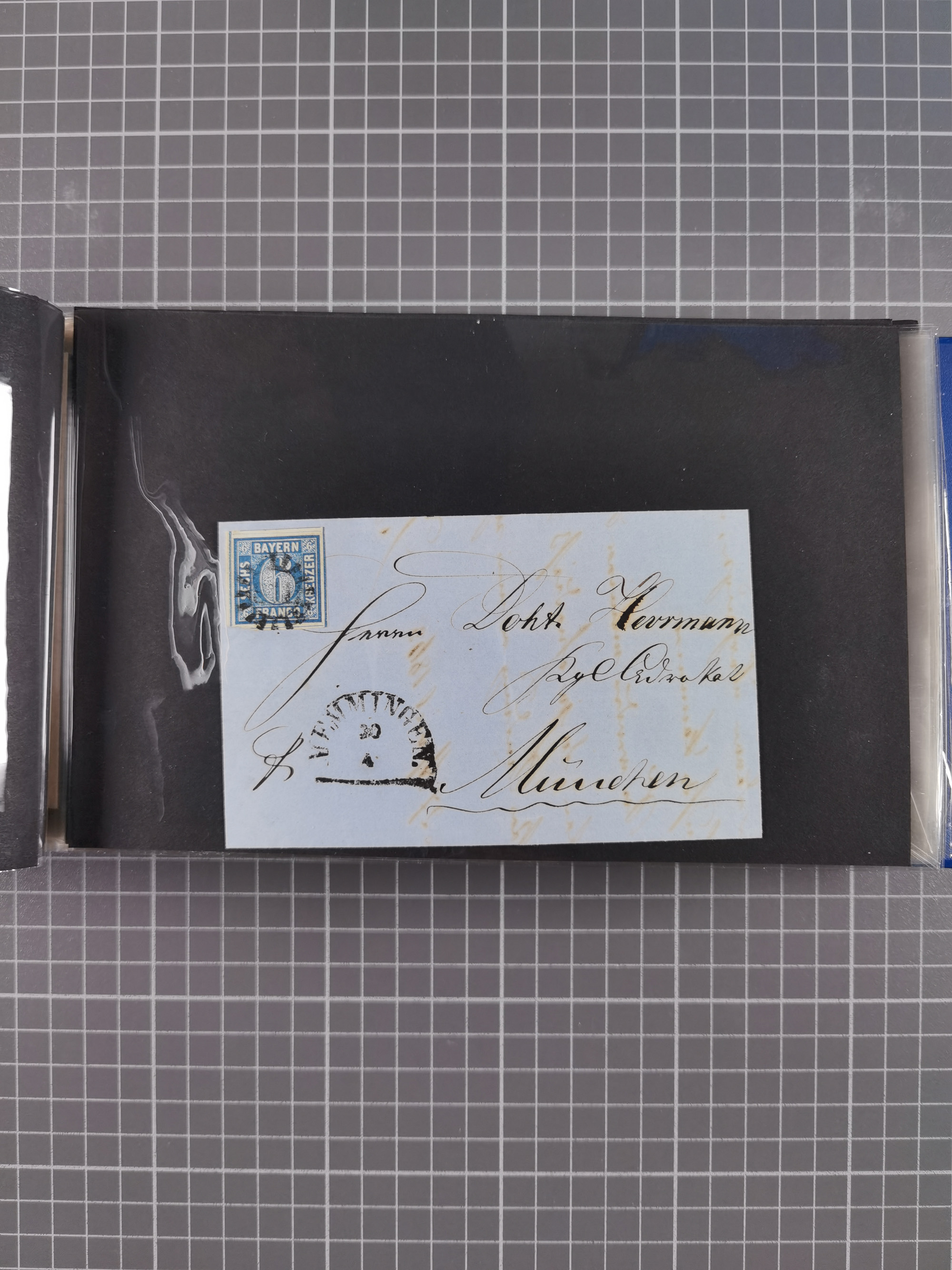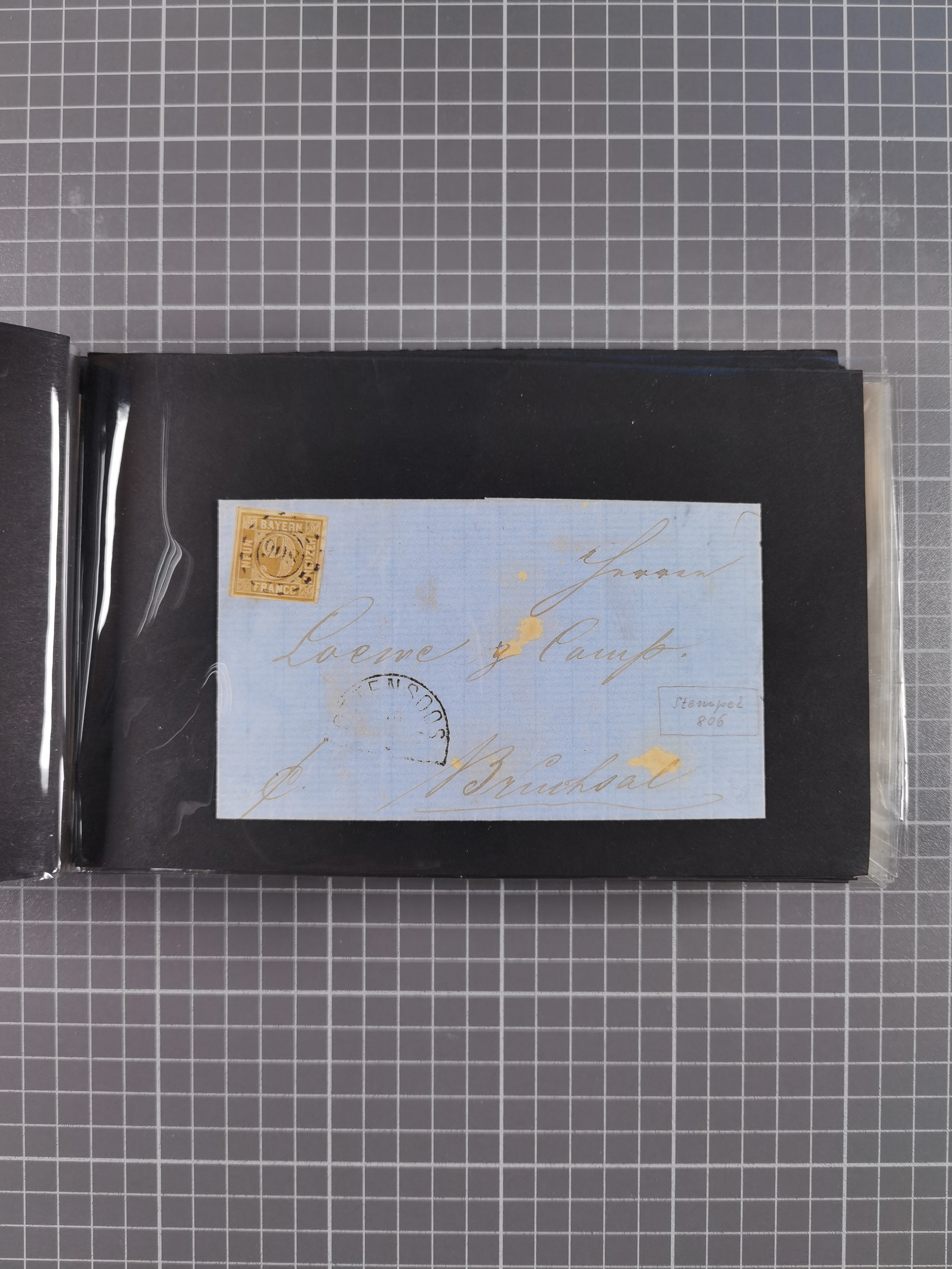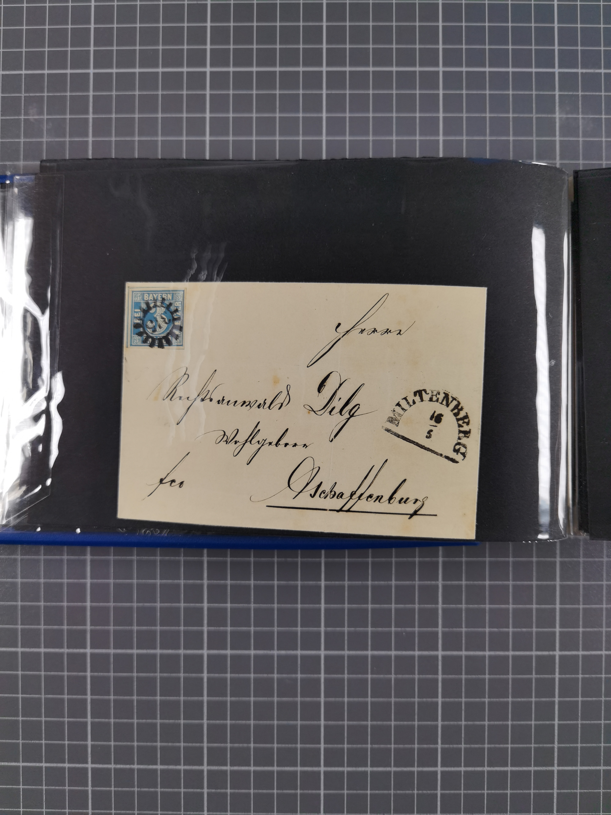 1849/70 (ca.), meist gestempelte kleine Partie im Ordner, überwiegend Bayern mit u.a. 1 IIa, 4 I/III, 8II, Wappen-Brief in die USA, 26X,etc. praktisch alles signiert, diverse Kurzbefunde und Atteste BPP