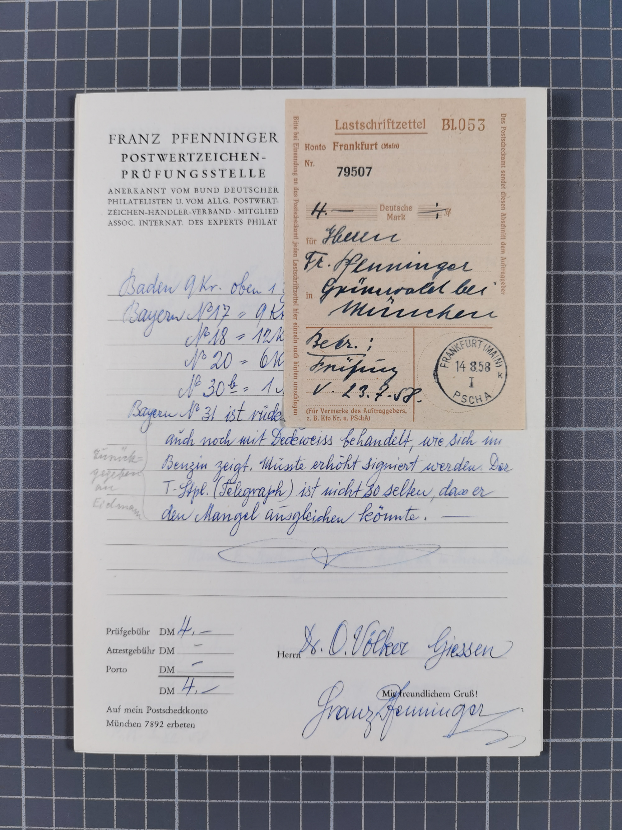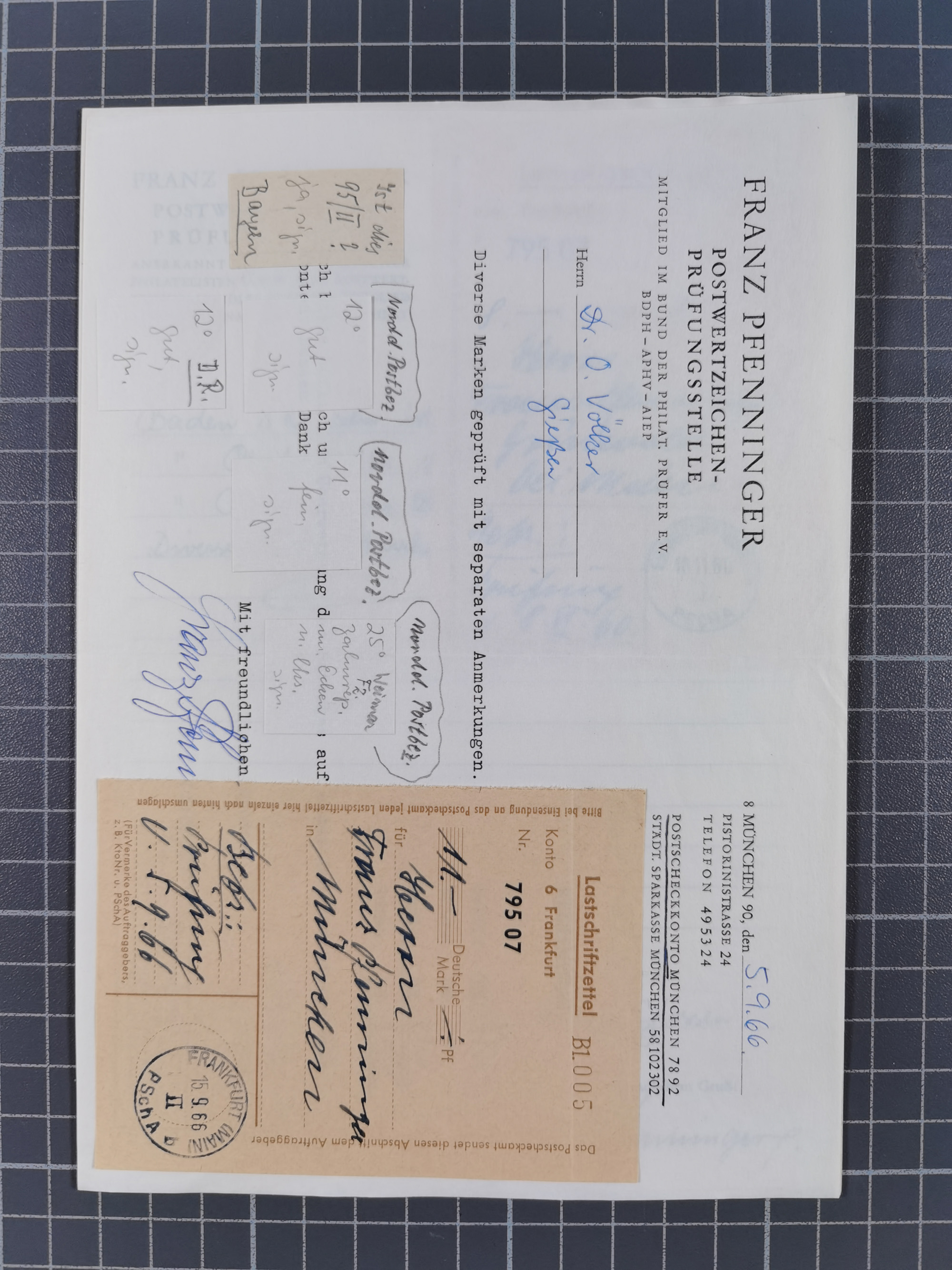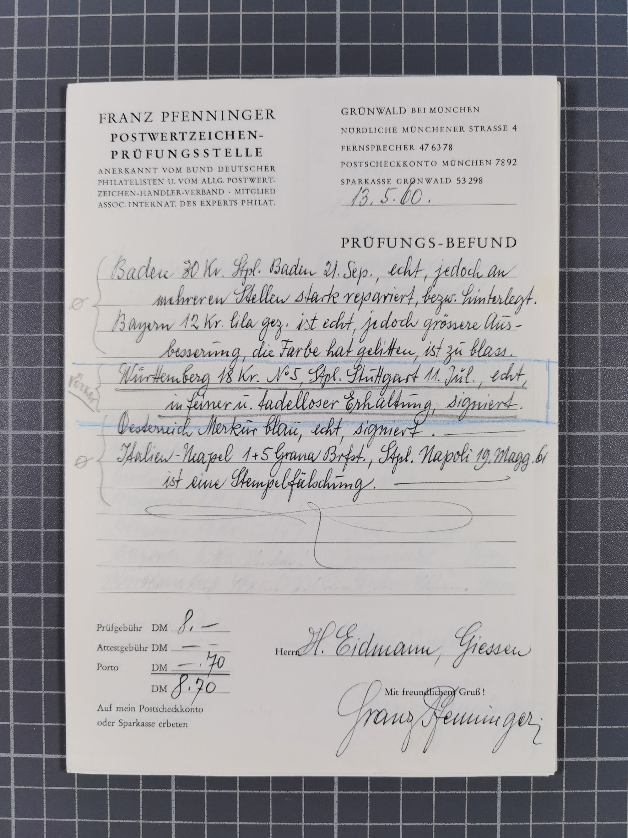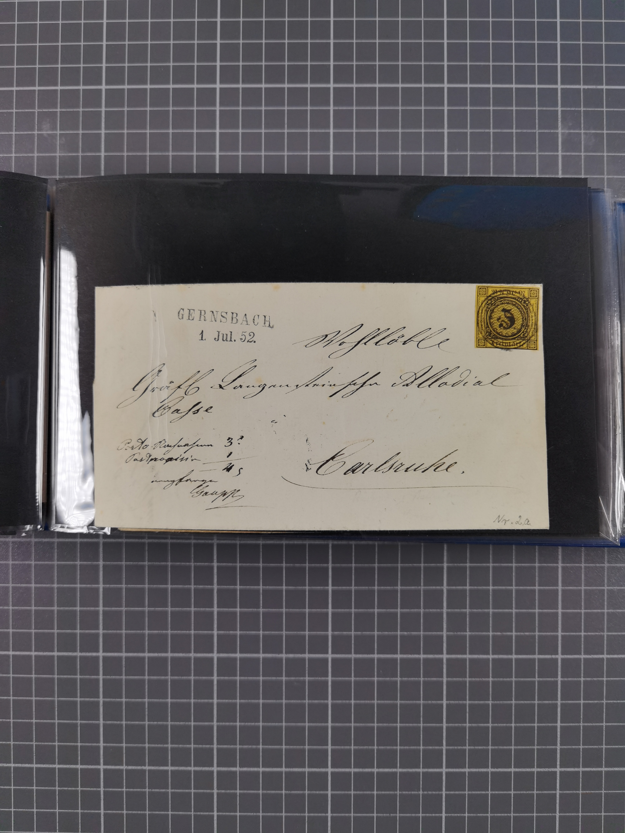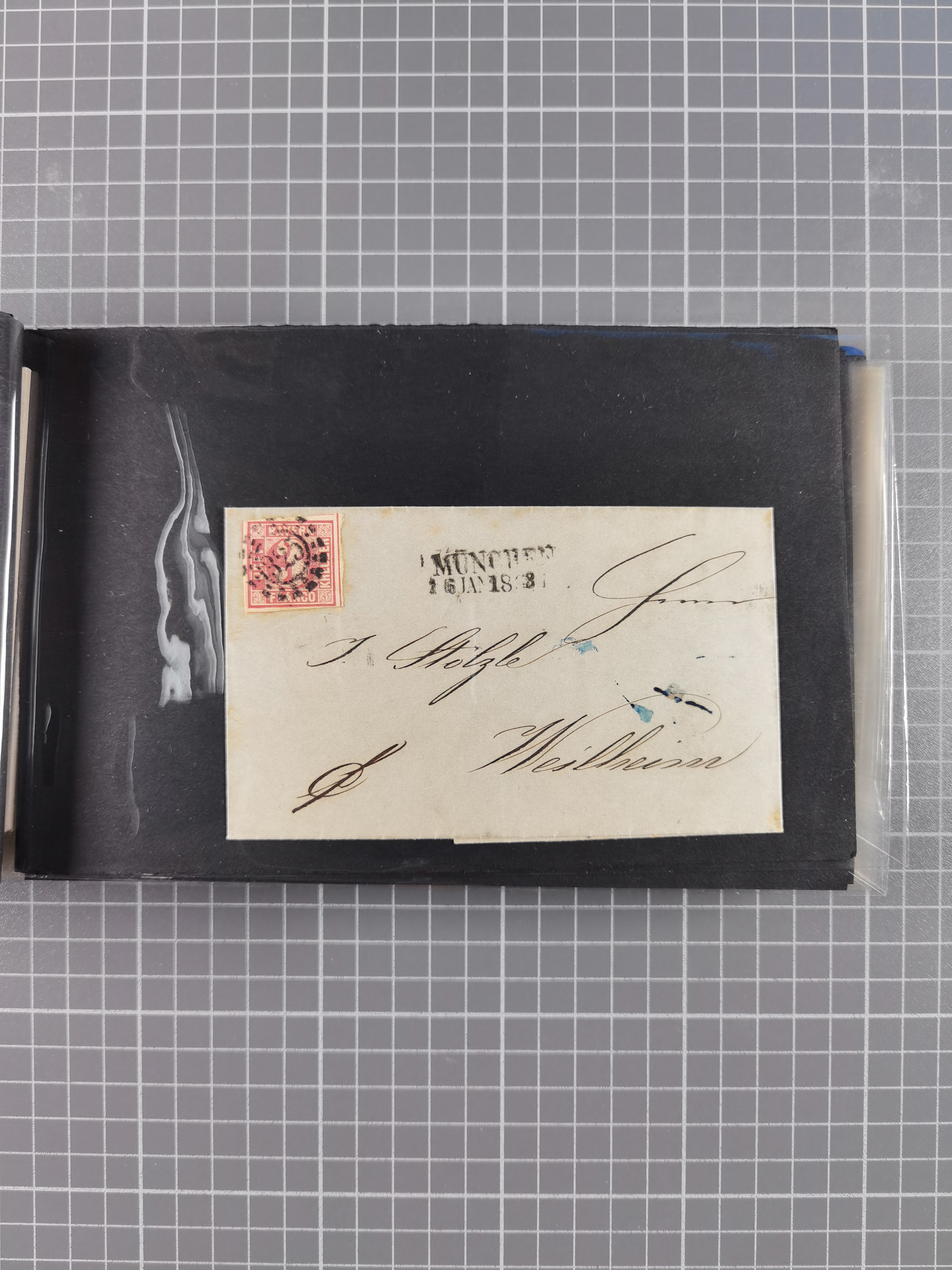 1849/70 (ca.), meist gestempelte kleine Partie im Ordner, überwiegend Bayern mit u.a. 1 IIa, 4 I/III, 8II, Wappen-Brief in die USA, 26X,etc. praktisch alles signiert, diverse Kurzbefunde und Atteste BPP