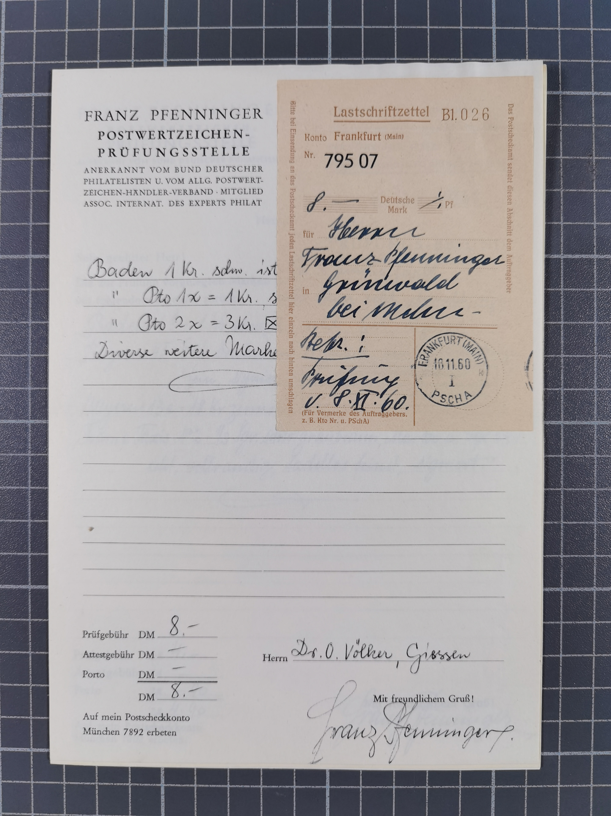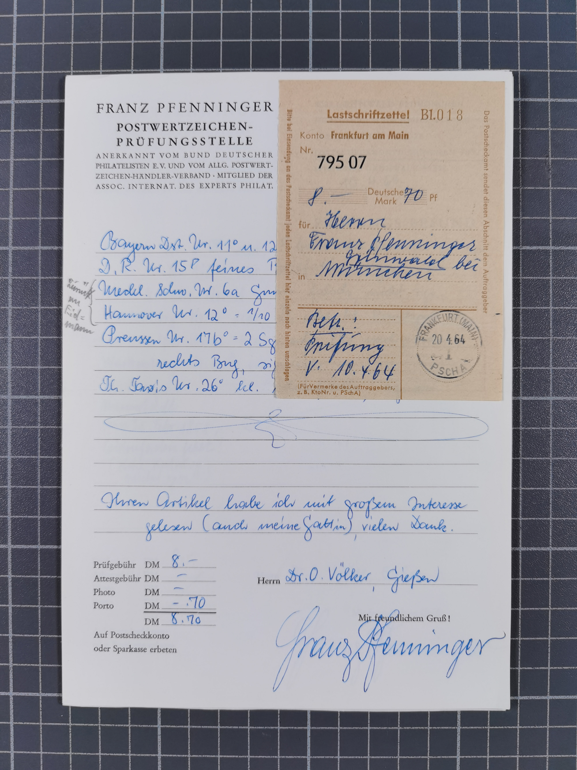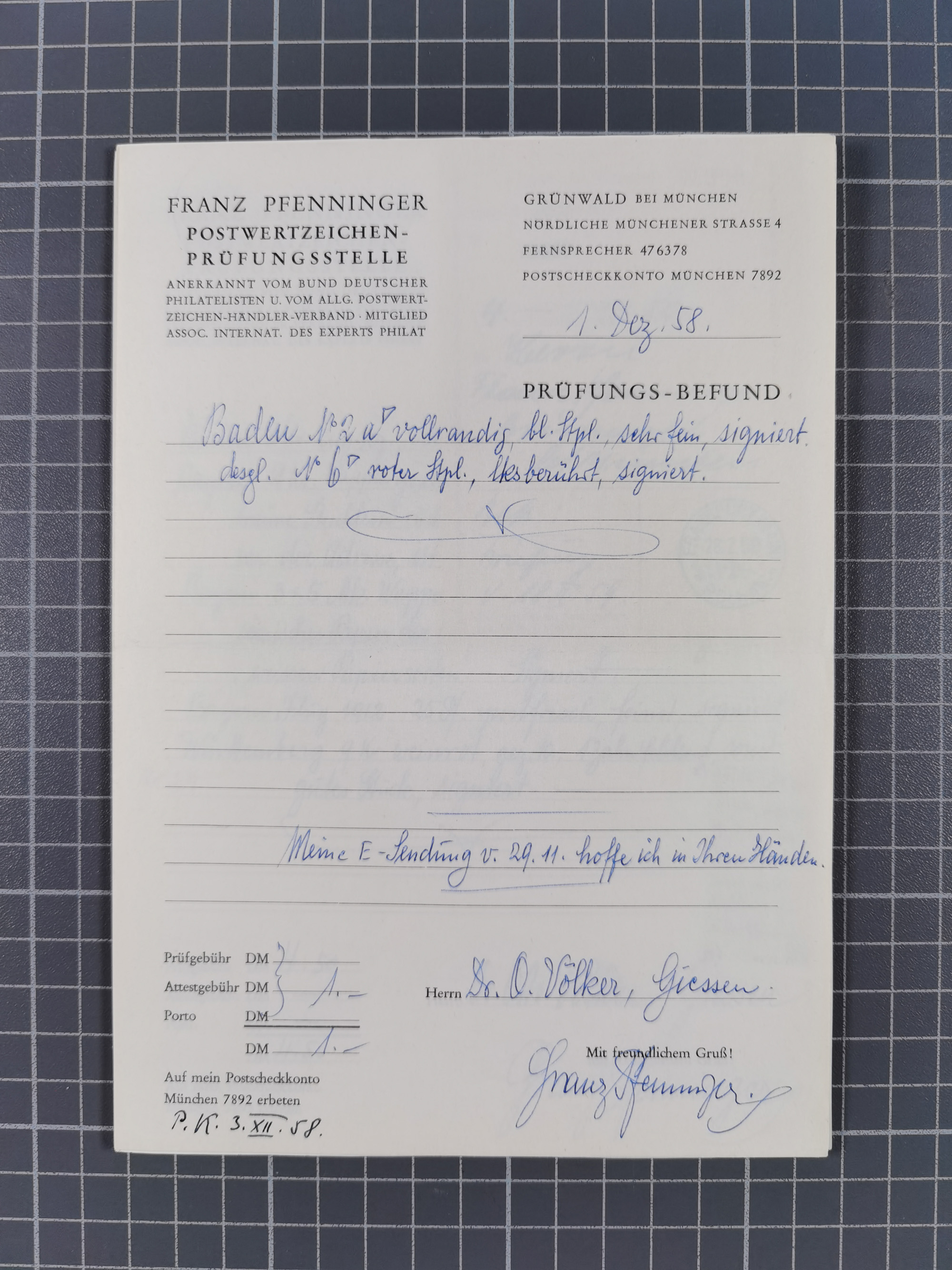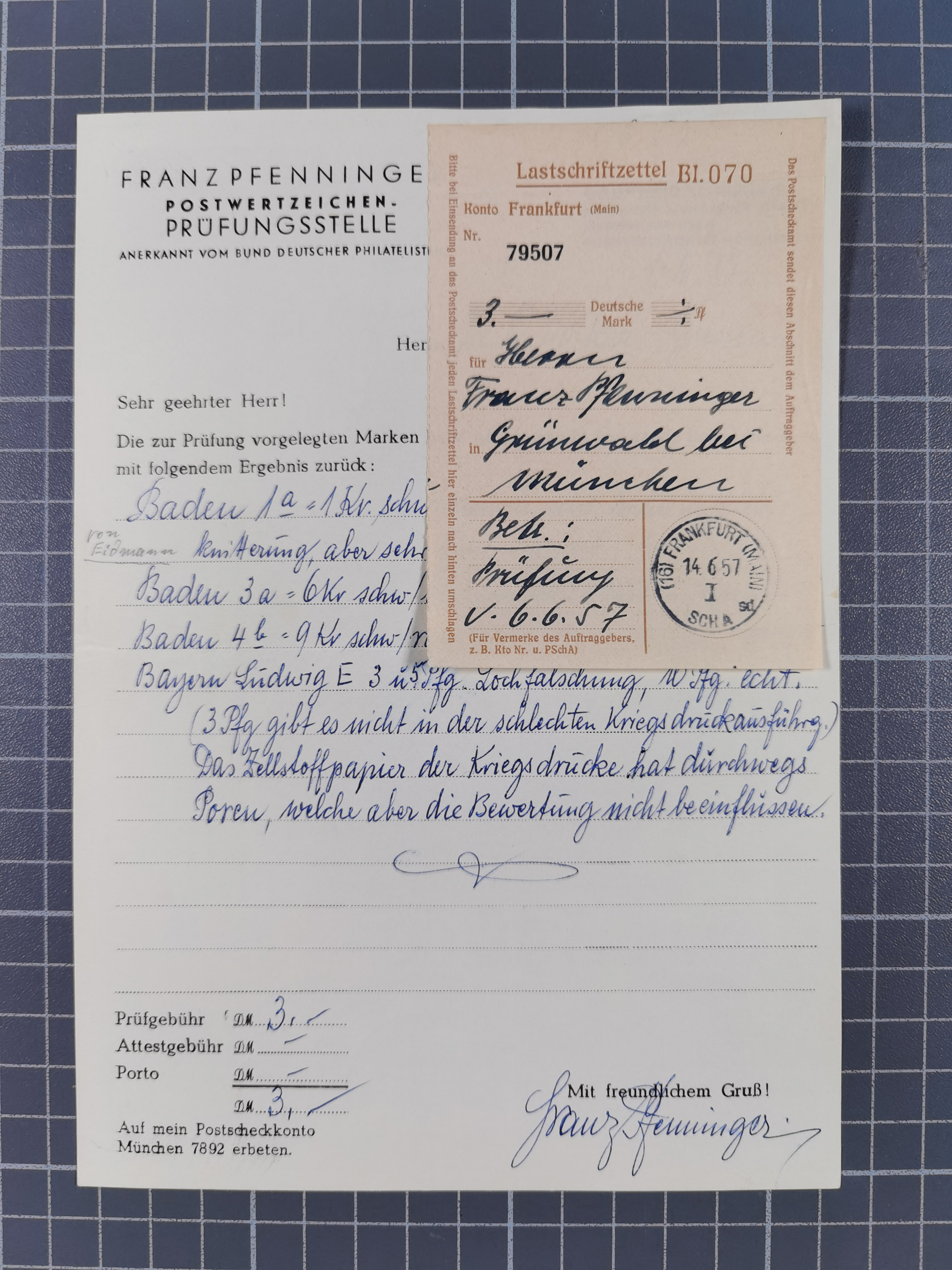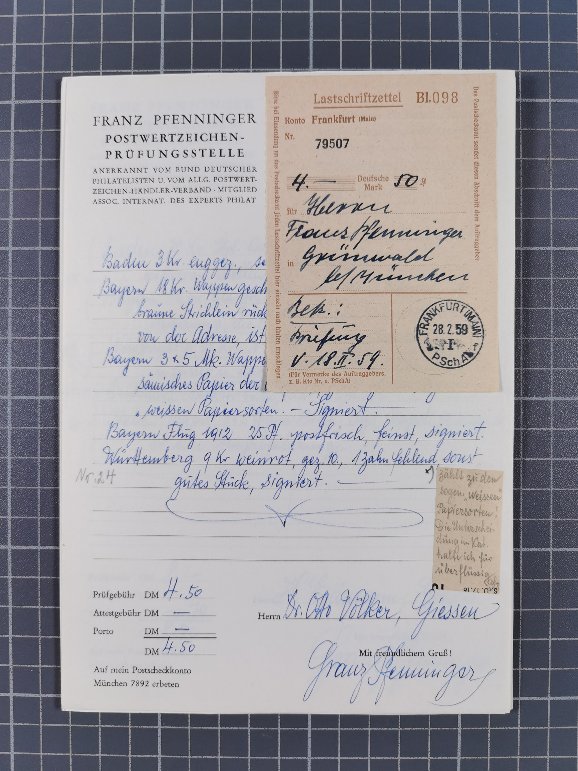 1849/70 (ca.), meist gestempelte kleine Partie im Ordner, überwiegend Bayern mit u.a. 1 IIa, 4 I/III, 8II, Wappen-Brief in die USA, 26X,etc. praktisch alles signiert, diverse Kurzbefunde und Atteste BPP