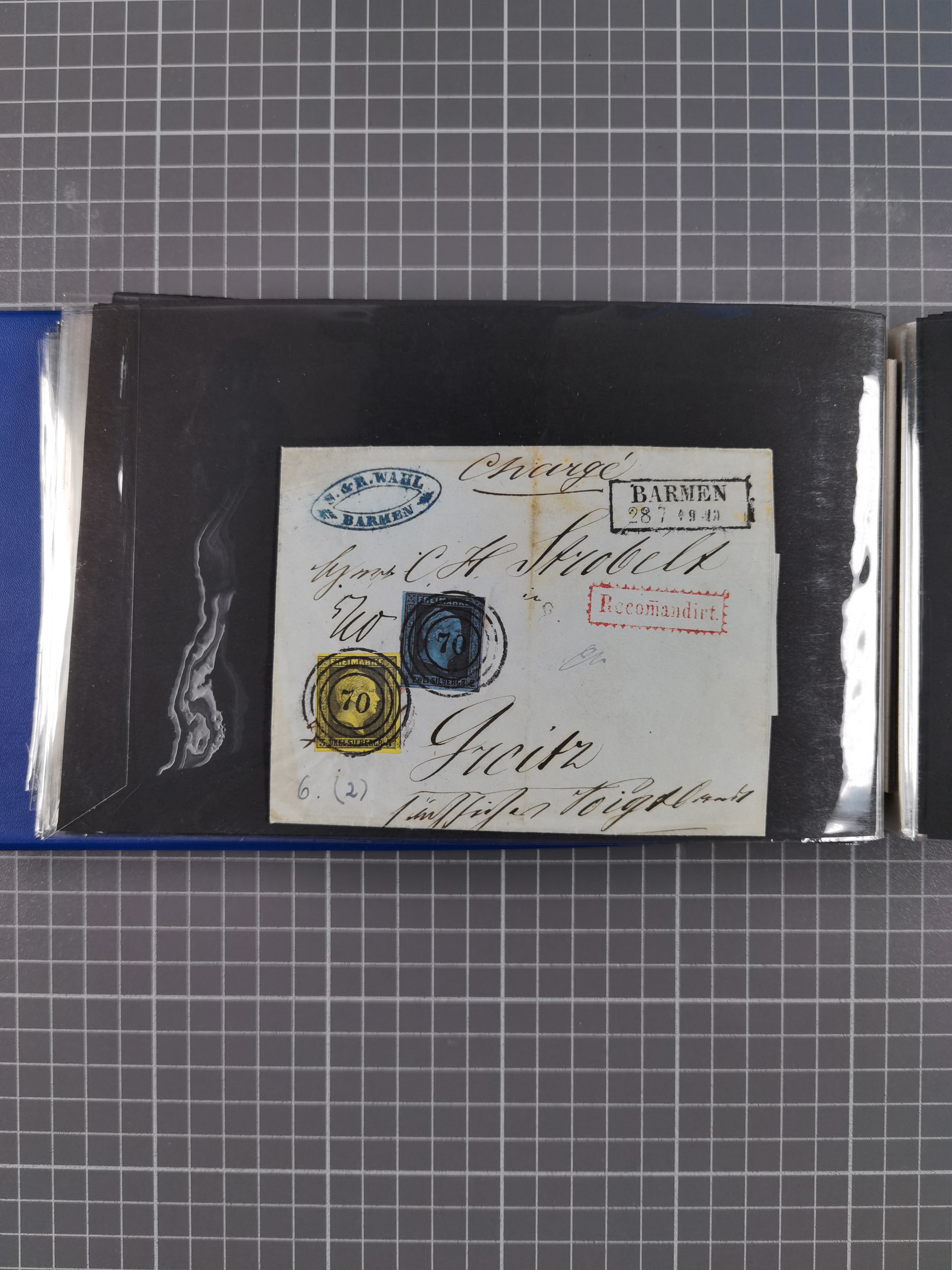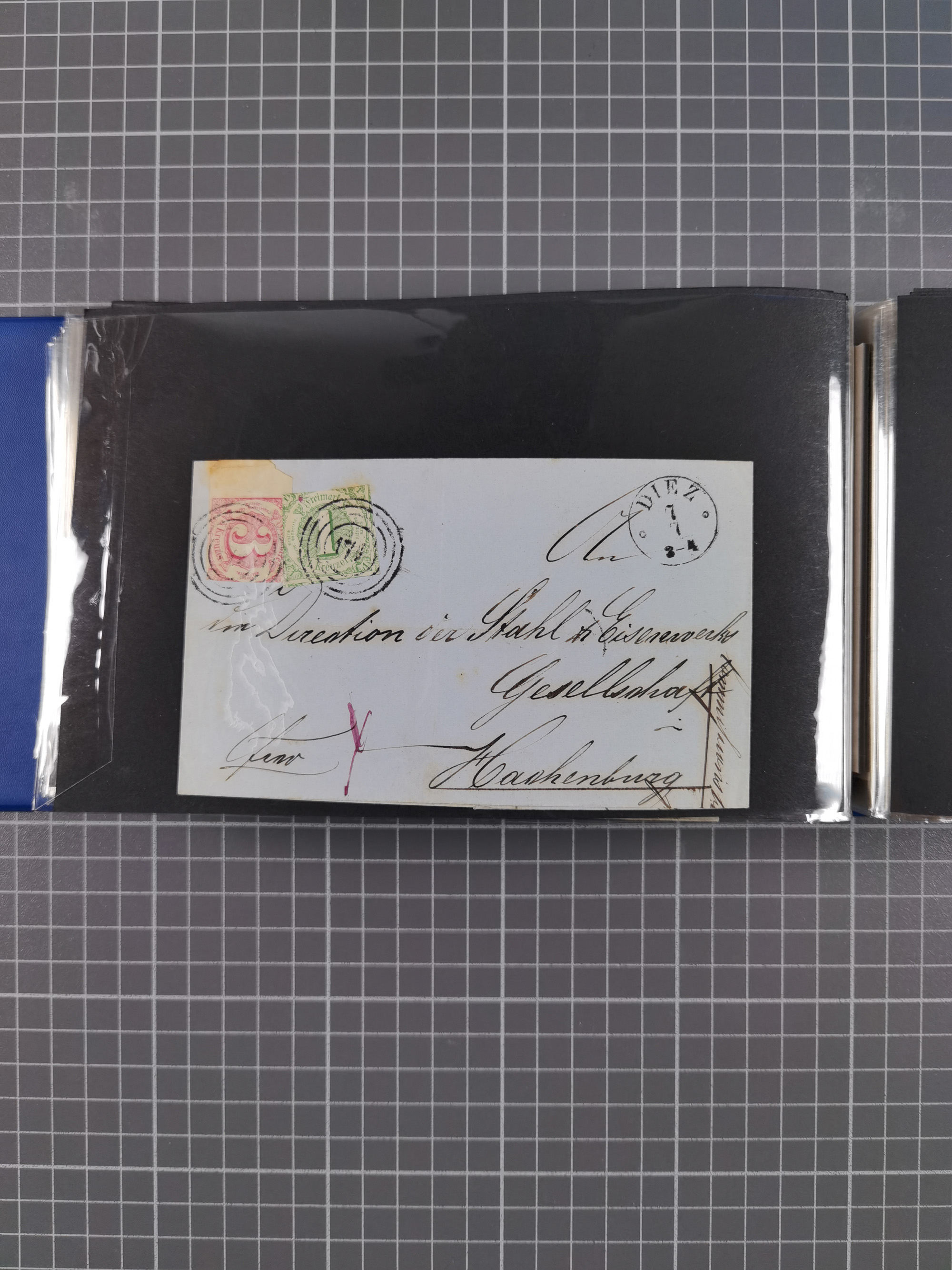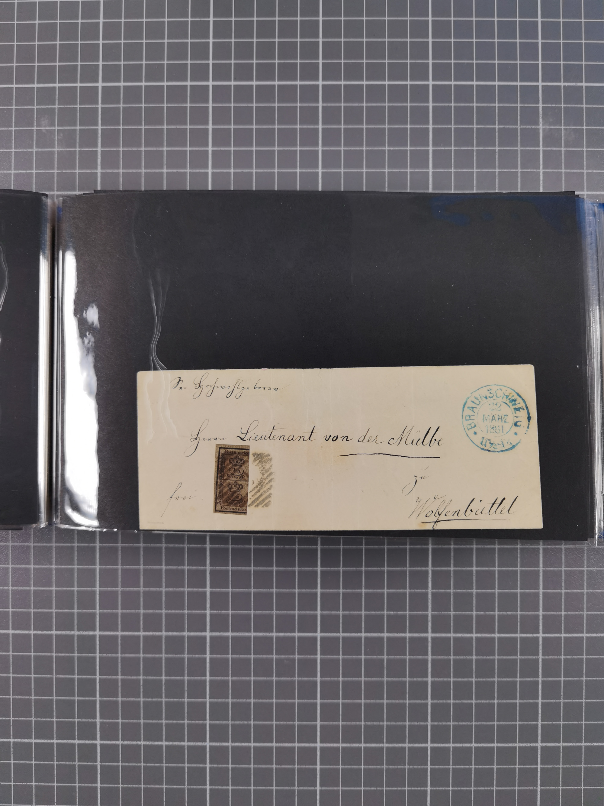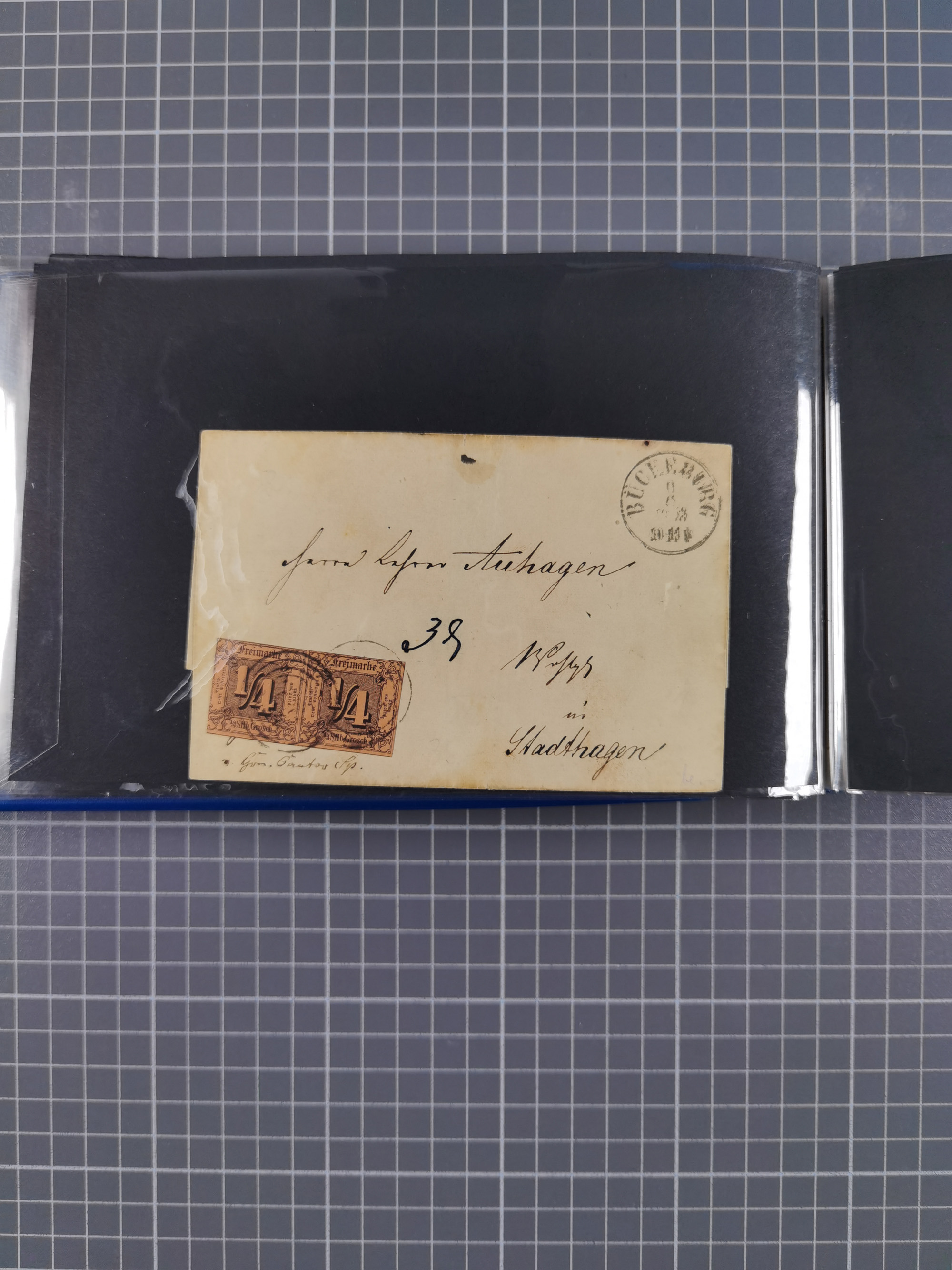 1850/72, 10 frankierte Briefe und Ganzsachen, dabei Braunschweig Mi. 5 auf Drucksache, Bremen Mi. 14, Preußen Mi. 20-21 in Mischfrankatur mit 1 Kr., etc. Etwas unterschiedlich Erhaltung