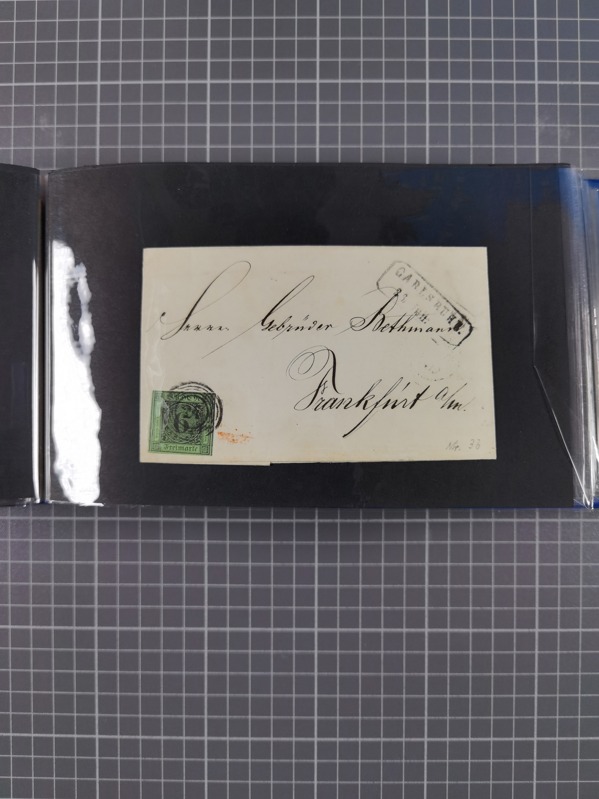Baden bis Württemberg, gestempelter/ungebrauchter und postfrischer Sammlungsbestand, dabei u.a. Bayern Mi.-Nr. 1Ia ungebraucht vollrandig und einwandfrei (FA Sem BPP), Hannover Mi.-Nr. 17y gestempelt breitrandig und einwandfrei (FA Berger BPP), Thurn u. Taxis Mi.-Nr. 7 und 8 auf Faltbrief mit EKr. “MAINZ”, 45 gestempelt (repariert und dopp. sign. Pfenniger), sowie einige - meist signierte Werte, ferner Dubletten sowie einige Briefe, 9 Kurz-/Befunde BPP, in drei Steckalben