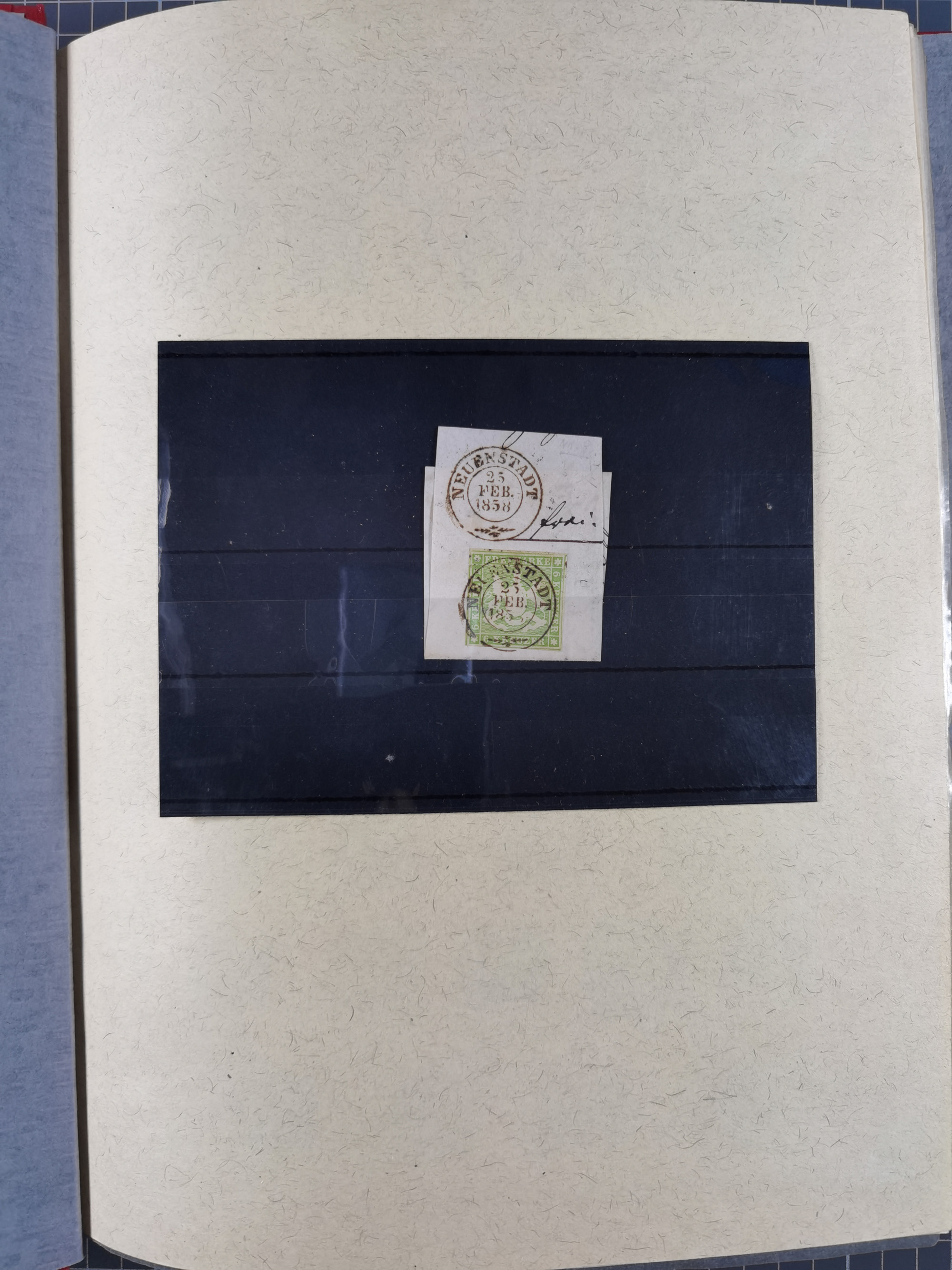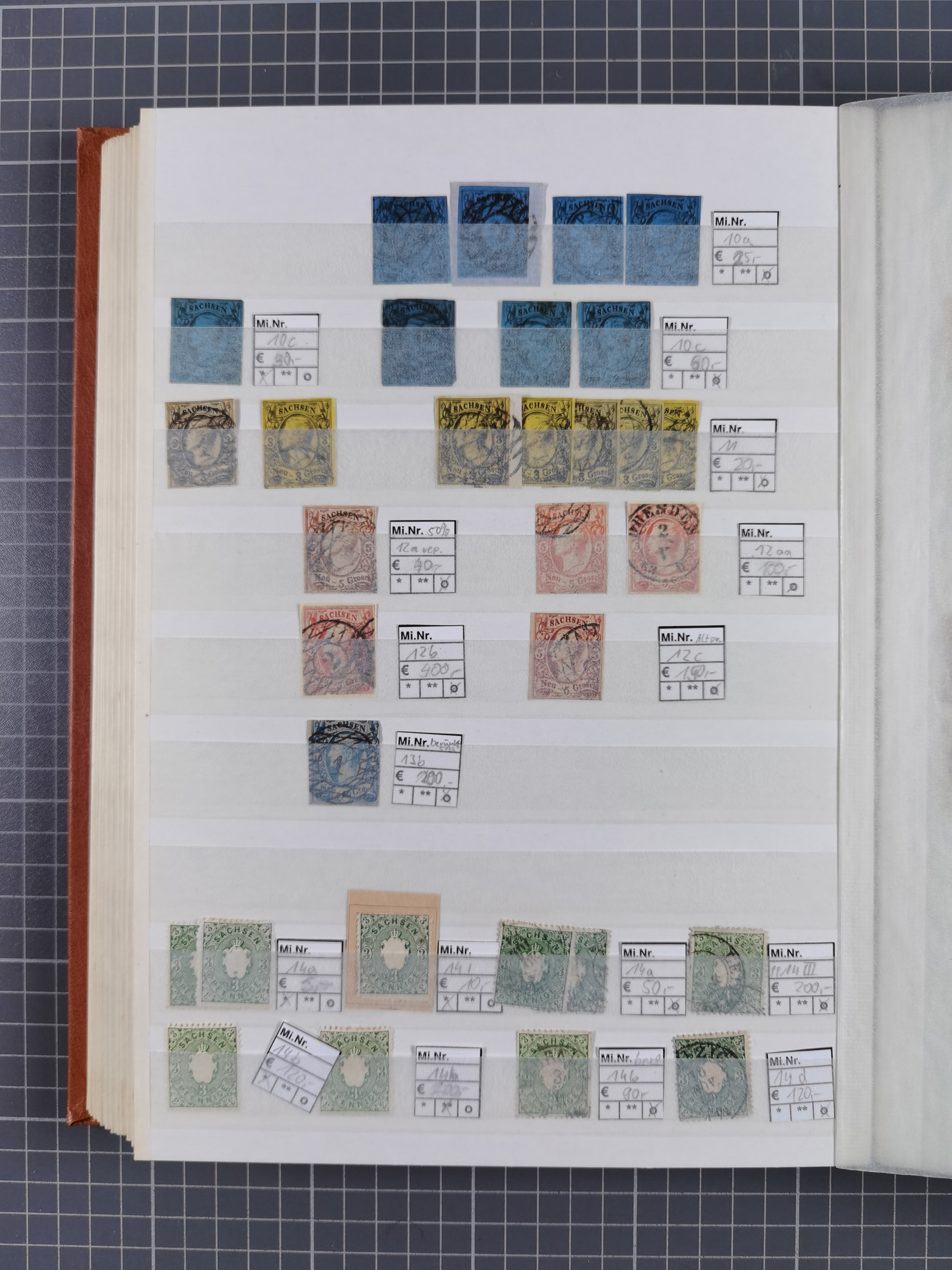 1851/68, gestempelte Sammlung inkl. Landpost-Portomarken und etlichen Farben. Dabei u.a. Mi.-Nr. 1a (tadellos, FA Stegmüller BPP), Randstück Mi.-Nr. 1b (FA Brettl BPP), 16 (KB Stegmüller BPP), Mi.-Nr. 19Ab (FA Brettl BPP), Mi.-Nr. 21a (tadellos, FA Stegmüller BPP), Mi.-Nr. 22b (FA Englert BPP und Flemming BPP) und Landpost Mi.-Nr. 1-2x auf zwei Briefstücken (je mit KB Stegmüller BPP “einwandfrei”. Fast alle besseren Marken sind bestens signiert oder haben KB, FB und Fotoatteste