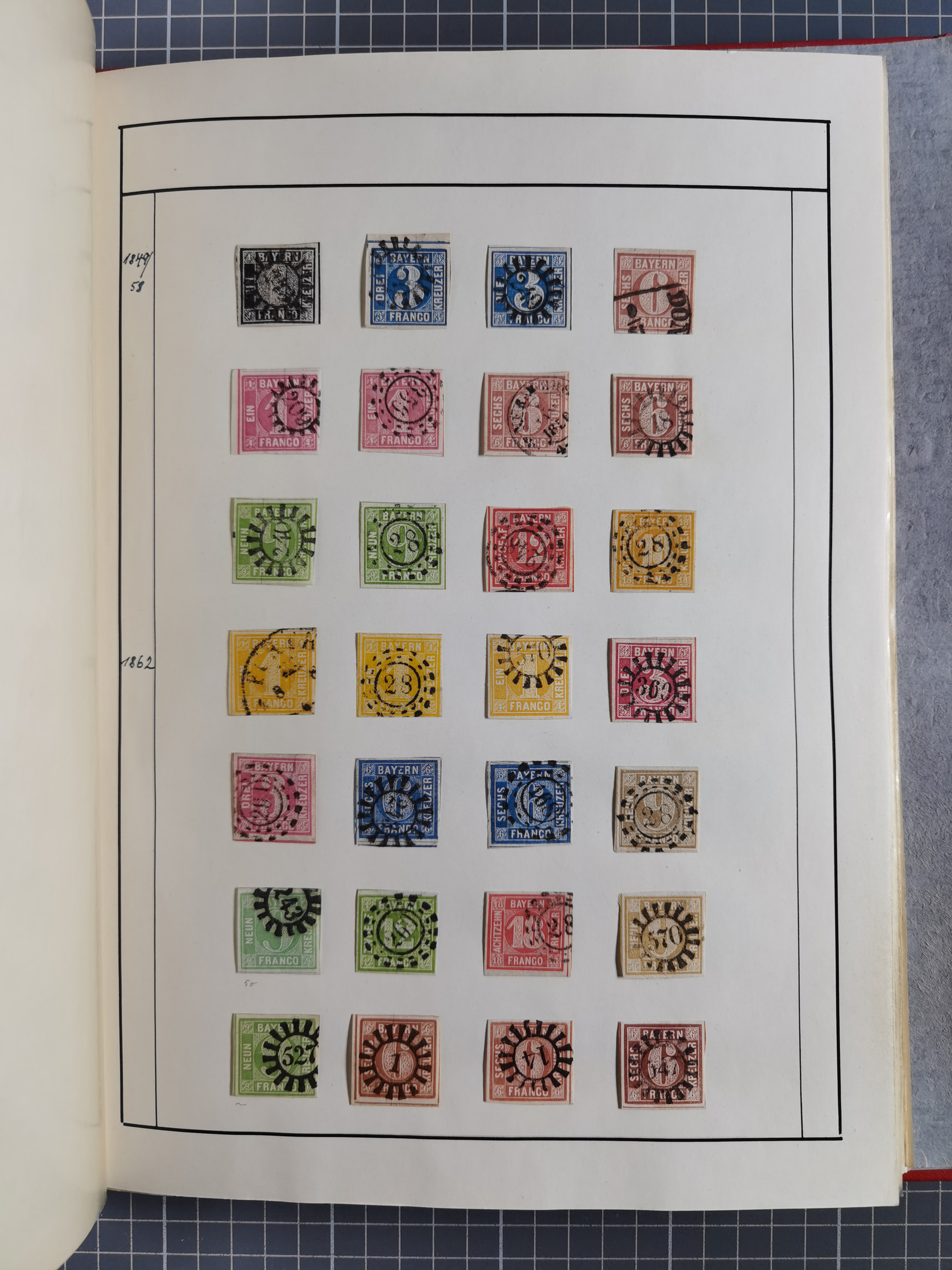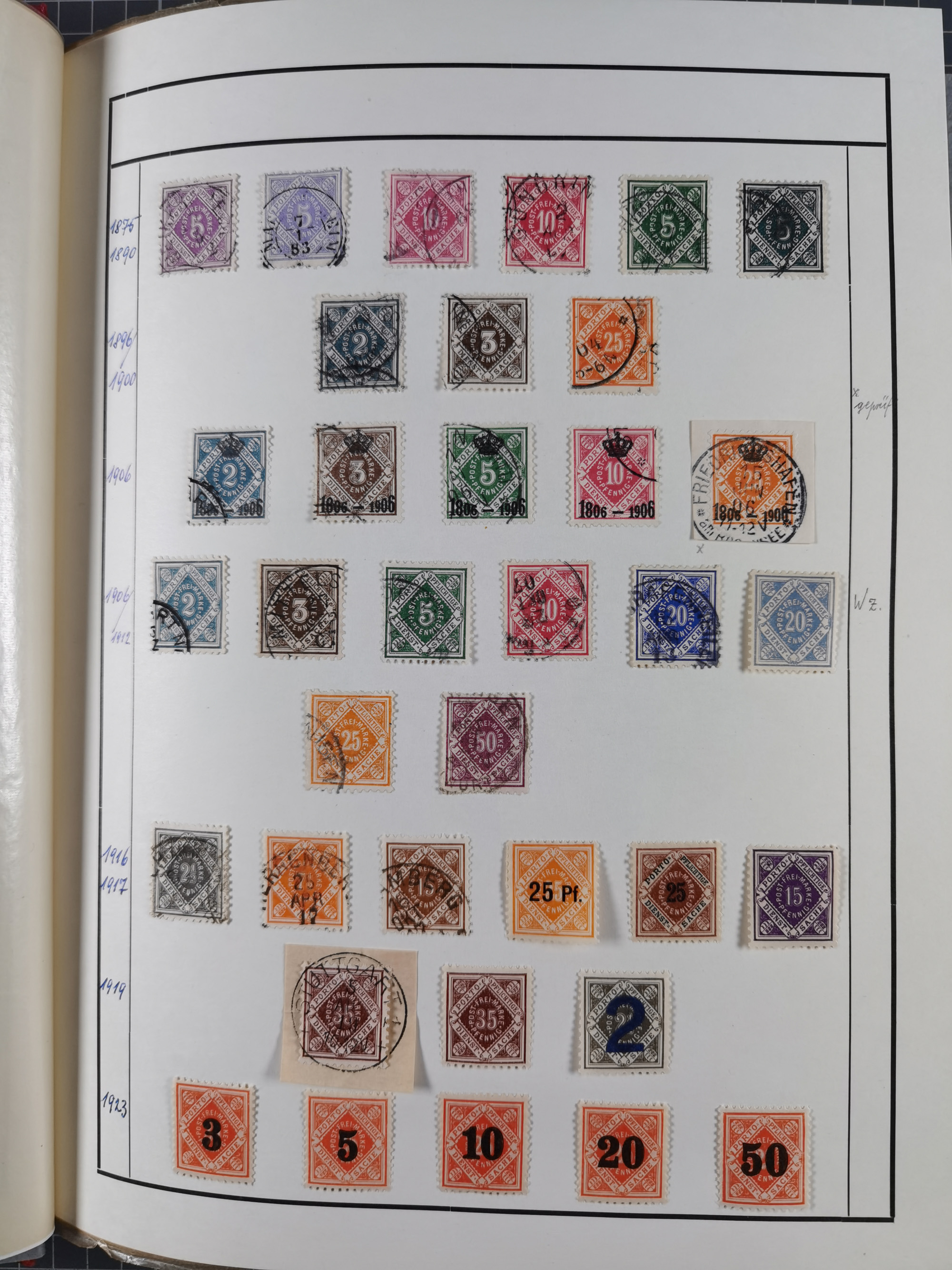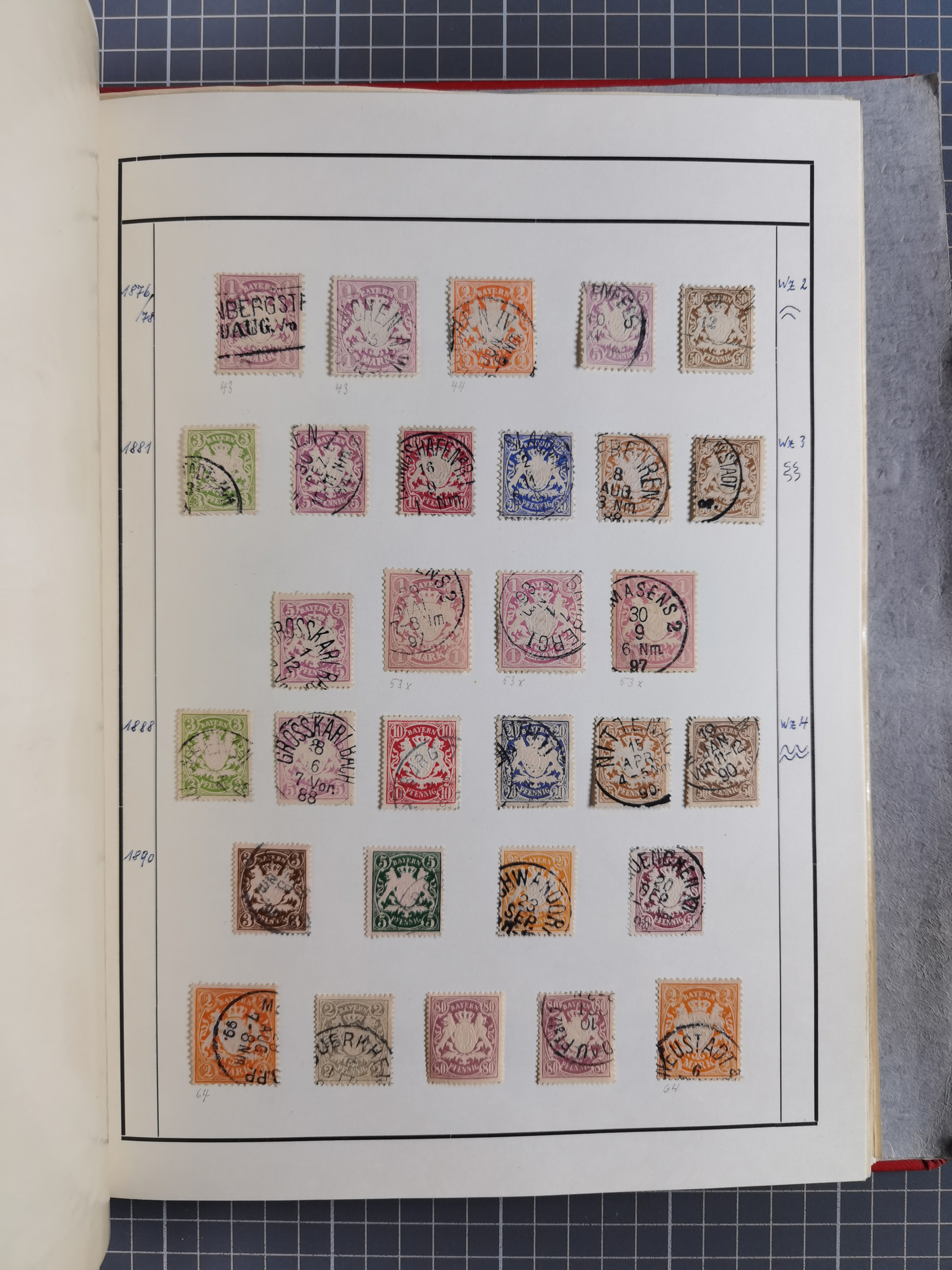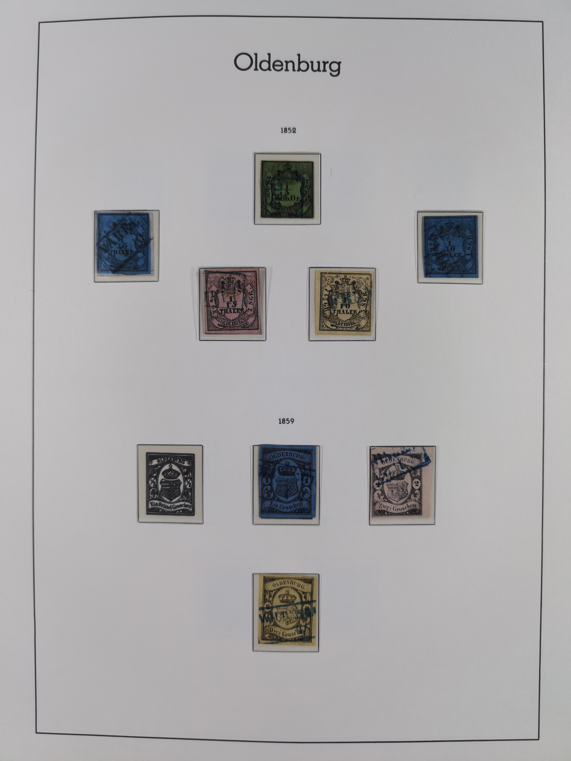 1849/1920, Baden bis Württemberg, meist gestempelte Sammlung mit besseren Werten und Ausgaben, ab Baden Mi.-Nr. 1a sign. Drahn, Braunschweig Mi.-Nr. 1-3 und 13, Hannover Mi.-Nr. 6, 17, Mecklenburg Mi.-Nr. 4 sign. Richter und Flemming, NDP Mi.-Nr. 23, sowie Oldenburg, Württemberg mit Mi.-Nr. 42, Sachsen Mi.-Nr. 1 sign. Bühler, etc., ferner einige abhängige Teile Ortsstempel, einiges signiert Richter, W. Engel und Drahn, etc., unterschiedliche Erhaltung, in drei Alben