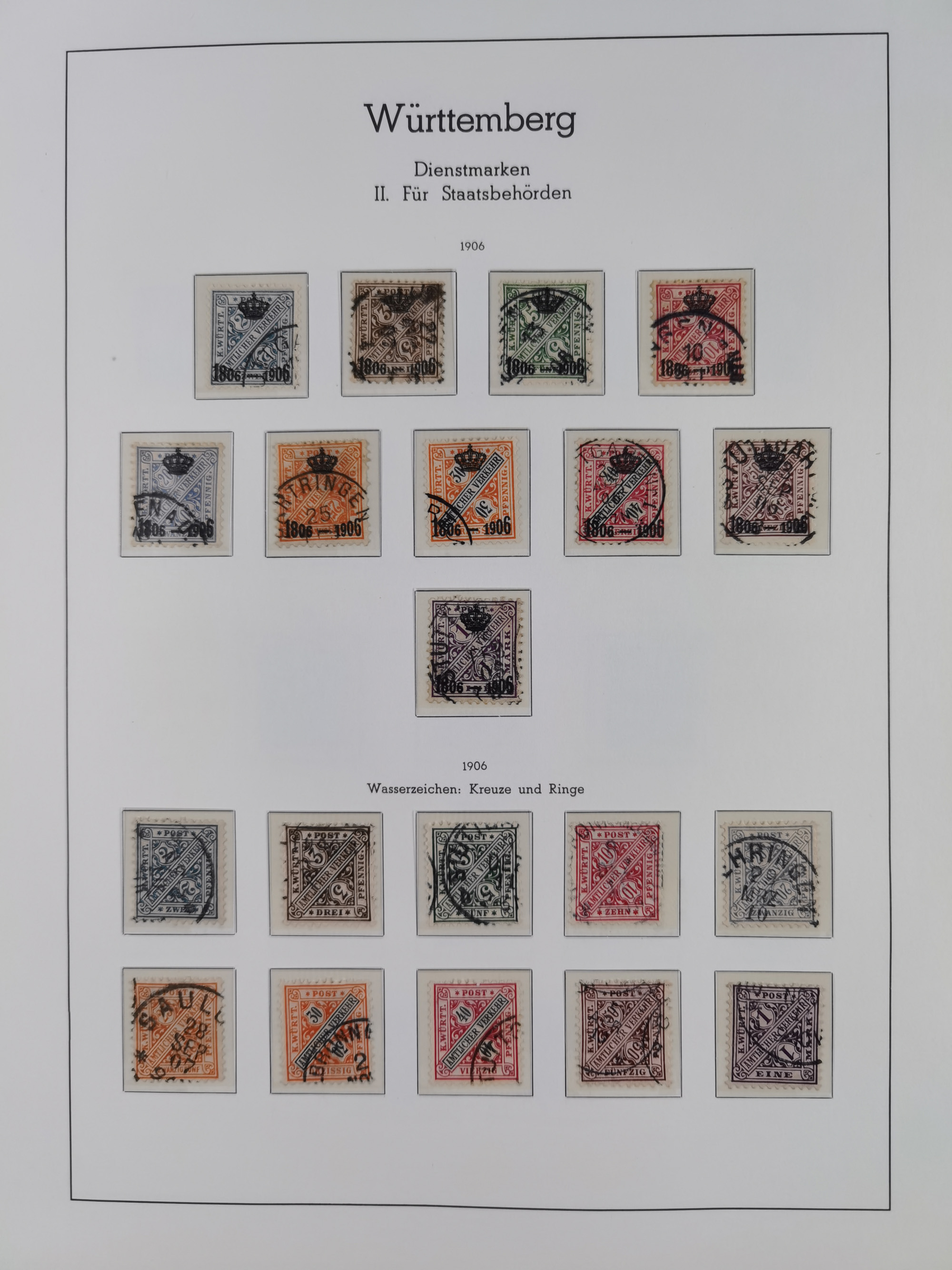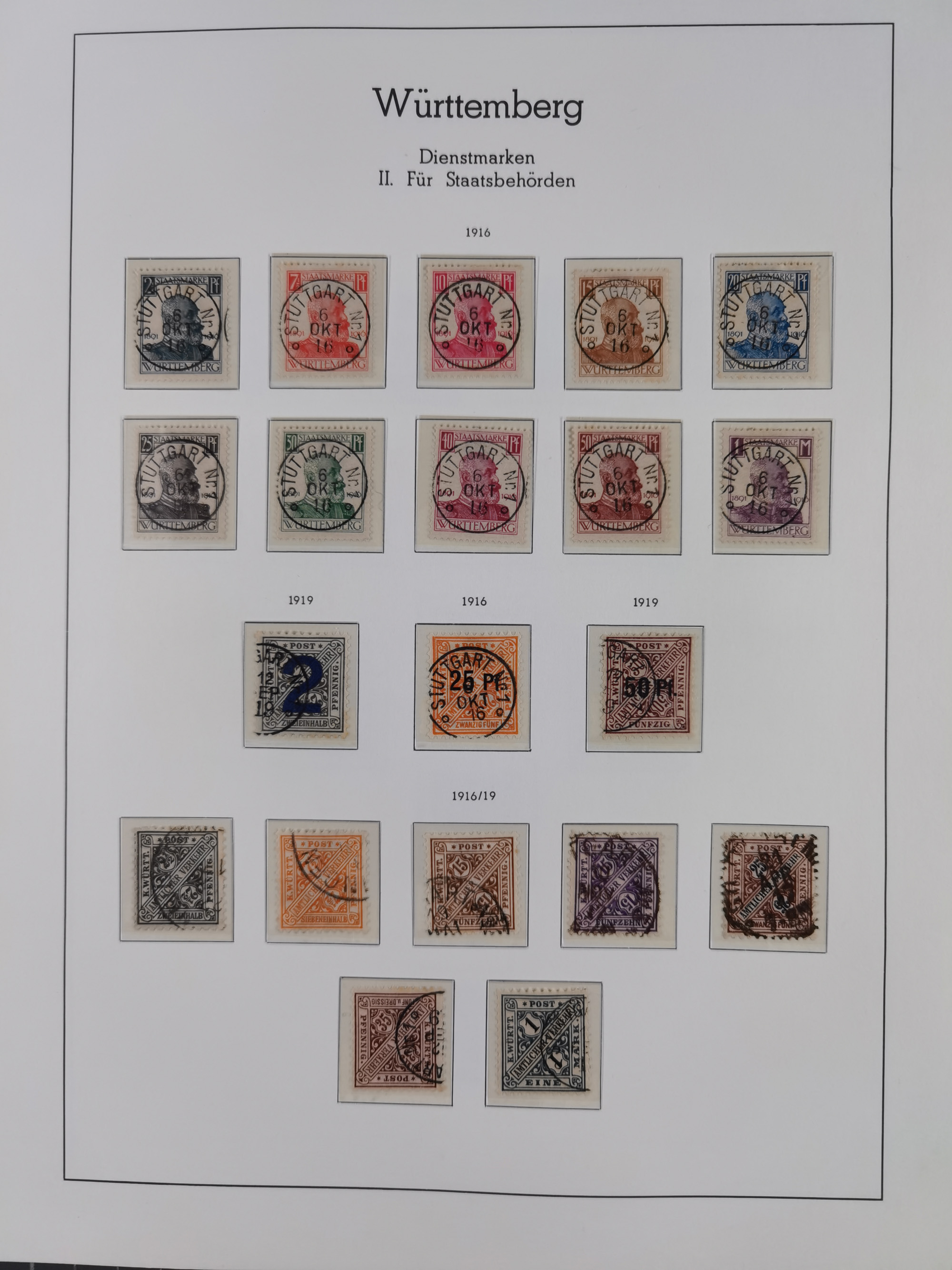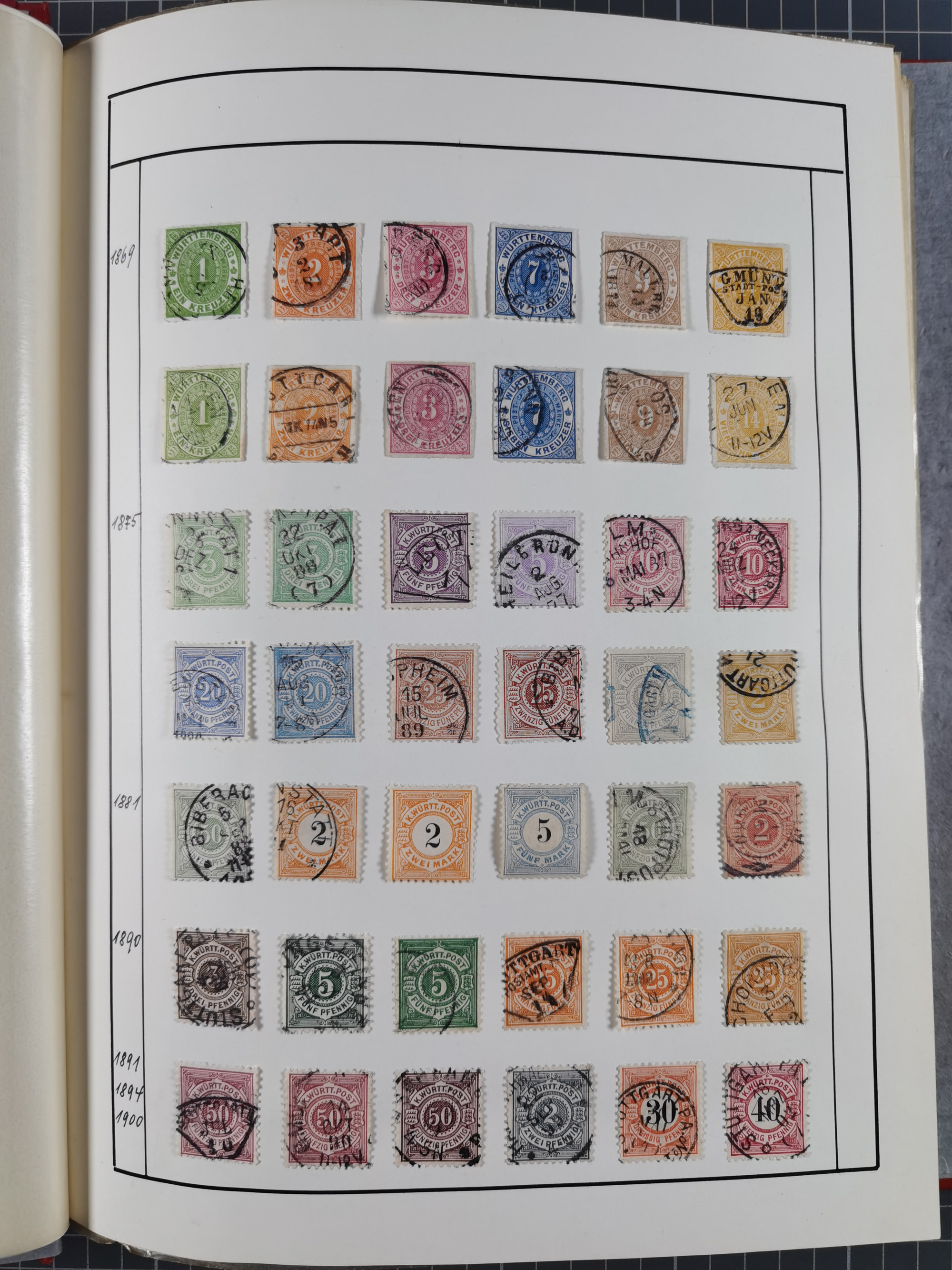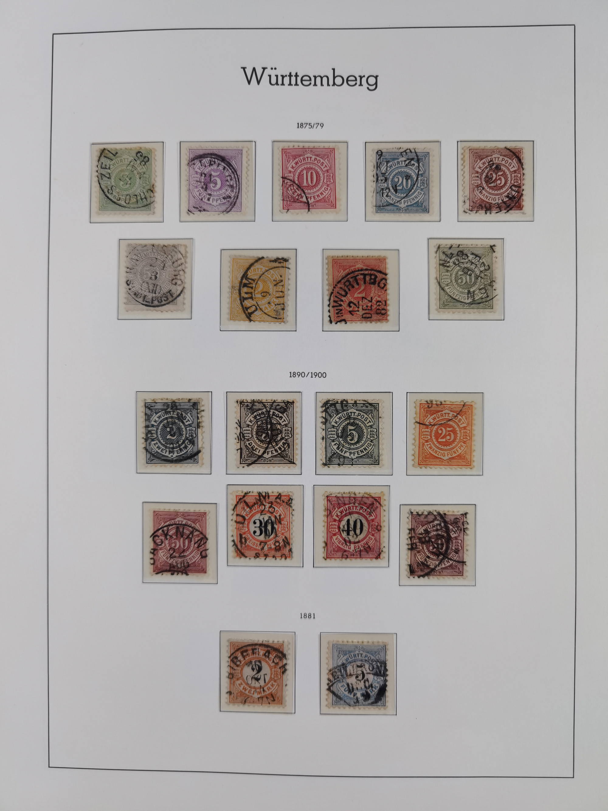 1849/1920, Baden bis Württemberg, meist gestempelte Sammlung mit besseren Werten und Ausgaben, ab Baden Mi.-Nr. 1a sign. Drahn, Braunschweig Mi.-Nr. 1-3 und 13, Hannover Mi.-Nr. 6, 17, Mecklenburg Mi.-Nr. 4 sign. Richter und Flemming, NDP Mi.-Nr. 23, sowie Oldenburg, Württemberg mit Mi.-Nr. 42, Sachsen Mi.-Nr. 1 sign. Bühler, etc., ferner einige abhängige Teile Ortsstempel, einiges signiert Richter, W. Engel und Drahn, etc., unterschiedliche Erhaltung, in drei Alben