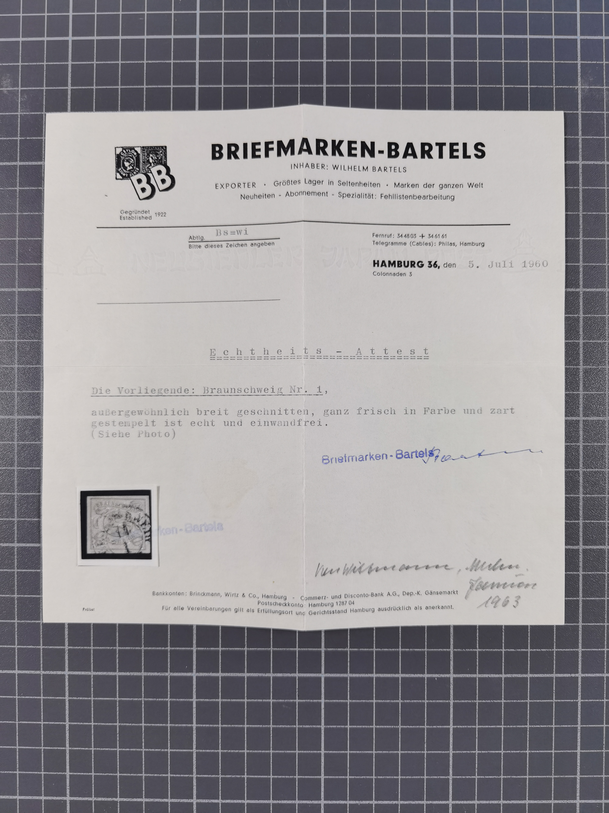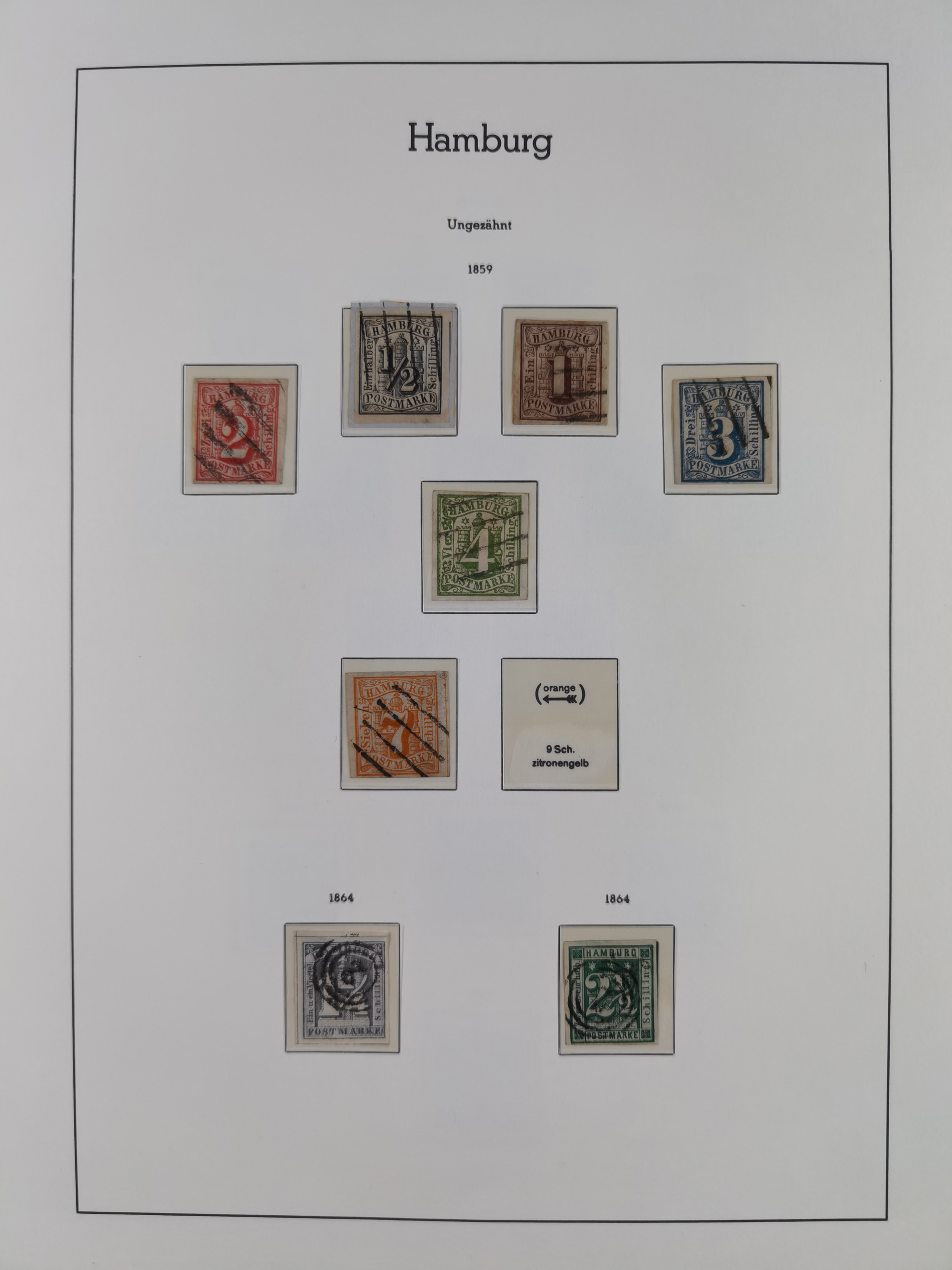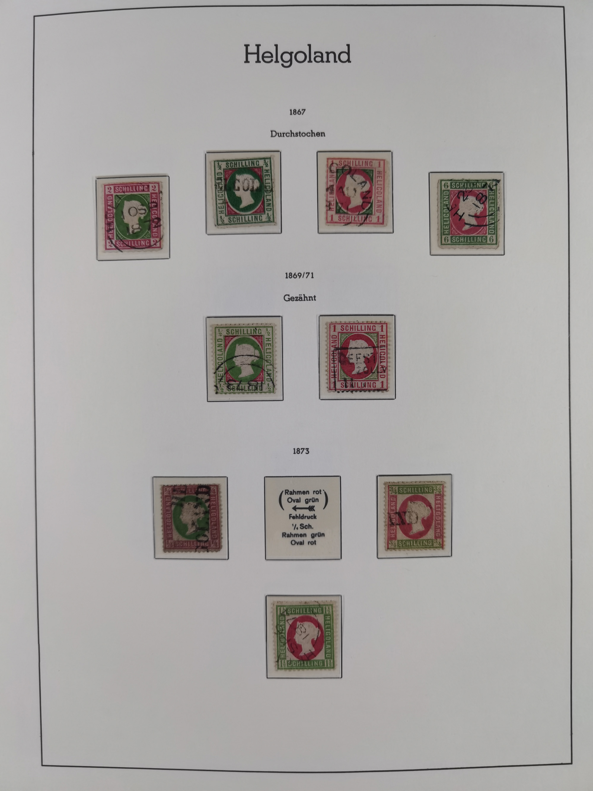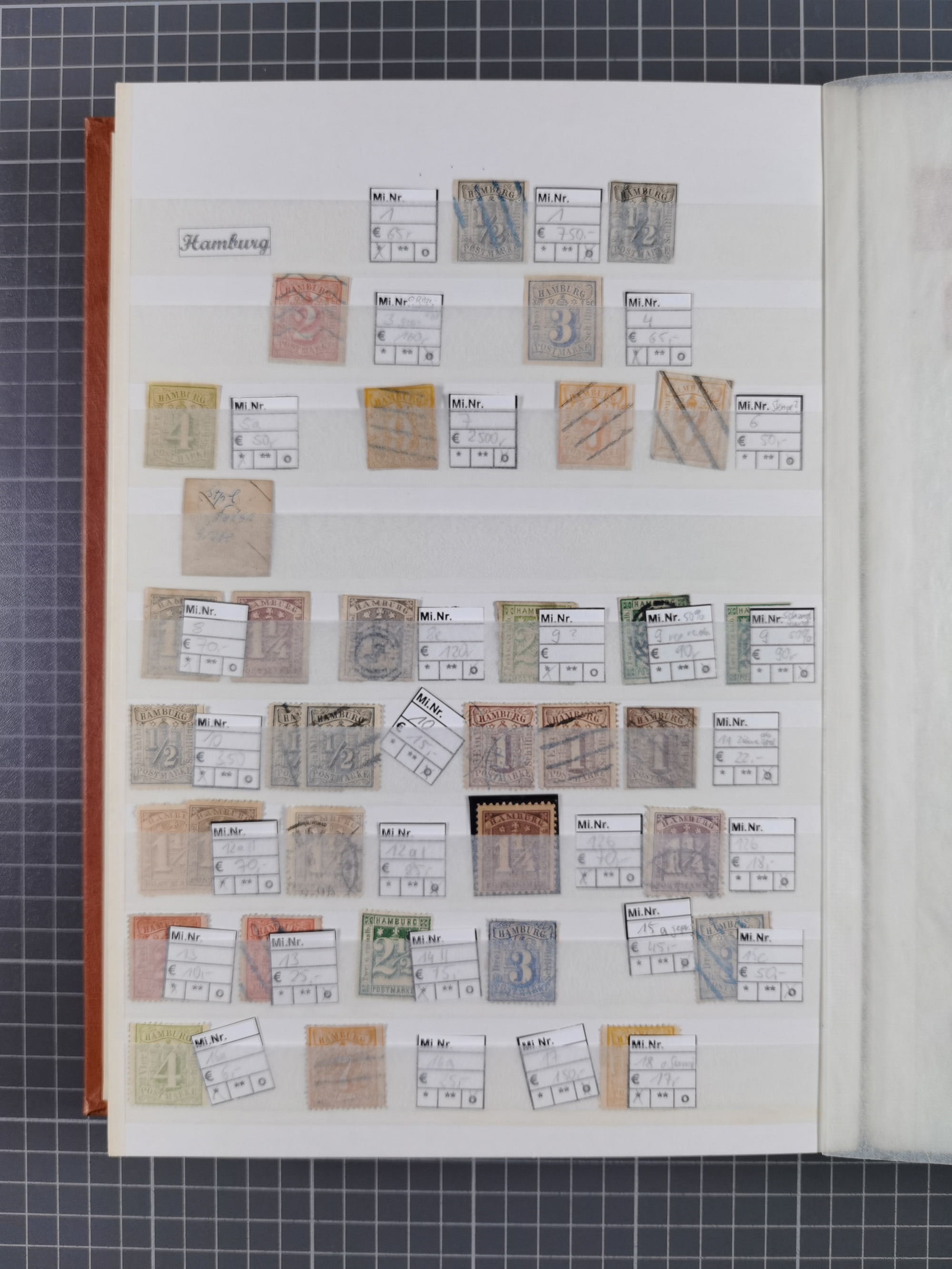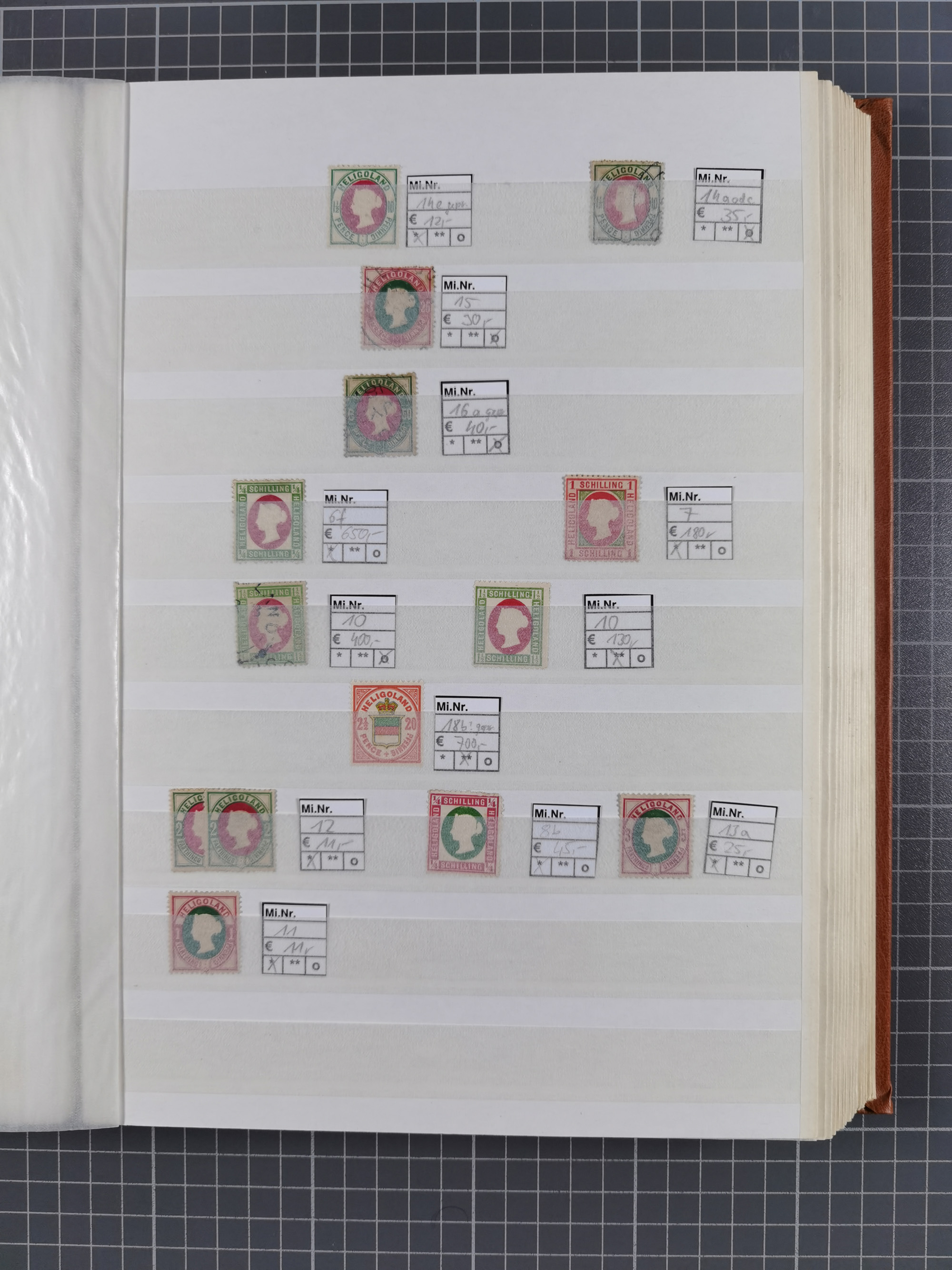 1852/65, gestempelte Sammlung von Bergedorf bis Schleswig Holstein mit besseren Marken, dabei u.a. Bergedorf Randstück Mi.-Nr. 1a (FA Jakubek), Mi.-Nr. 1b (FA Jakubek, laut Dr. Mozek Stempel nicht prüfbar) und Mi.-Nr. 2 (FA Dr. Mozek BPP), Braunschweig mit besseren Werten in zum Teil fehlerhafter Erhaltung, Hannover mit einigen Briefen, Helgoland Mi.-Nr. 19Aa auf Brief mit zwei weiteren Marken und Schleswig Holstein mit sechs Marken