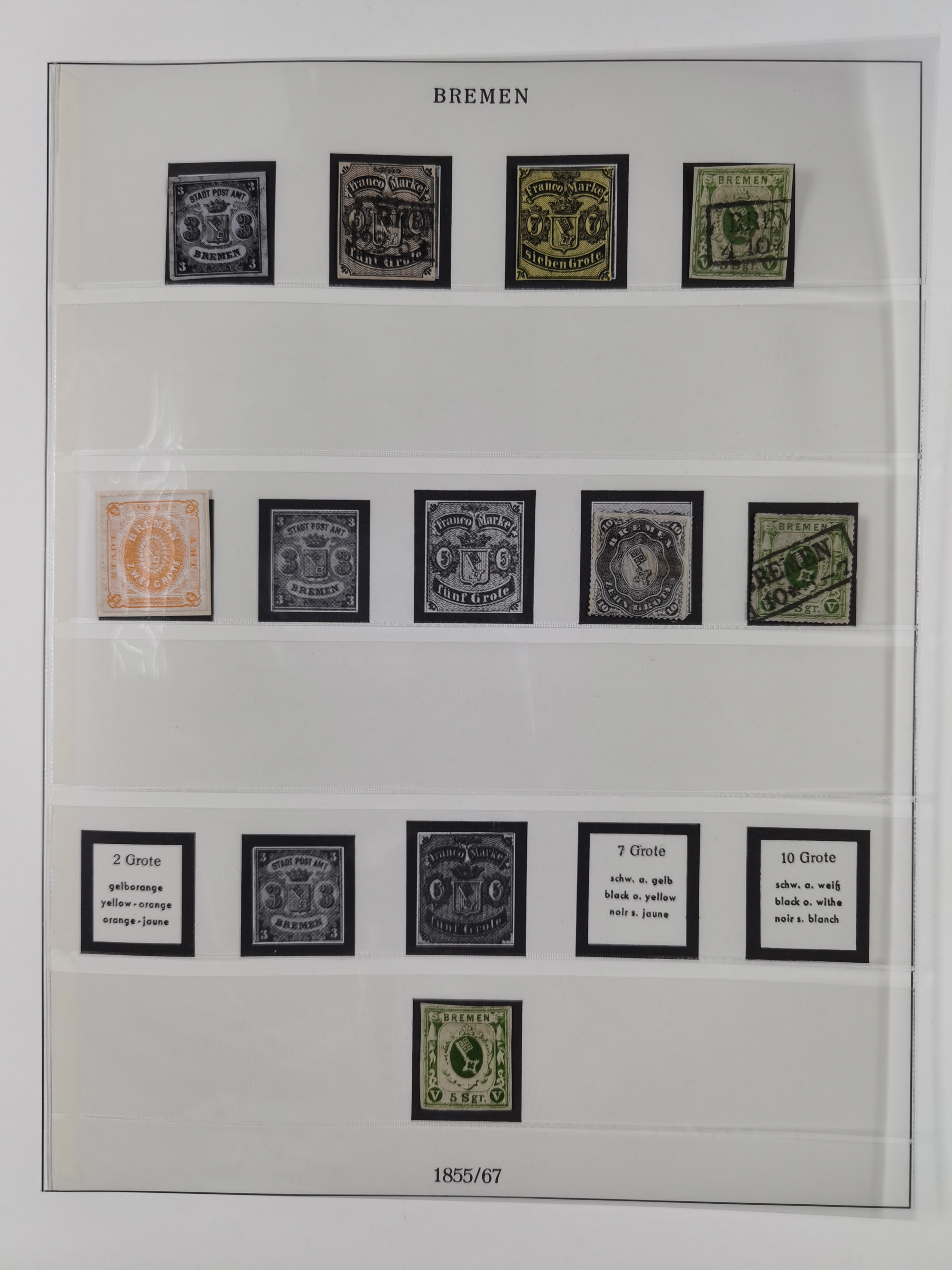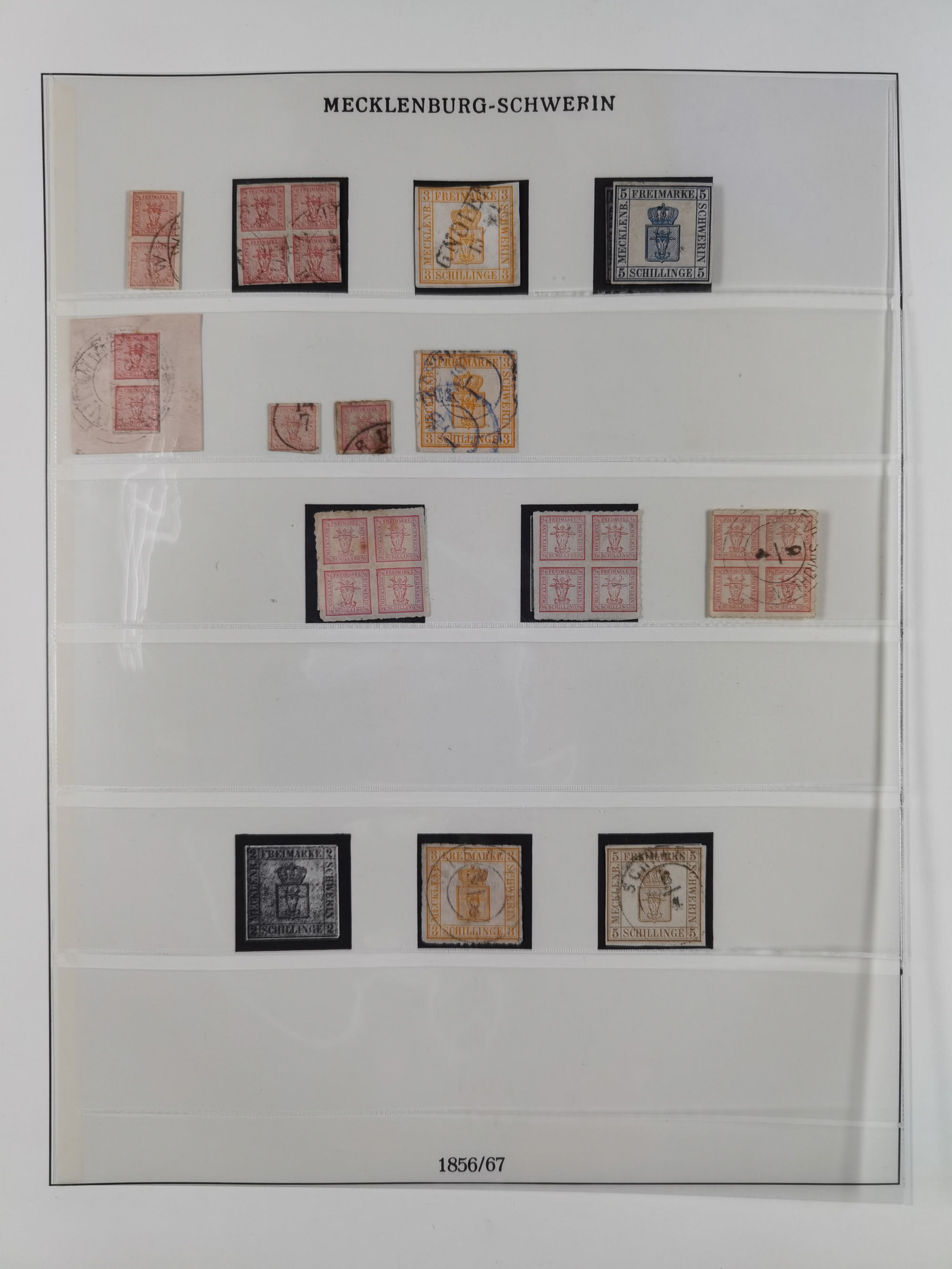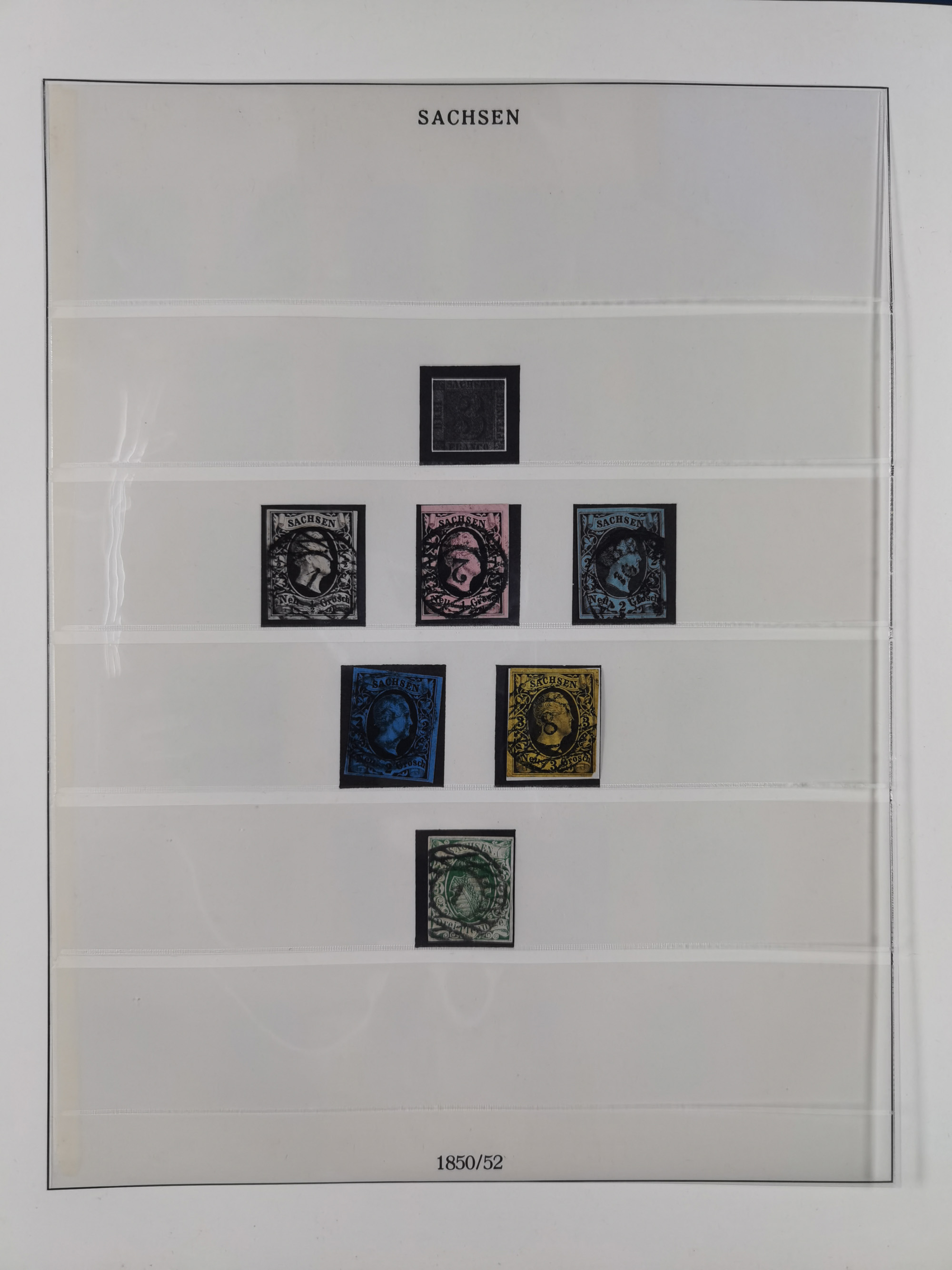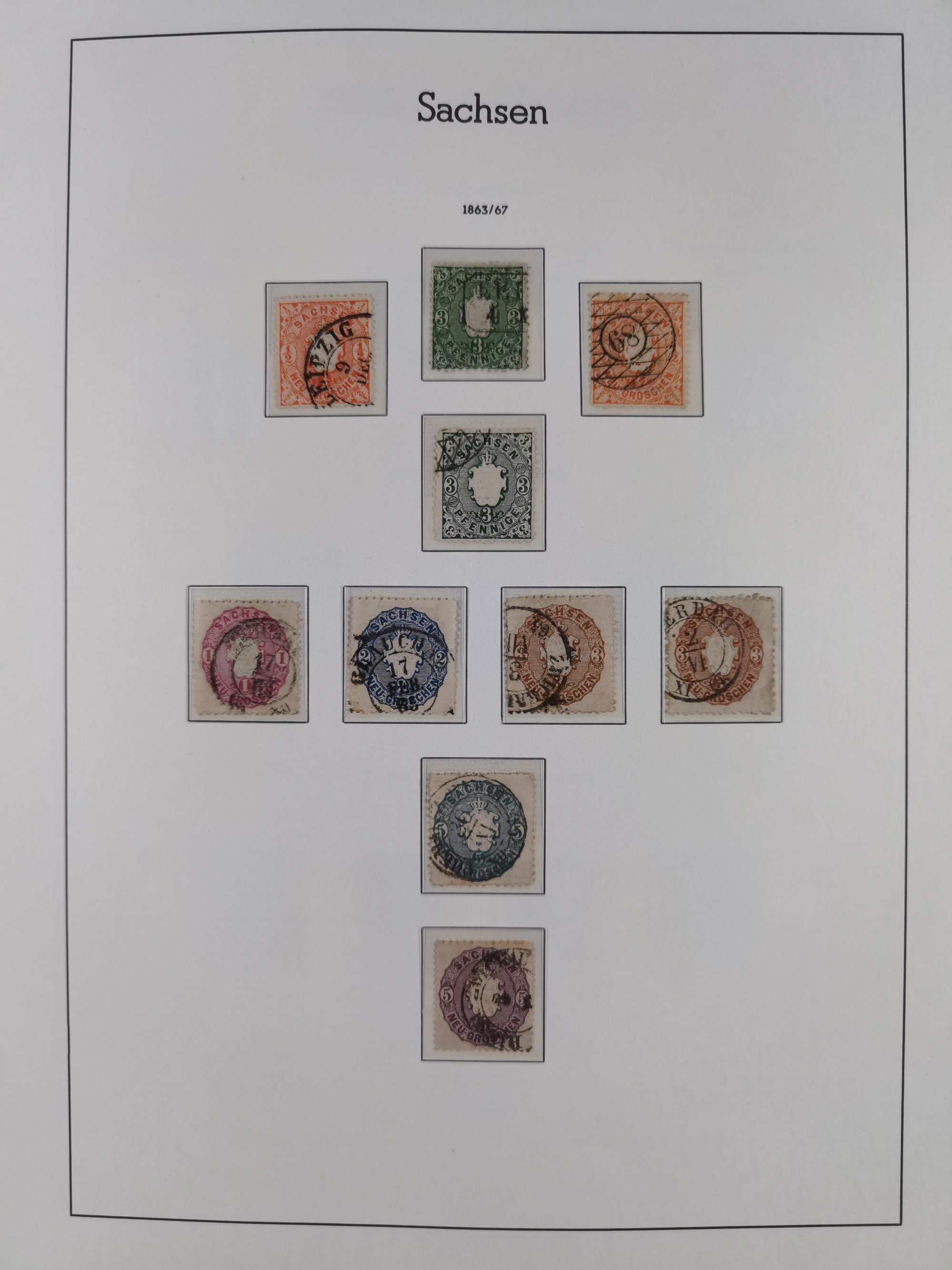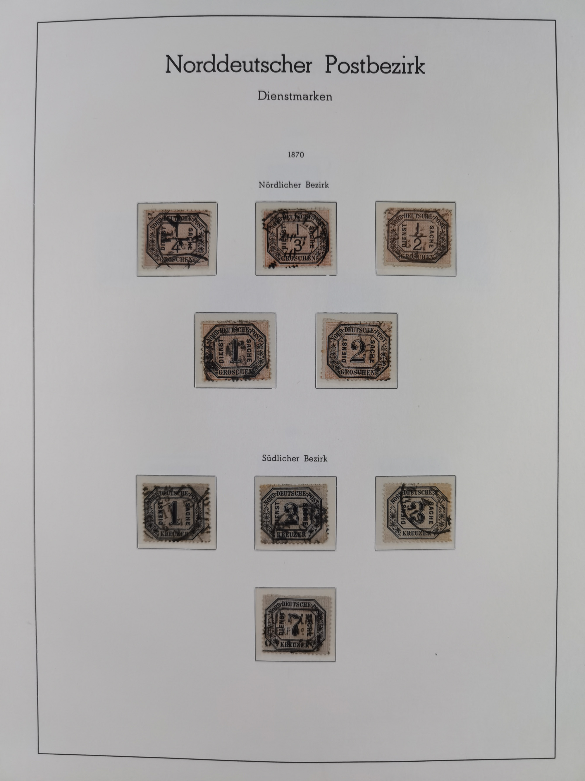 Bergedorf bis NDP, meist gestempelte und ungebrauchte Sammlung mit besseren Marken, Farben und Besonderheiten, Schwerpunkt bei Preußen, Sachsen und NDP. Dabei u.a. Preußen mit Mi.-Nr. 2c gestempelt (KB Wasels BPP), Mi.-Nr. 5 b gestempelt (FB Flemming BPP), Mi.-Nr. 11c gestempelt (KB Brettl BPP) und Mi.-Nr. 18a mit rotem Bahnpost-L3 “COELN/VERVIERS” (FB Flemming BPP) sowie Sachsen mit u.a. Mi.-Nr. 2Ic und 2IId gestempelt (jeweils FA Vaatz BPP), Mi.-Nr. 12b gestempelt (FA Vaatz BPP) und Mi.-Nr. 13a gestempelt (FA Vaatz BPP). Dazu eine stark reparierte Sachsen Mi.-Nr. 1a gestempelt (sign. Richter). Viele bessere Marken bzw. Farben sind signiert oder haben KB und FB, sauber im Steckbuch