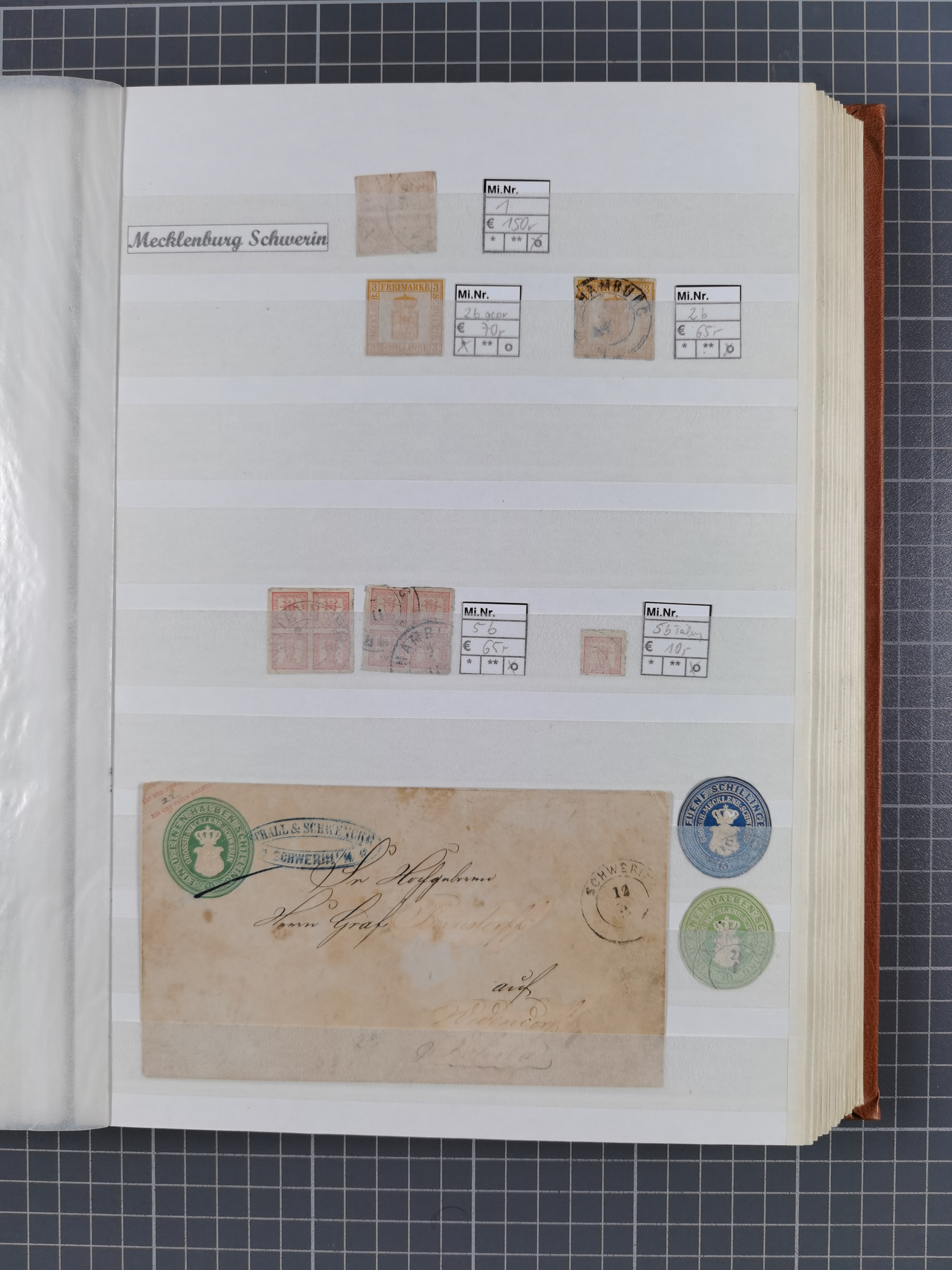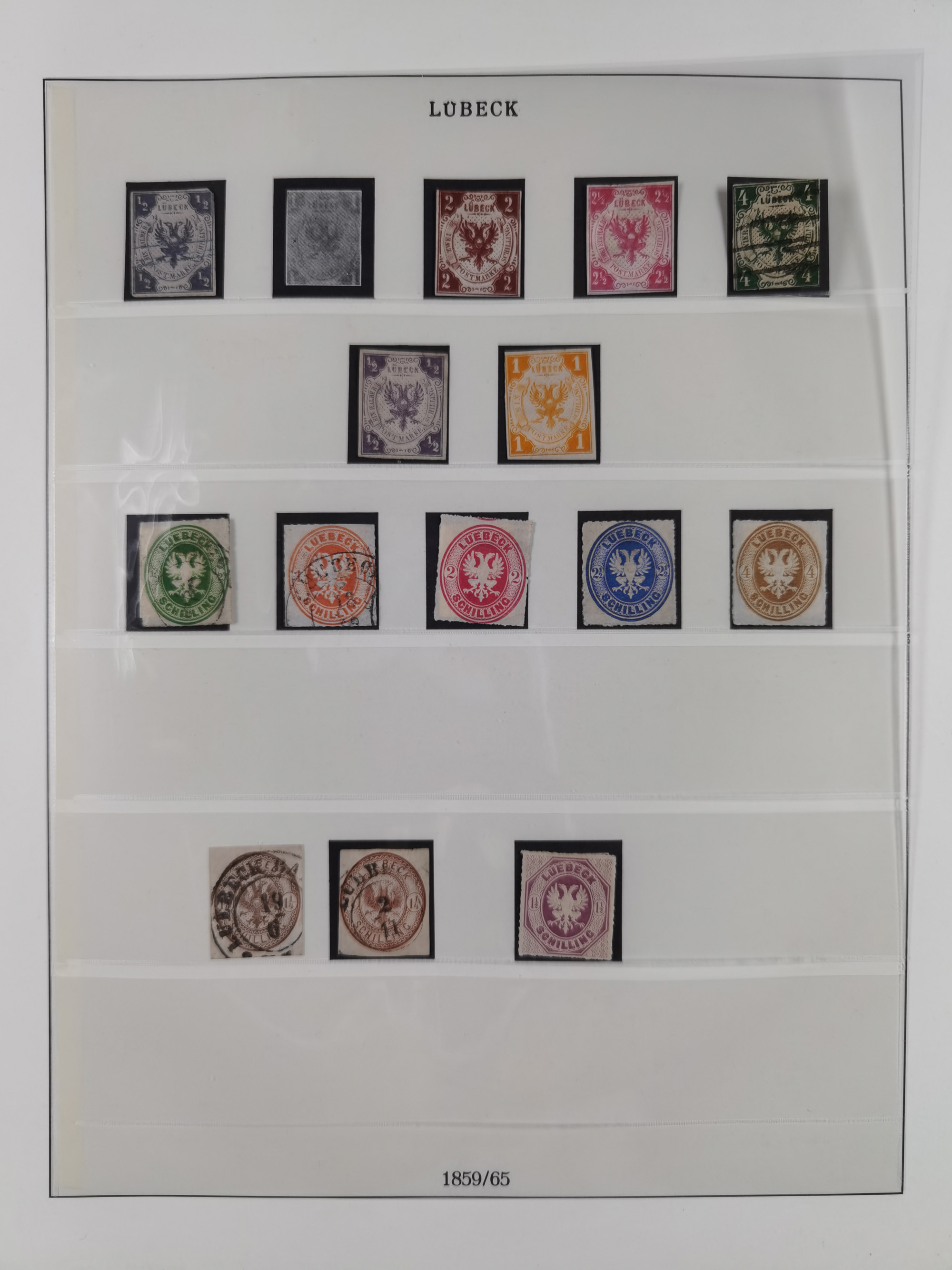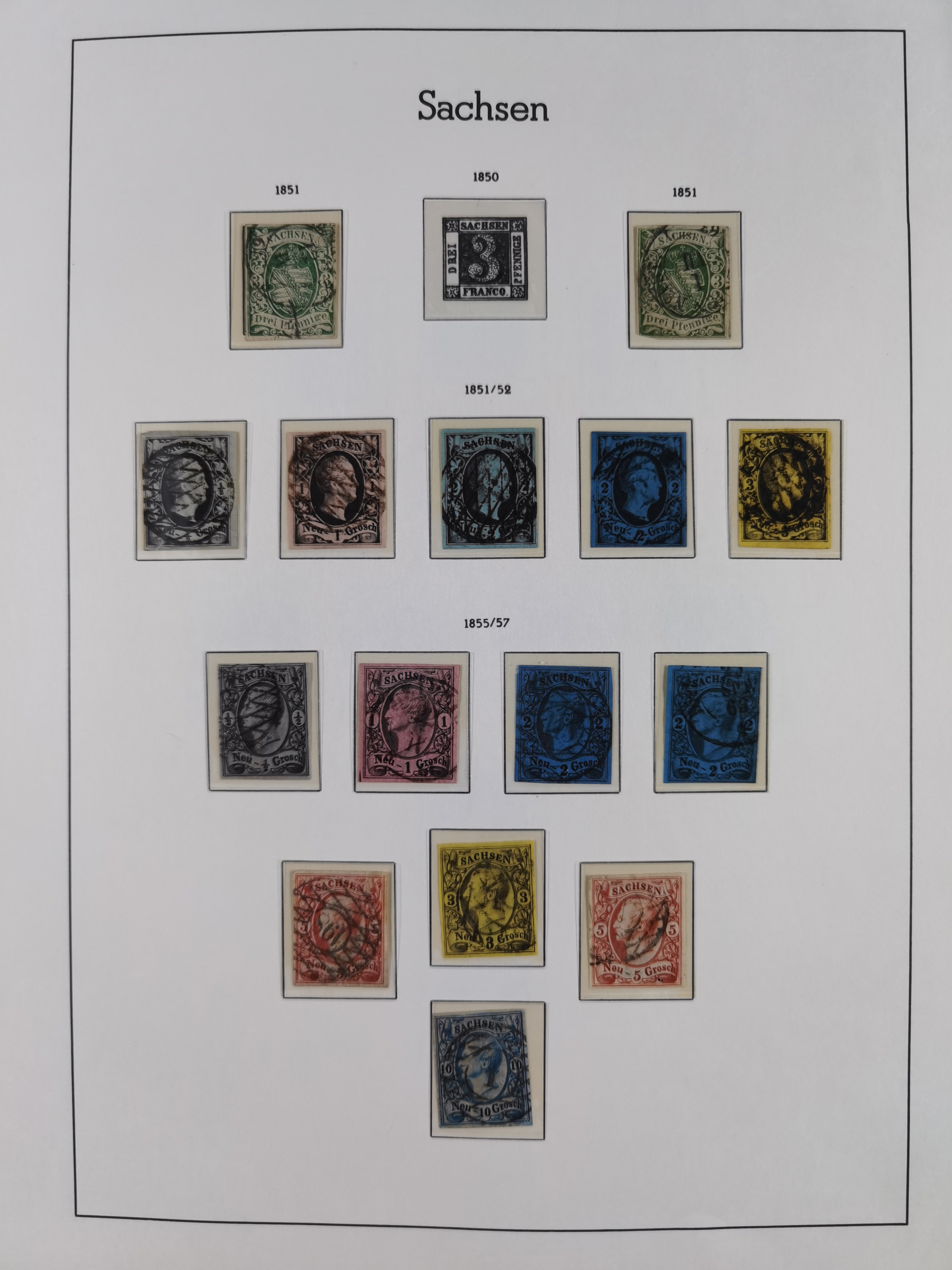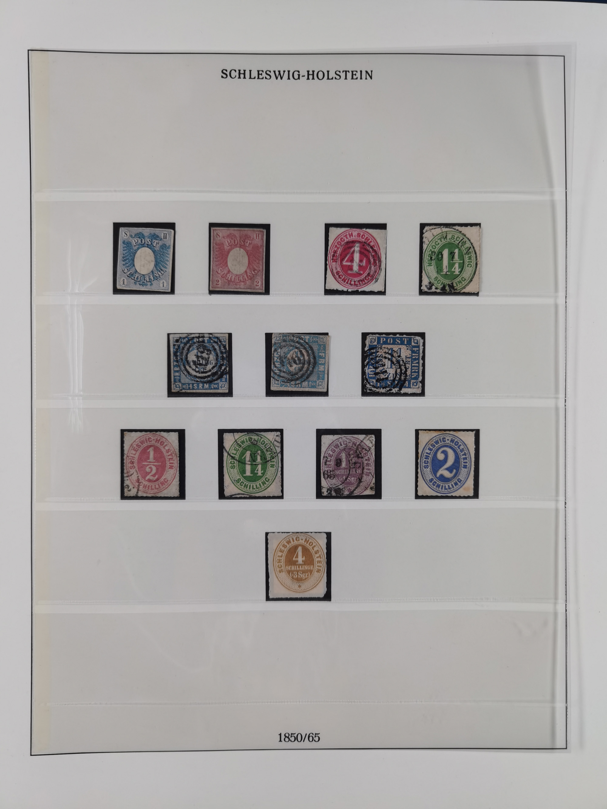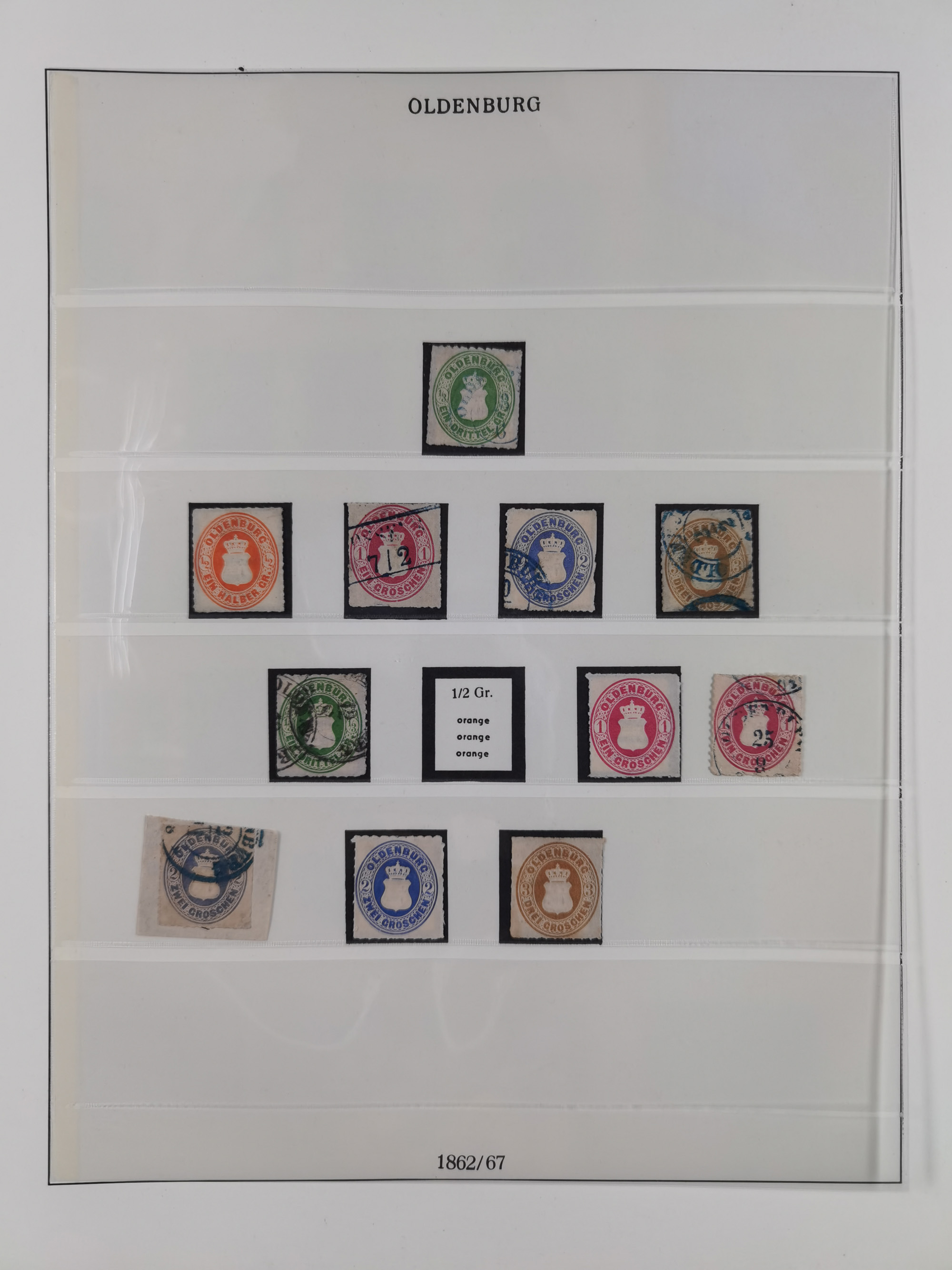 Bergedorf bis NDP, meist gestempelte und ungebrauchte Sammlung mit besseren Marken, Farben und Besonderheiten, Schwerpunkt bei Preußen, Sachsen und NDP. Dabei u.a. Preußen mit Mi.-Nr. 2c gestempelt (KB Wasels BPP), Mi.-Nr. 5 b gestempelt (FB Flemming BPP), Mi.-Nr. 11c gestempelt (KB Brettl BPP) und Mi.-Nr. 18a mit rotem Bahnpost-L3 “COELN/VERVIERS” (FB Flemming BPP) sowie Sachsen mit u.a. Mi.-Nr. 2Ic und 2IId gestempelt (jeweils FA Vaatz BPP), Mi.-Nr. 12b gestempelt (FA Vaatz BPP) und Mi.-Nr. 13a gestempelt (FA Vaatz BPP). Dazu eine stark reparierte Sachsen Mi.-Nr. 1a gestempelt (sign. Richter). Viele bessere Marken bzw. Farben sind signiert oder haben KB und FB, sauber im Steckbuch