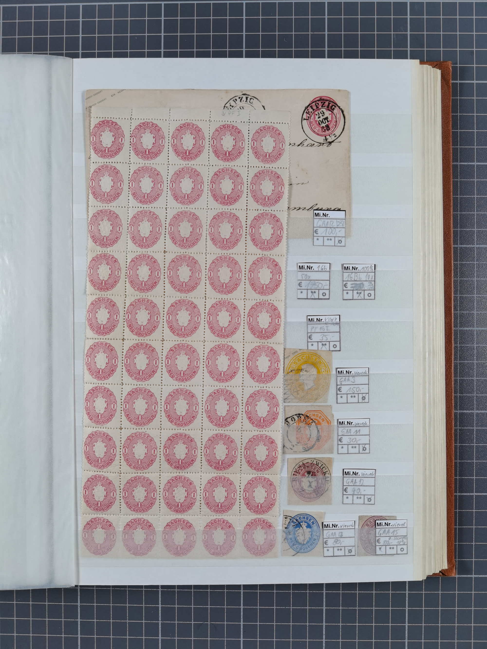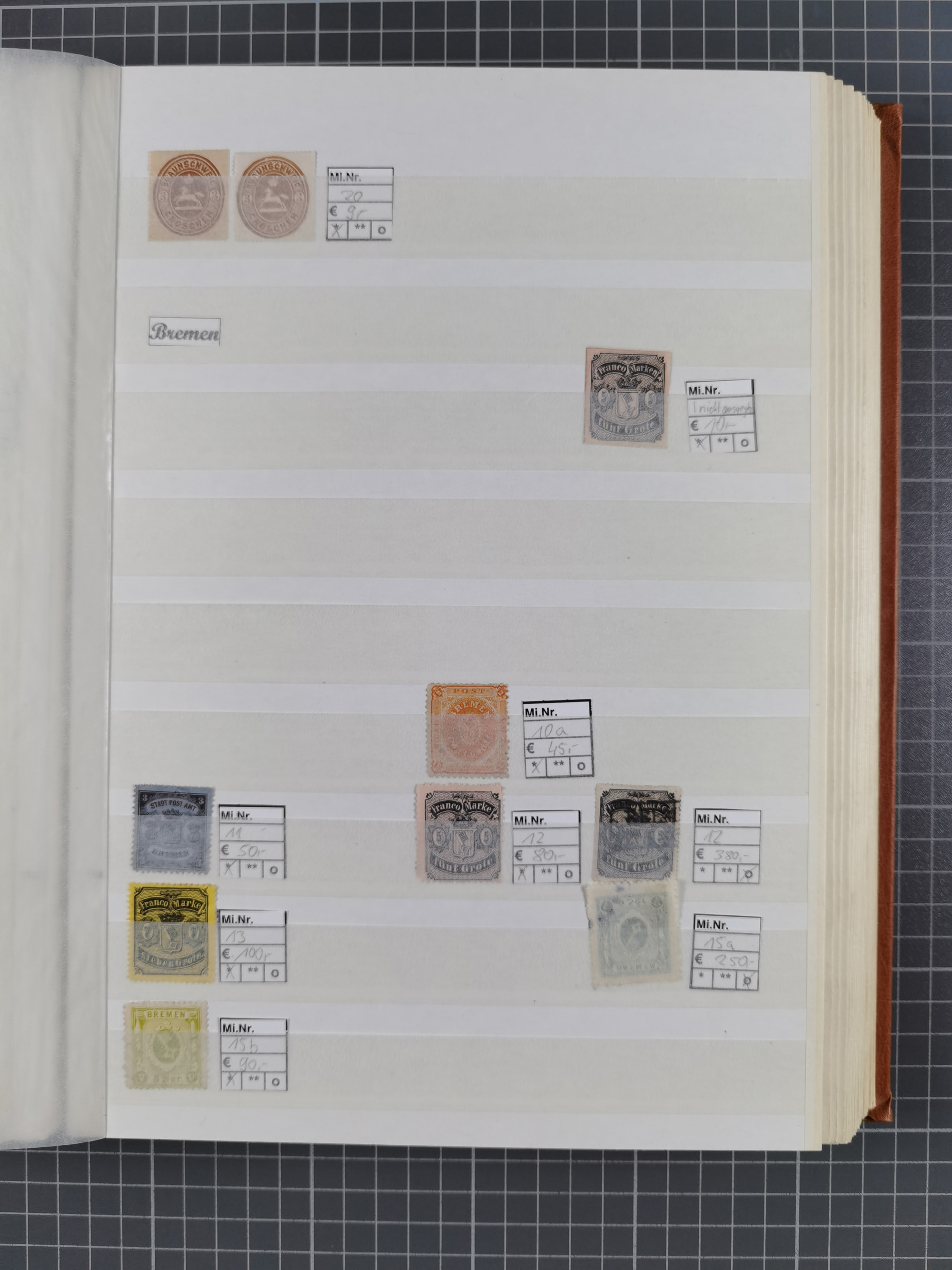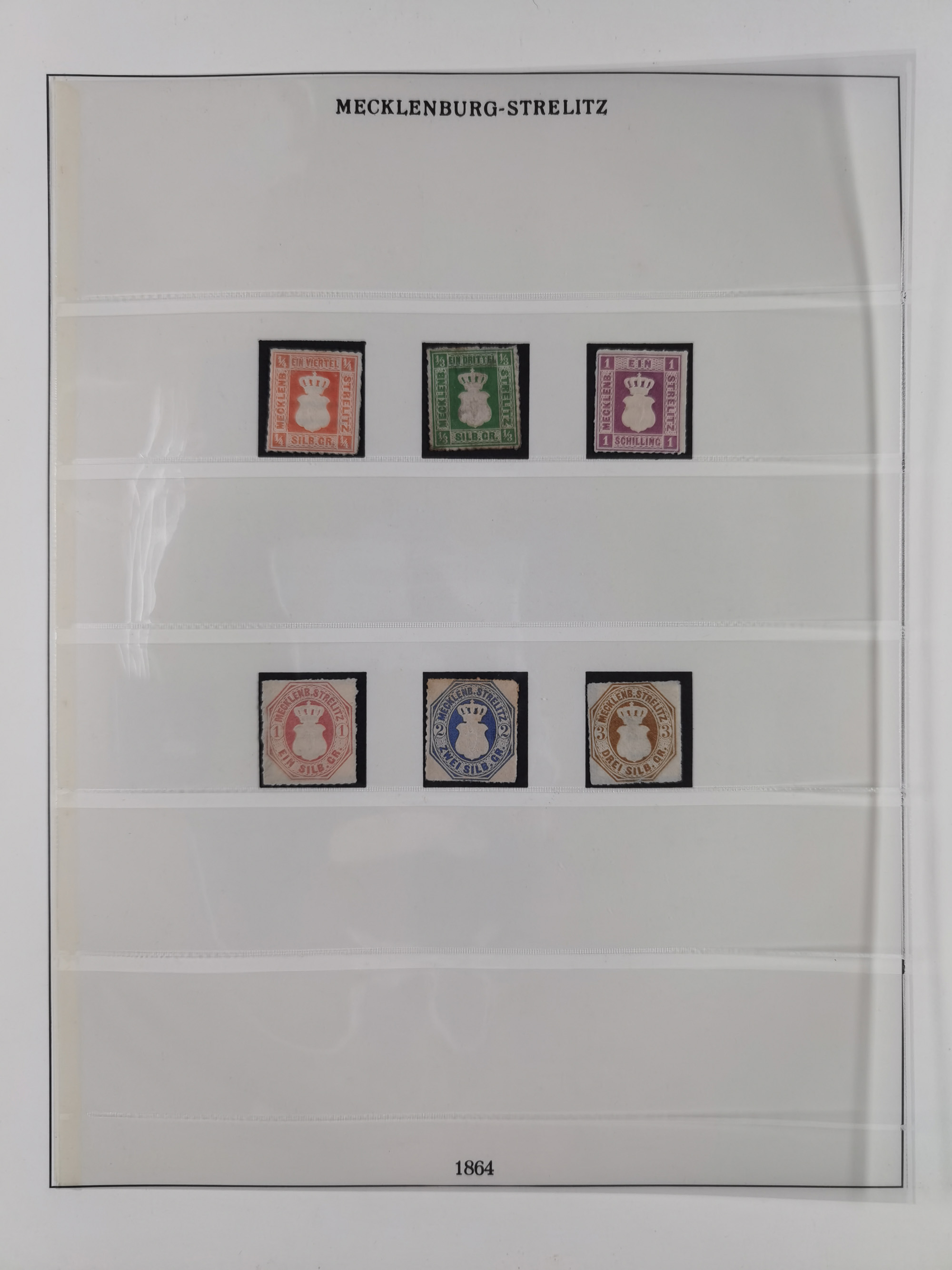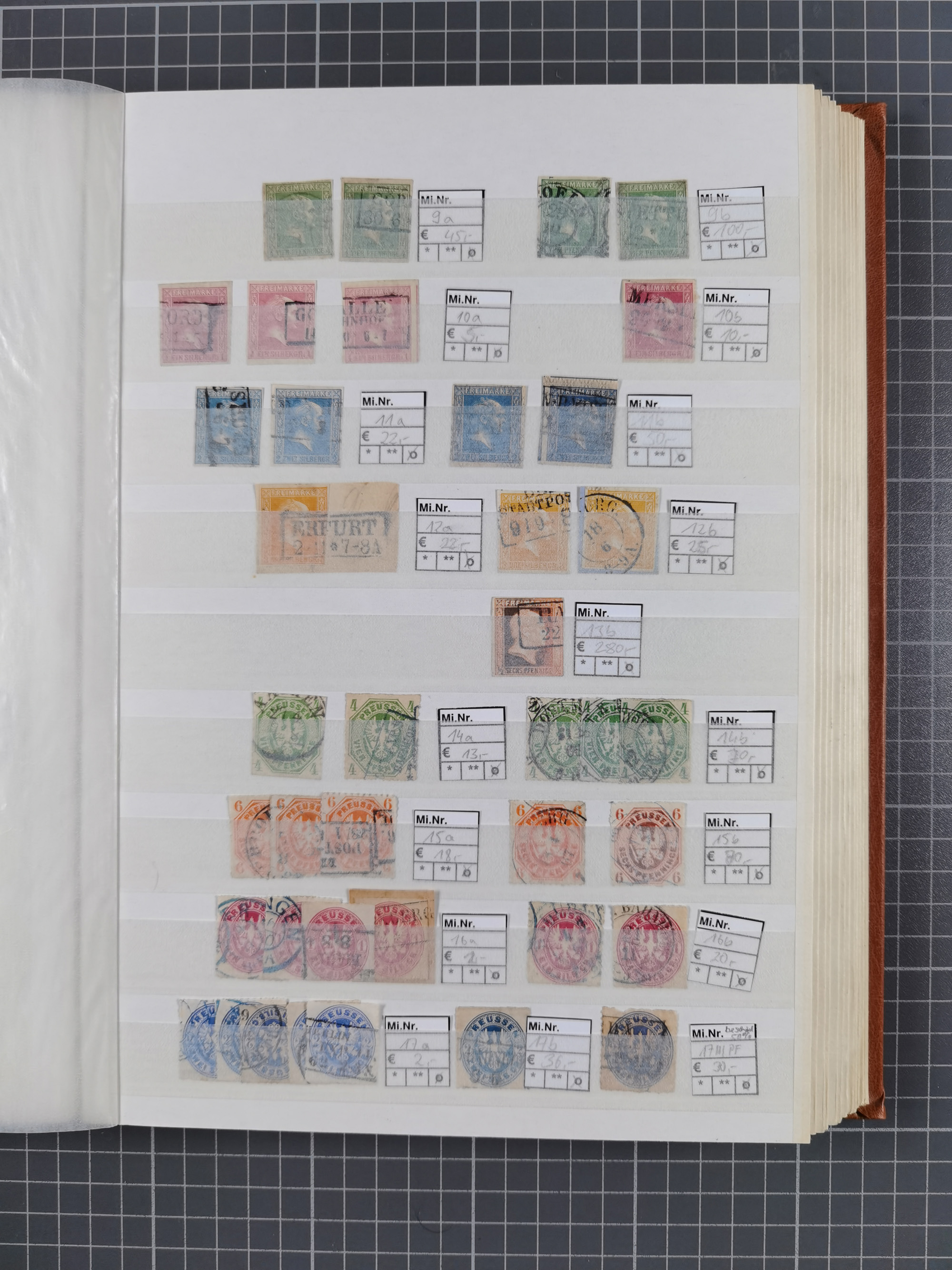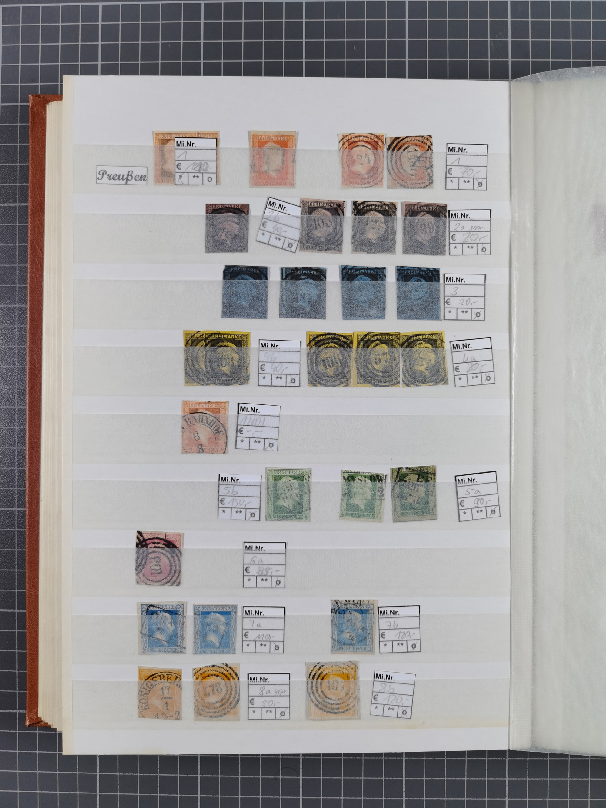 Bergedorf bis NDP, meist gestempelte und ungebrauchte Sammlung mit besseren Marken, Farben und Besonderheiten, Schwerpunkt bei Preußen, Sachsen und NDP. Dabei u.a. Preußen mit Mi.-Nr. 2c gestempelt (KB Wasels BPP), Mi.-Nr. 5 b gestempelt (FB Flemming BPP), Mi.-Nr. 11c gestempelt (KB Brettl BPP) und Mi.-Nr. 18a mit rotem Bahnpost-L3 “COELN/VERVIERS” (FB Flemming BPP) sowie Sachsen mit u.a. Mi.-Nr. 2Ic und 2IId gestempelt (jeweils FA Vaatz BPP), Mi.-Nr. 12b gestempelt (FA Vaatz BPP) und Mi.-Nr. 13a gestempelt (FA Vaatz BPP). Dazu eine stark reparierte Sachsen Mi.-Nr. 1a gestempelt (sign. Richter). Viele bessere Marken bzw. Farben sind signiert oder haben KB und FB, sauber im Steckbuch