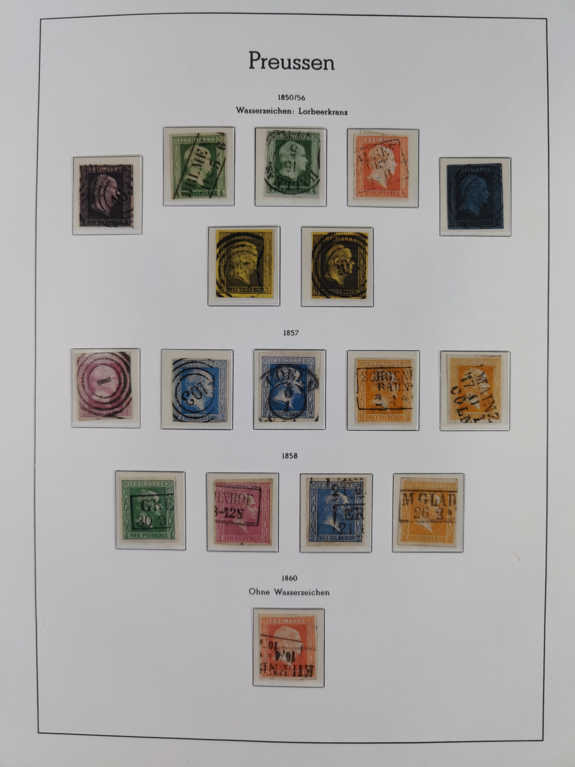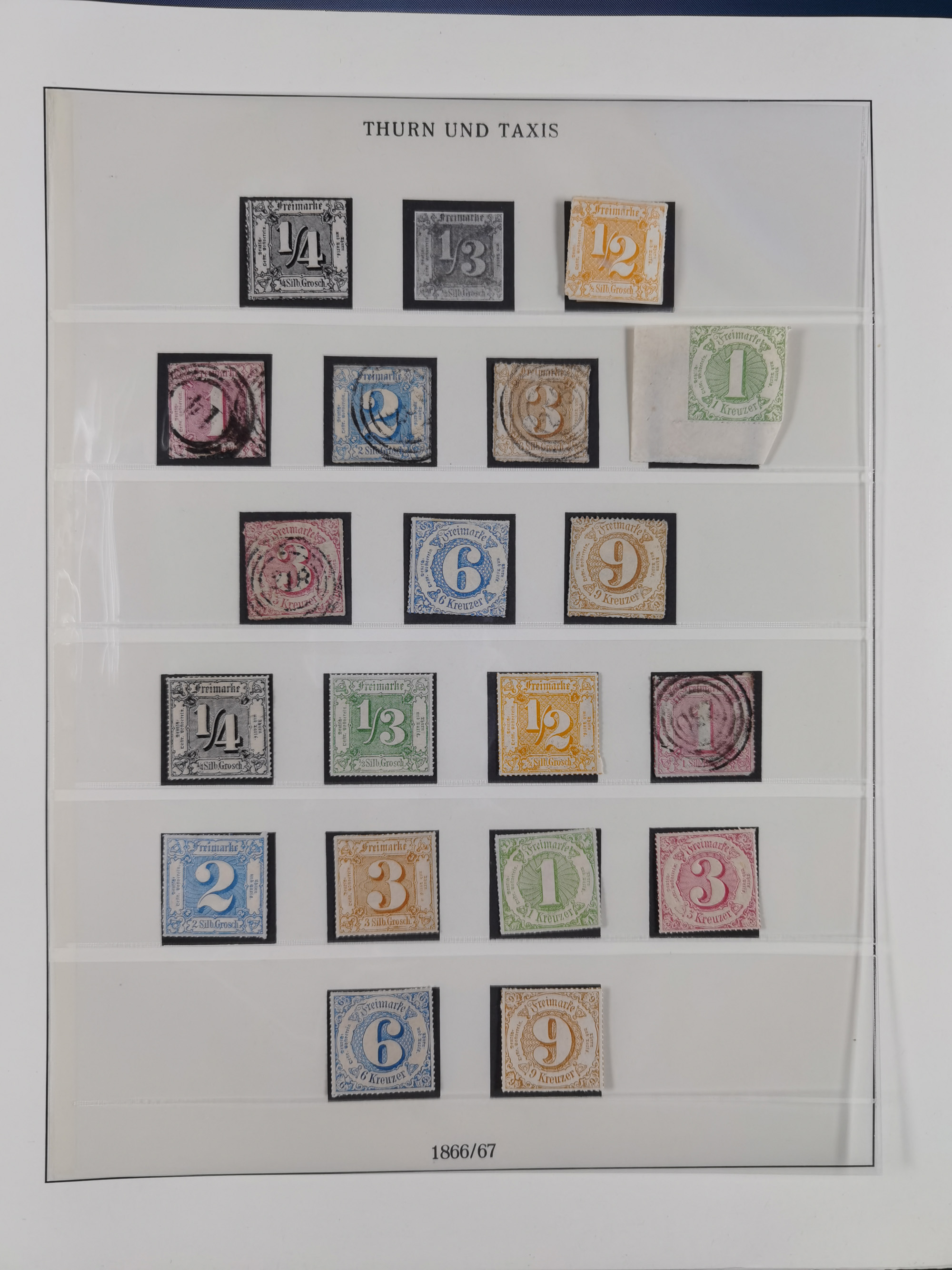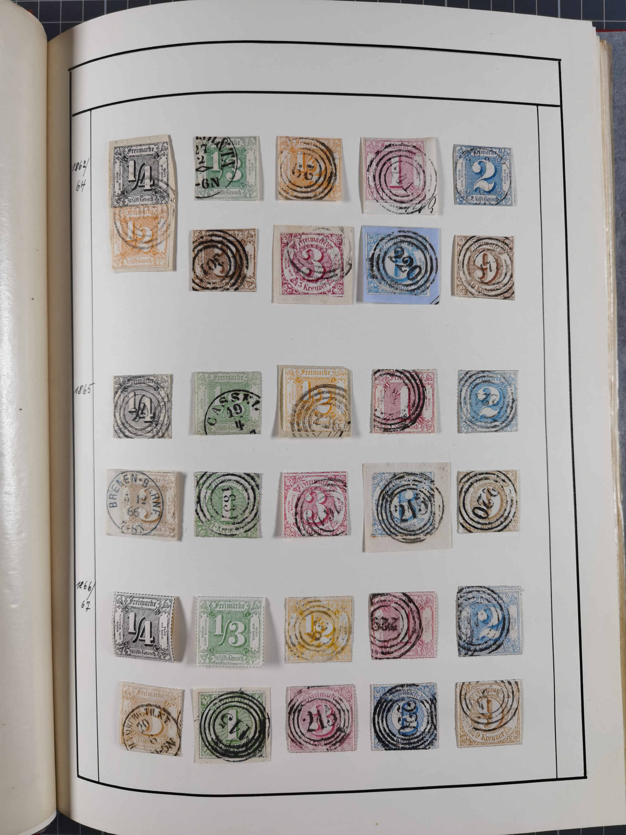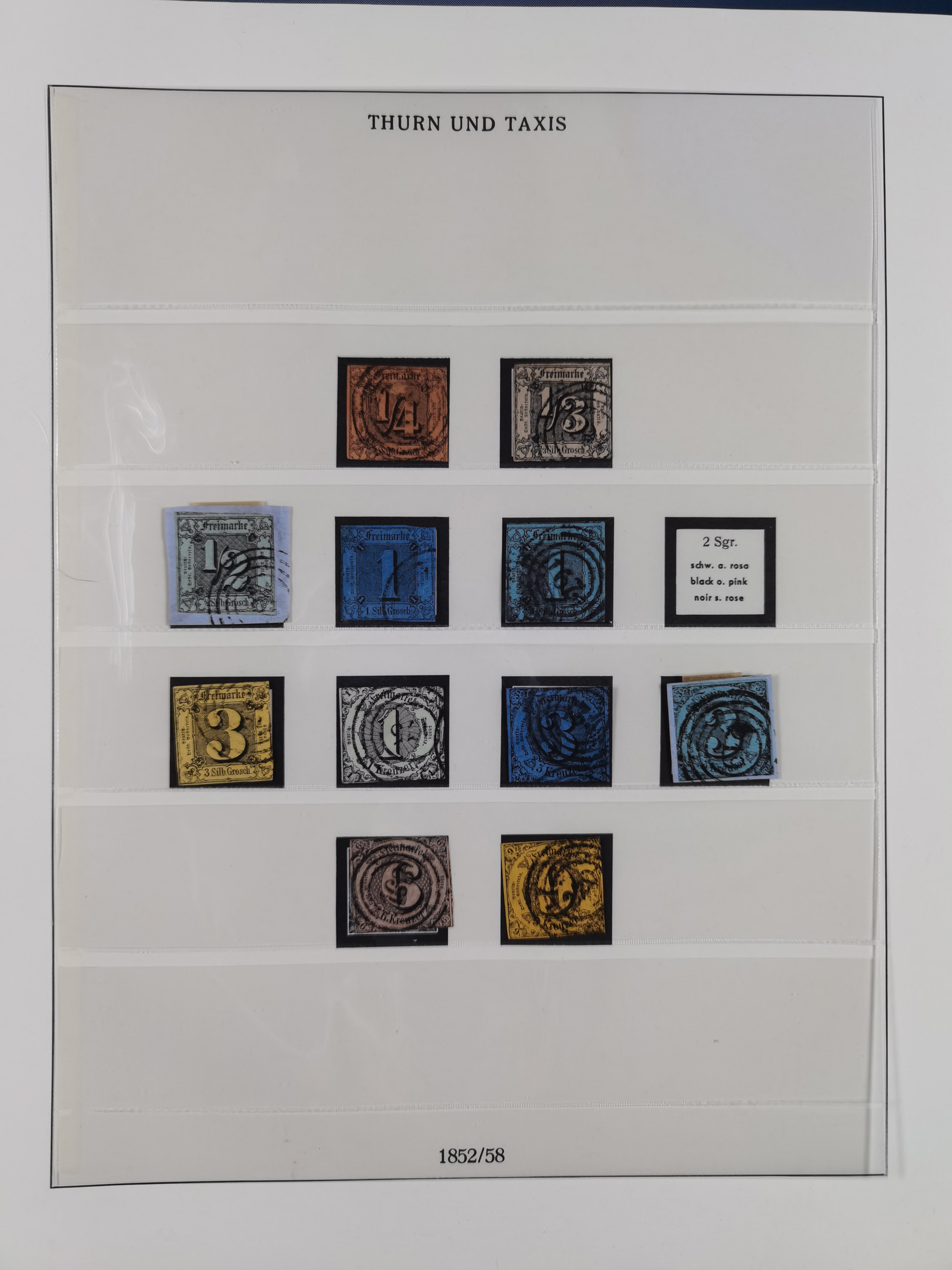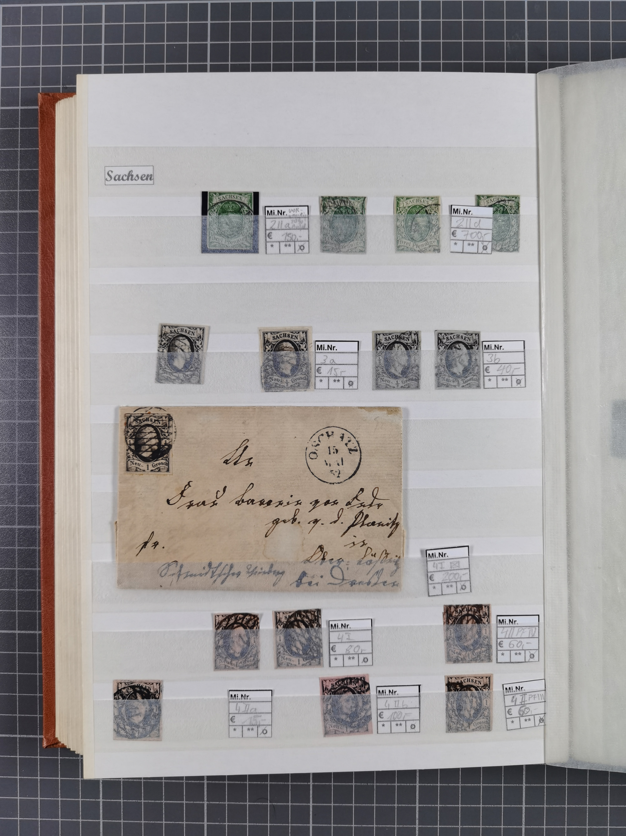 Bergedorf bis NDP, meist gestempelte und ungebrauchte Sammlung mit besseren Marken, Farben und Besonderheiten, Schwerpunkt bei Preußen, Sachsen und NDP. Dabei u.a. Preußen mit Mi.-Nr. 2c gestempelt (KB Wasels BPP), Mi.-Nr. 5 b gestempelt (FB Flemming BPP), Mi.-Nr. 11c gestempelt (KB Brettl BPP) und Mi.-Nr. 18a mit rotem Bahnpost-L3 “COELN/VERVIERS” (FB Flemming BPP) sowie Sachsen mit u.a. Mi.-Nr. 2Ic und 2IId gestempelt (jeweils FA Vaatz BPP), Mi.-Nr. 12b gestempelt (FA Vaatz BPP) und Mi.-Nr. 13a gestempelt (FA Vaatz BPP). Dazu eine stark reparierte Sachsen Mi.-Nr. 1a gestempelt (sign. Richter). Viele bessere Marken bzw. Farben sind signiert oder haben KB und FB, sauber im Steckbuch