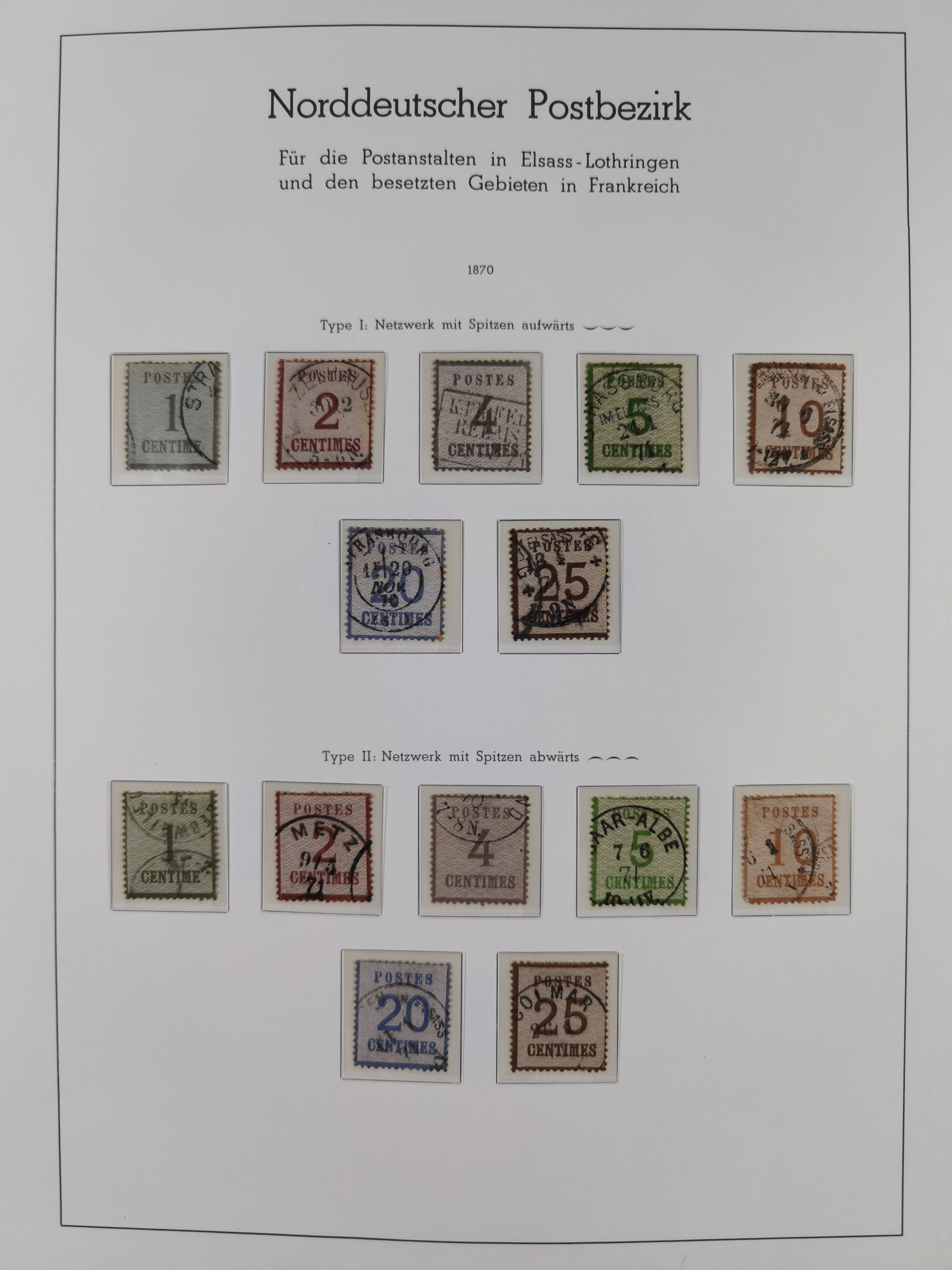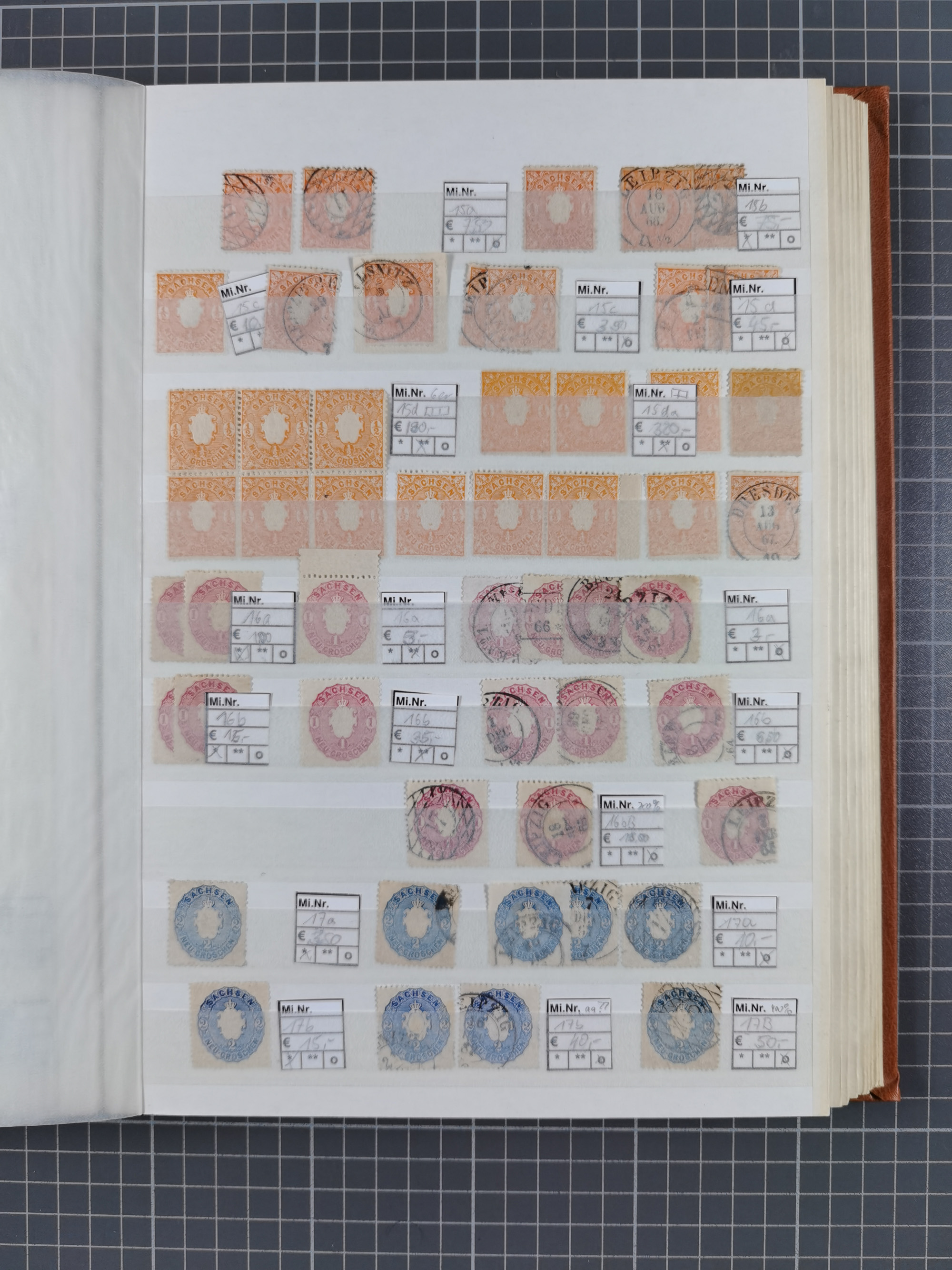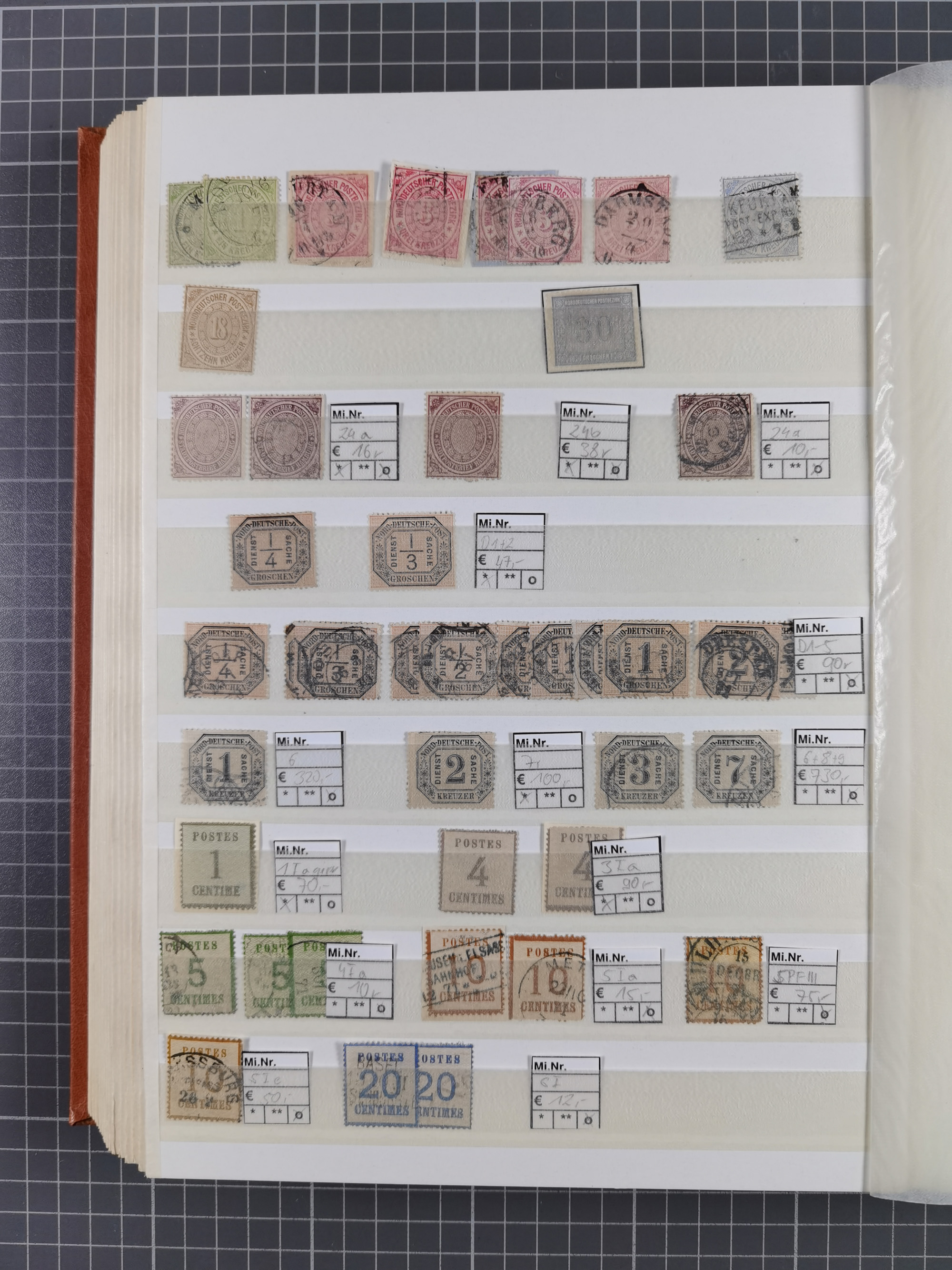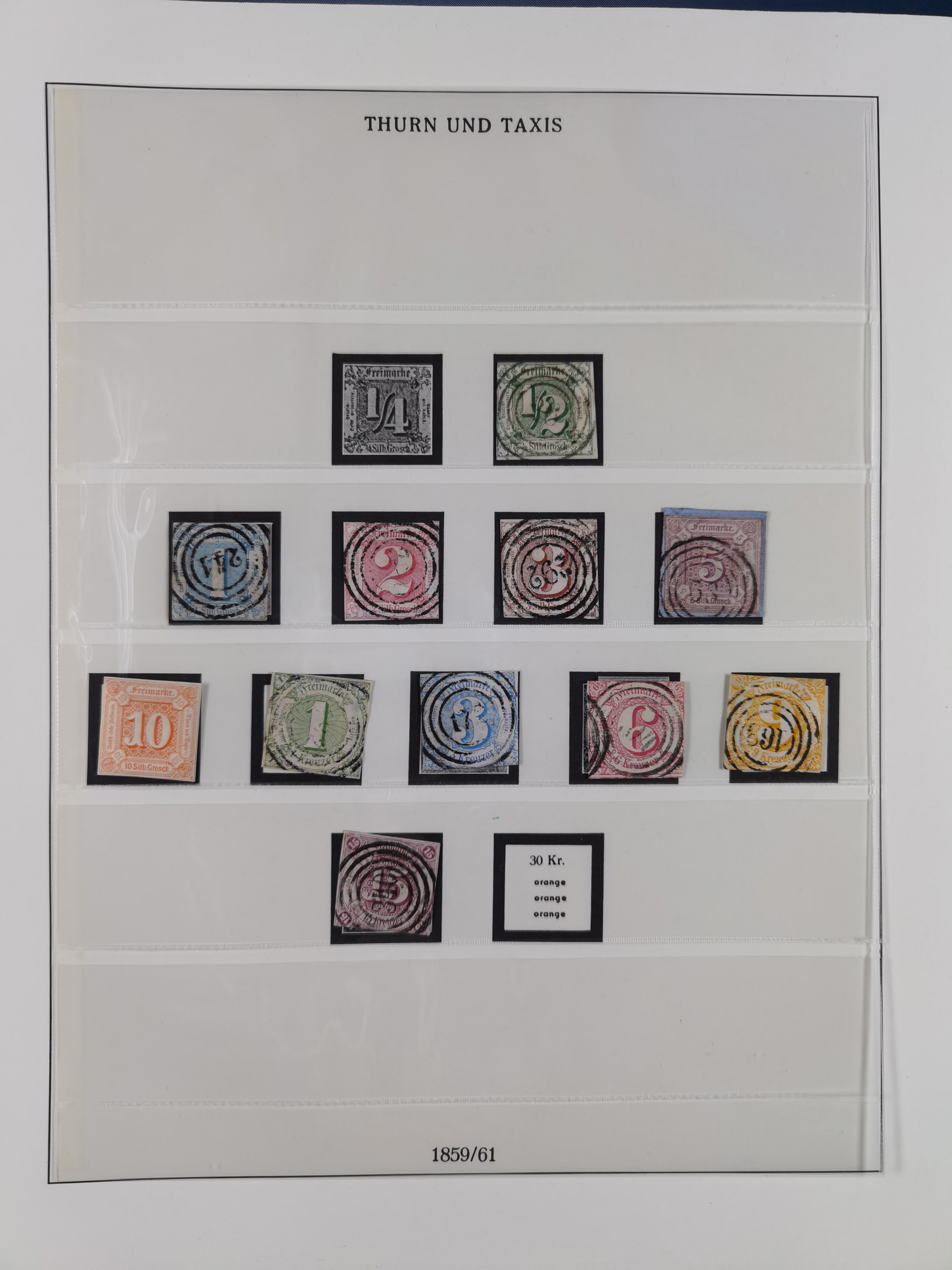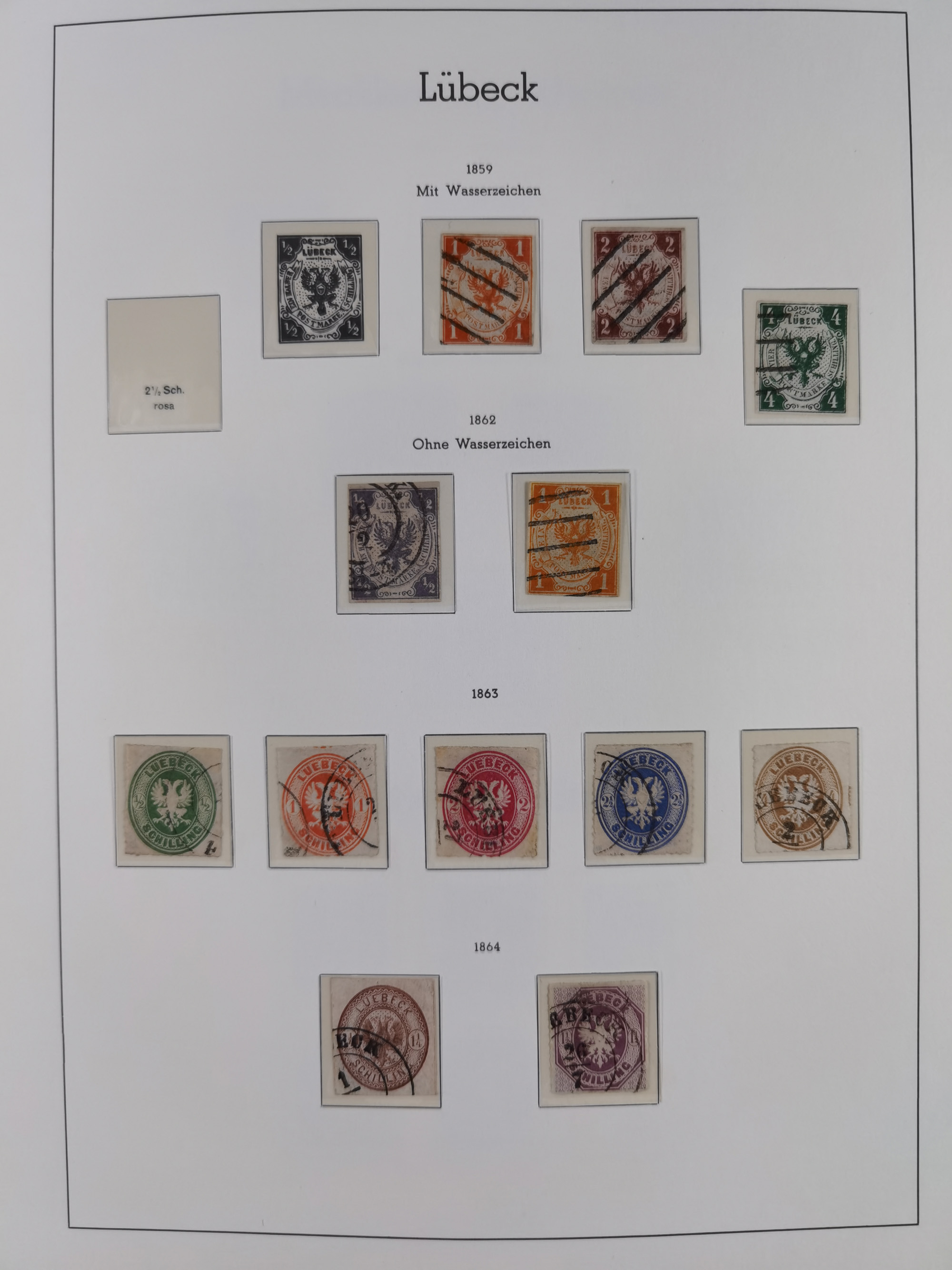 Bergedorf bis NDP, meist gestempelte und ungebrauchte Sammlung mit besseren Marken, Farben und Besonderheiten, Schwerpunkt bei Preußen, Sachsen und NDP. Dabei u.a. Preußen mit Mi.-Nr. 2c gestempelt (KB Wasels BPP), Mi.-Nr. 5 b gestempelt (FB Flemming BPP), Mi.-Nr. 11c gestempelt (KB Brettl BPP) und Mi.-Nr. 18a mit rotem Bahnpost-L3 “COELN/VERVIERS” (FB Flemming BPP) sowie Sachsen mit u.a. Mi.-Nr. 2Ic und 2IId gestempelt (jeweils FA Vaatz BPP), Mi.-Nr. 12b gestempelt (FA Vaatz BPP) und Mi.-Nr. 13a gestempelt (FA Vaatz BPP). Dazu eine stark reparierte Sachsen Mi.-Nr. 1a gestempelt (sign. Richter). Viele bessere Marken bzw. Farben sind signiert oder haben KB und FB, sauber im Steckbuch