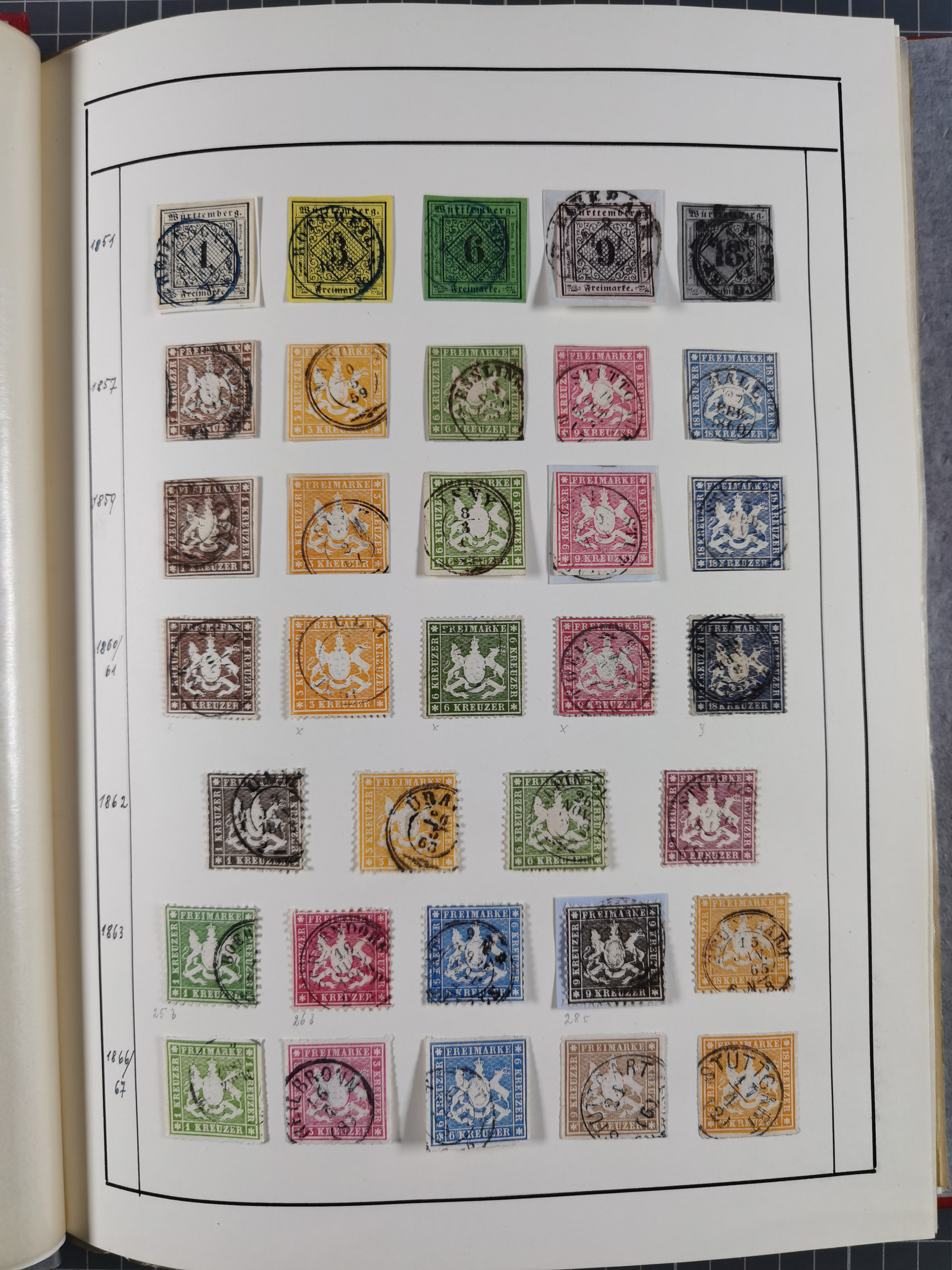 Baden bis Württemberg, meist gestempelte Sammlung, dabei einige komplette Ausgaben und bessere Werte, Baden Mi.-Nr. 1, etc., einges fehlerhaft/repariert, unterschiedliche Erhaltung