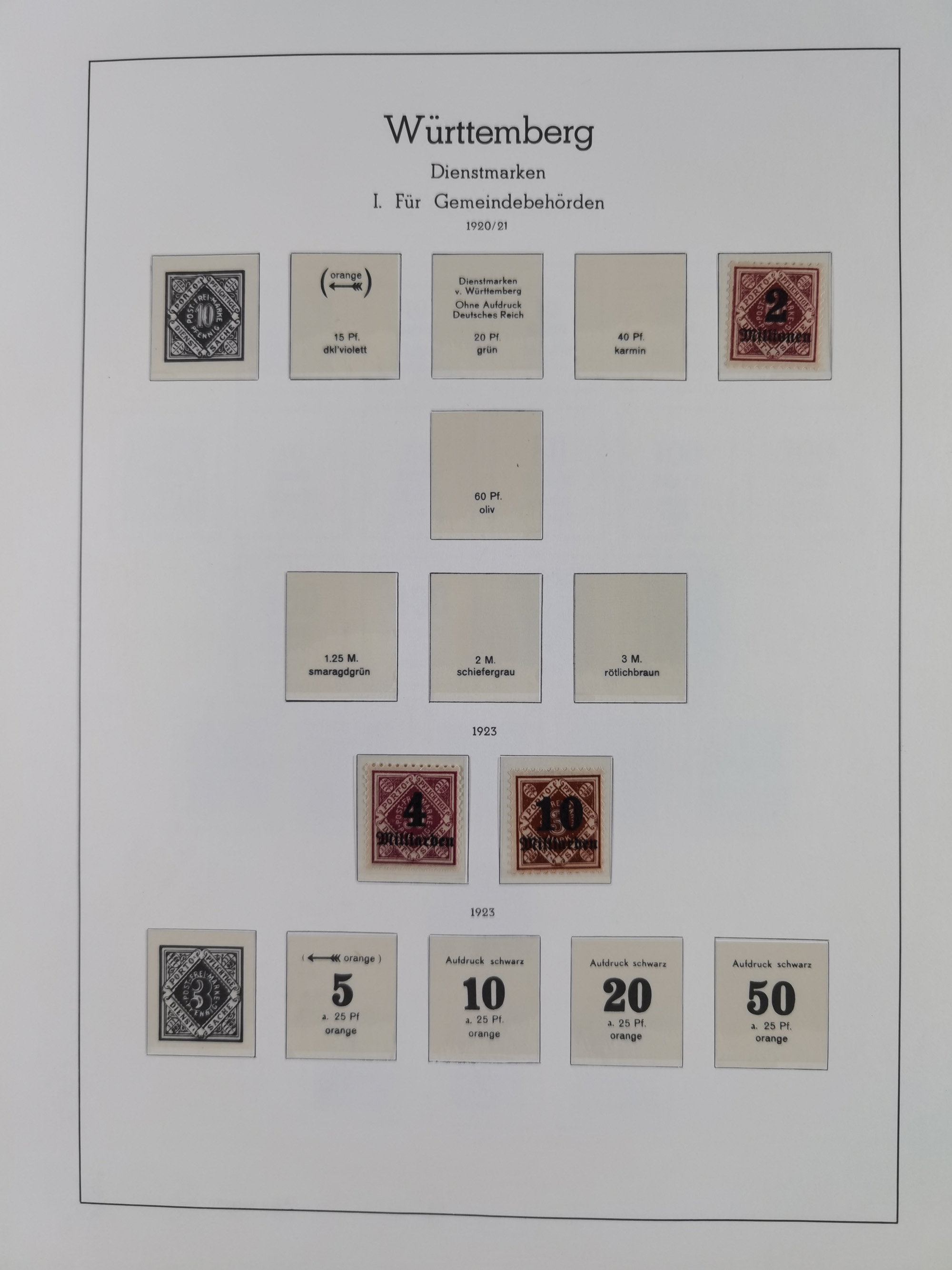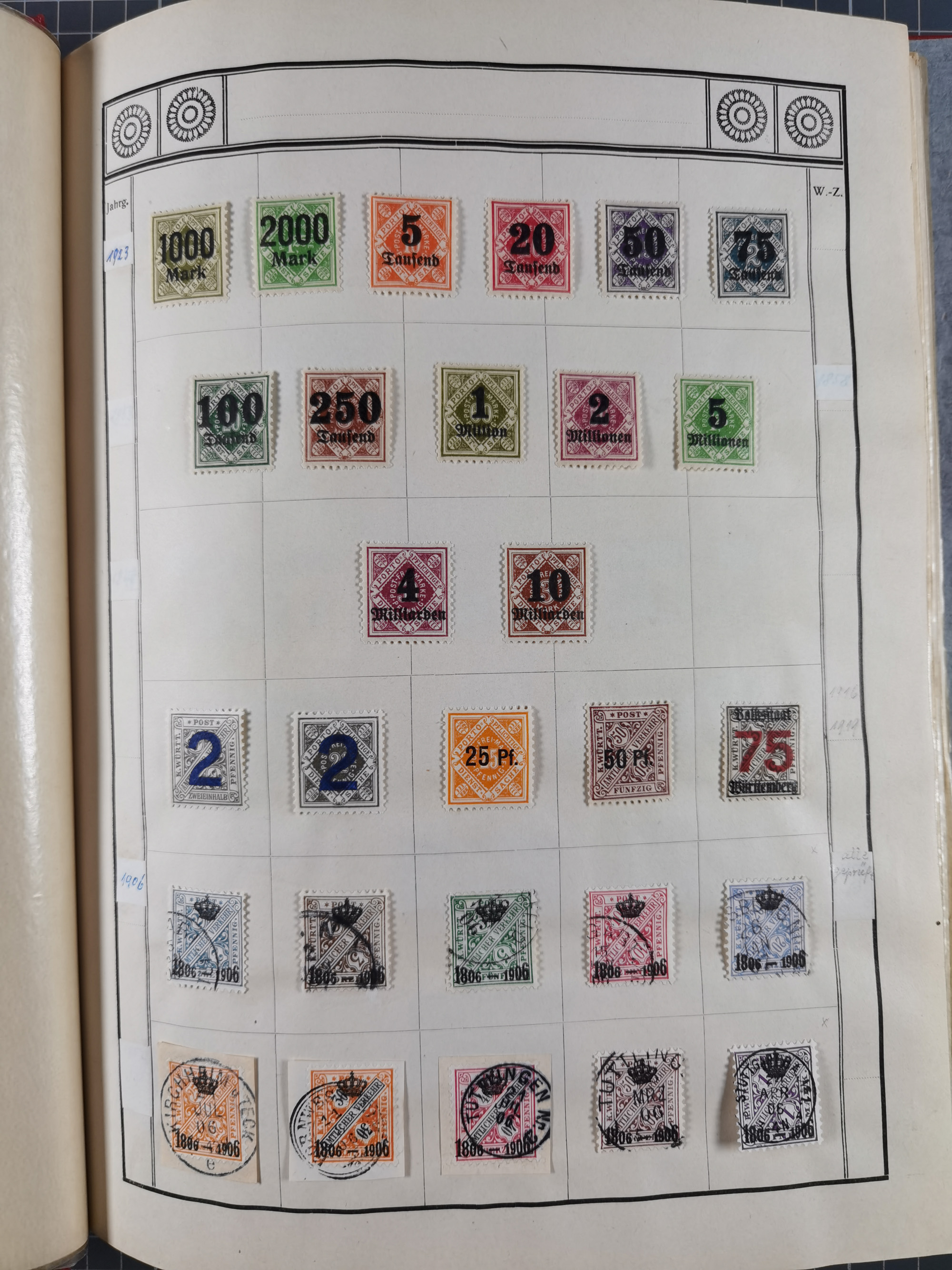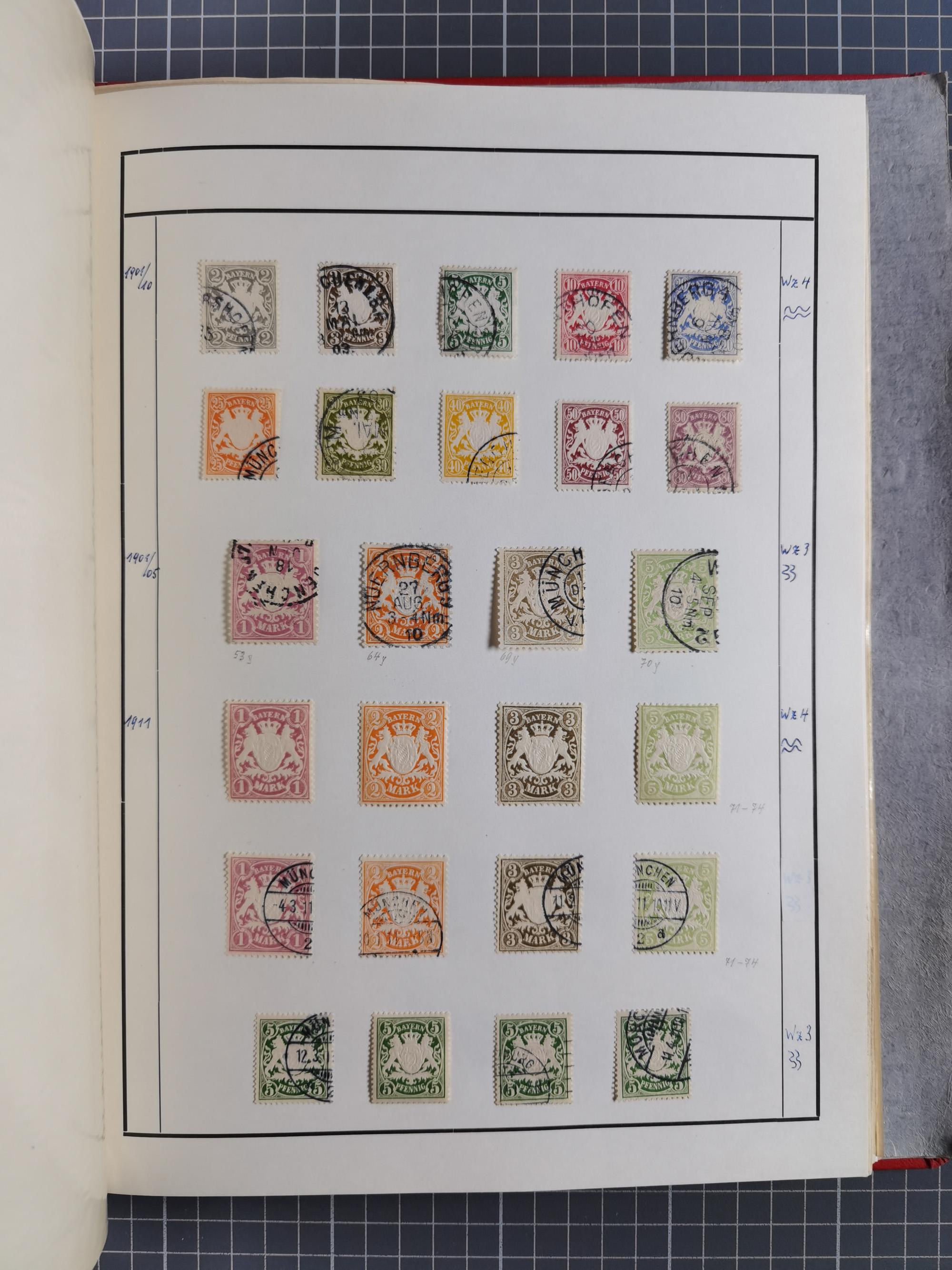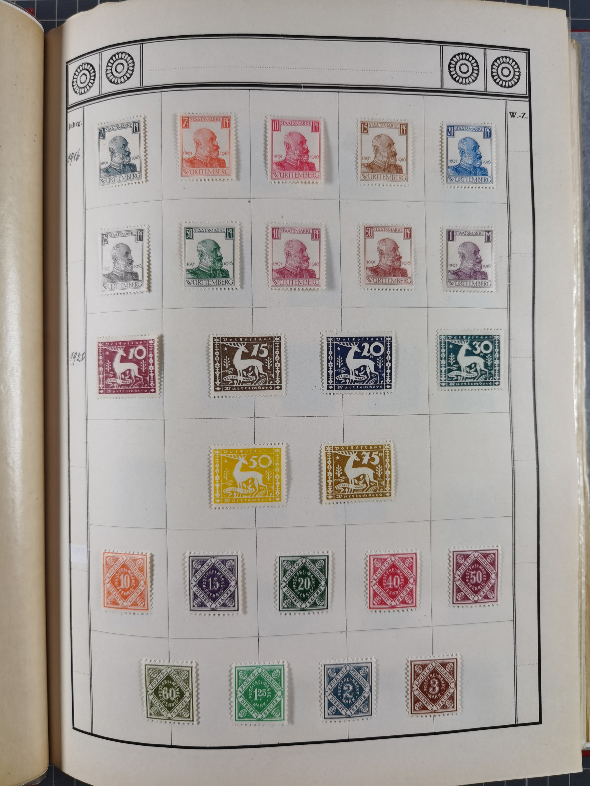 Baden bis Württemberg, meist ungebrauchter und gestempelter Bestand auf kleinen Steckkarten im Album, sauber sortiert in Mengen bis ca. 8x pro Sorte, zum Teil stark fehlerhafte Erhaltung